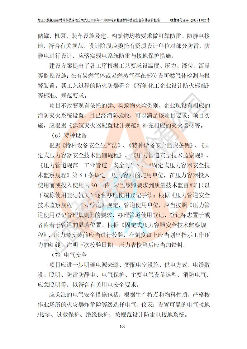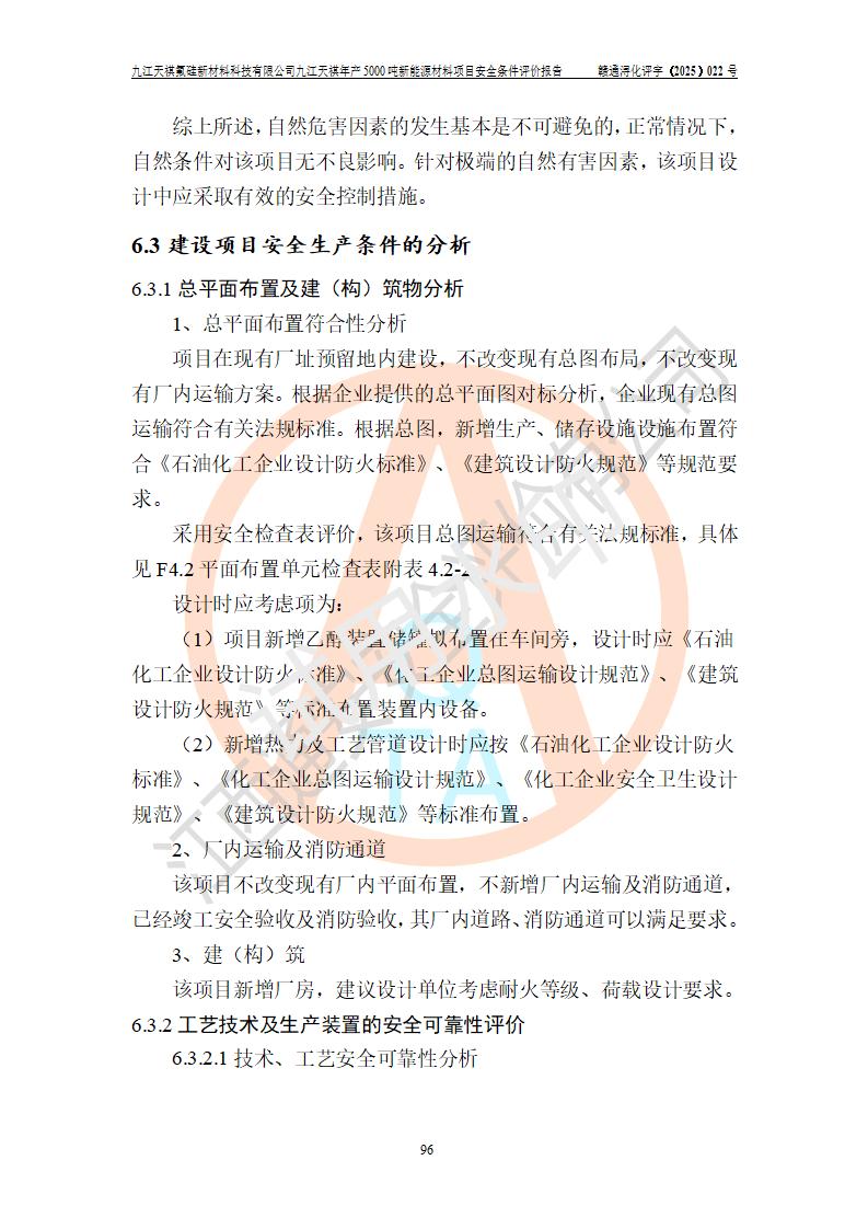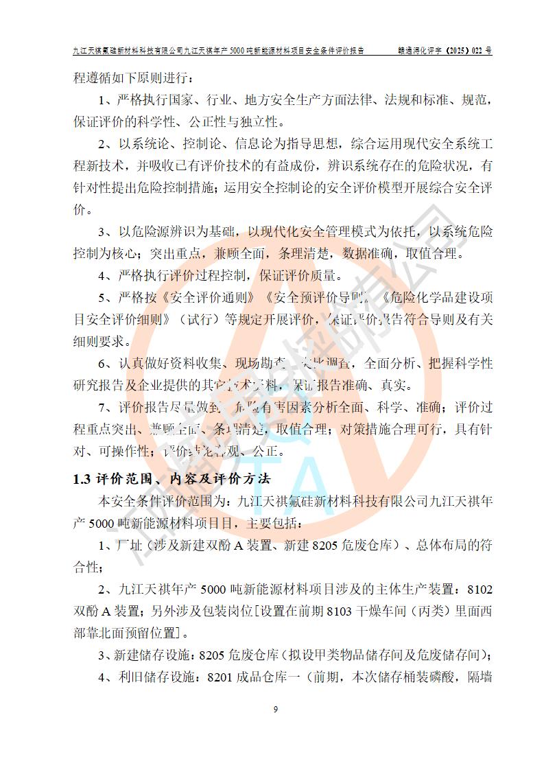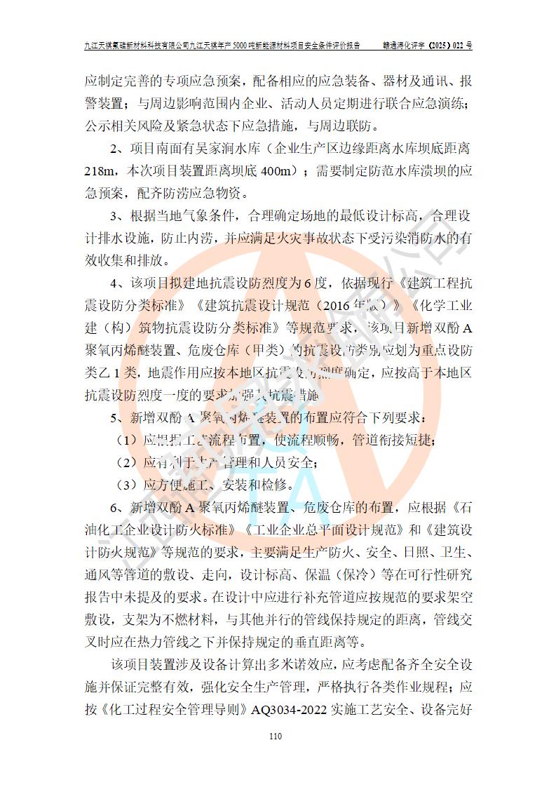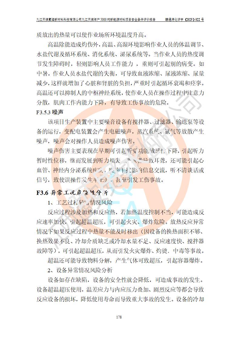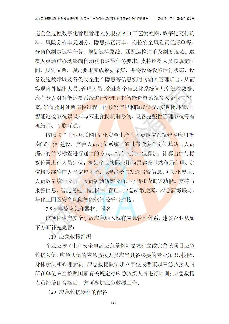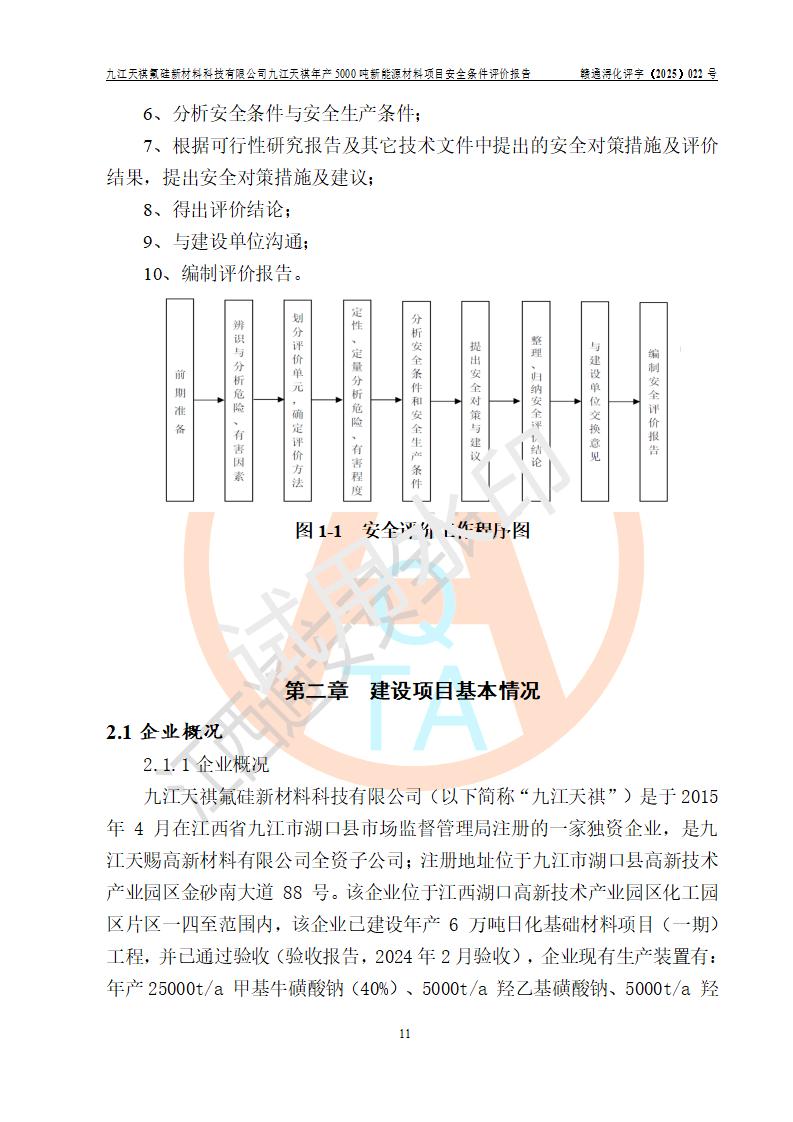 九江天祺氟硅新材料科技有限公司九江天祺年產5000 噸新能源材料項目安全條件評價報告