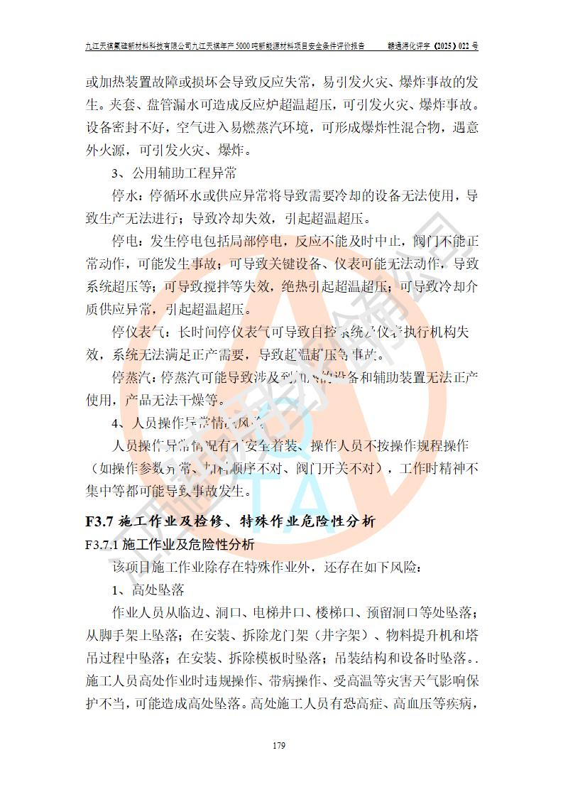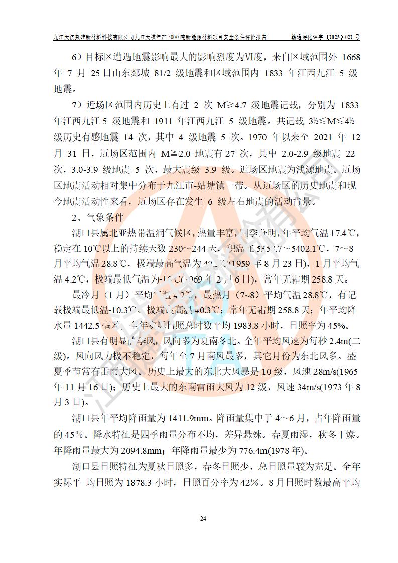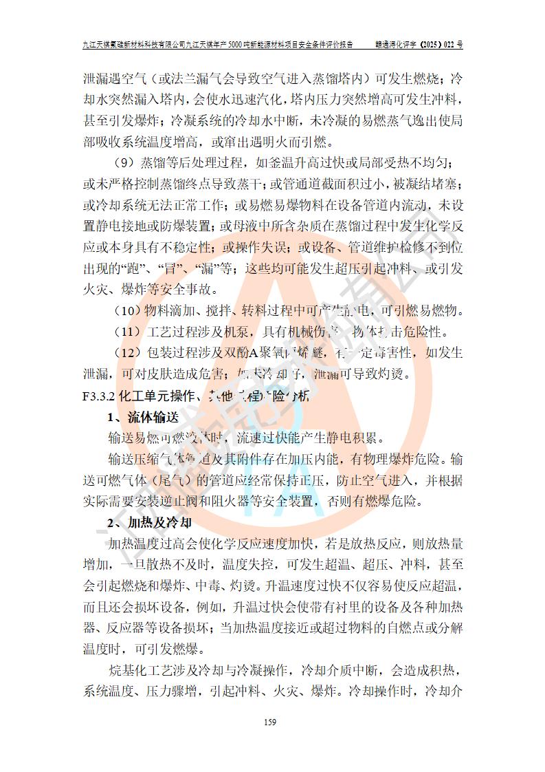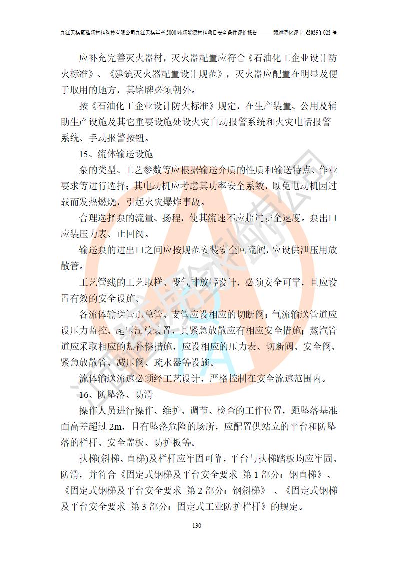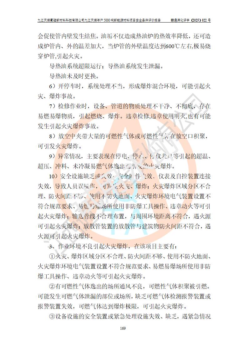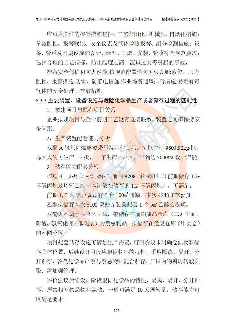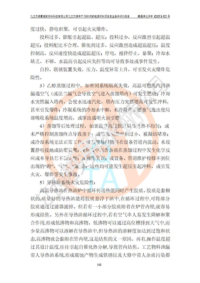 九江天祺氟硅新材料科技有限公司九江天祺年產5000 噸新能源材料項目安全條件評價報告