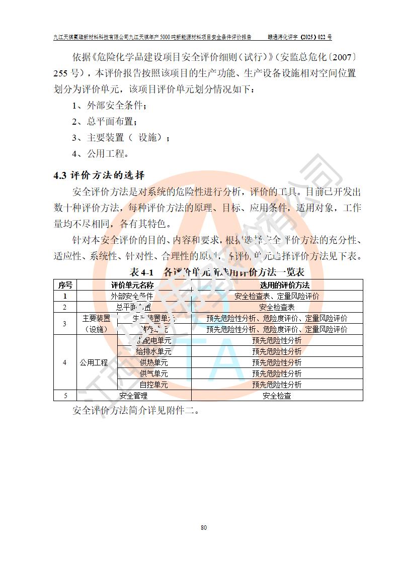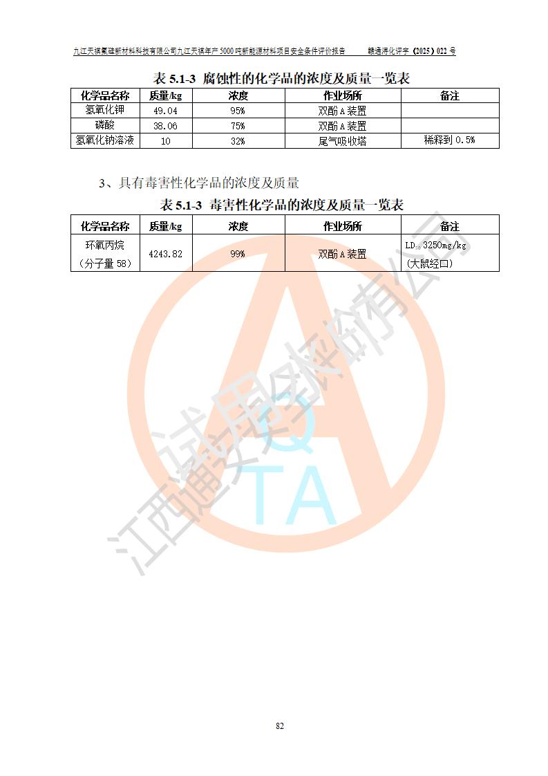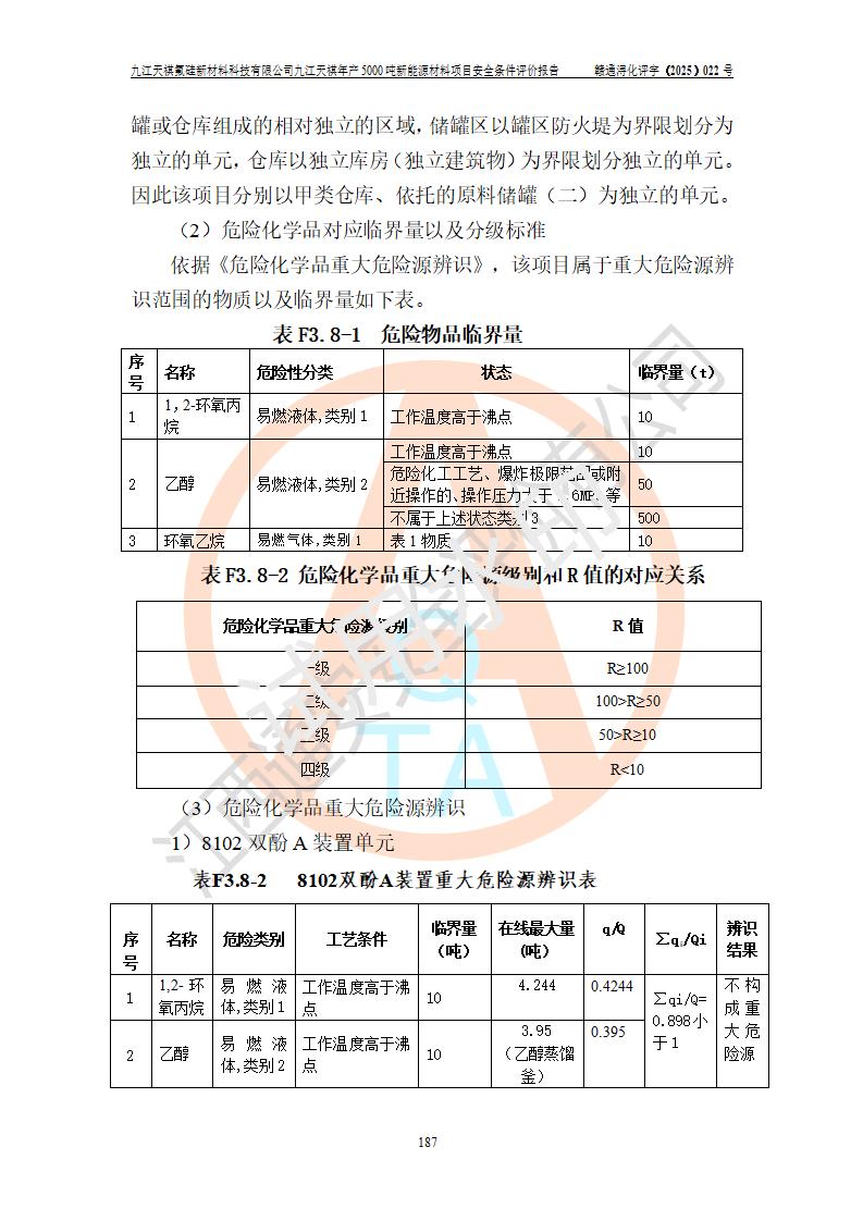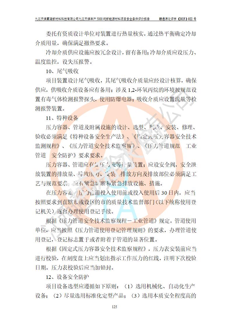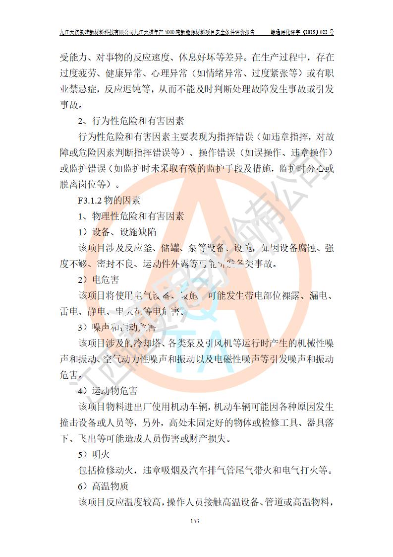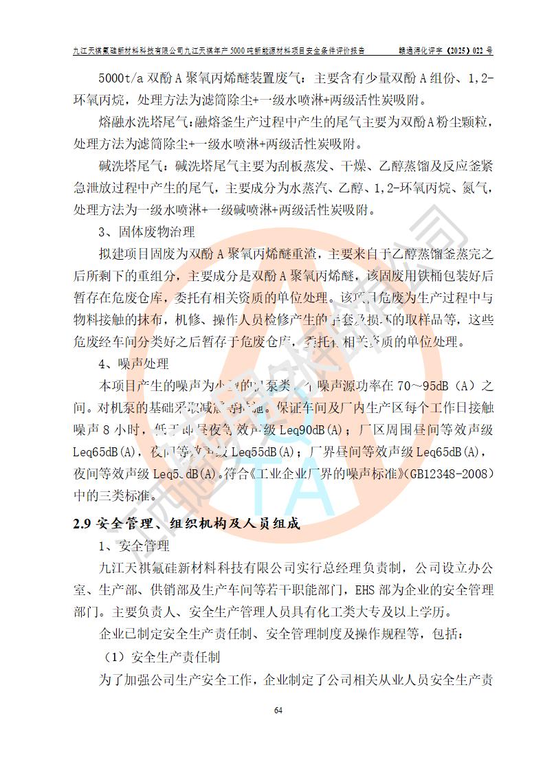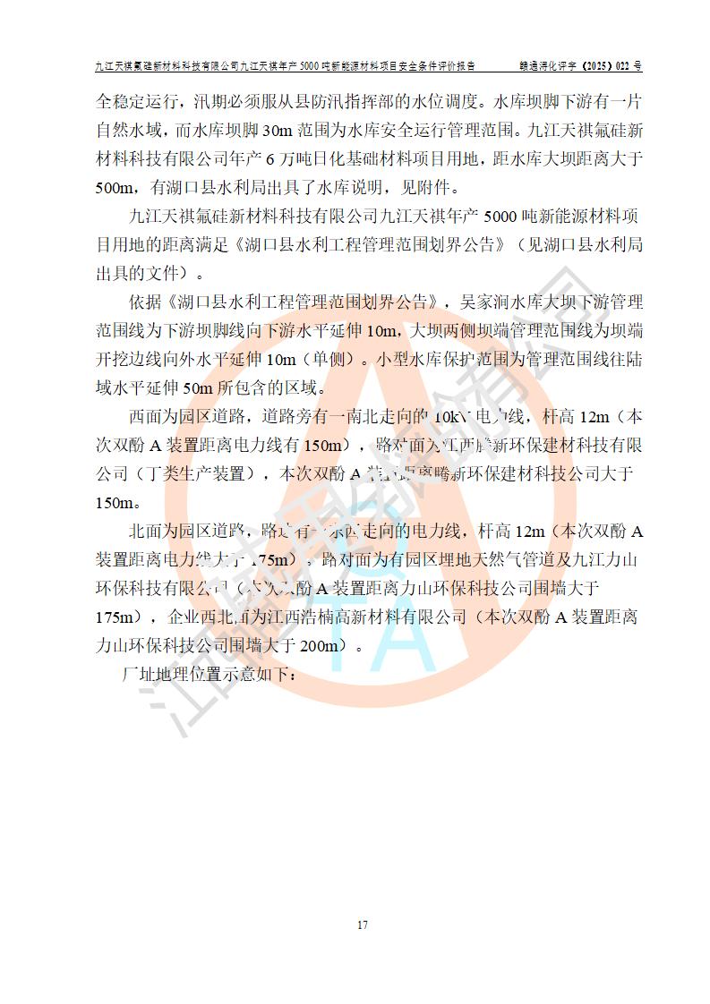 九江天祺氟硅新材料科技有限公司九江天祺年產5000 噸新能源材料項目安全條件評價報告