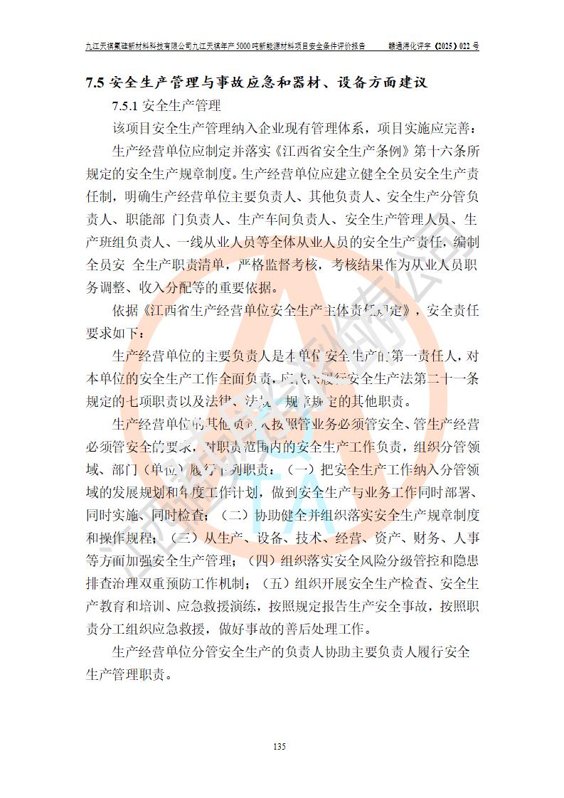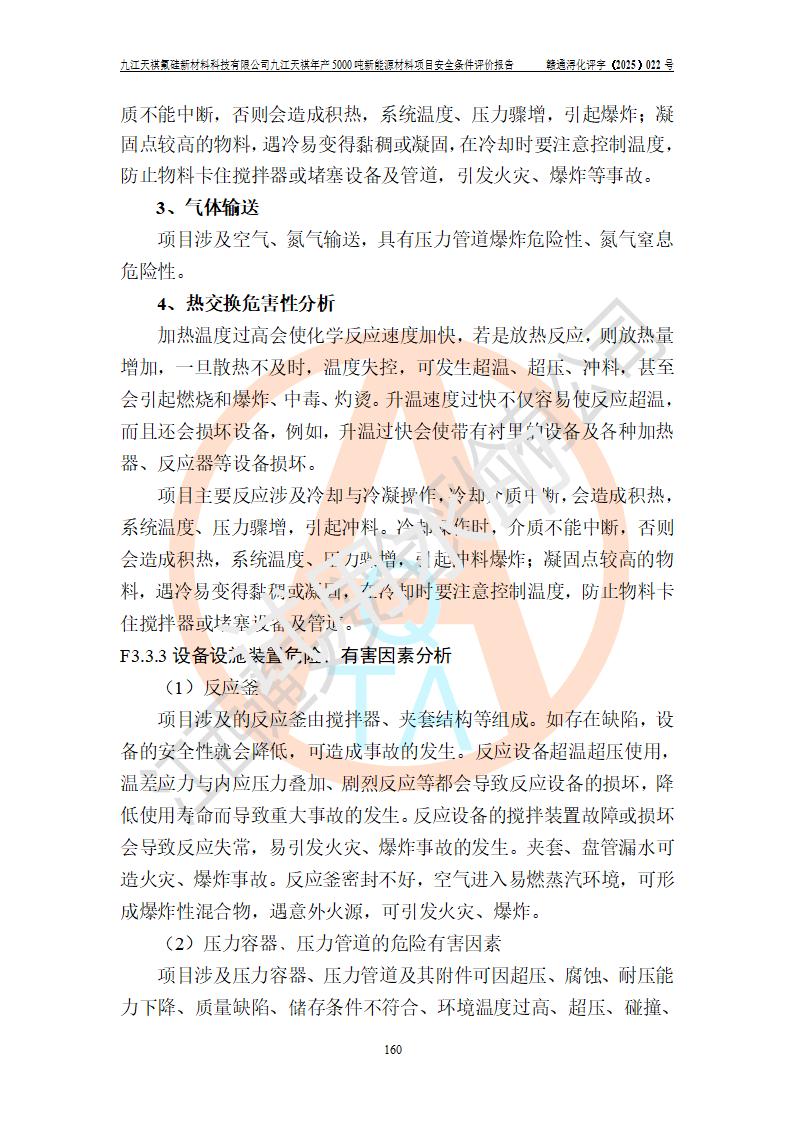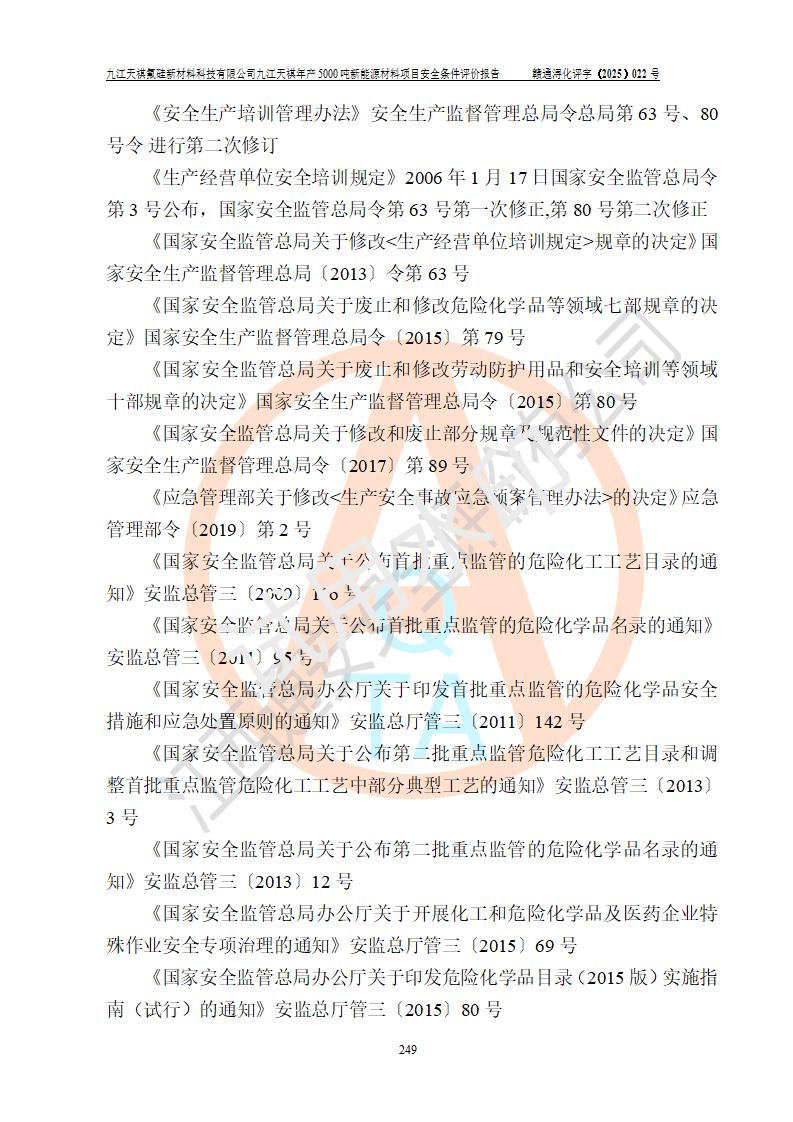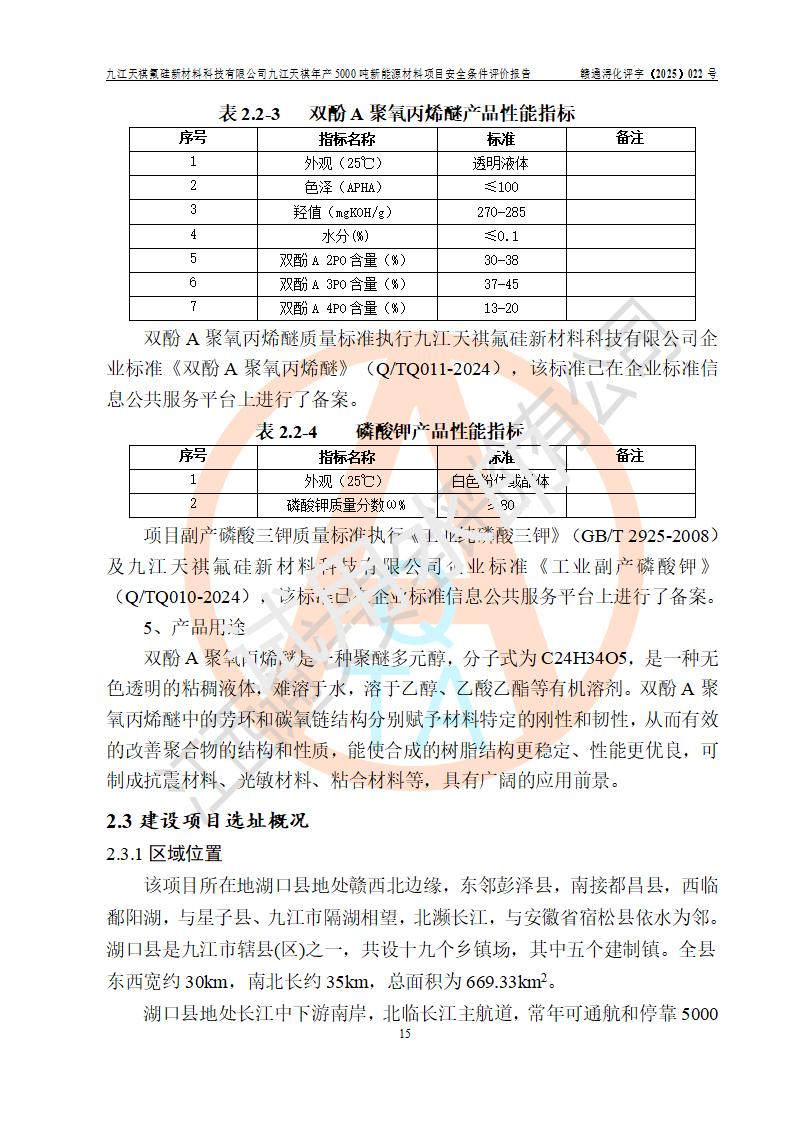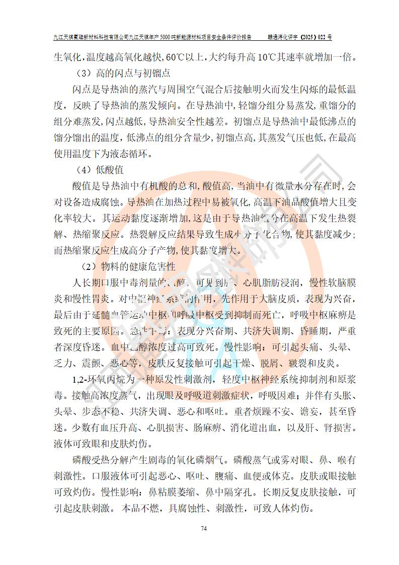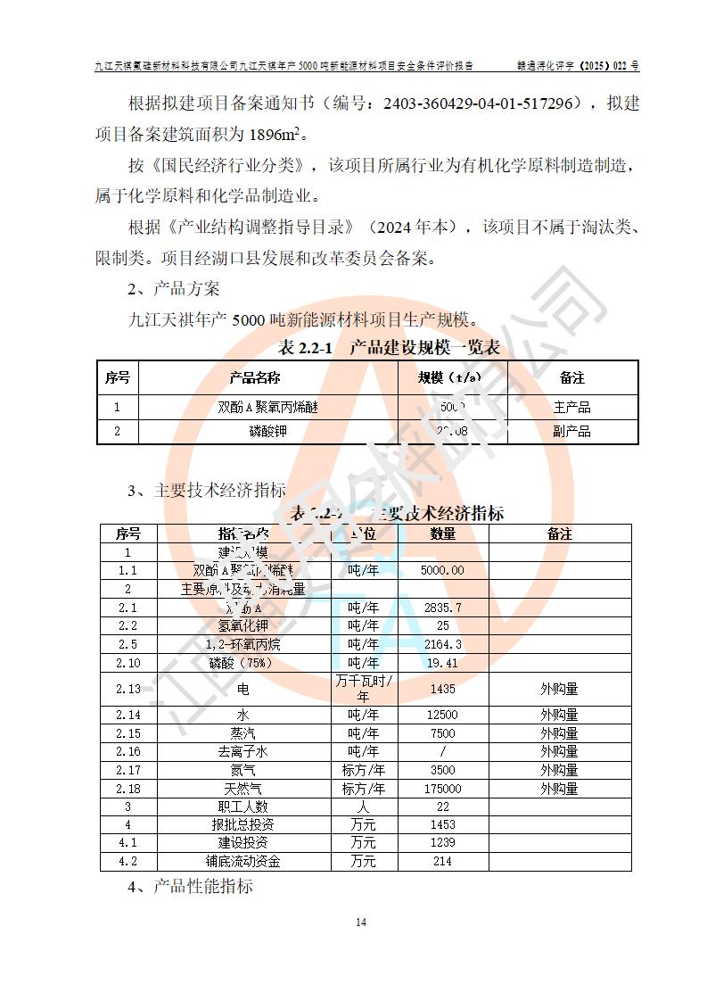 九江天祺氟硅新材料科技有限公司九江天祺年產5000 噸新能源材料項目安全條件評價報告