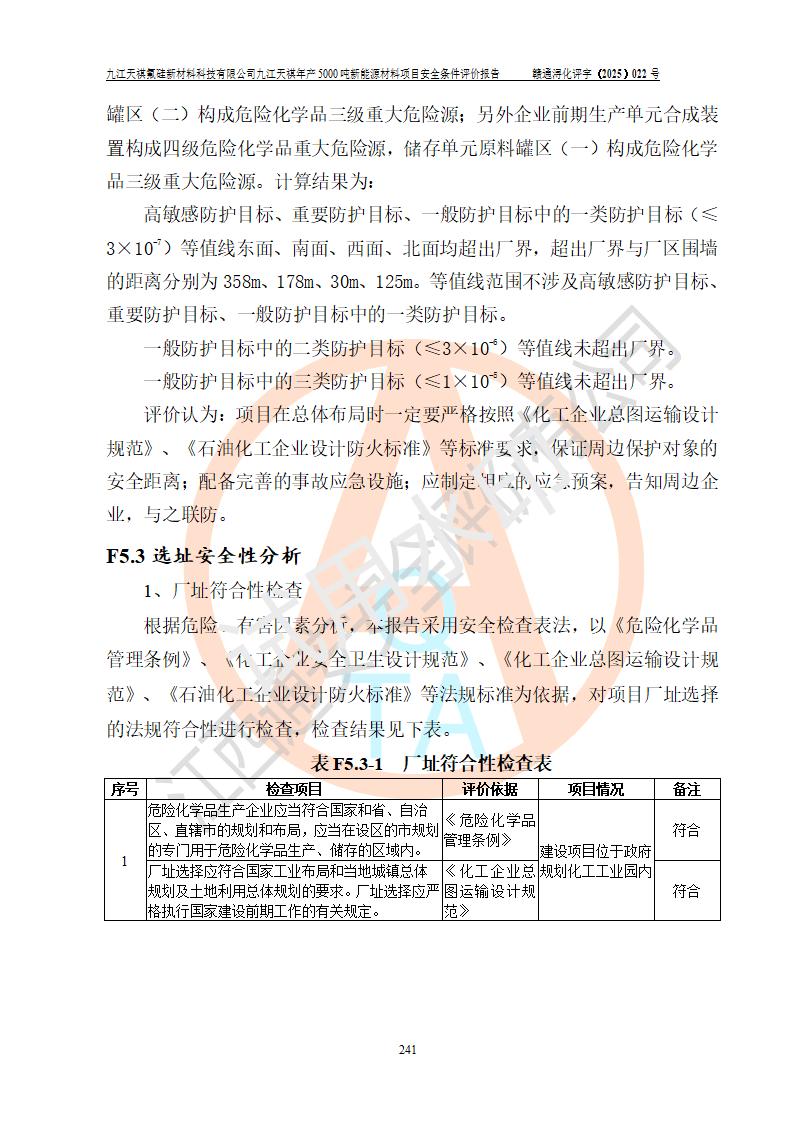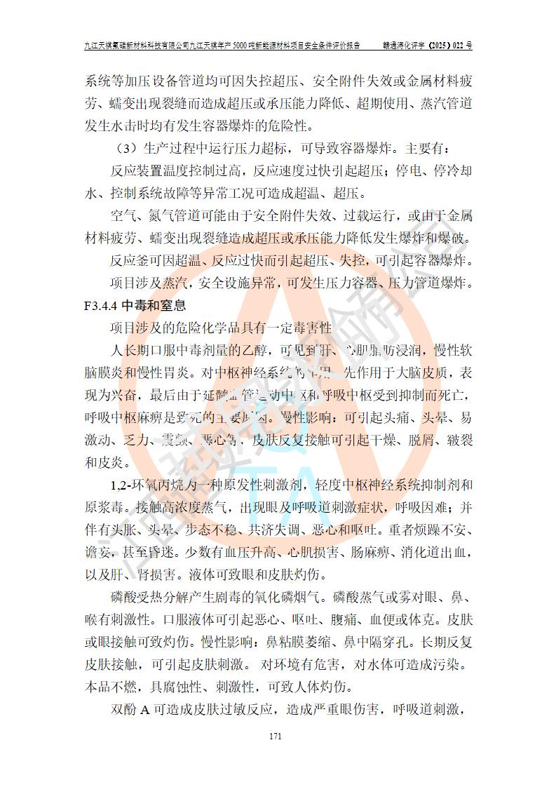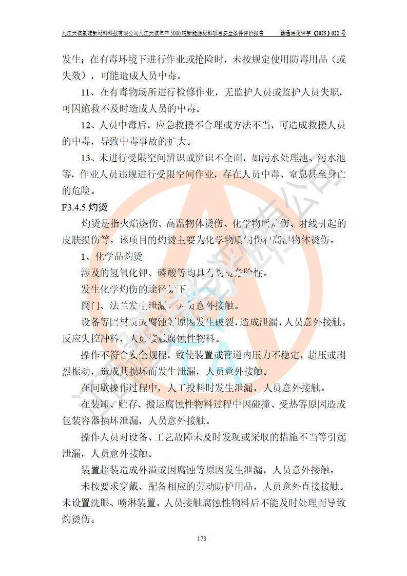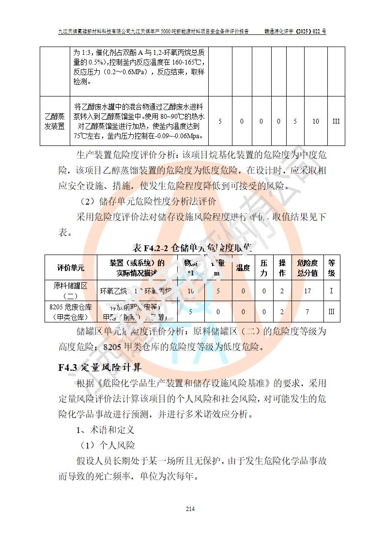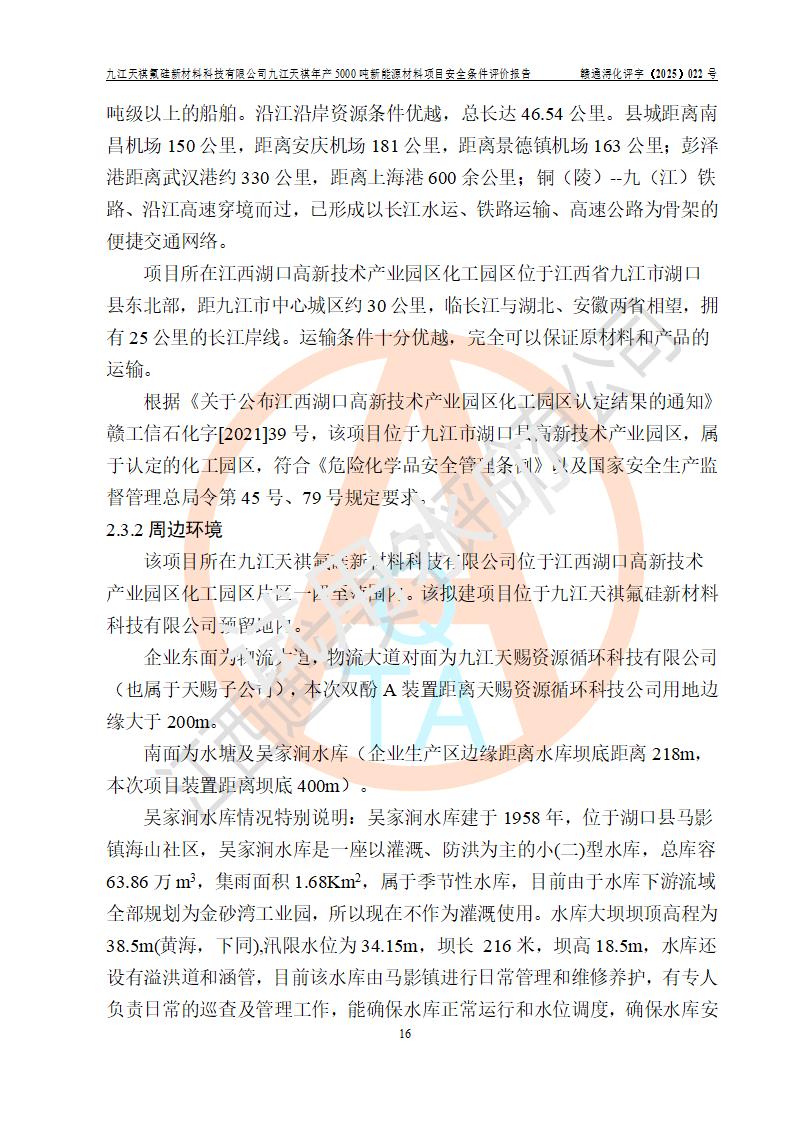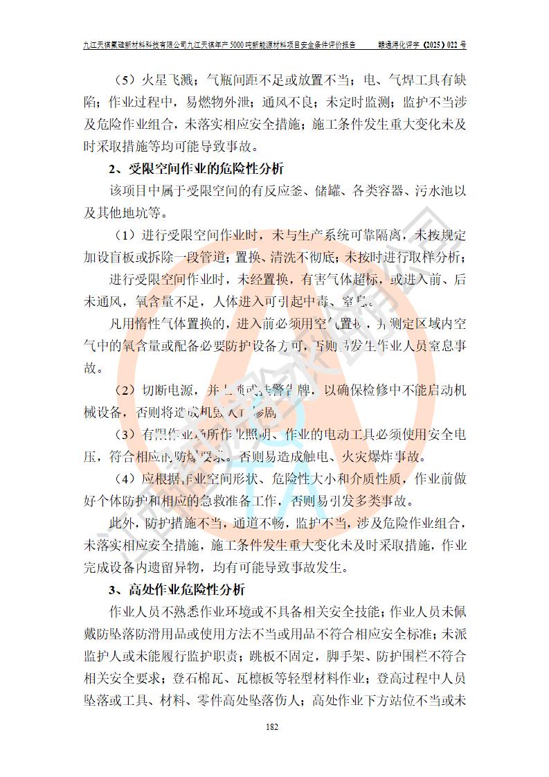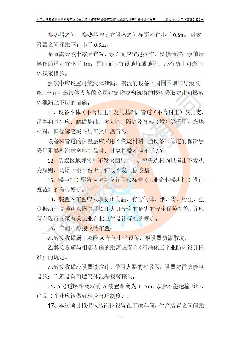九江天祺氟硅新材料科技有限公司九江天祺年產5000 噸新能源材料項目安全條件評價報告