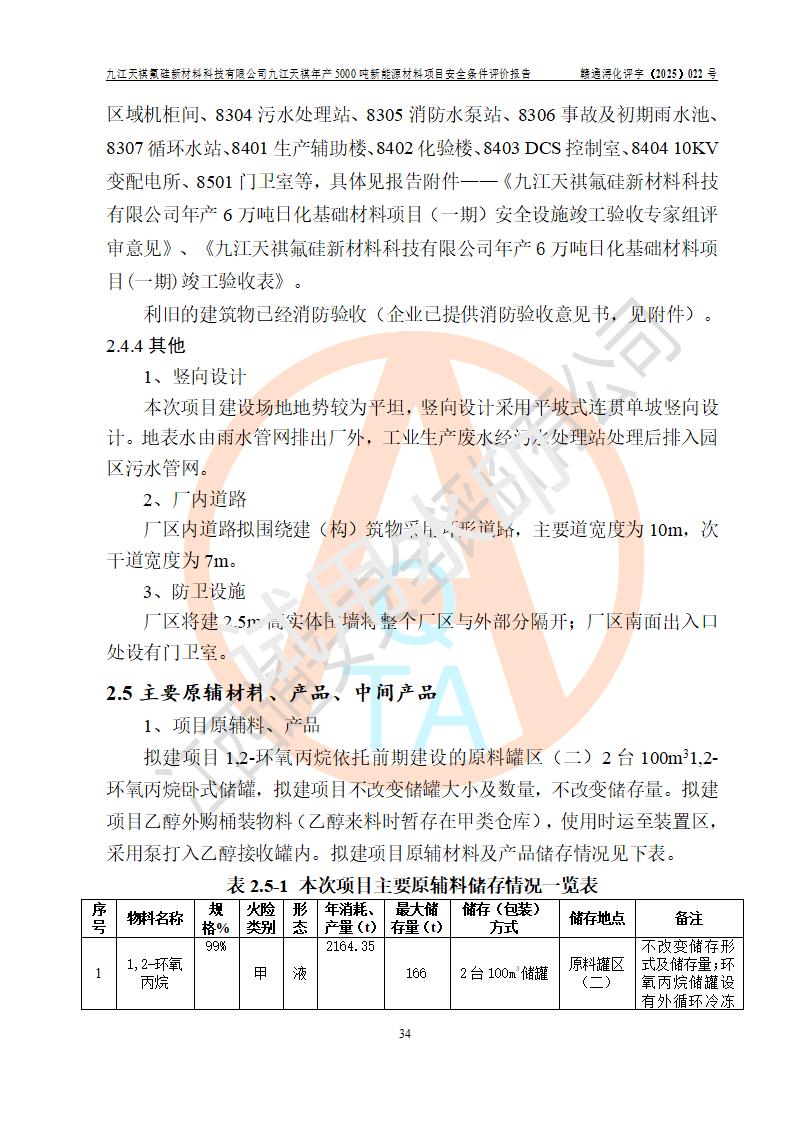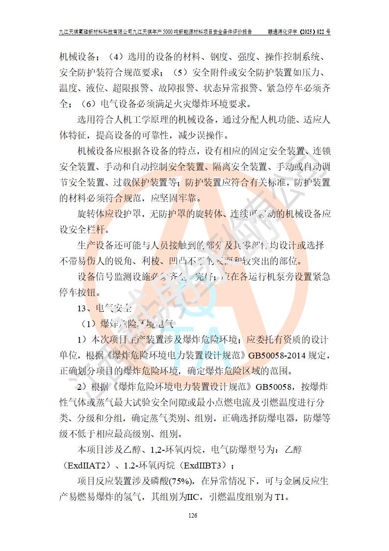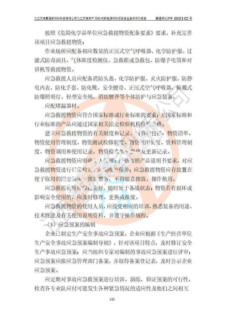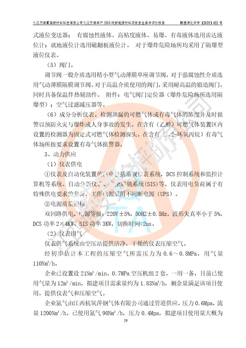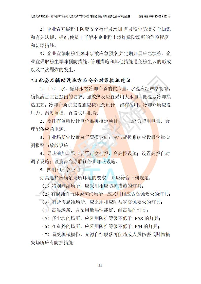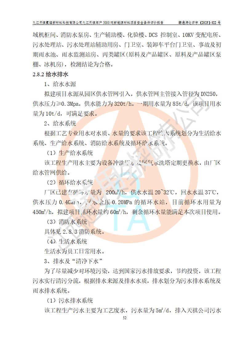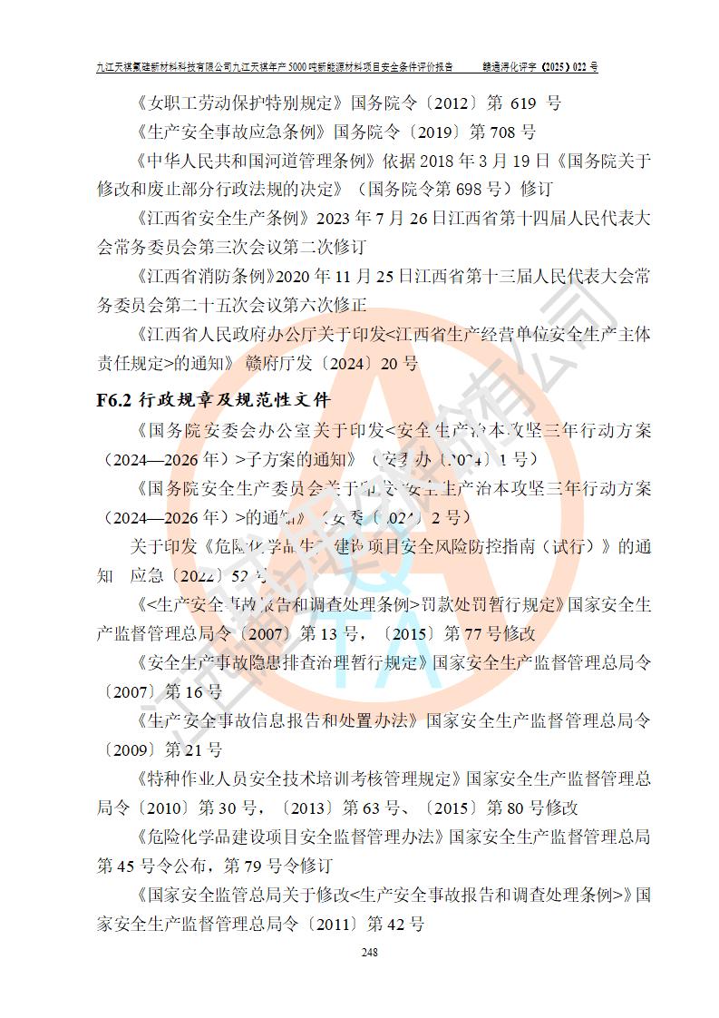 九江天祺氟硅新材料科技有限公司九江天祺年產5000 噸新能源材料項目安全條件評價報告