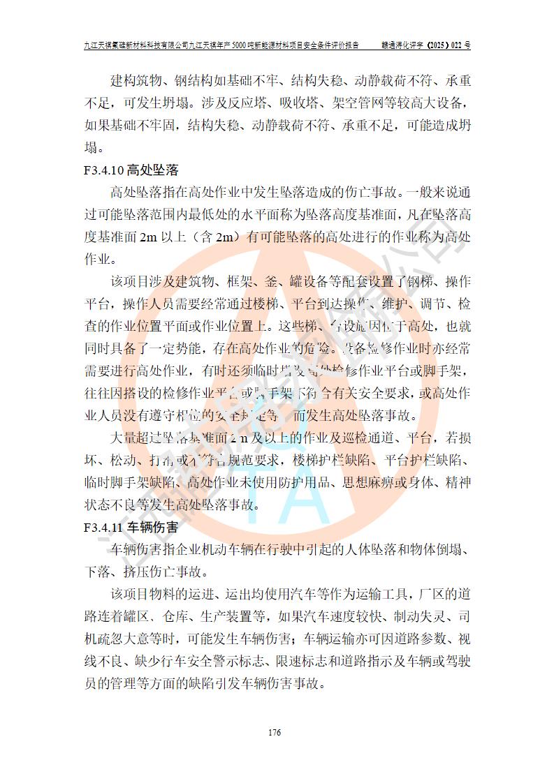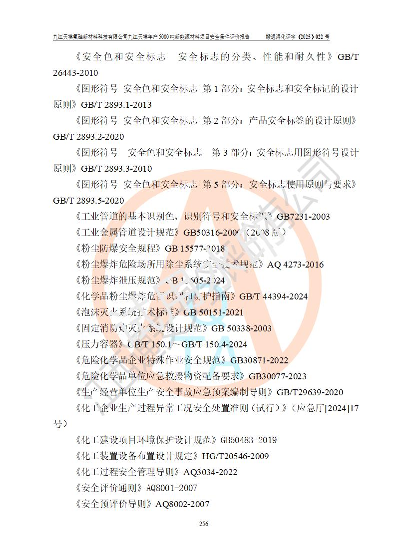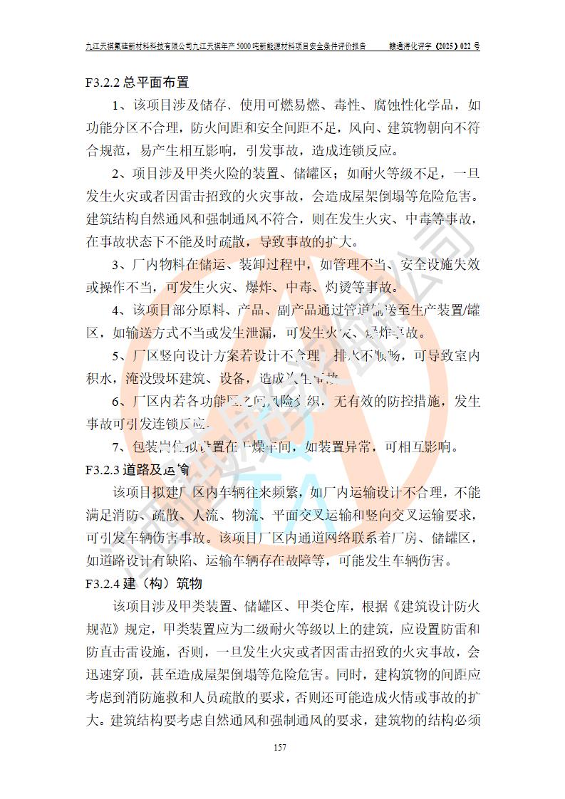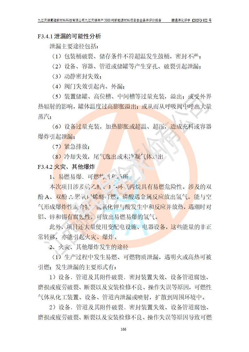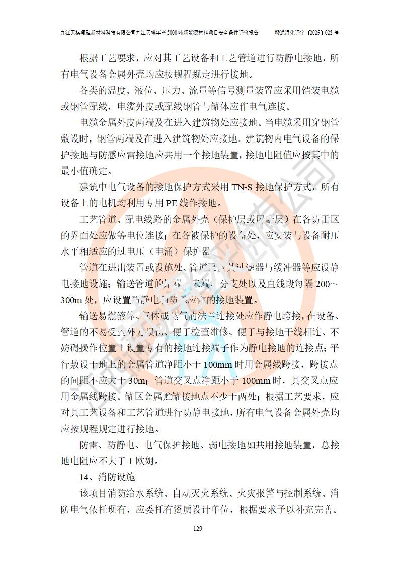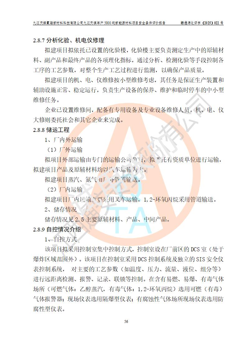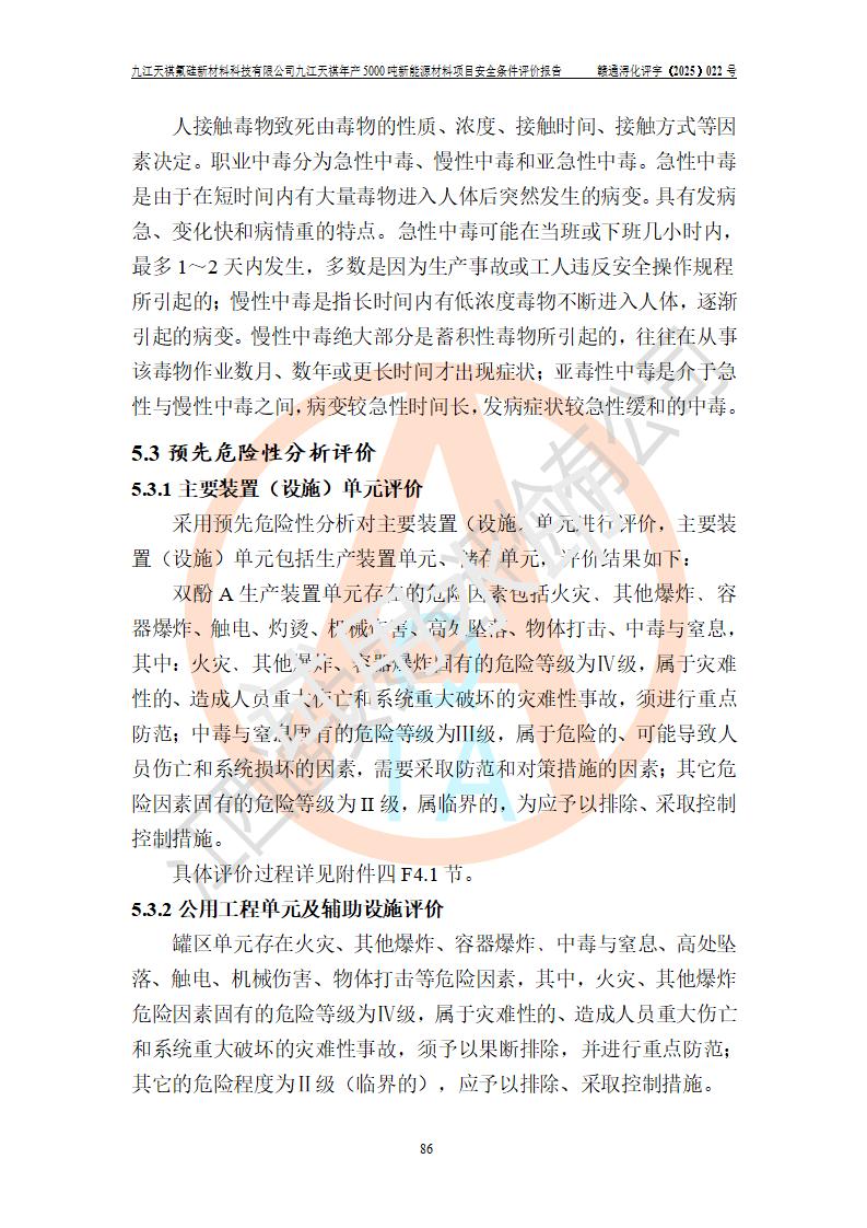 九江天祺氟硅新材料科技有限公司九江天祺年產5000 噸新能源材料項目安全條件評價報告