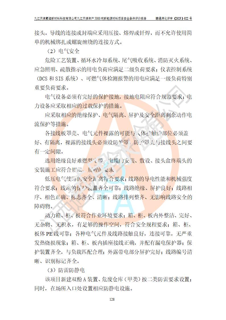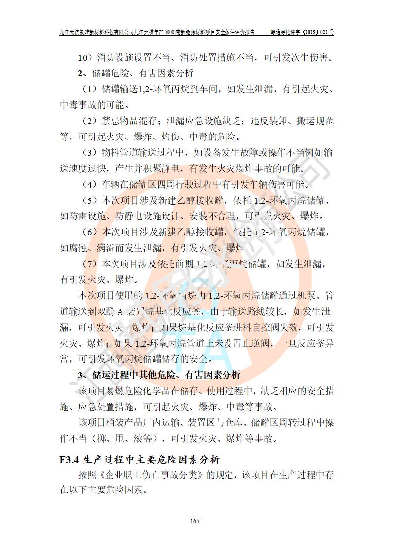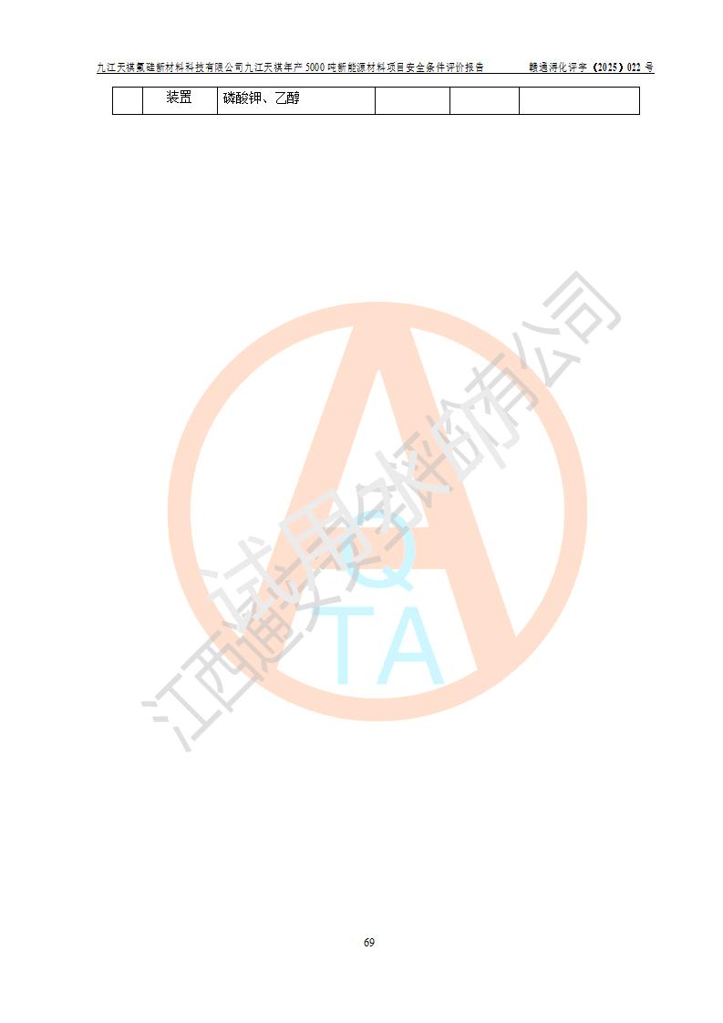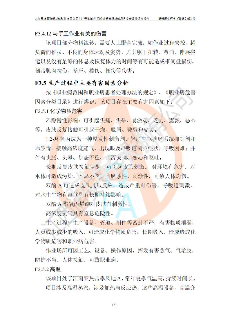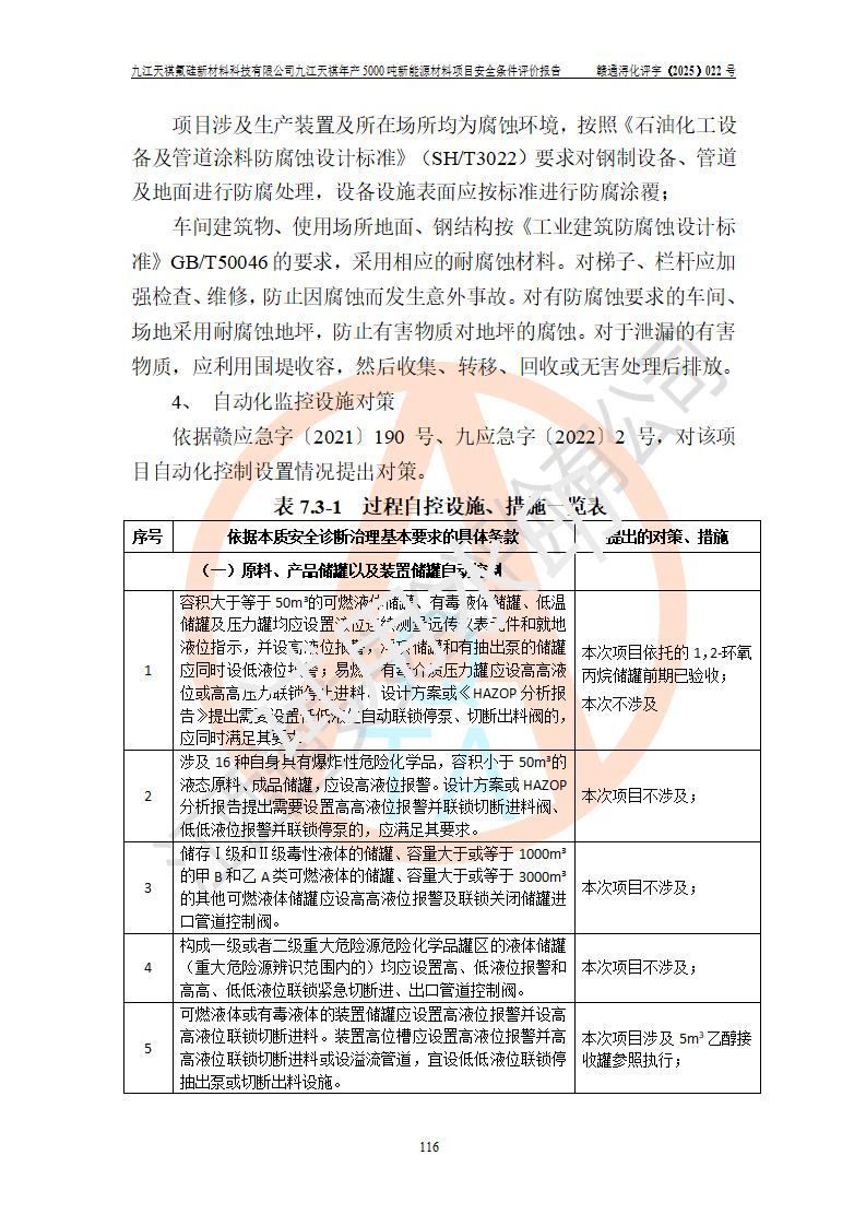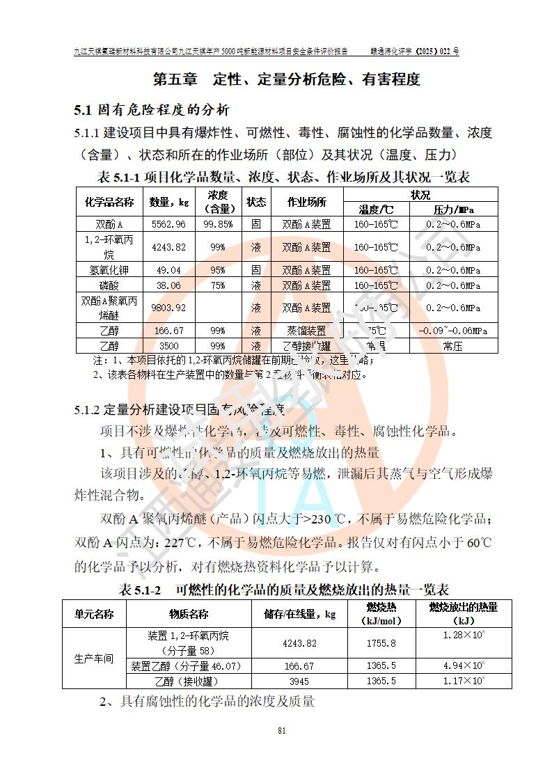 九江天祺氟硅新材料科技有限公司九江天祺年產5000 噸新能源材料項目安全條件評價報告