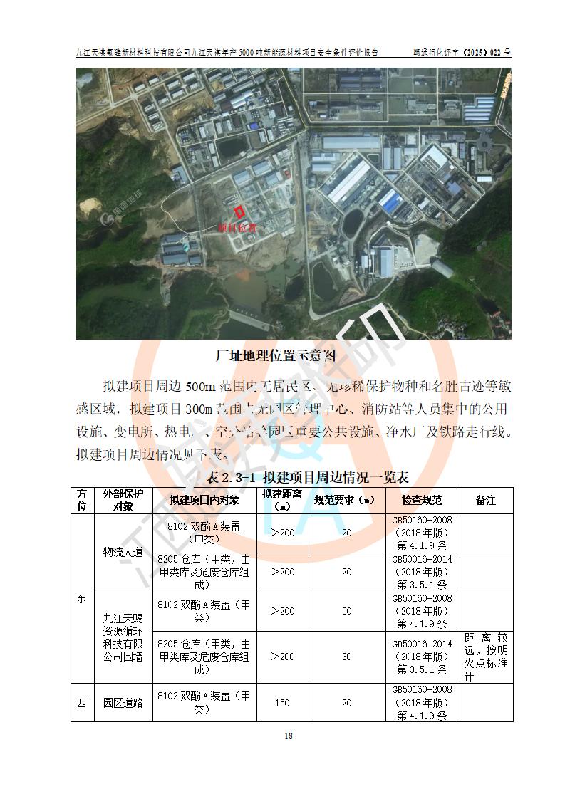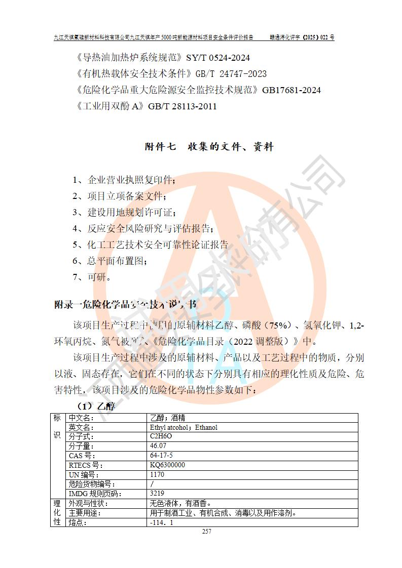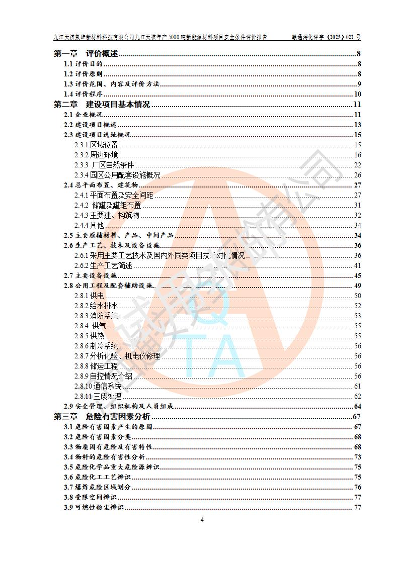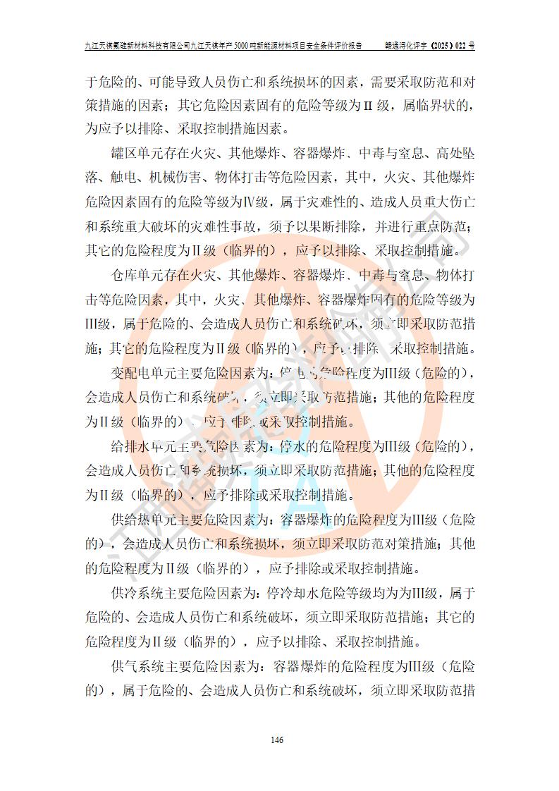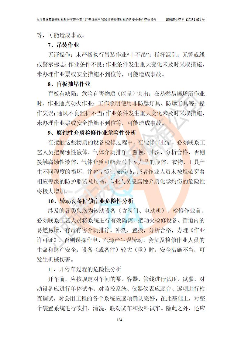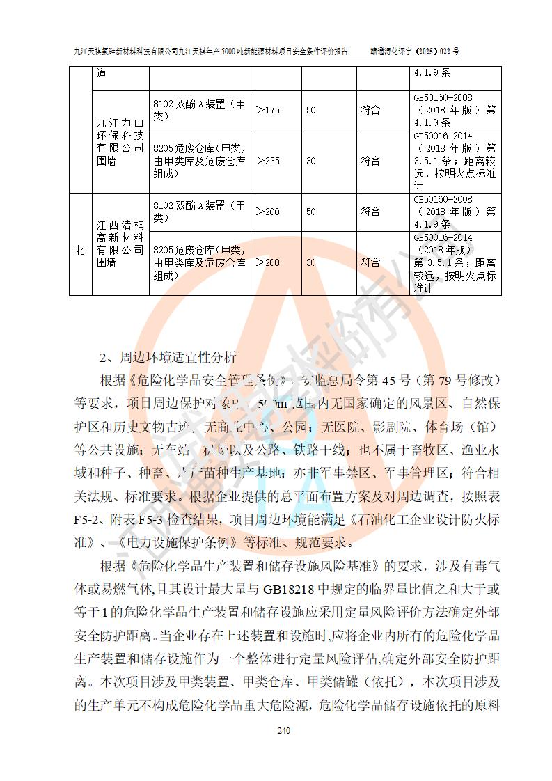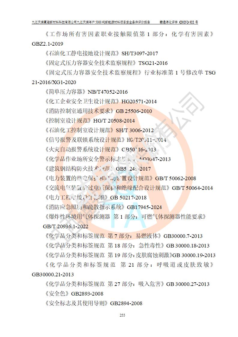 九江天祺氟硅新材料科技有限公司九江天祺年產5000 噸新能源材料項目安全條件評價報告