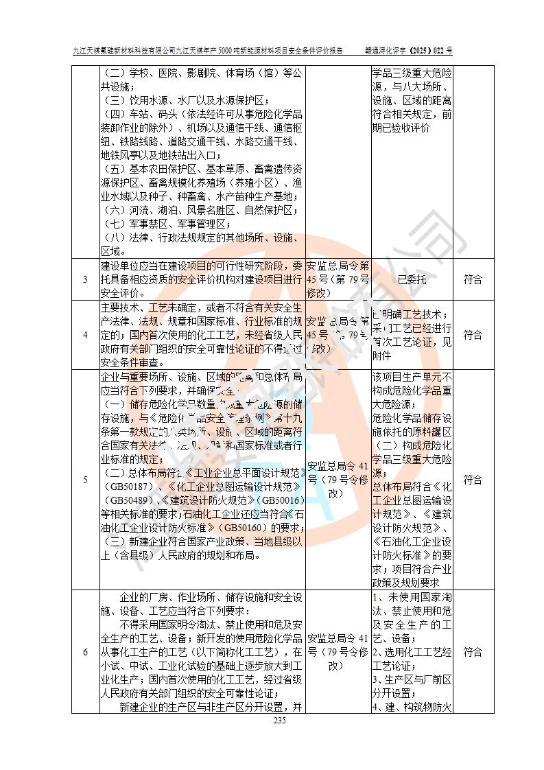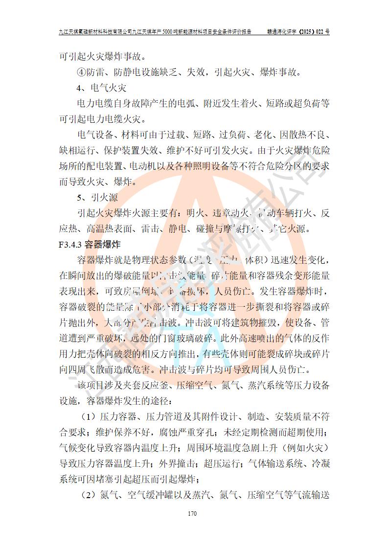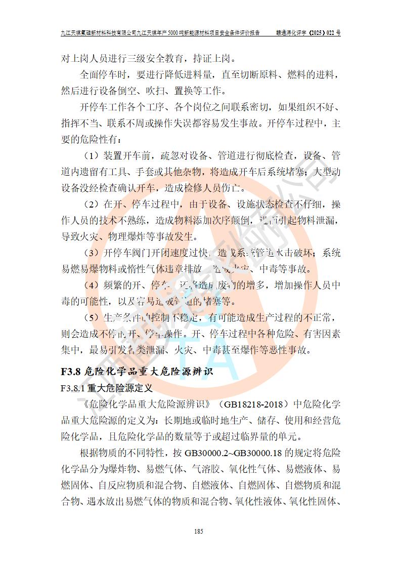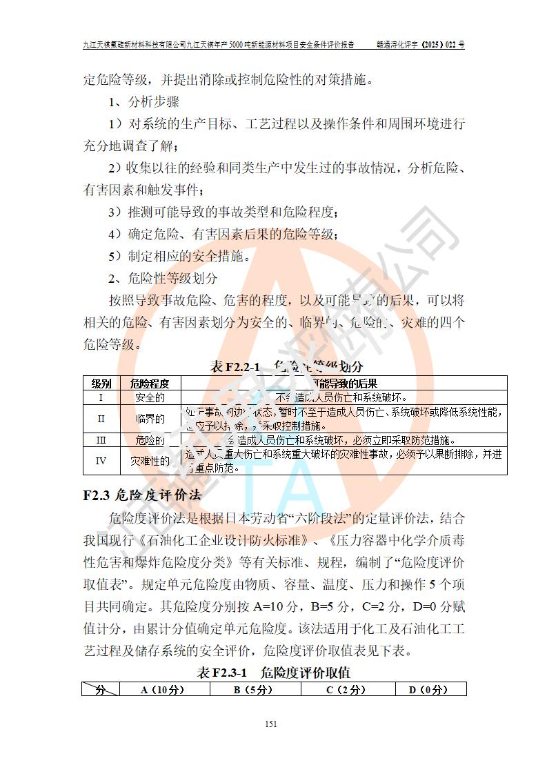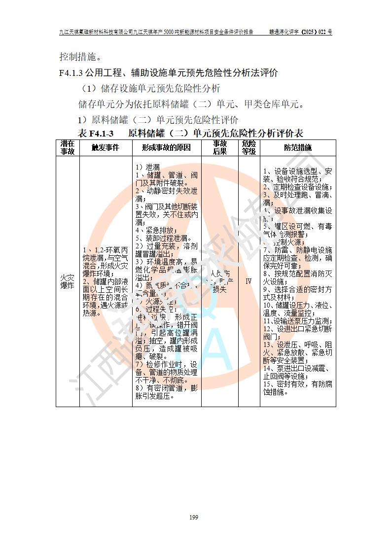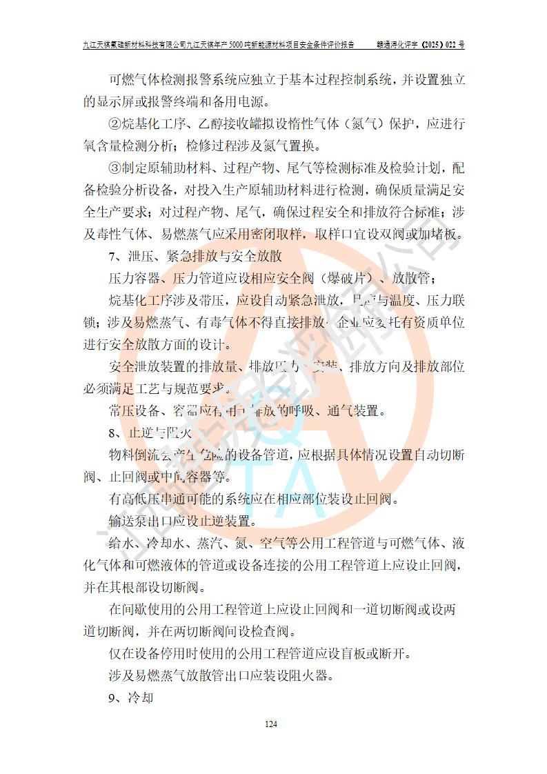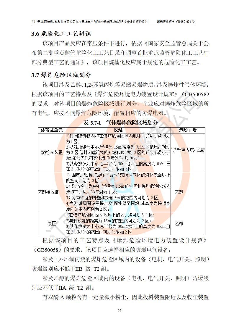 九江天祺氟硅新材料科技有限公司九江天祺年產5000 噸新能源材料項目安全條件評價報告