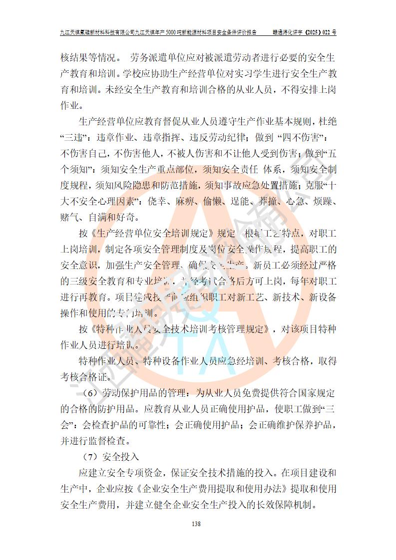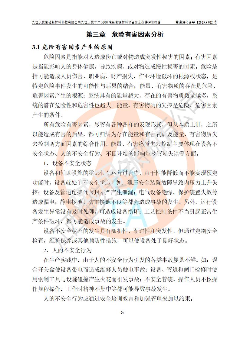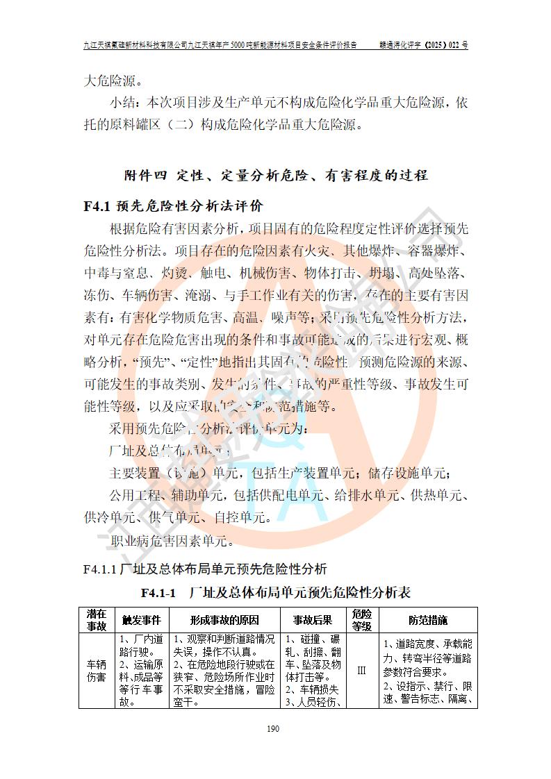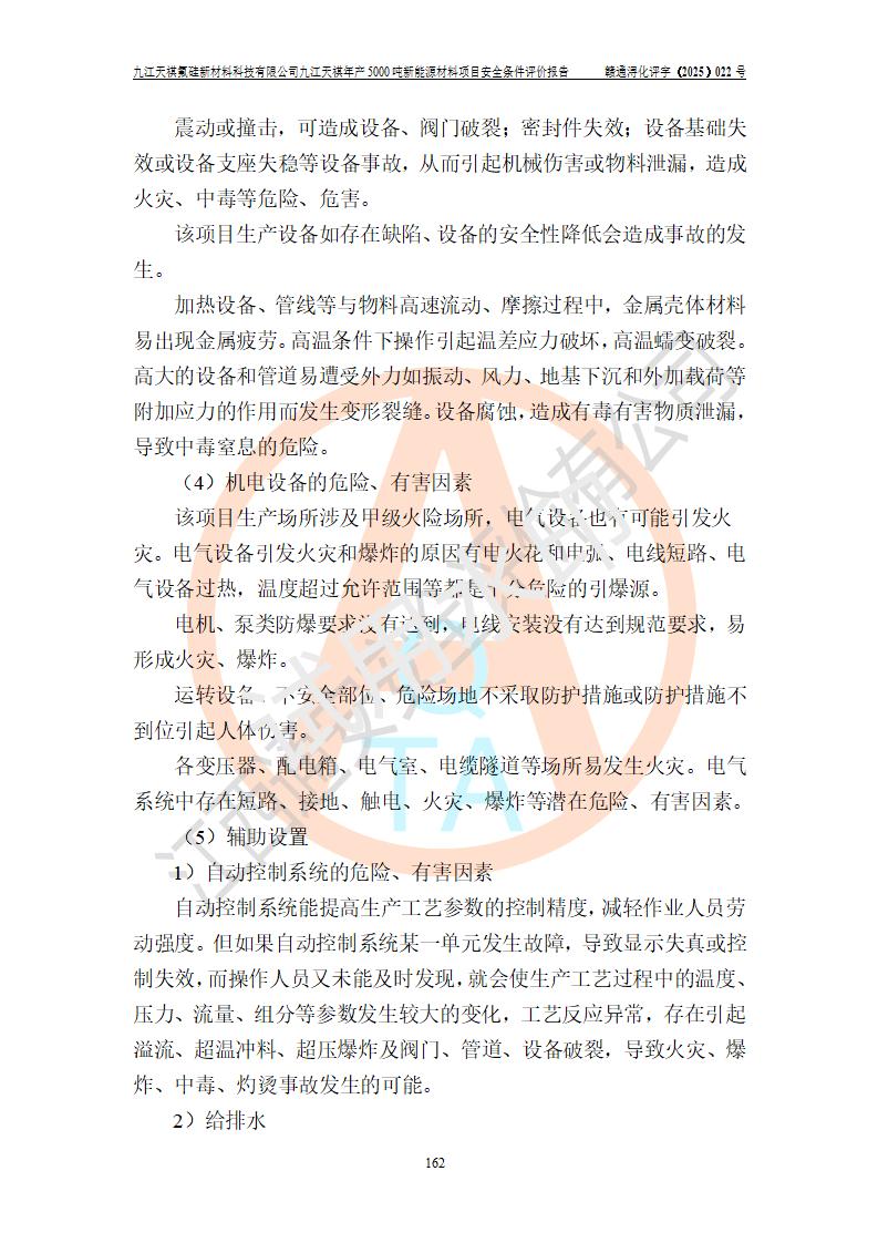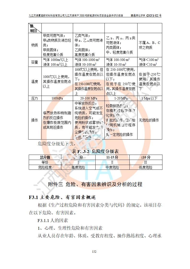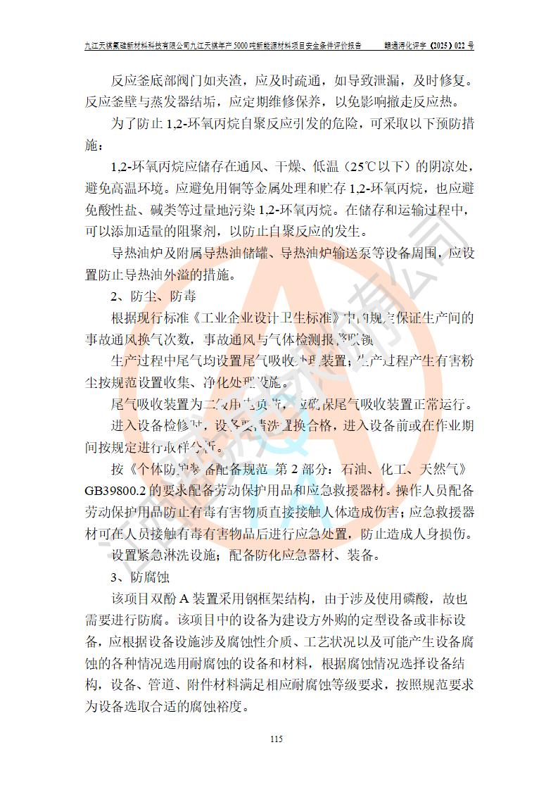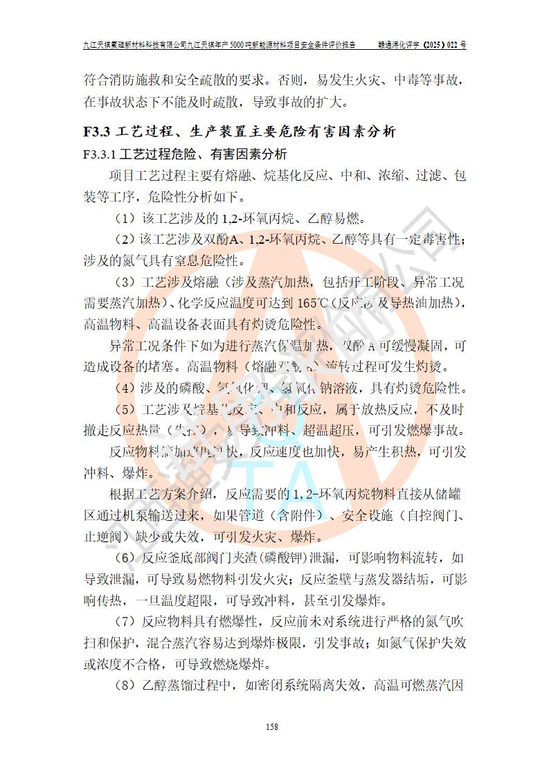 九江天祺氟硅新材料科技有限公司九江天祺年產5000 噸新能源材料項目安全條件評價報告