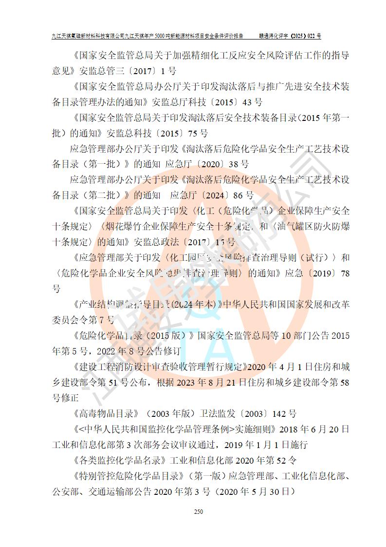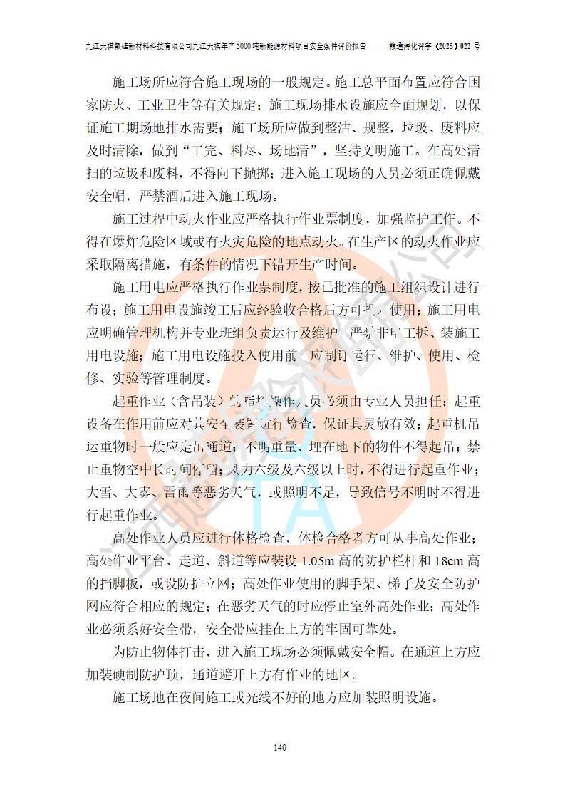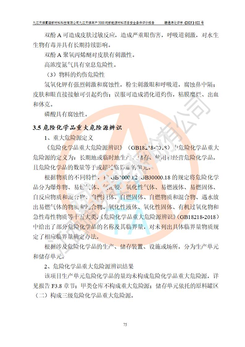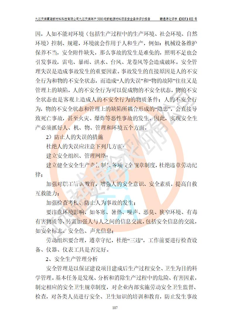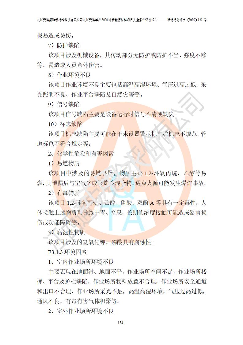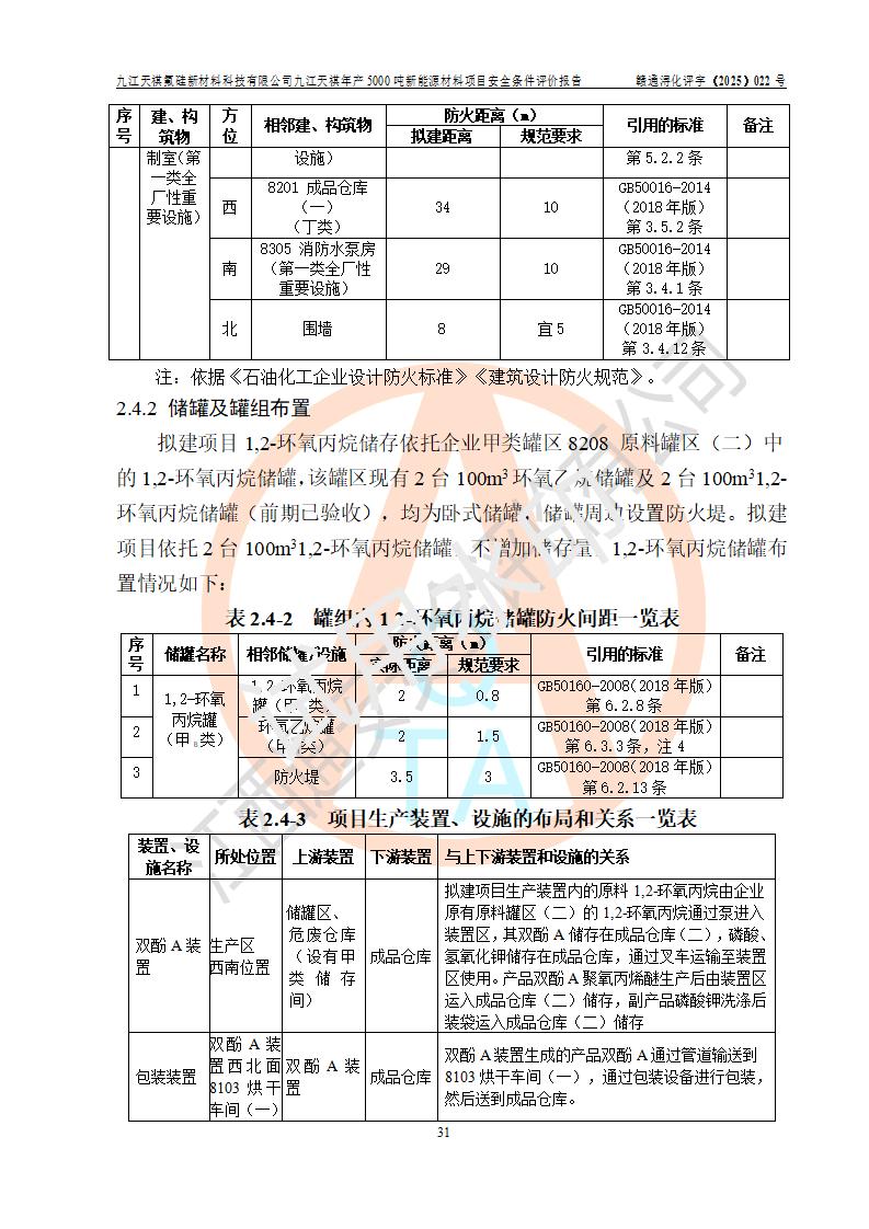 九江天祺氟硅新材料科技有限公司九江天祺年產5000 噸新能源材料項目安全條件評價報告