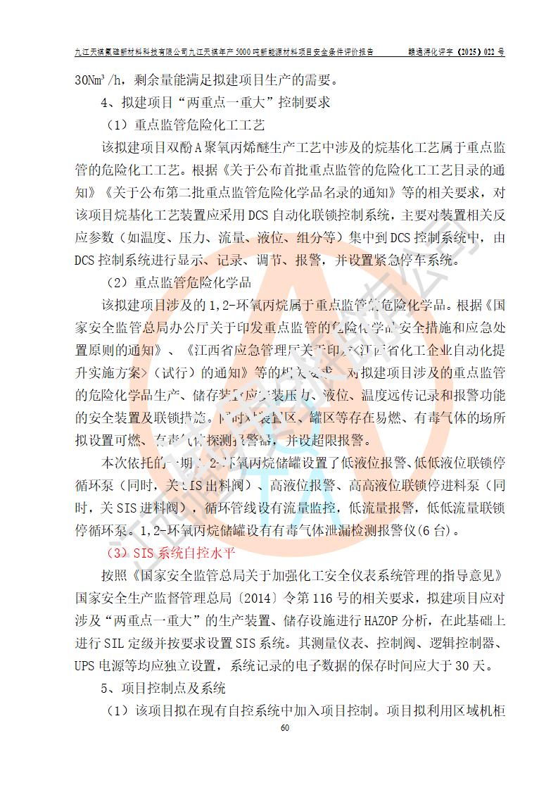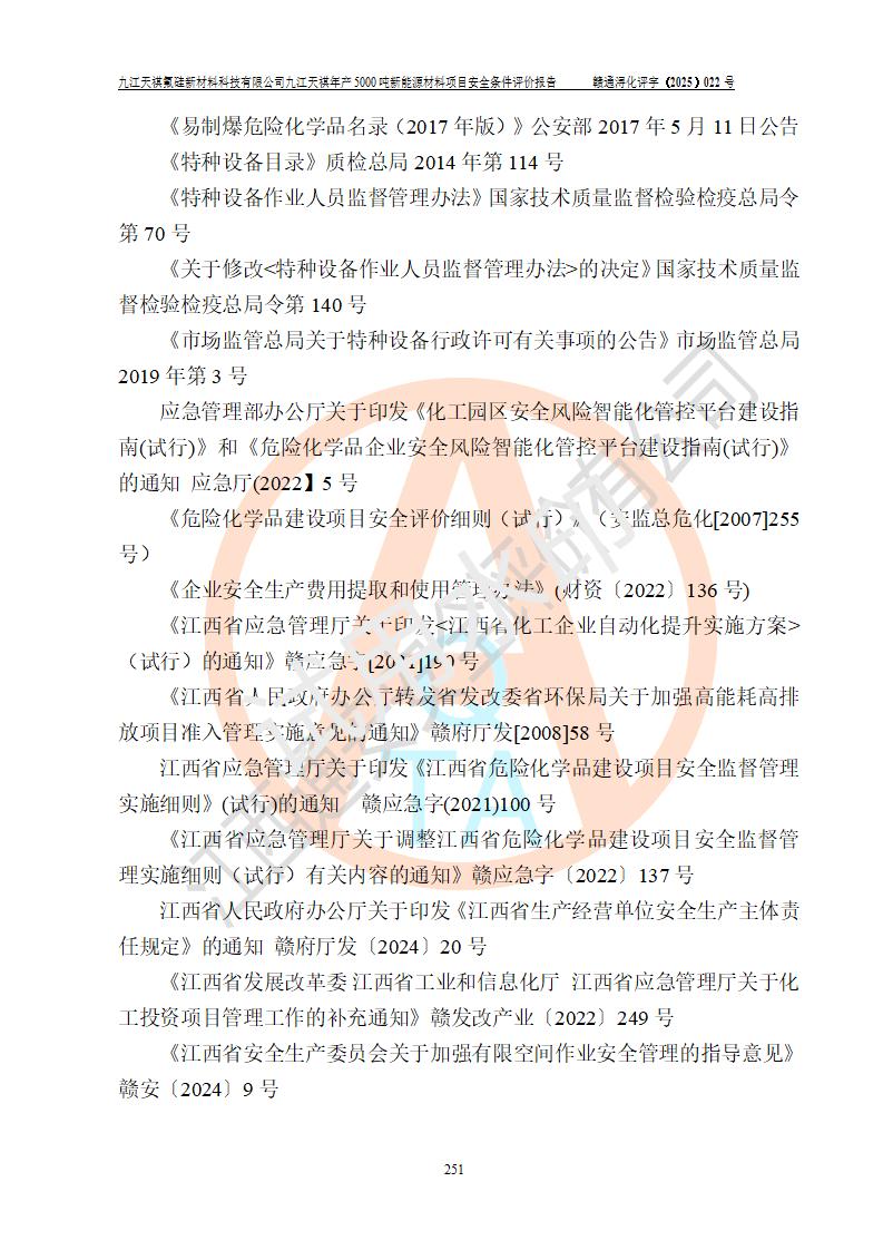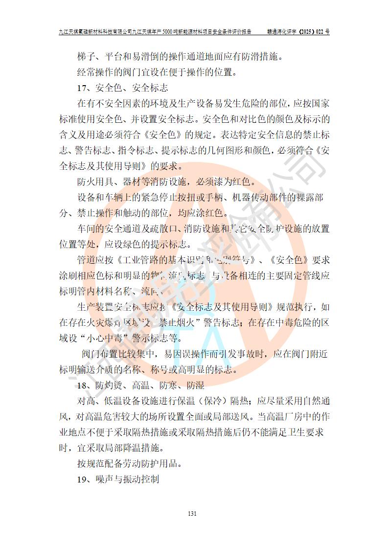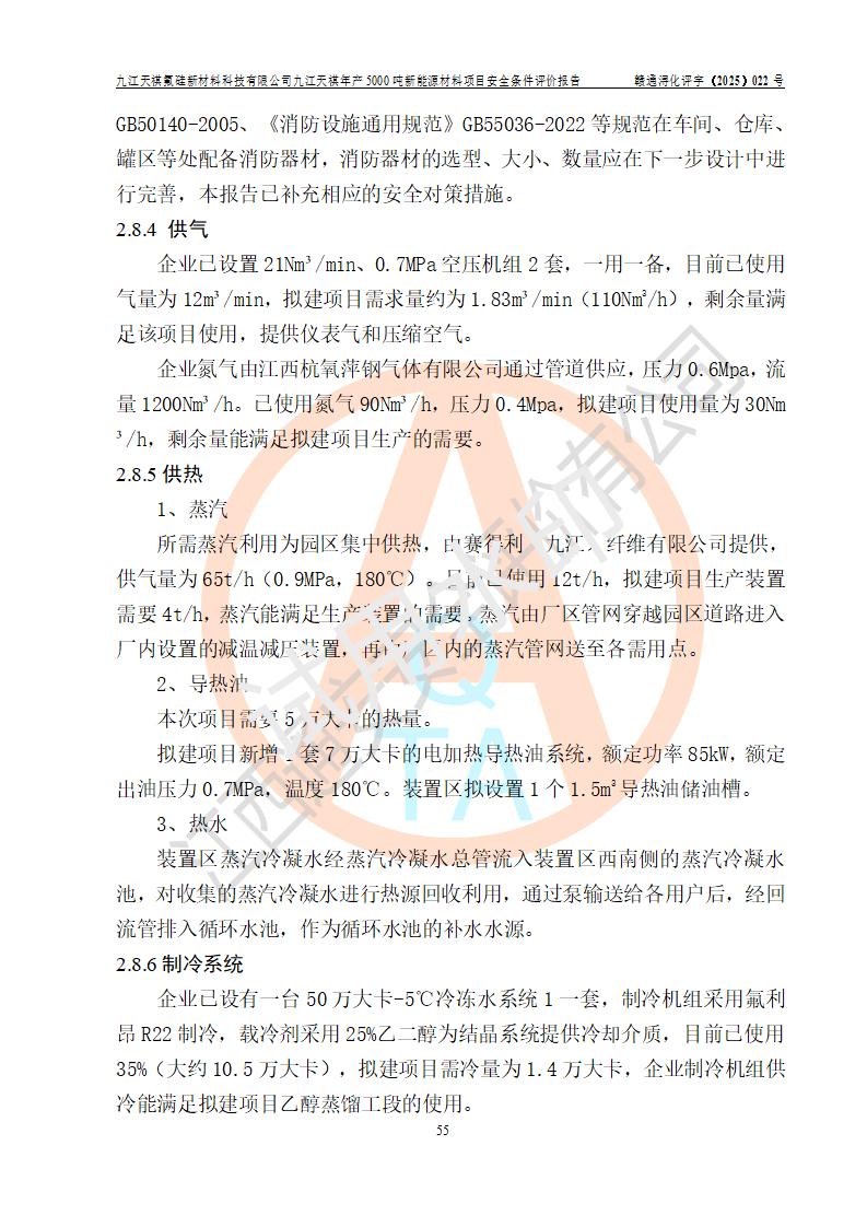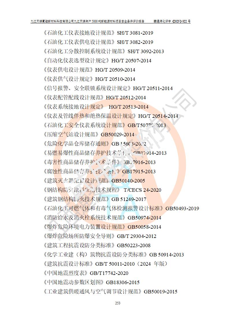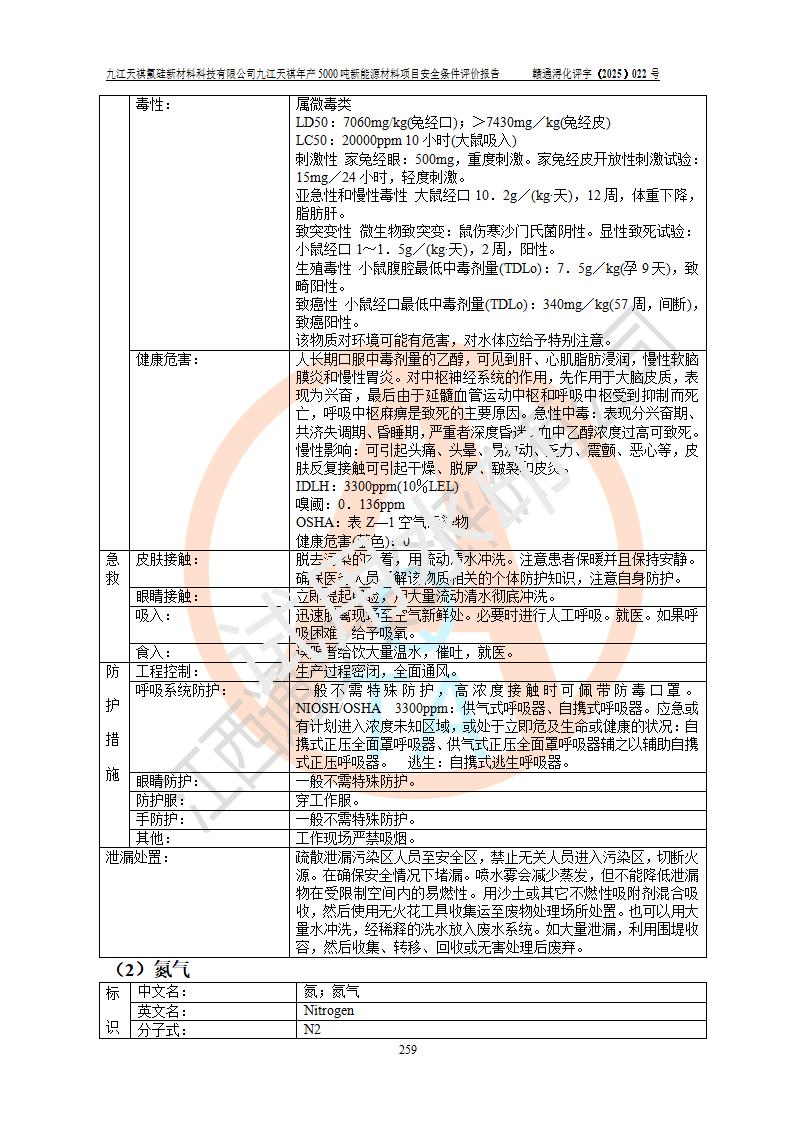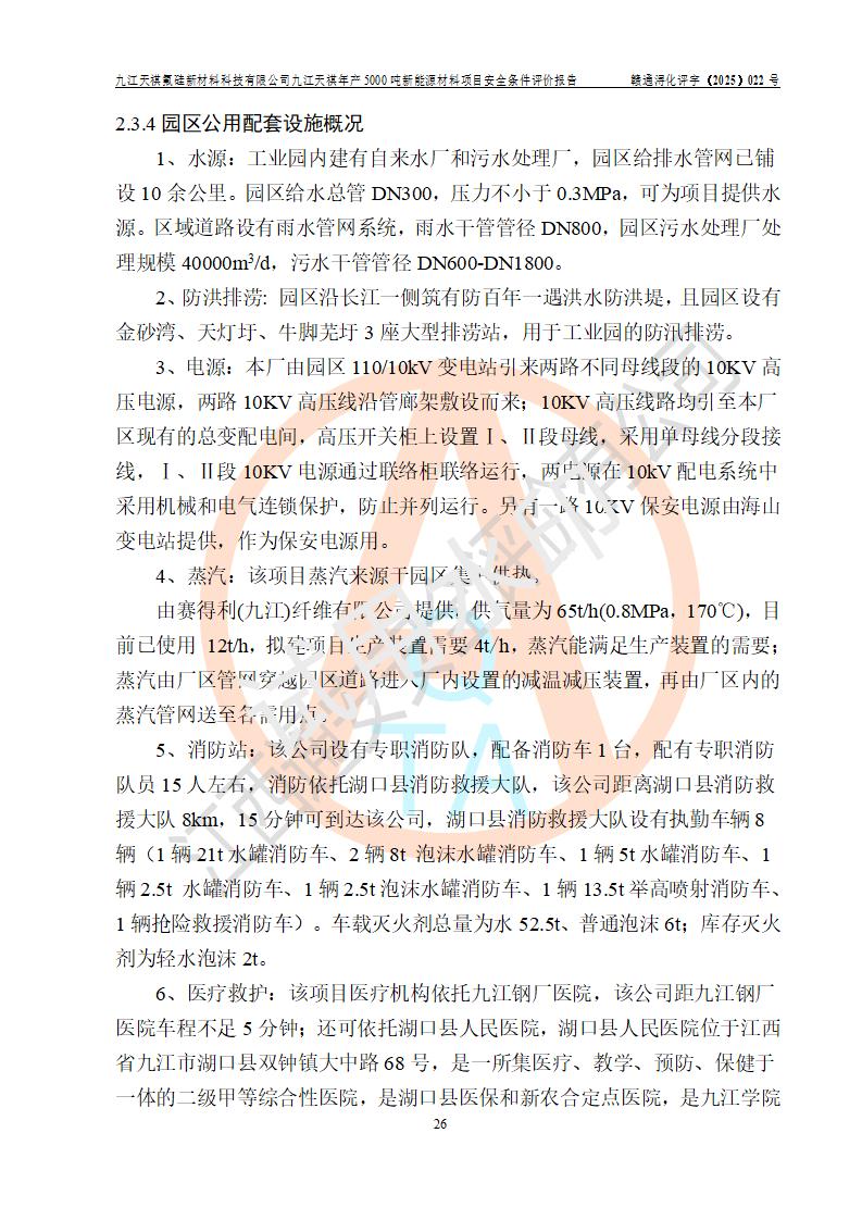 九江天祺氟硅新材料科技有限公司九江天祺年產5000 噸新能源材料項目安全條件評價報告