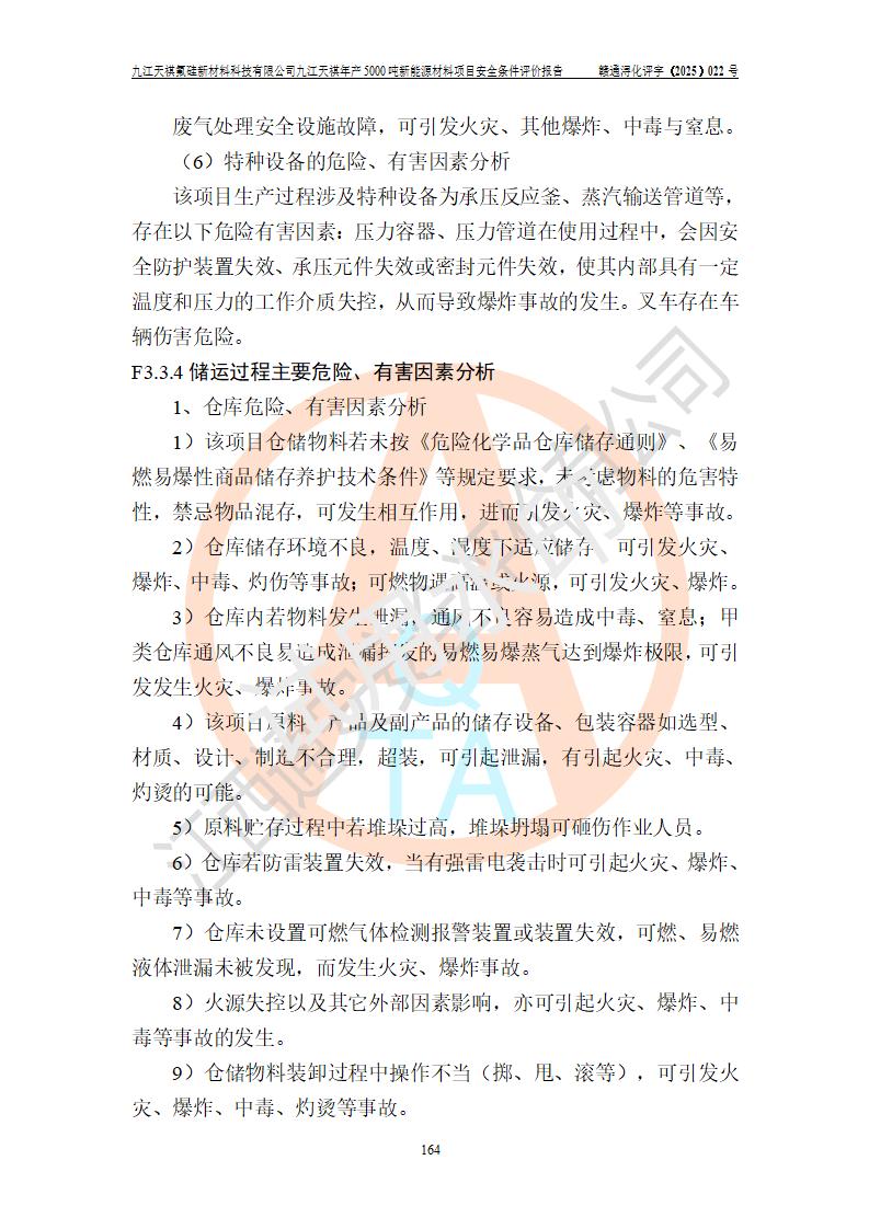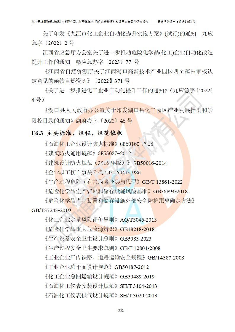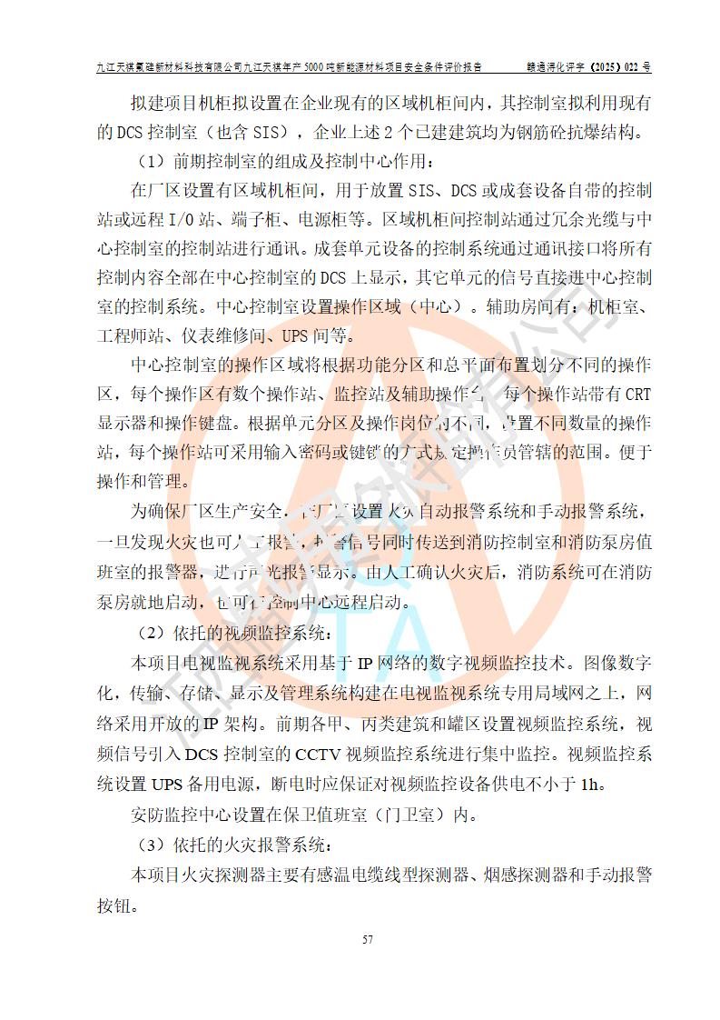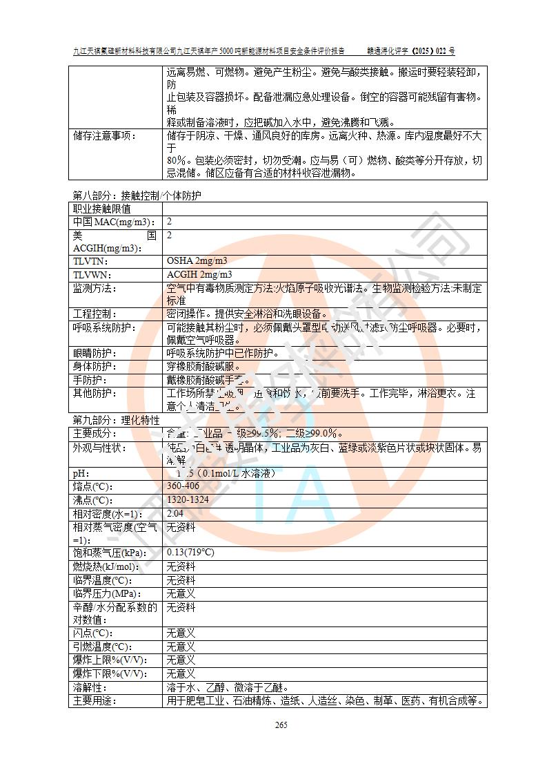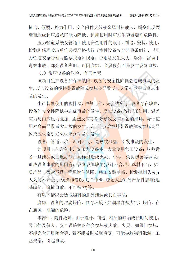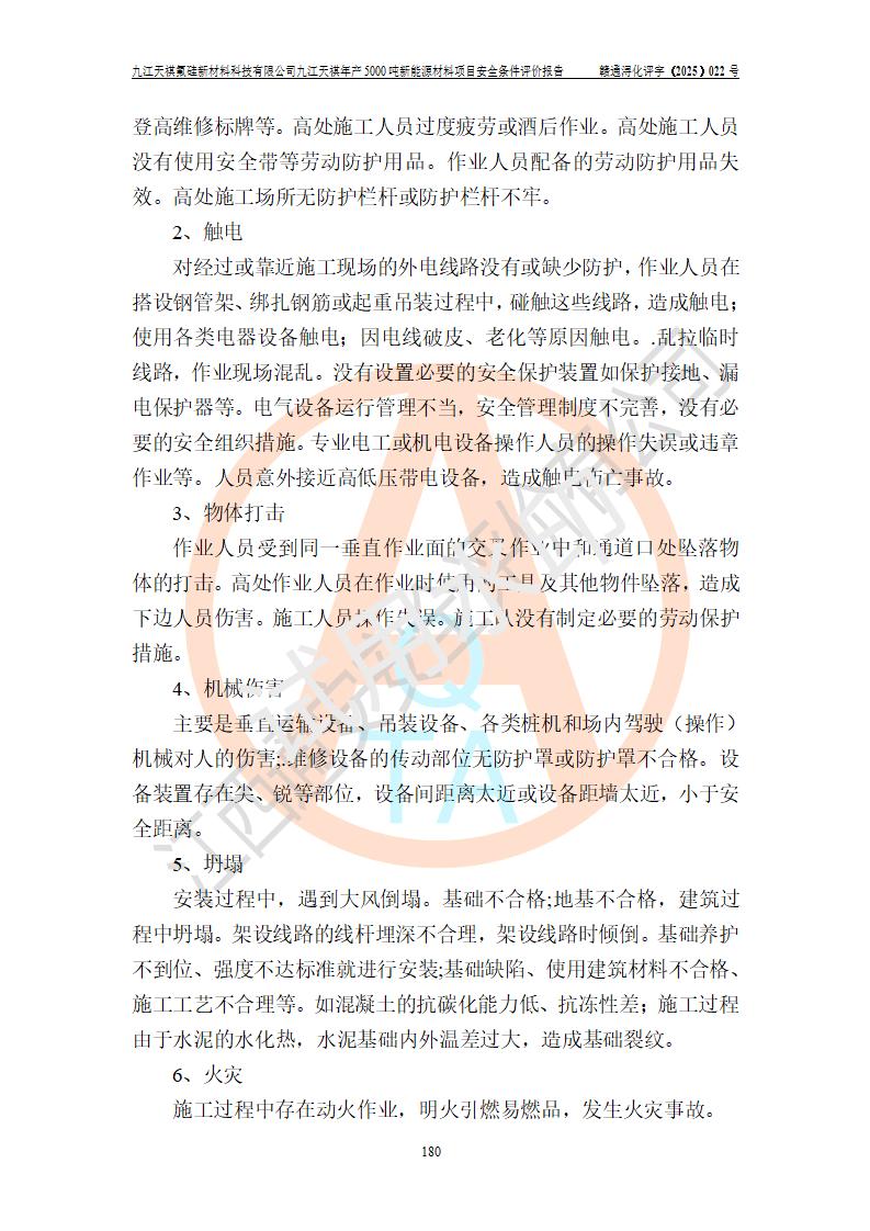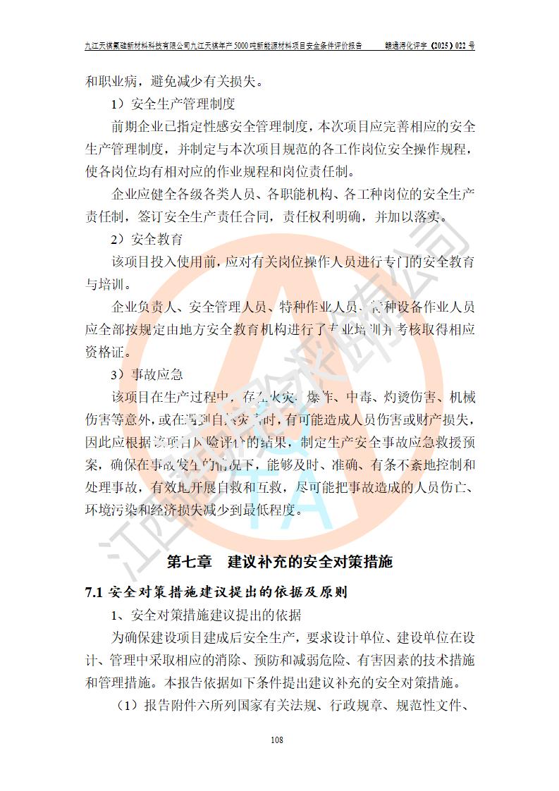 九江天祺氟硅新材料科技有限公司九江天祺年產5000 噸新能源材料項目安全條件評價報告