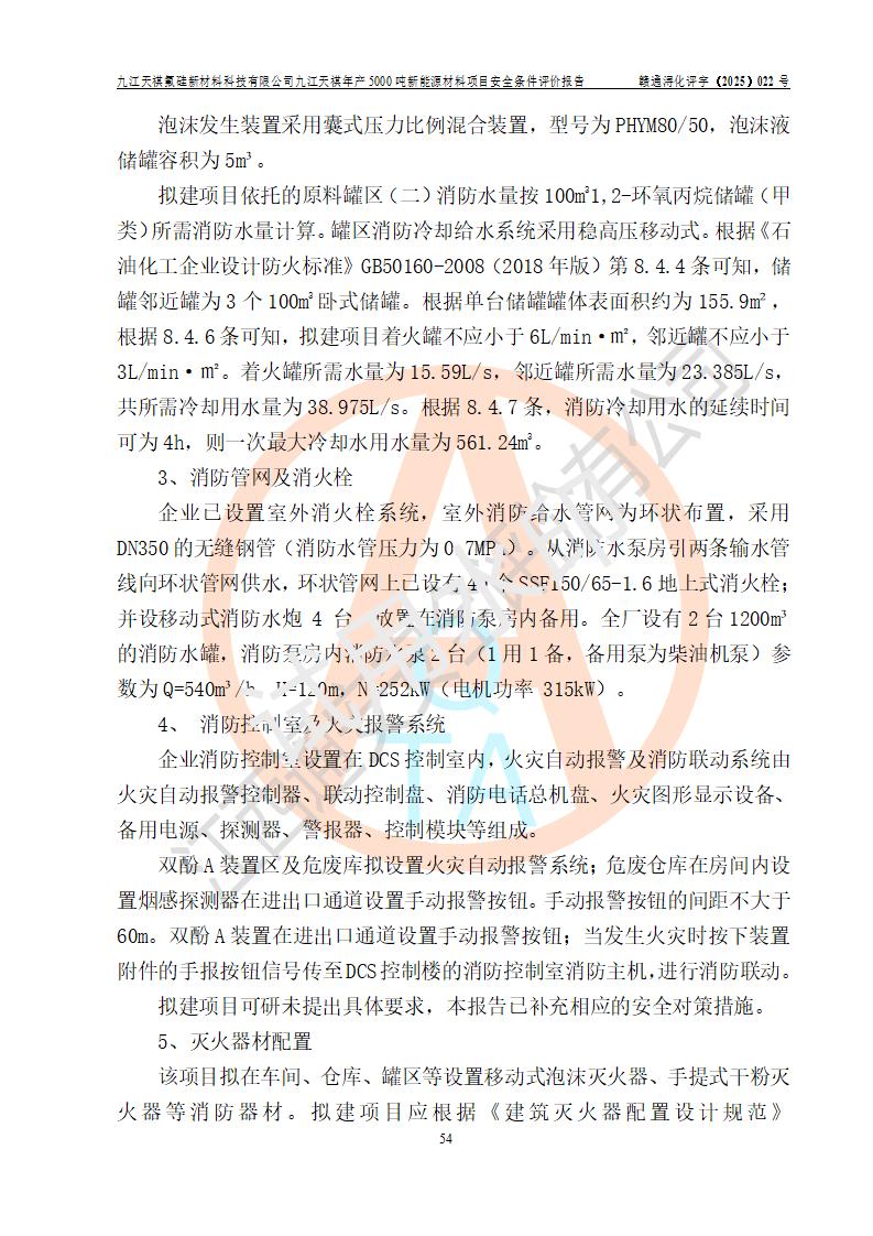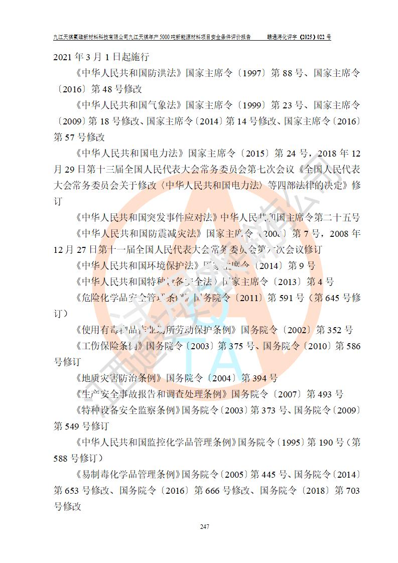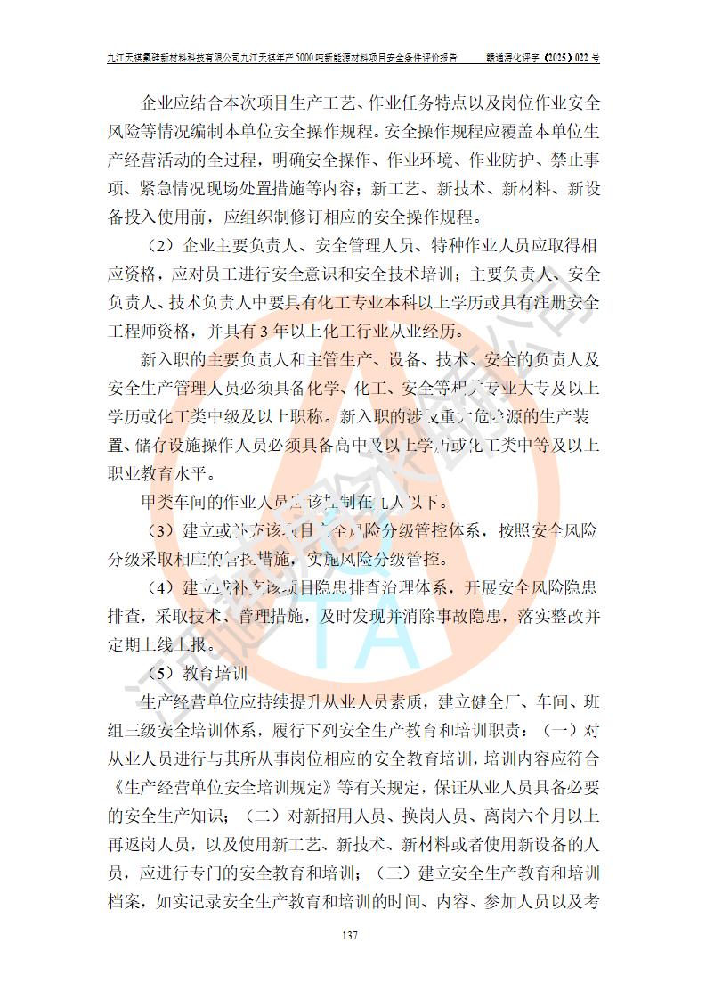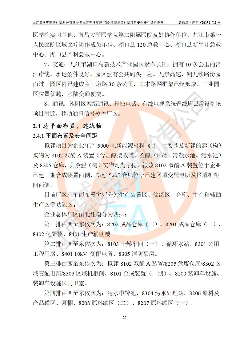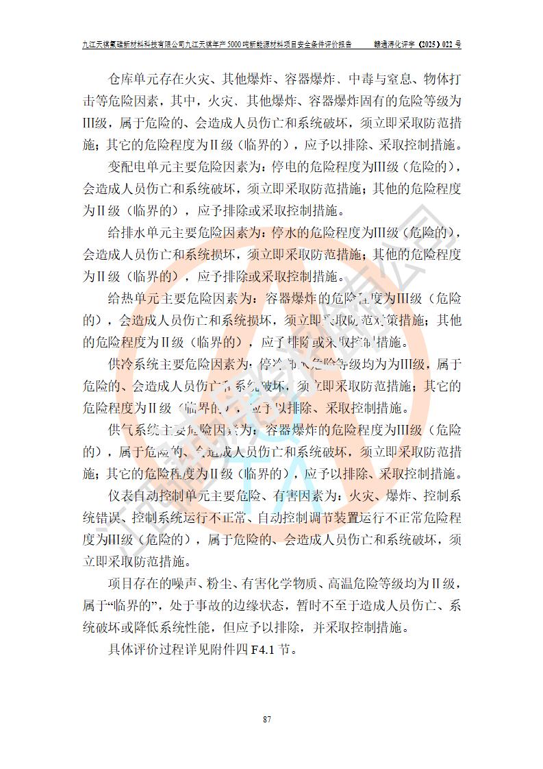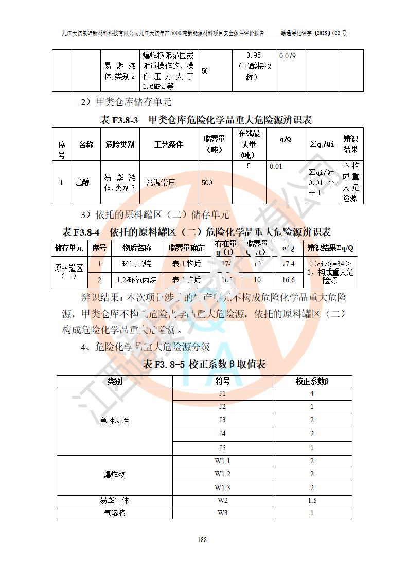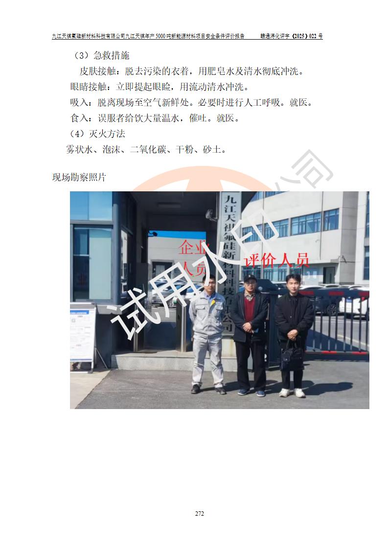 九江天祺氟硅新材料科技有限公司九江天祺年產5000 噸新能源材料項目安全條件評價報告