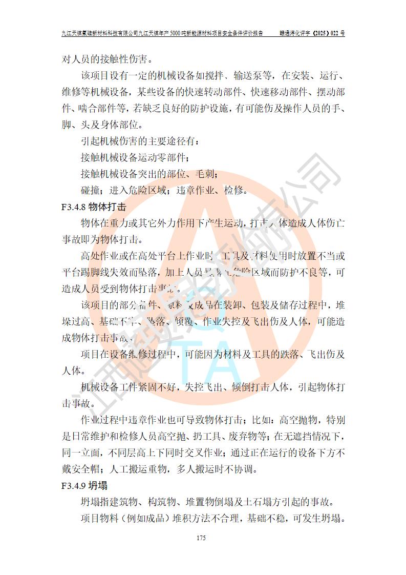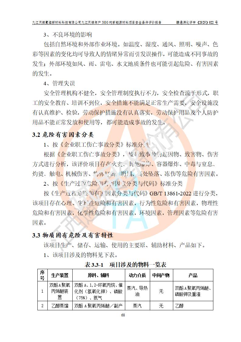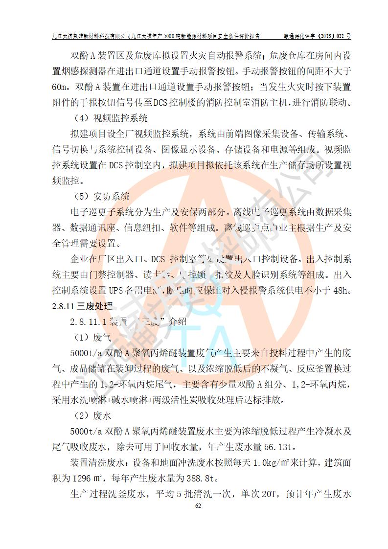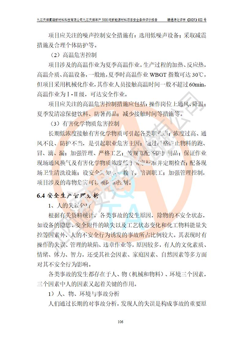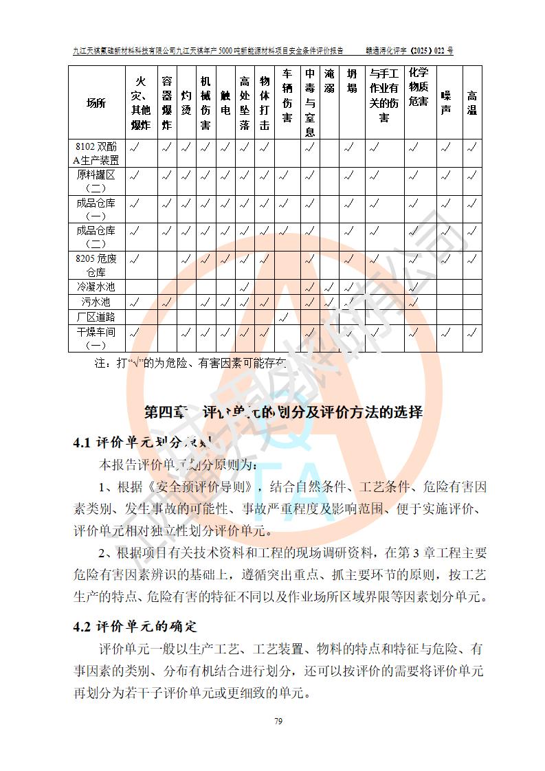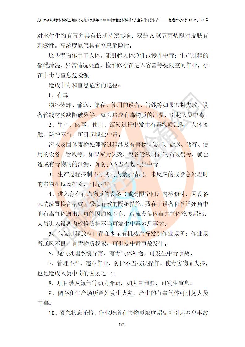 九江天祺氟硅新材料科技有限公司九江天祺年產5000 噸新能源材料項目安全條件評價報告