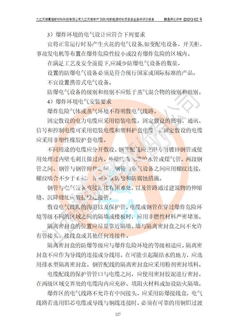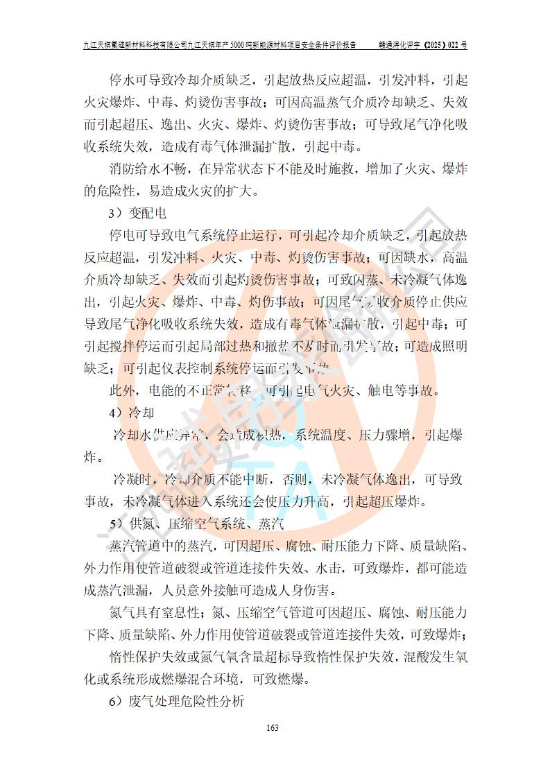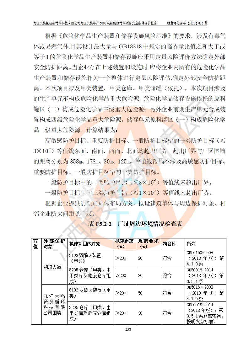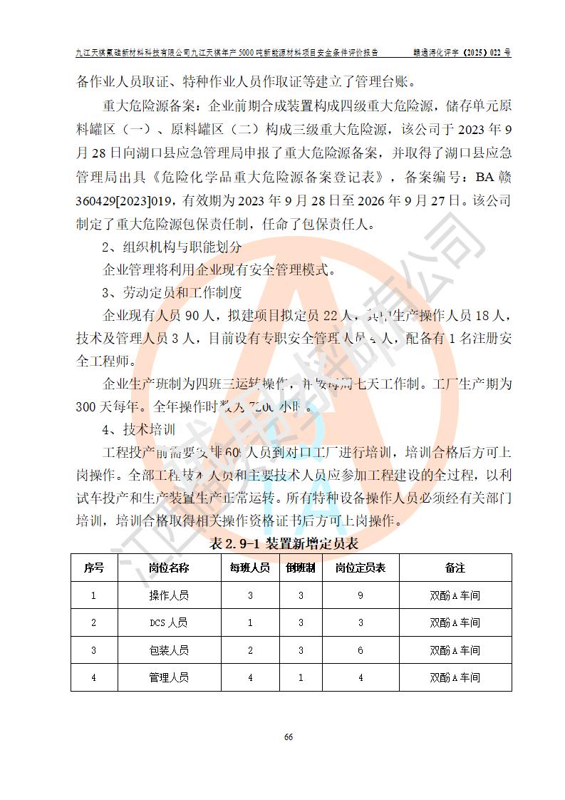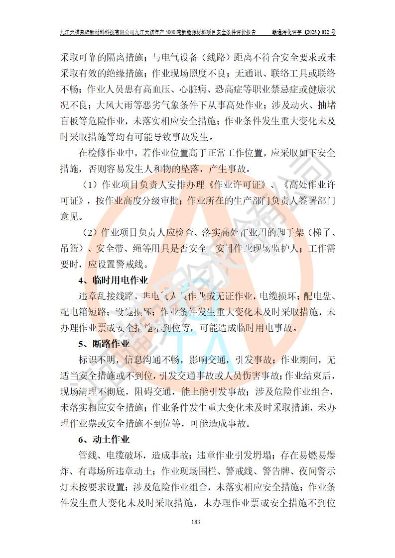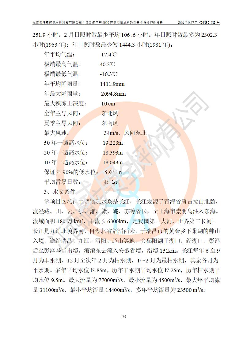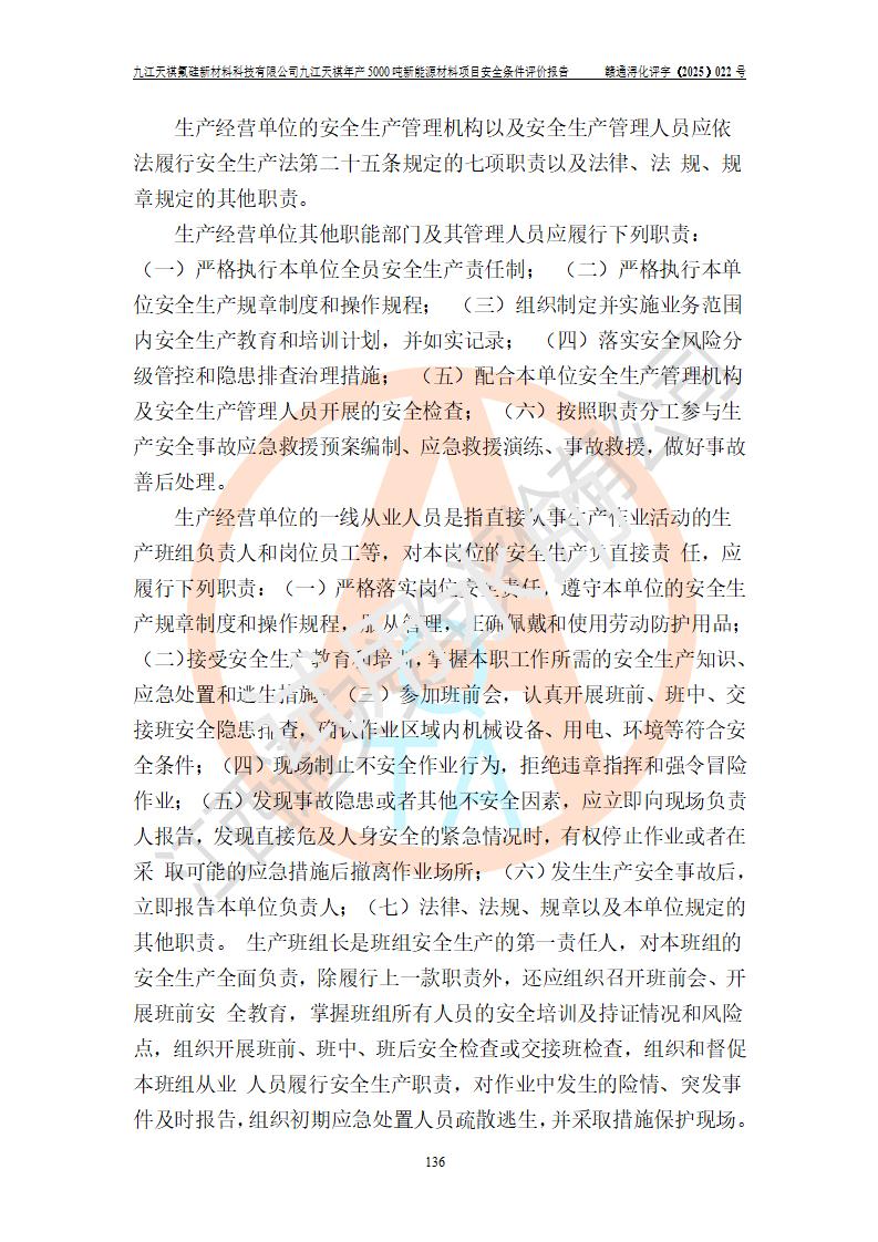 九江天祺氟硅新材料科技有限公司九江天祺年產5000 噸新能源材料項目安全條件評價報告