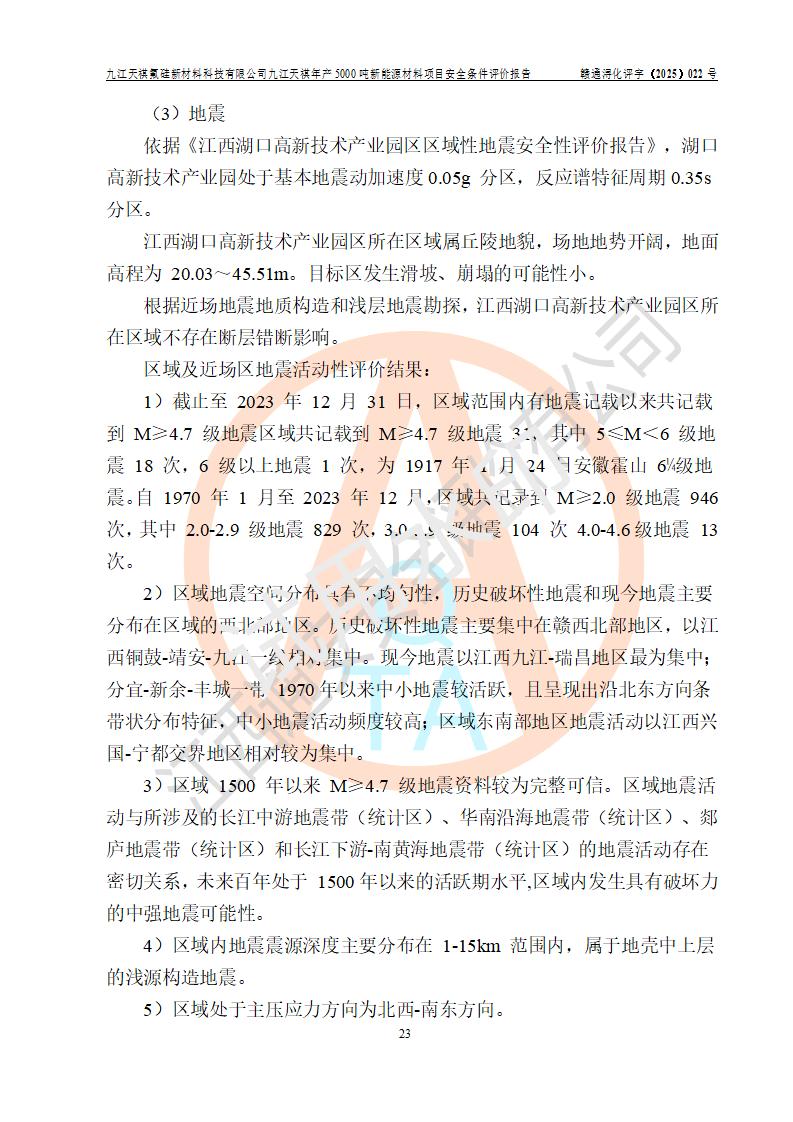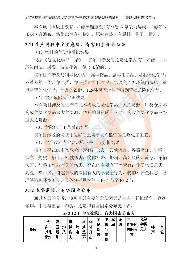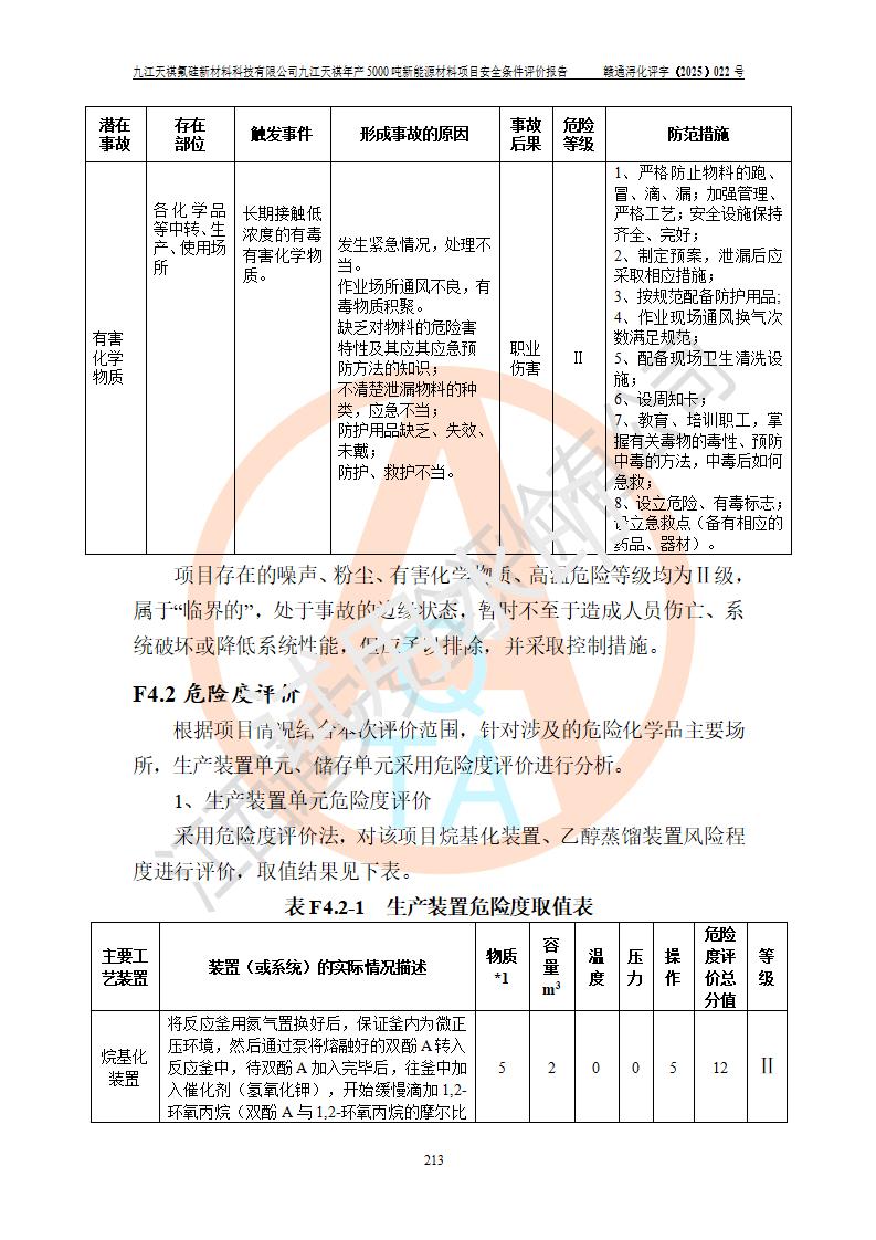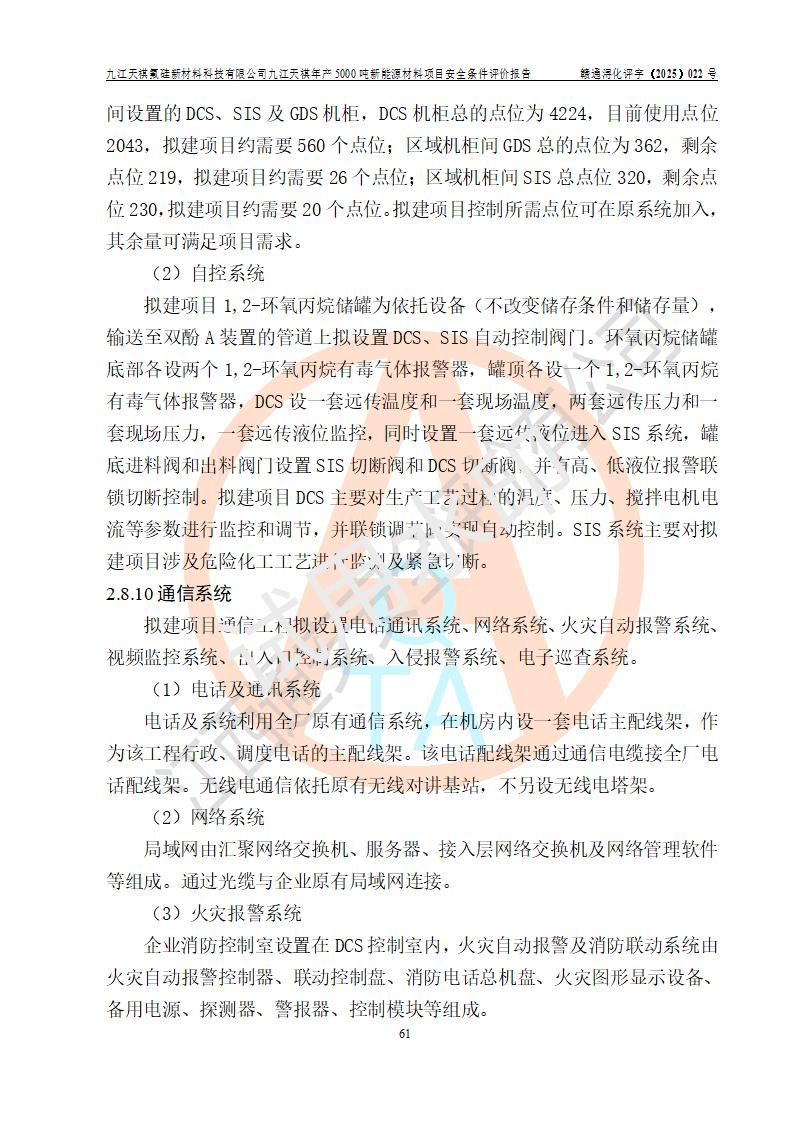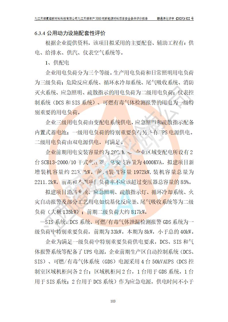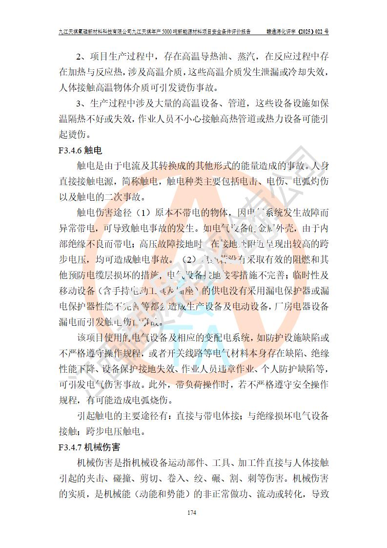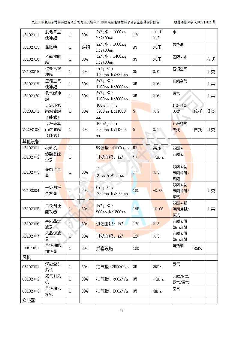 九江天祺氟硅新材料科技有限公司九江天祺年產5000 噸新能源材料項目安全條件評價報告
