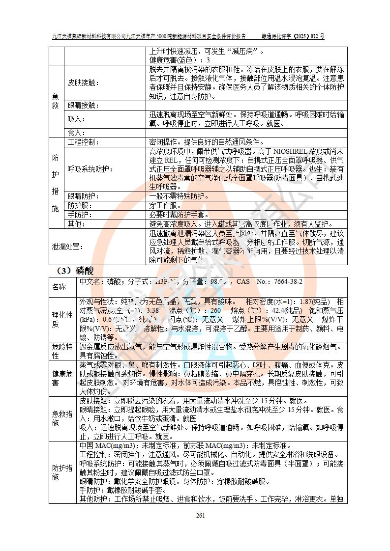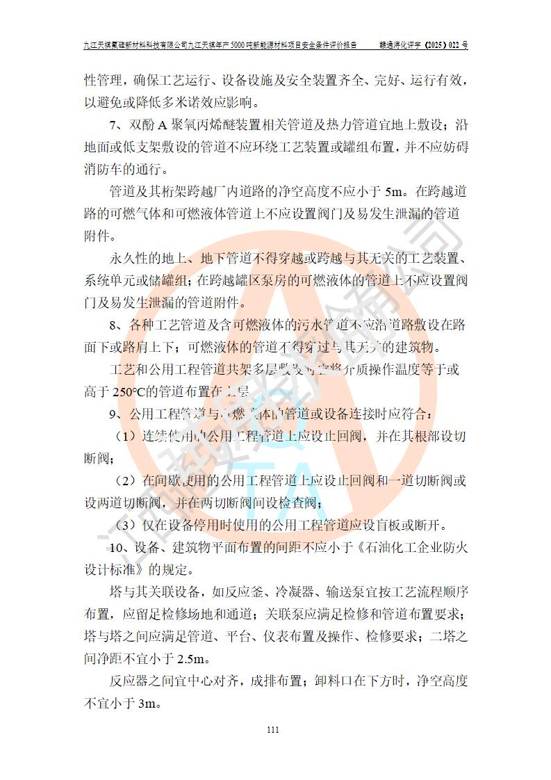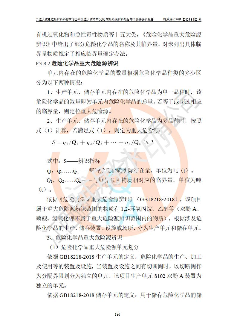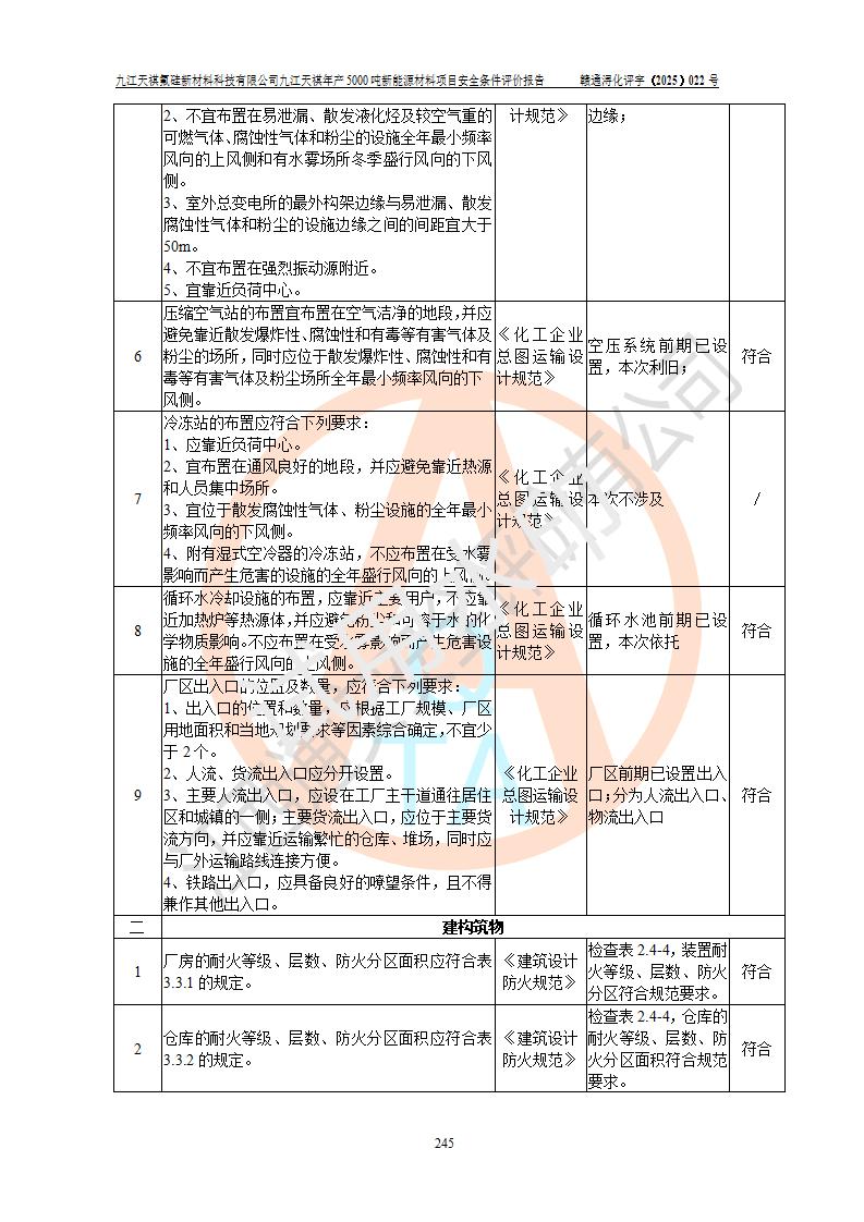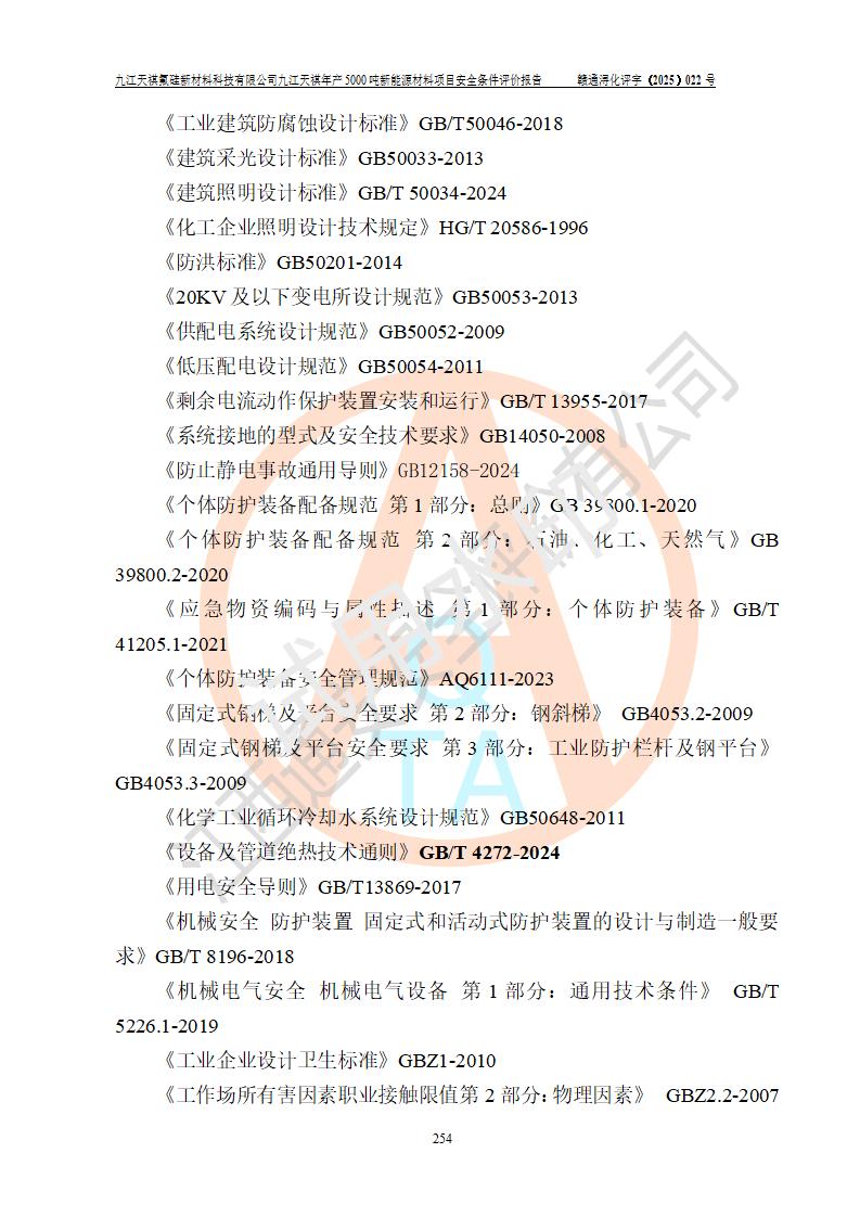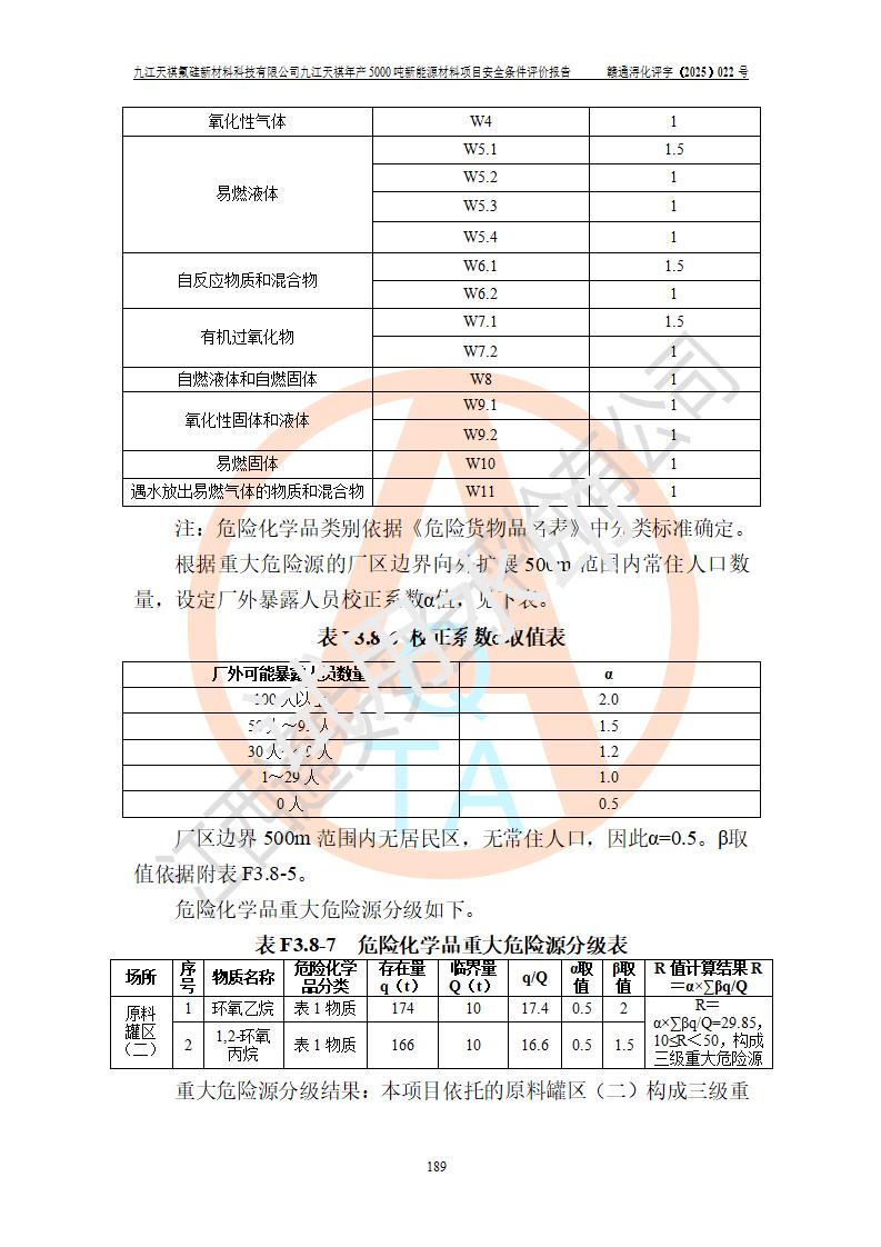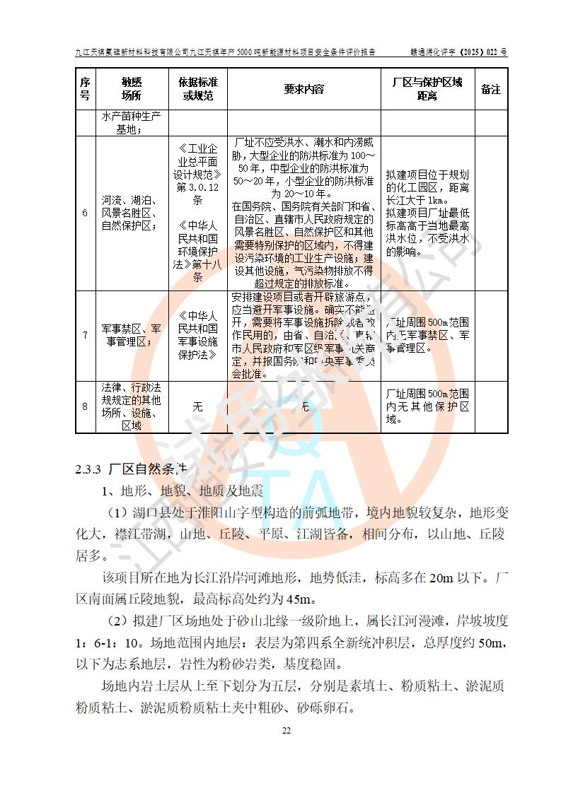 九江天祺氟硅新材料科技有限公司九江天祺年產5000 噸新能源材料項目安全條件評價報告