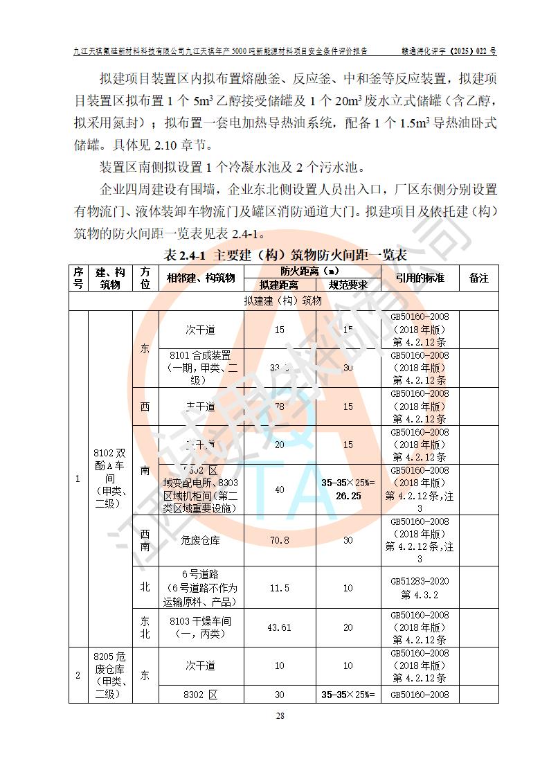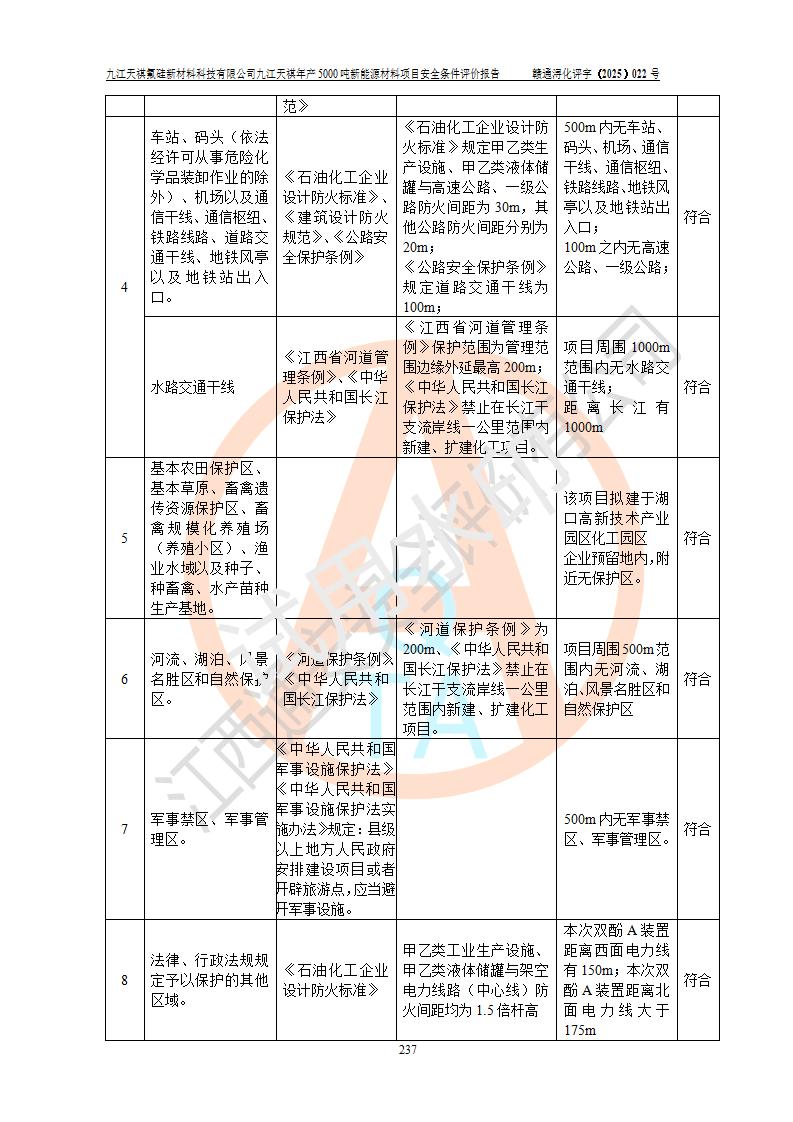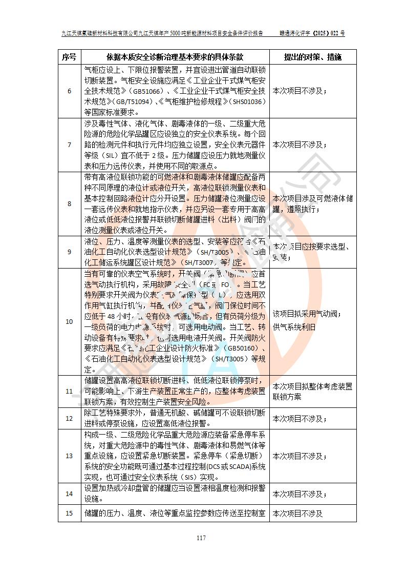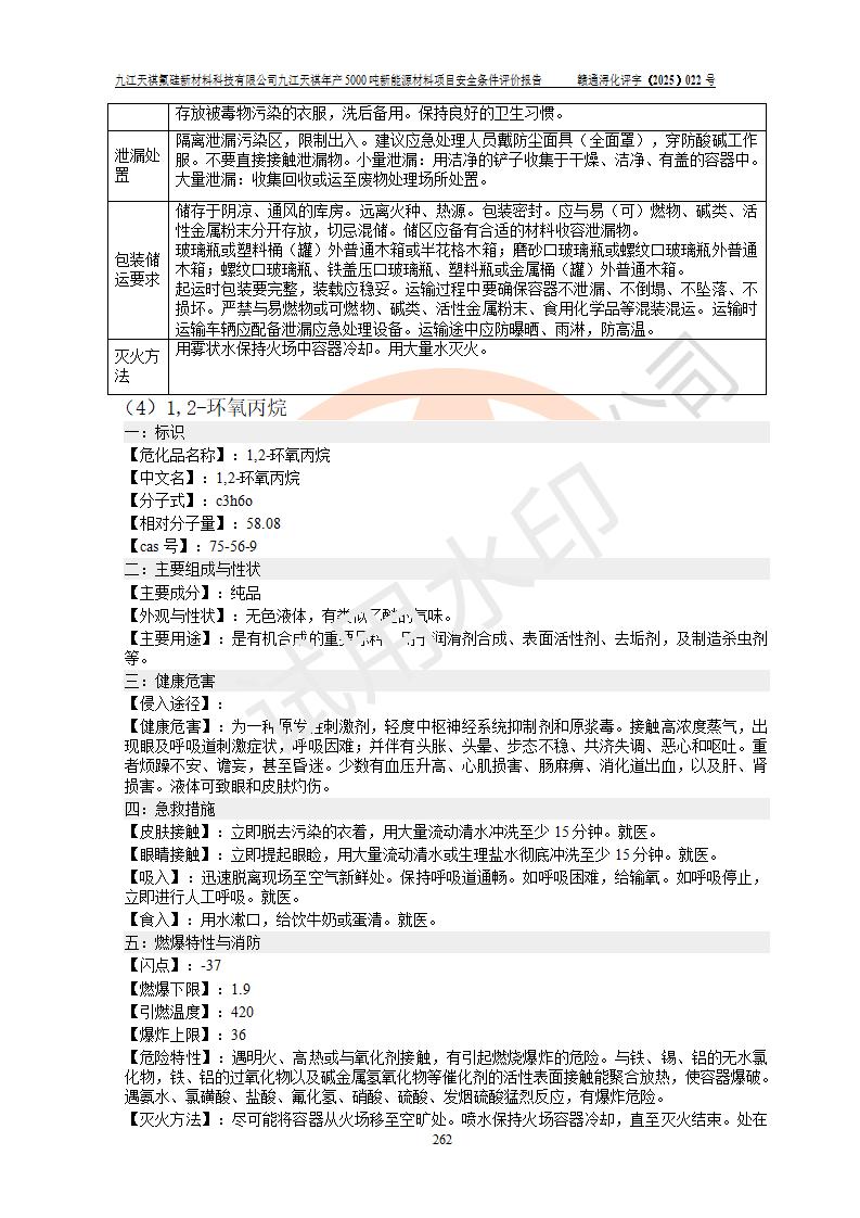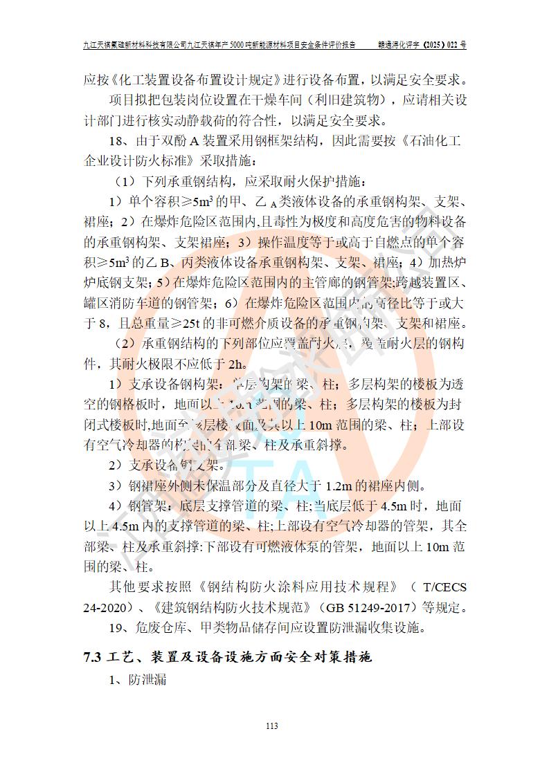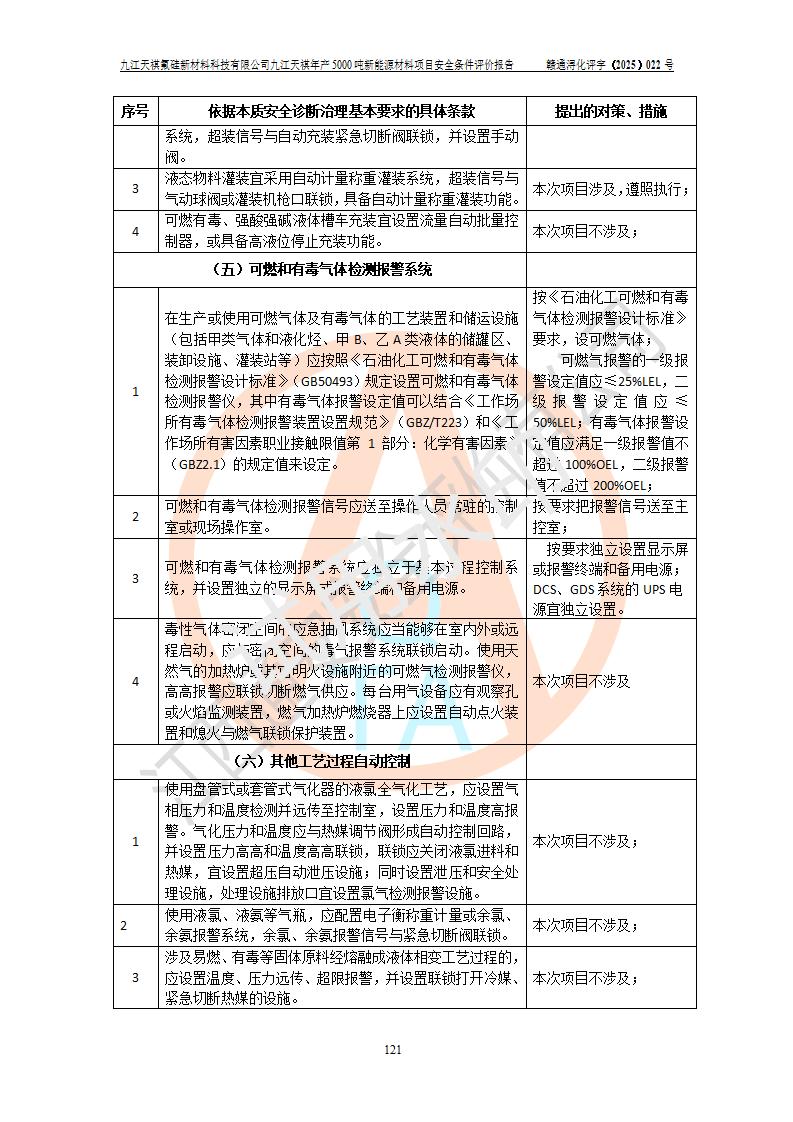 九江天祺氟硅新材料科技有限公司九江天祺年產5000 噸新能源材料項目安全條件評價報告