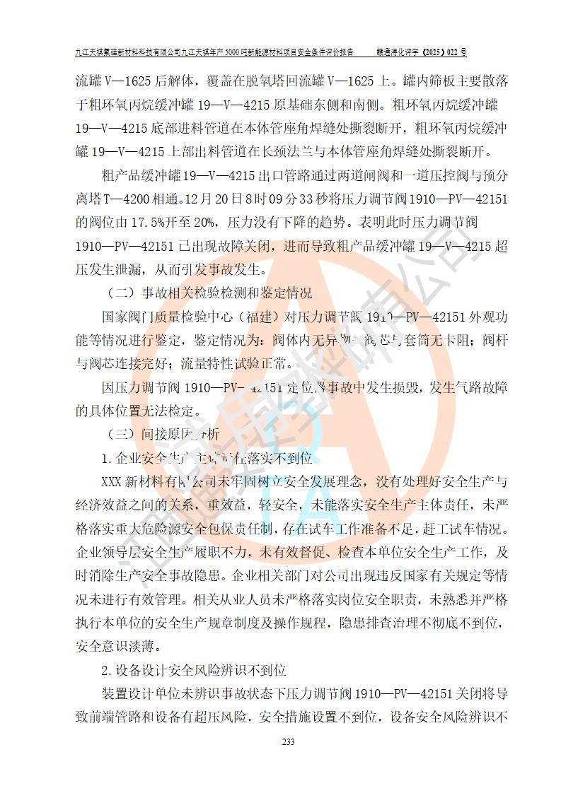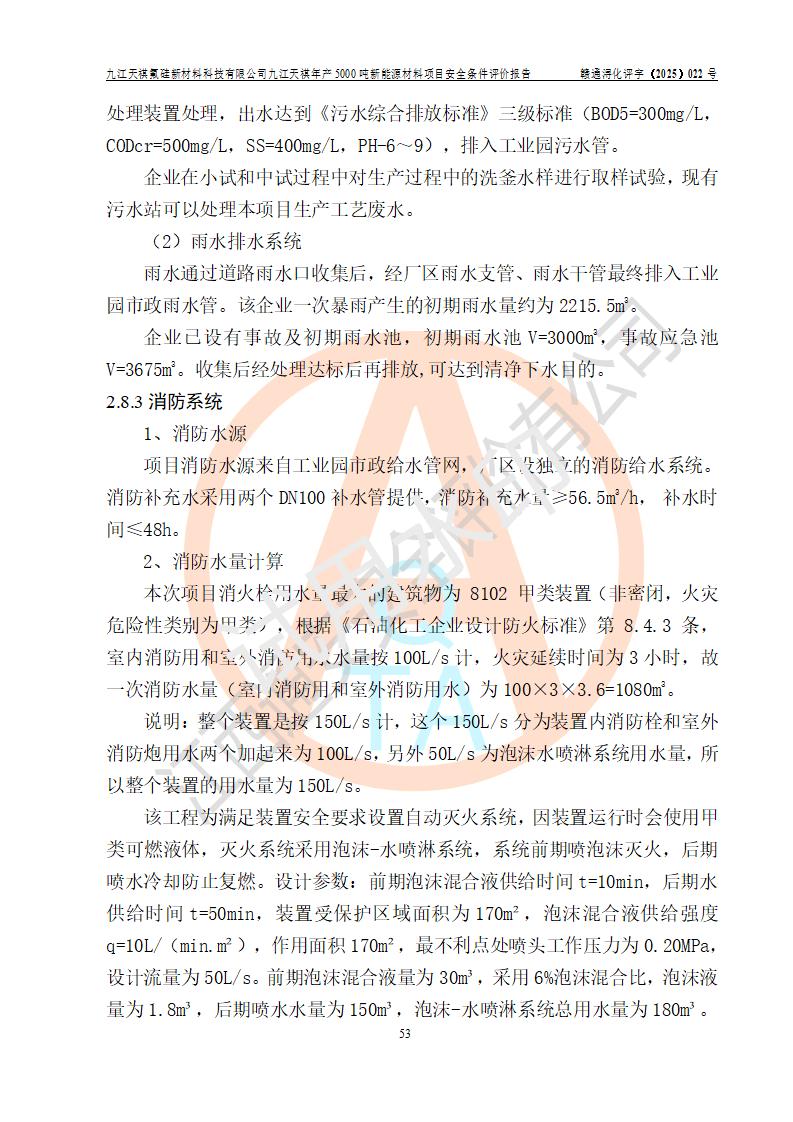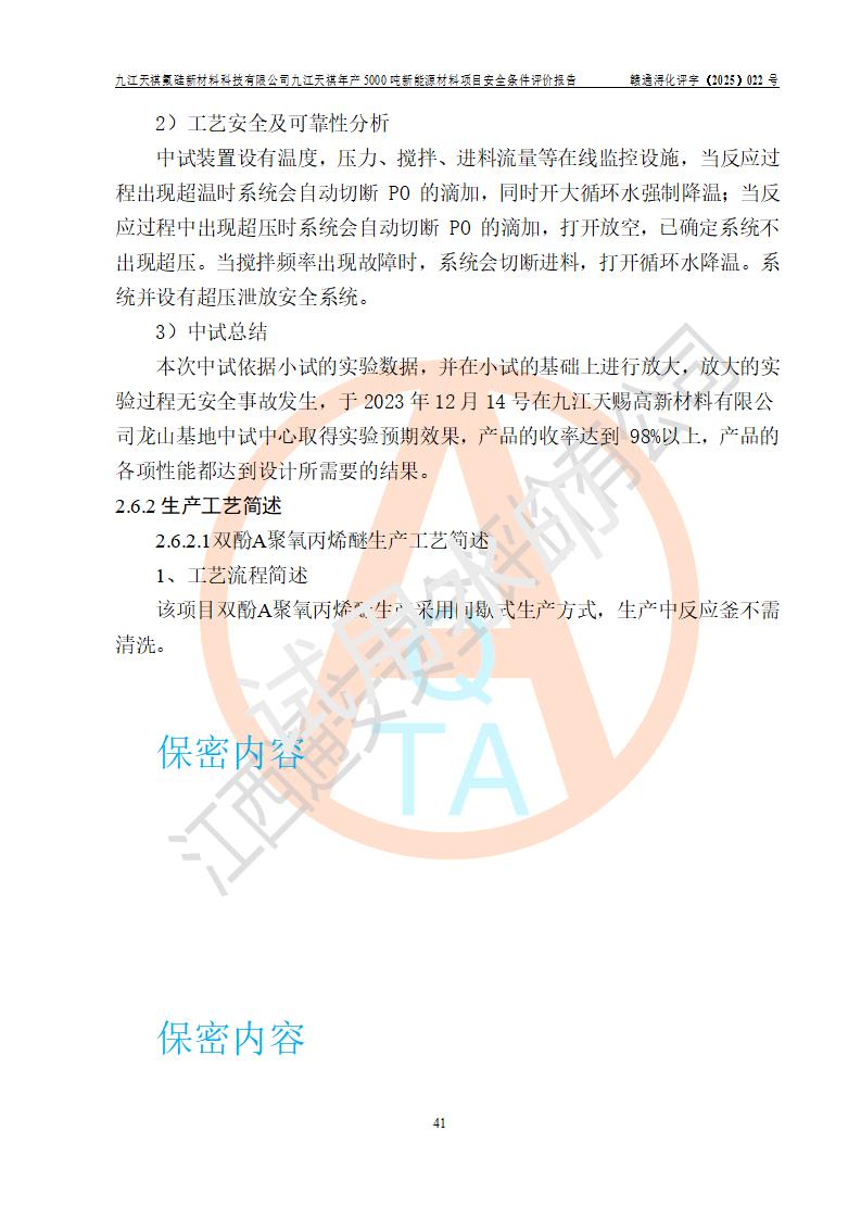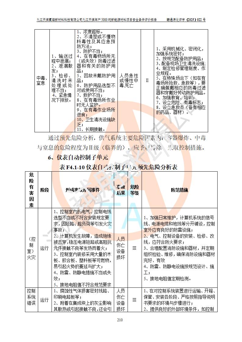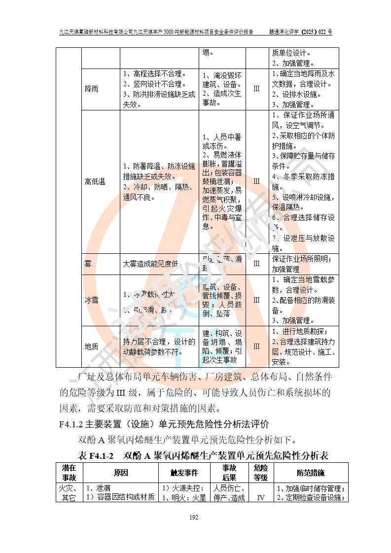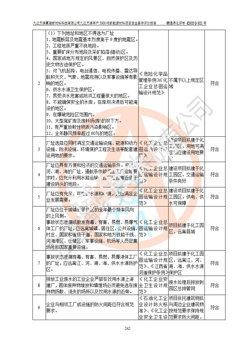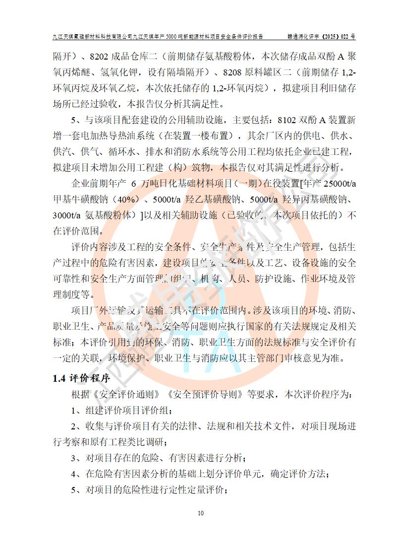 九江天祺氟硅新材料科技有限公司九江天祺年產5000 噸新能源材料項目安全條件評價報告