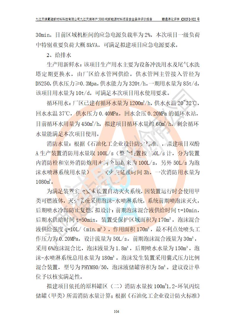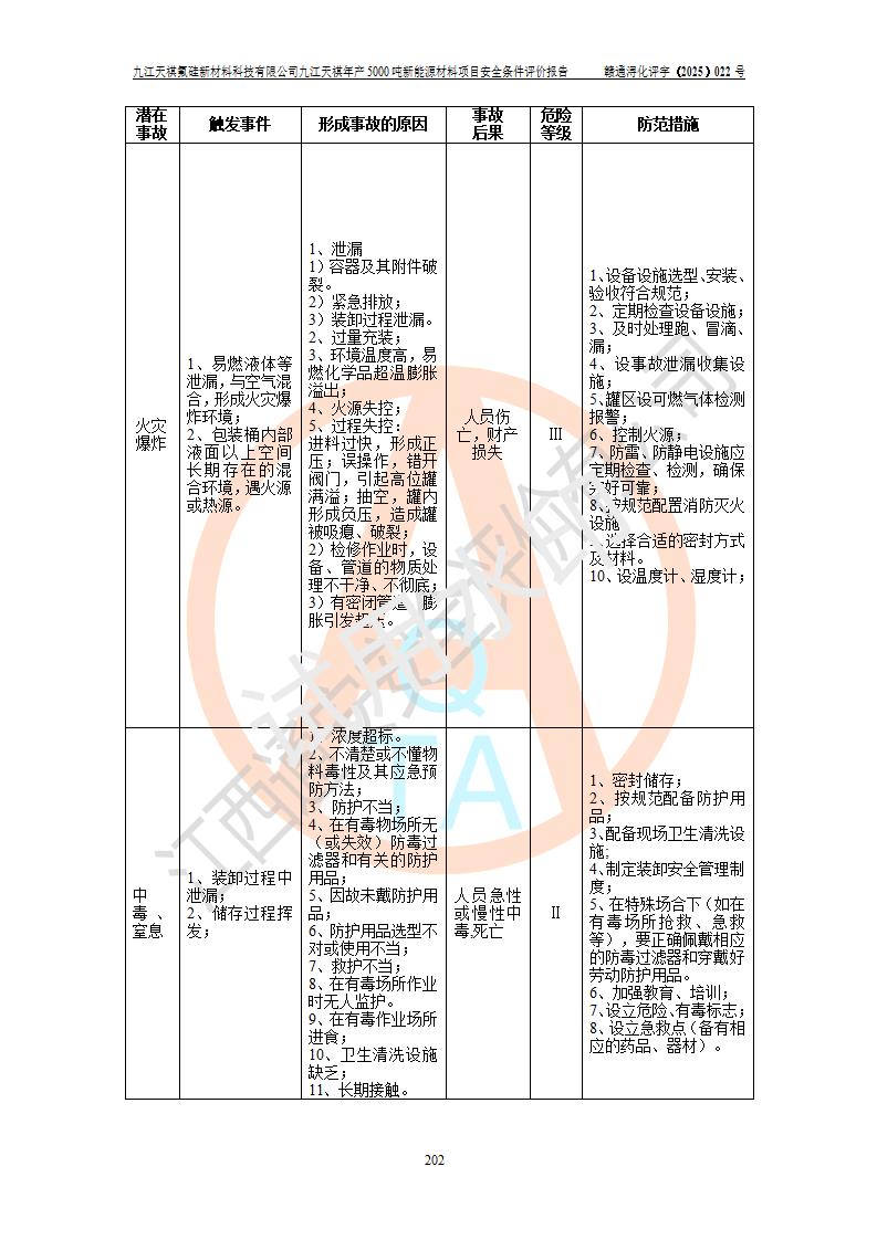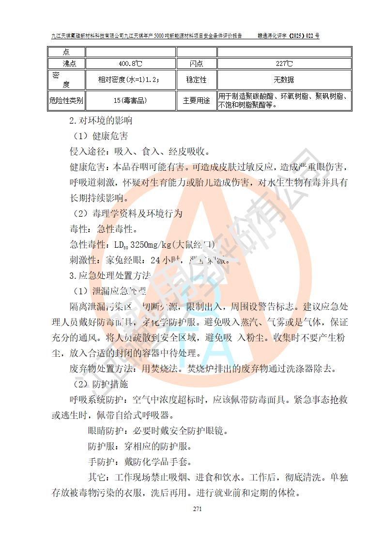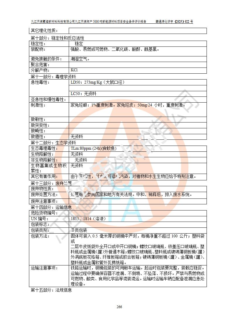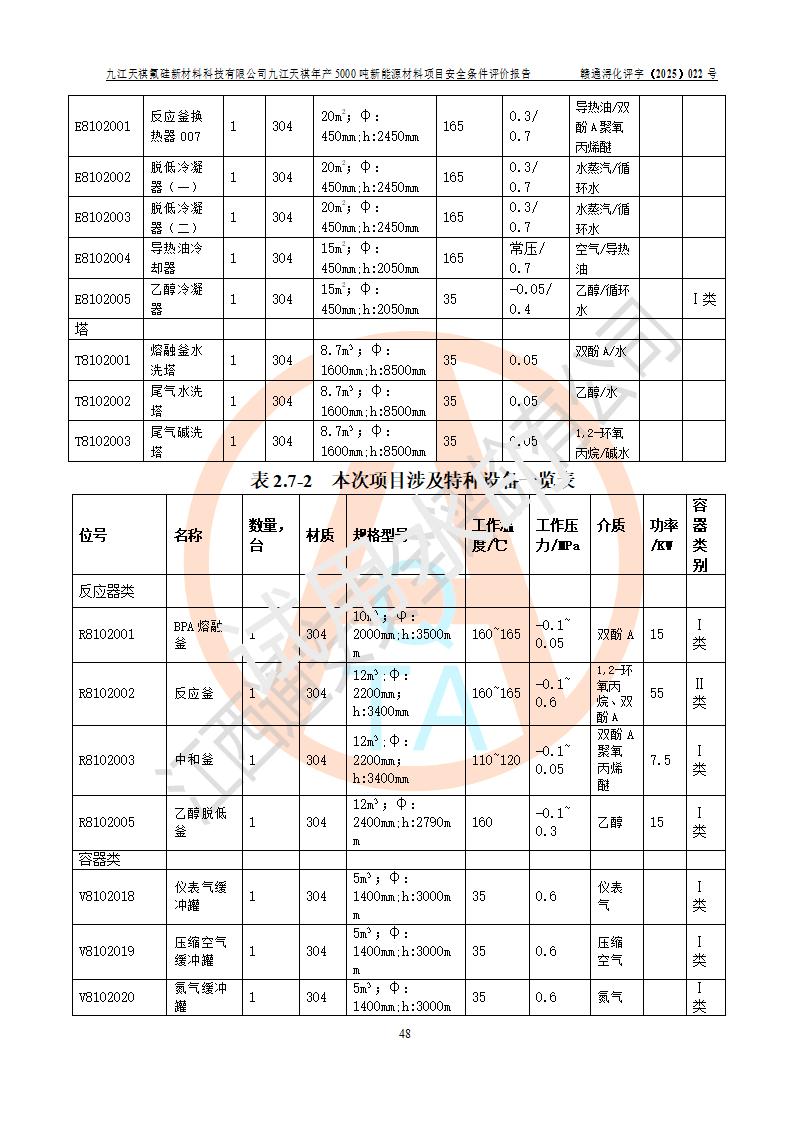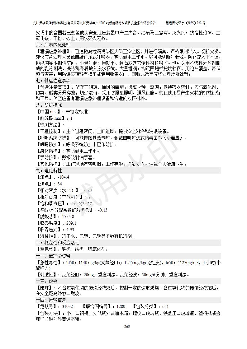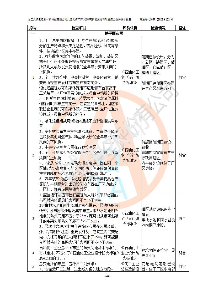 九江天祺氟硅新材料科技有限公司九江天祺年產5000 噸新能源材料項目安全條件評價報告