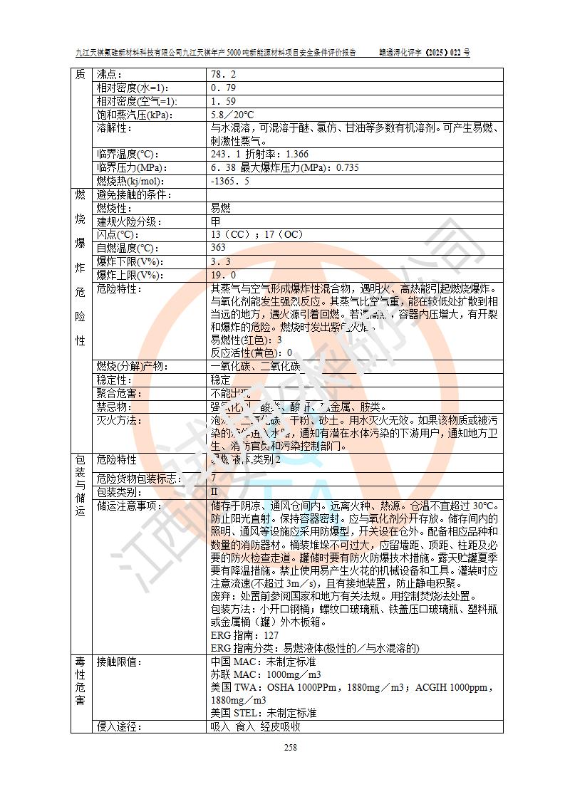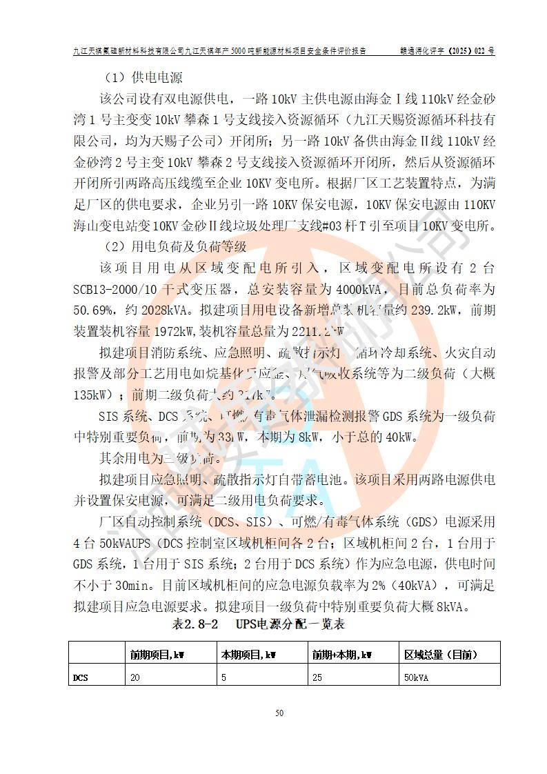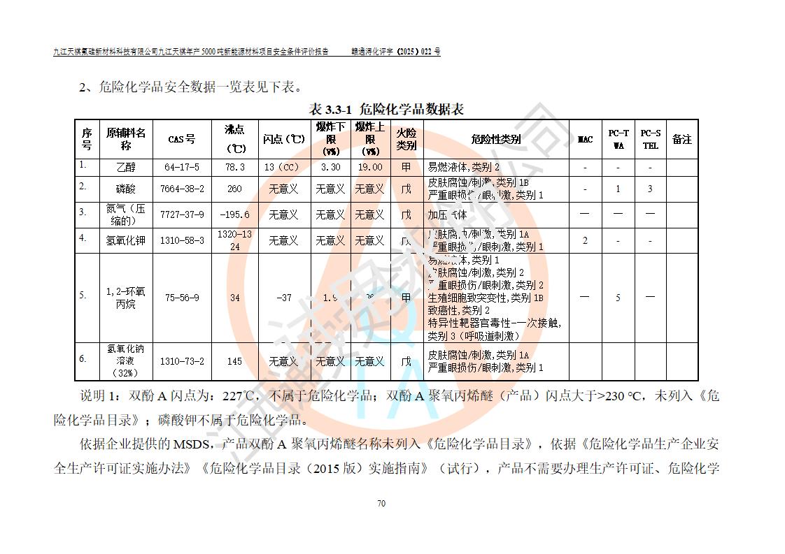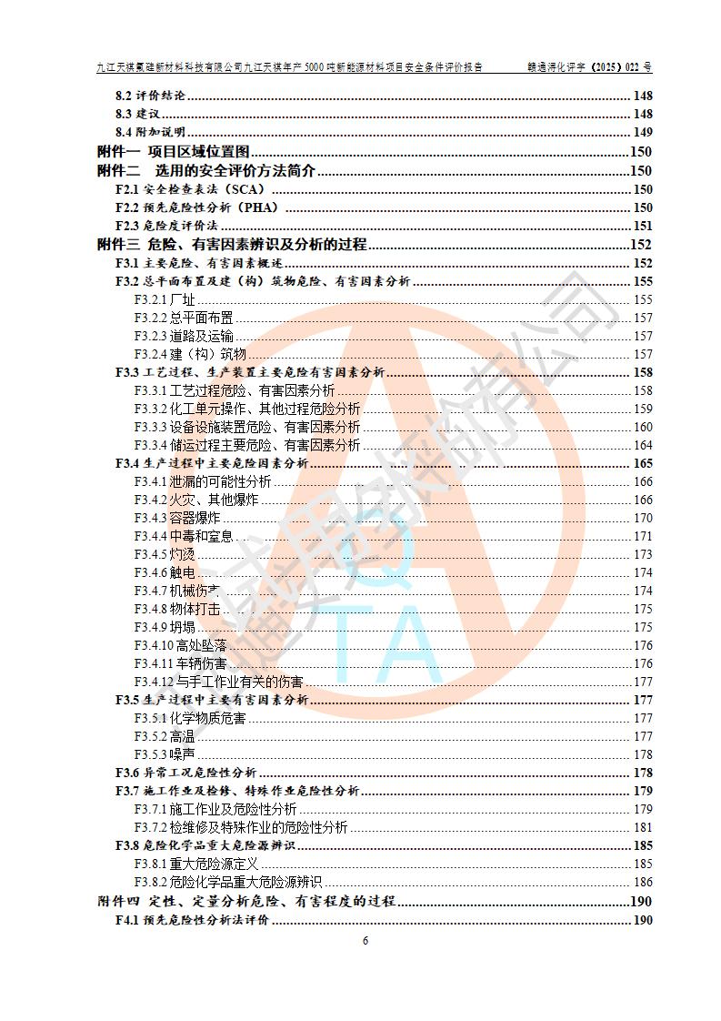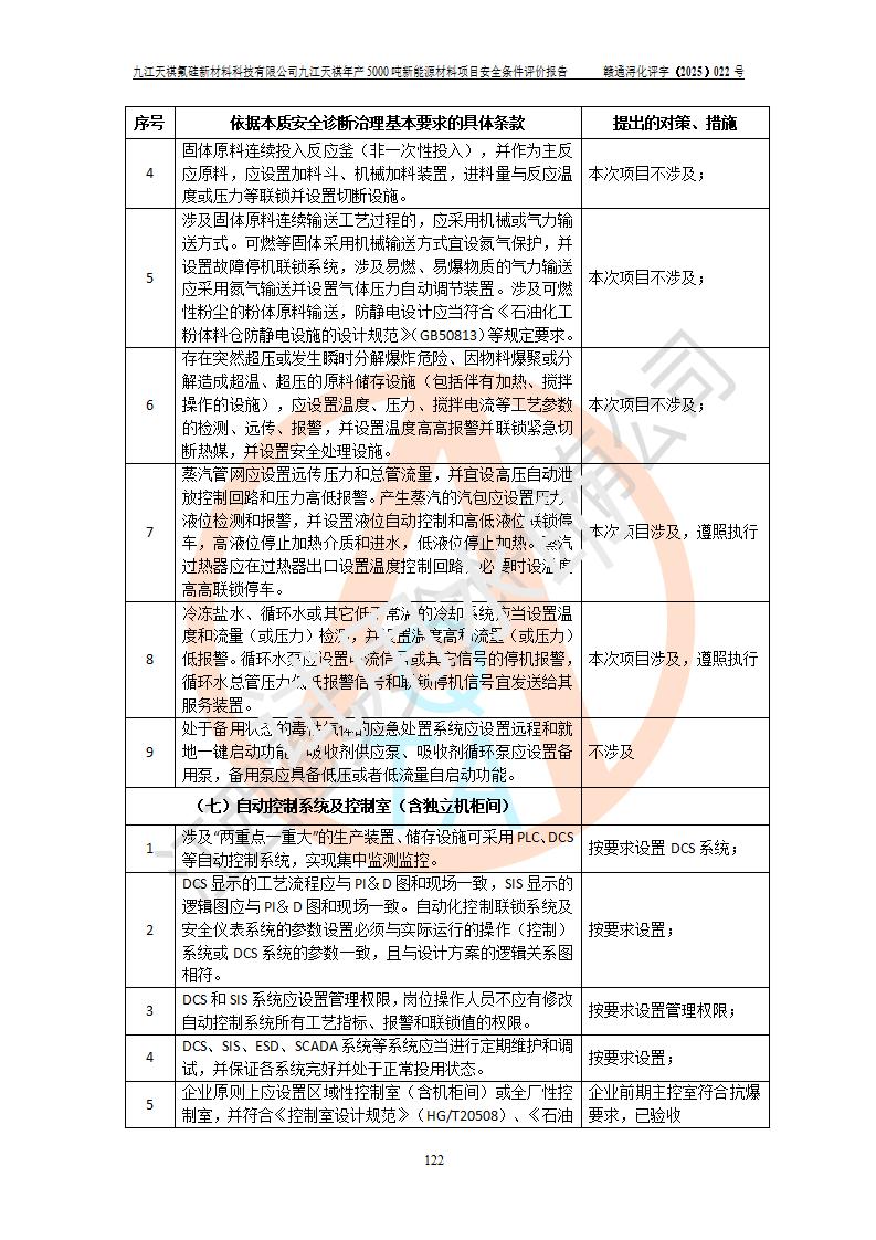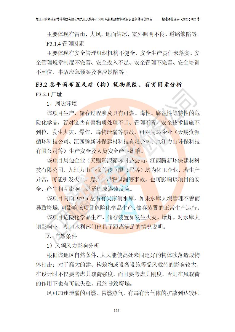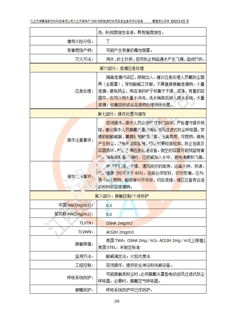 九江天祺氟硅新材料科技有限公司九江天祺年產5000 噸新能源材料項目安全條件評價報告