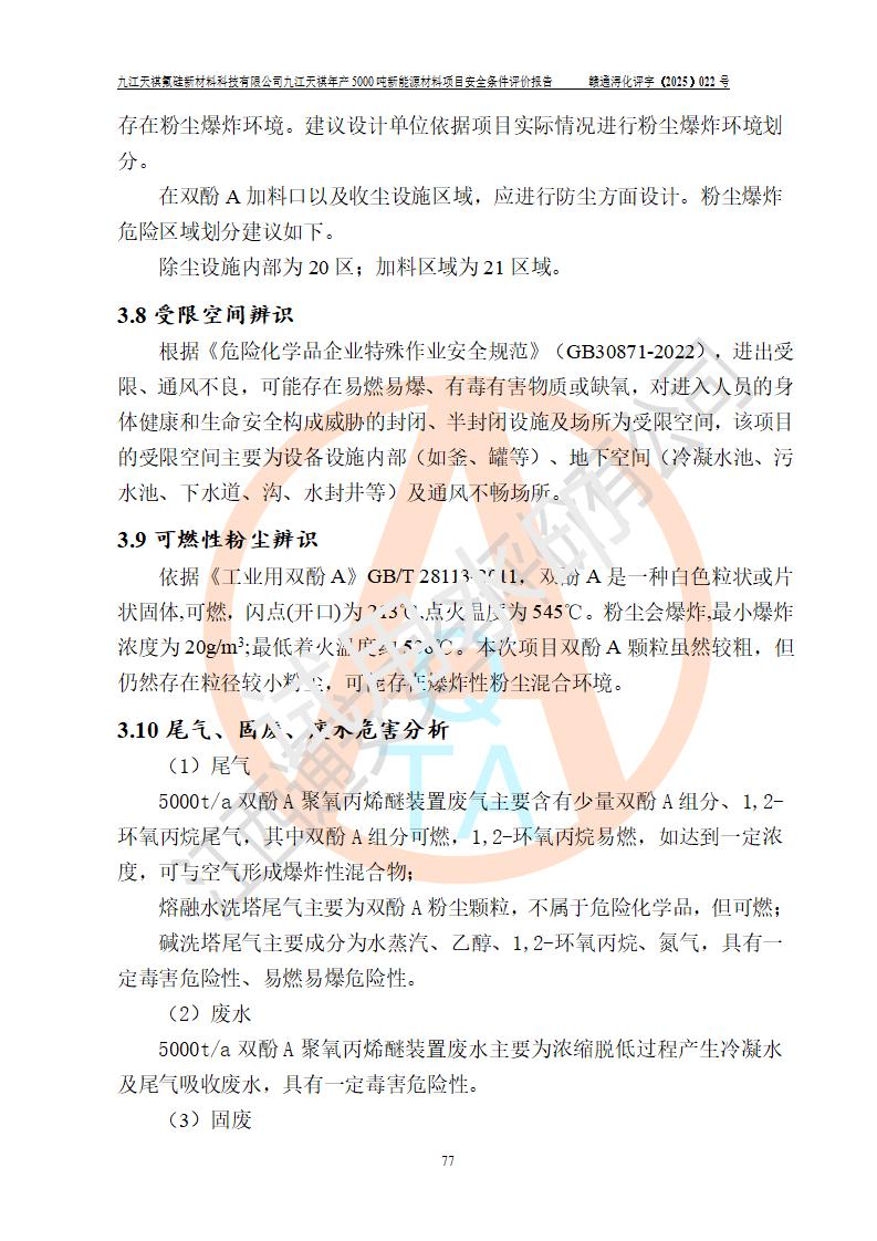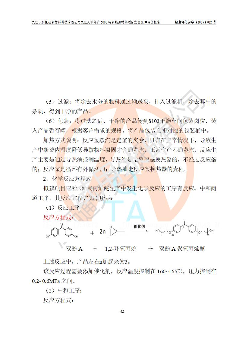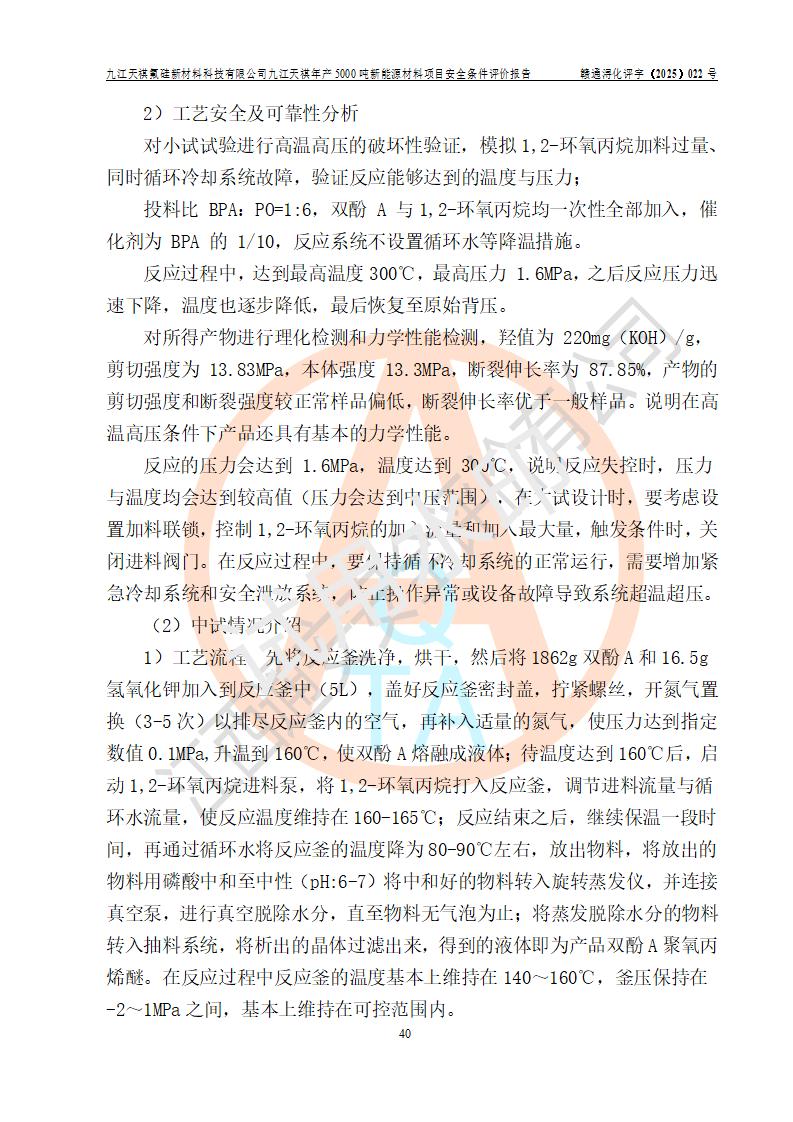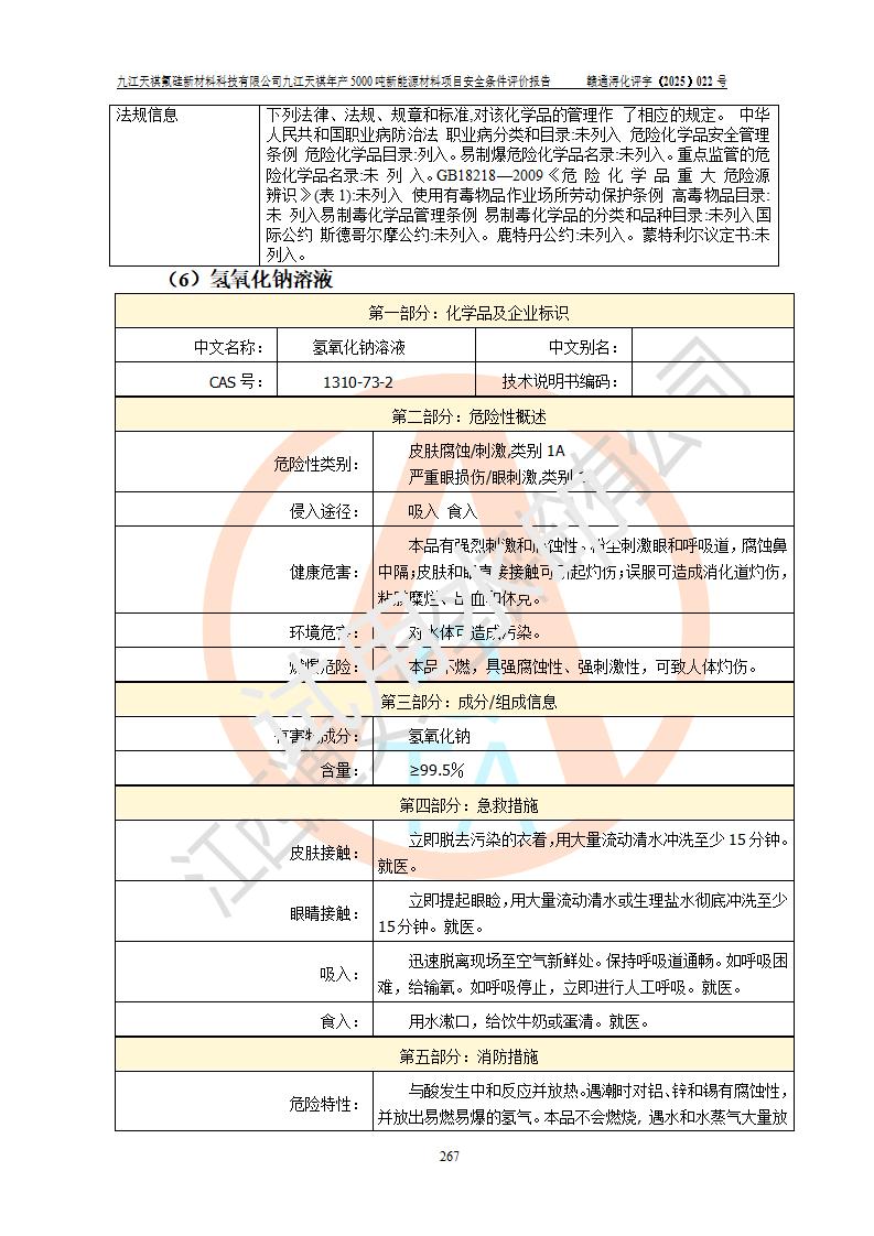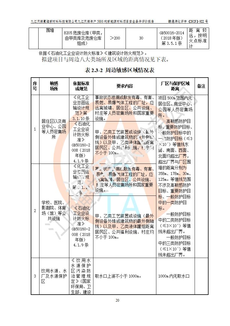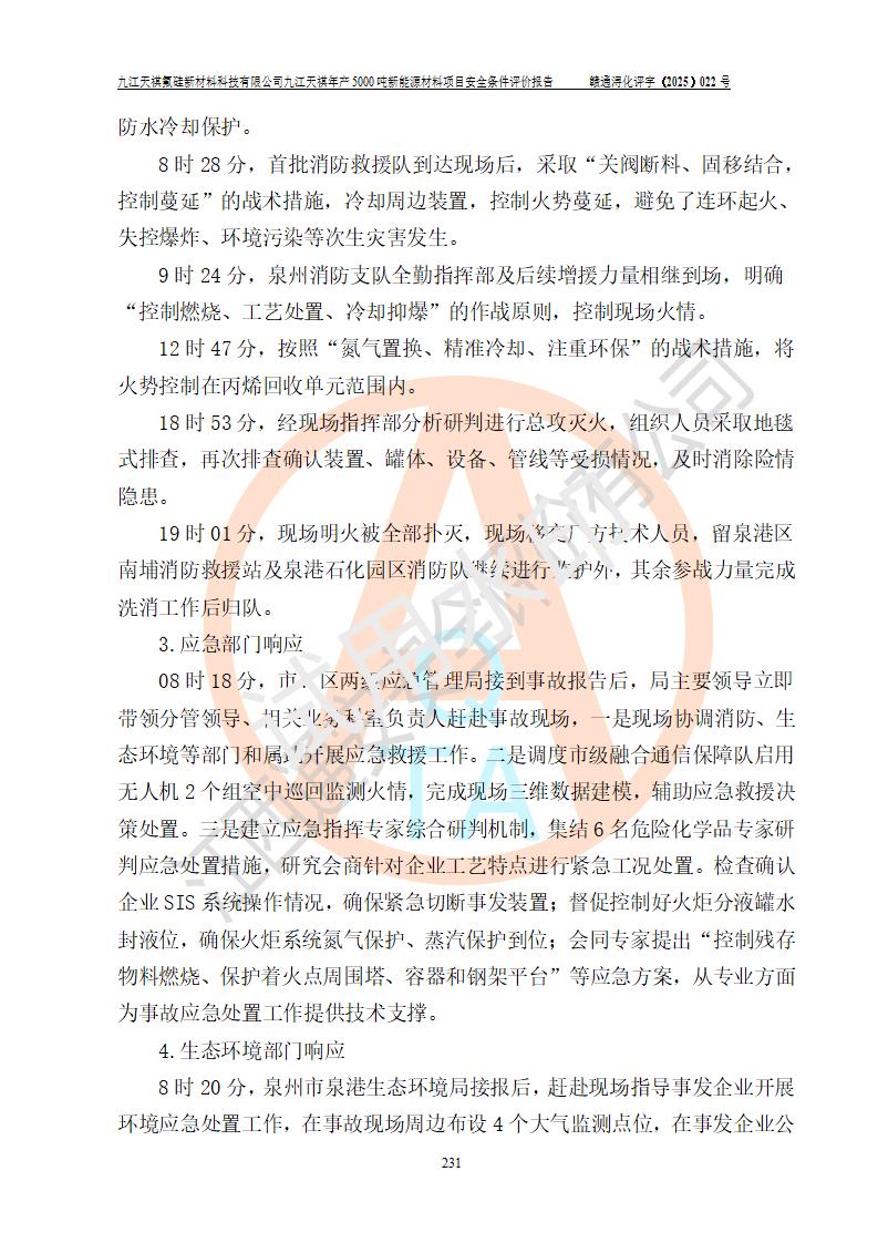 九江天祺氟硅新材料科技有限公司九江天祺年產5000 噸新能源材料項目安全條件評價報告