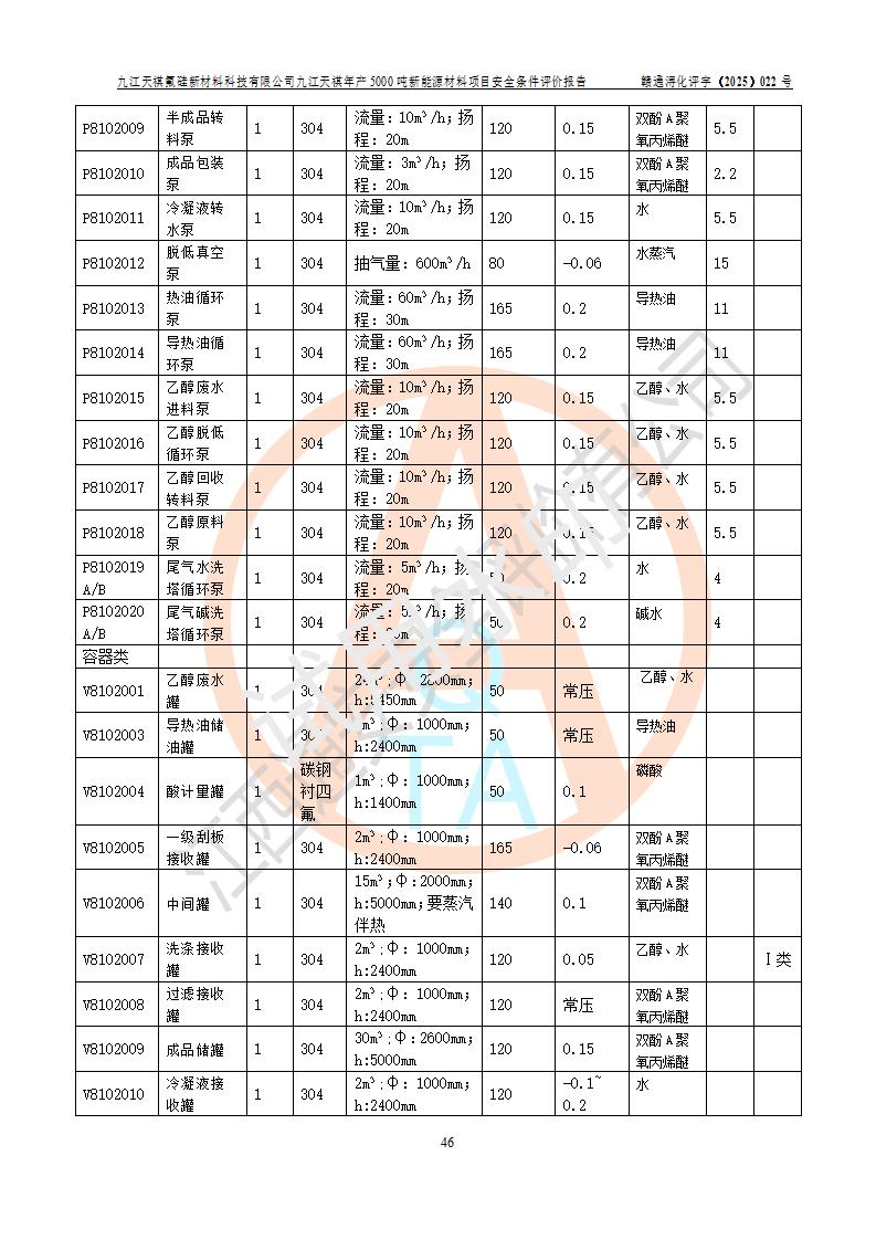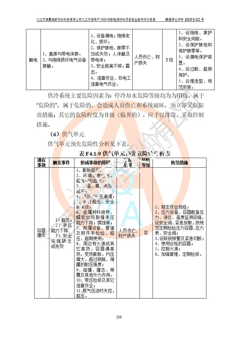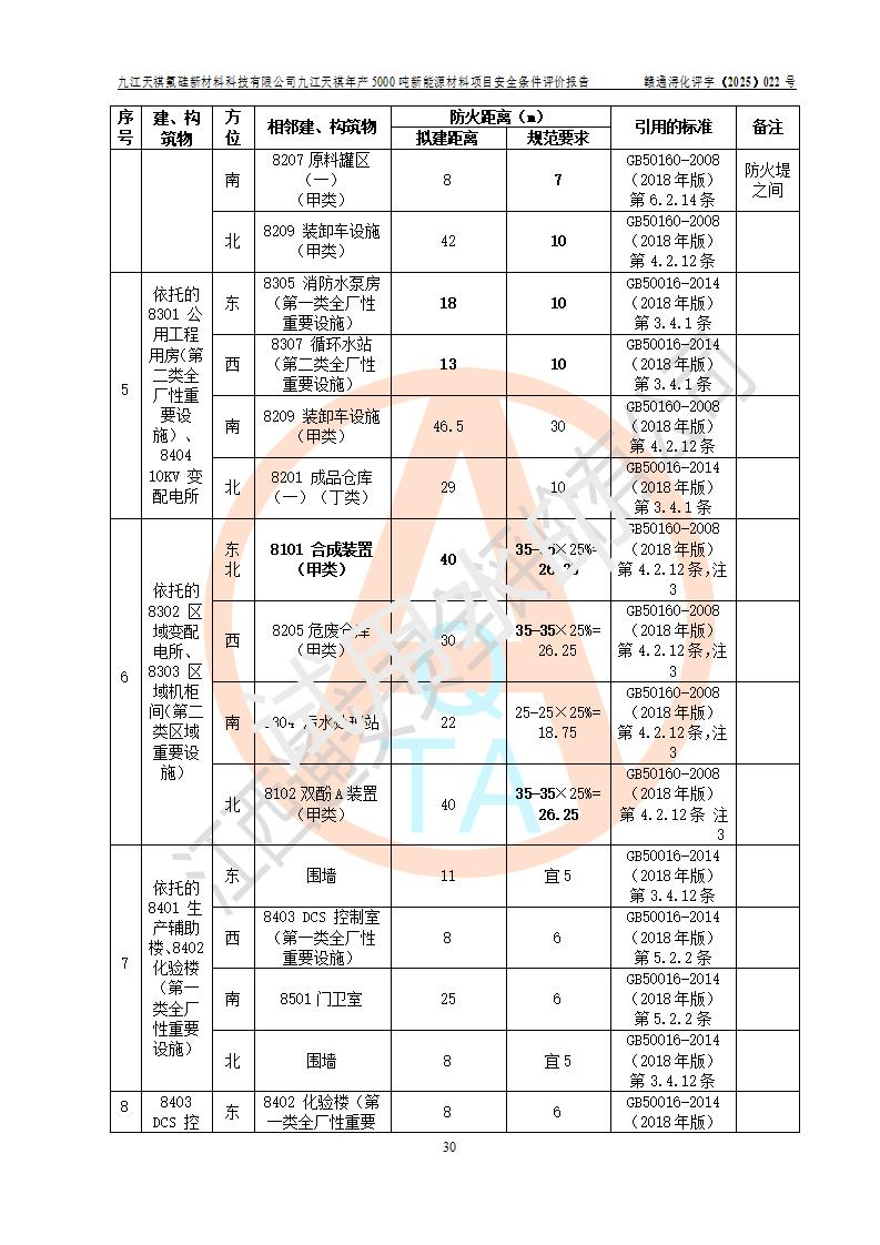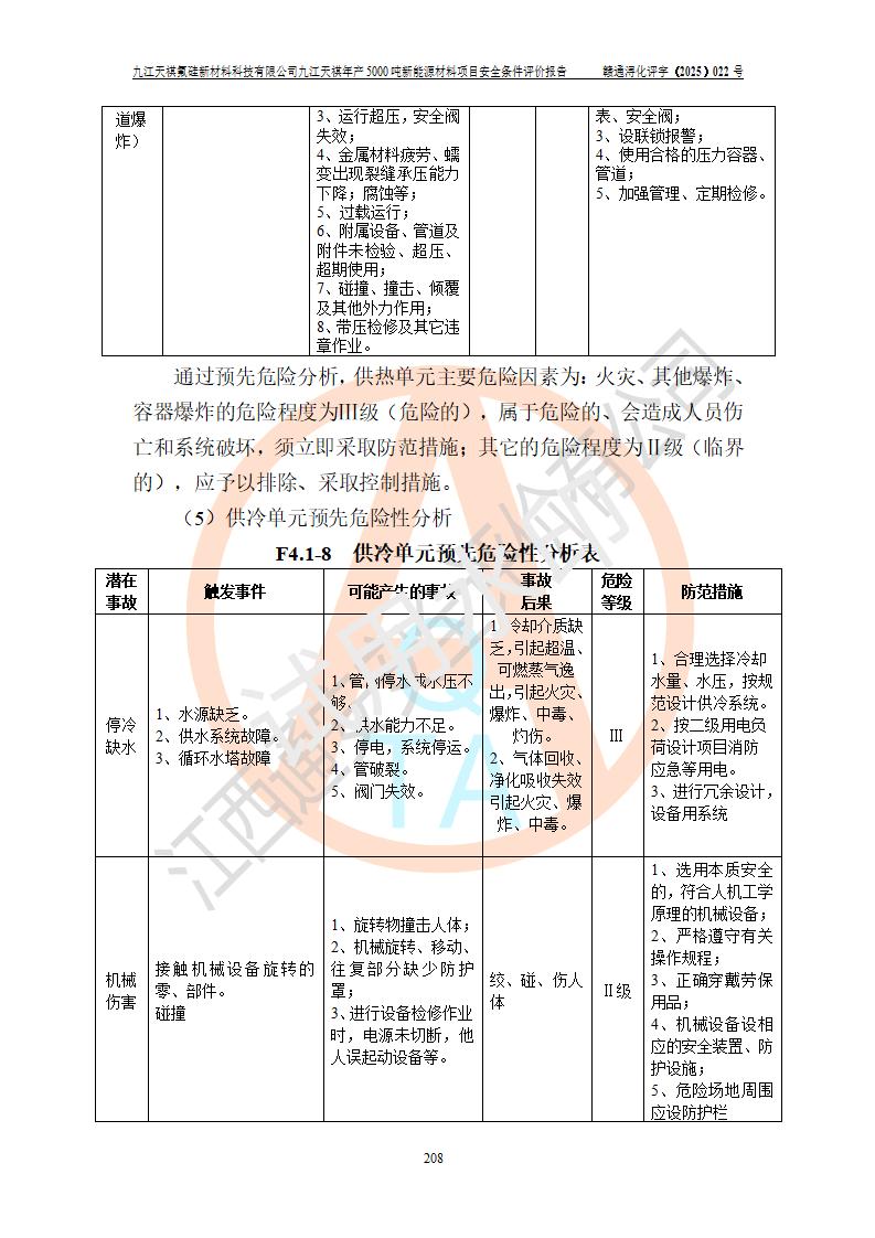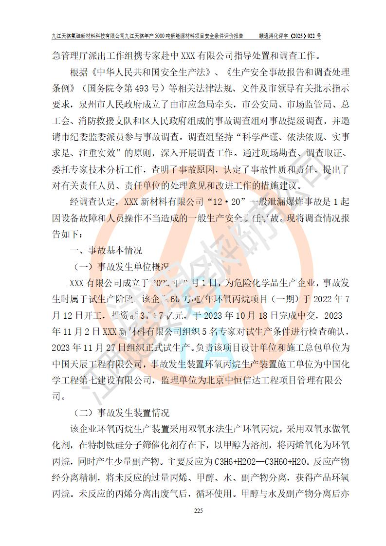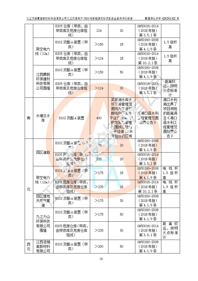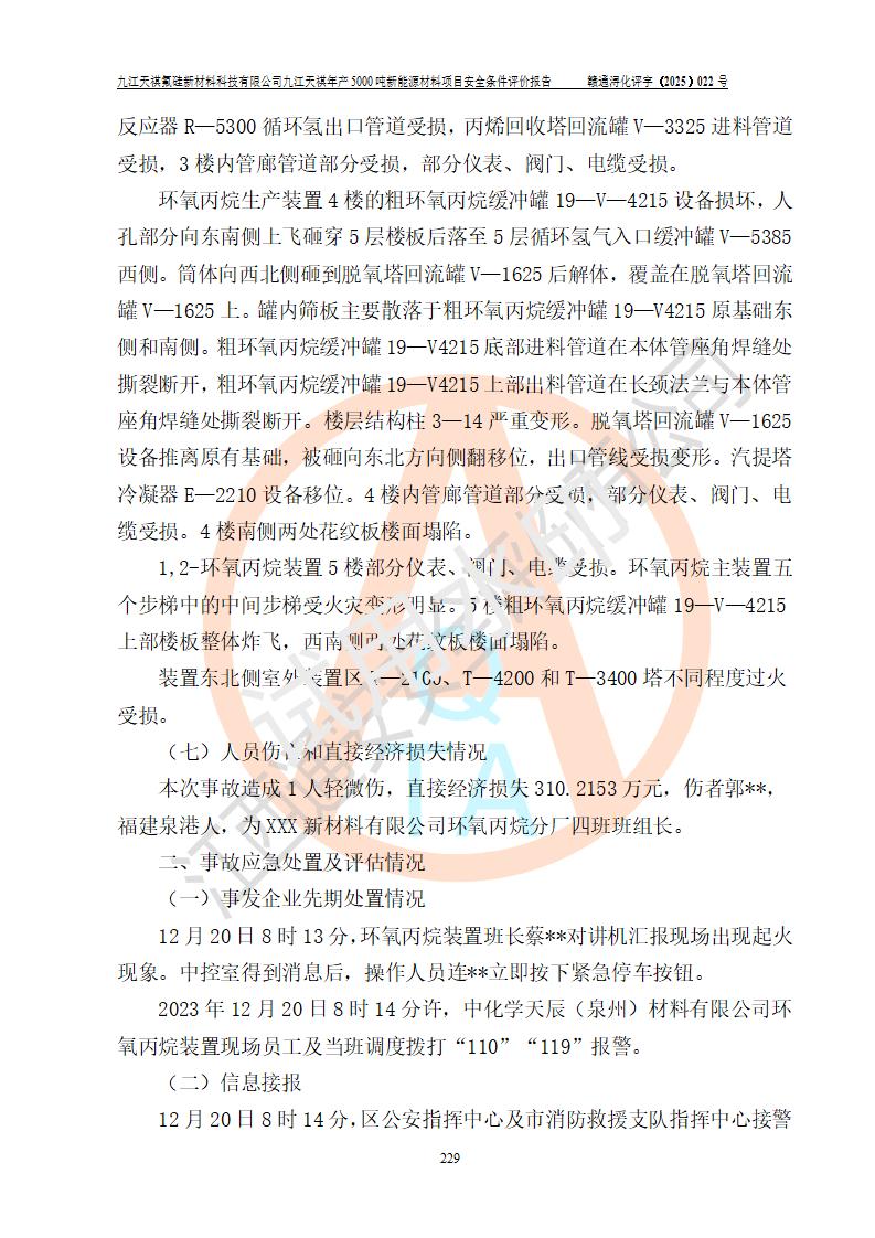 九江天祺氟硅新材料科技有限公司九江天祺年產5000 噸新能源材料項目安全條件評價報告