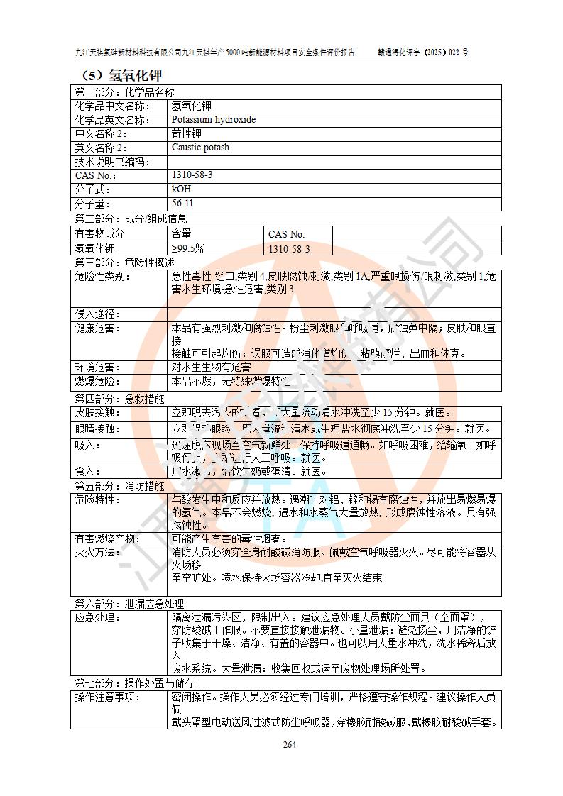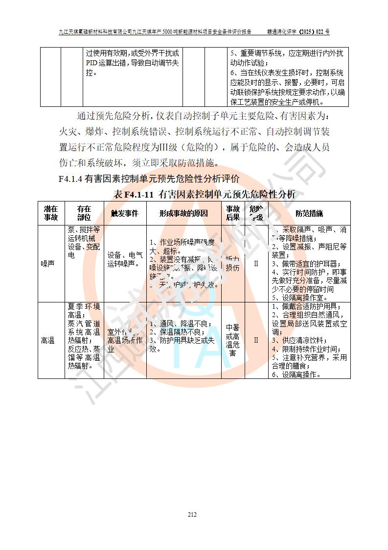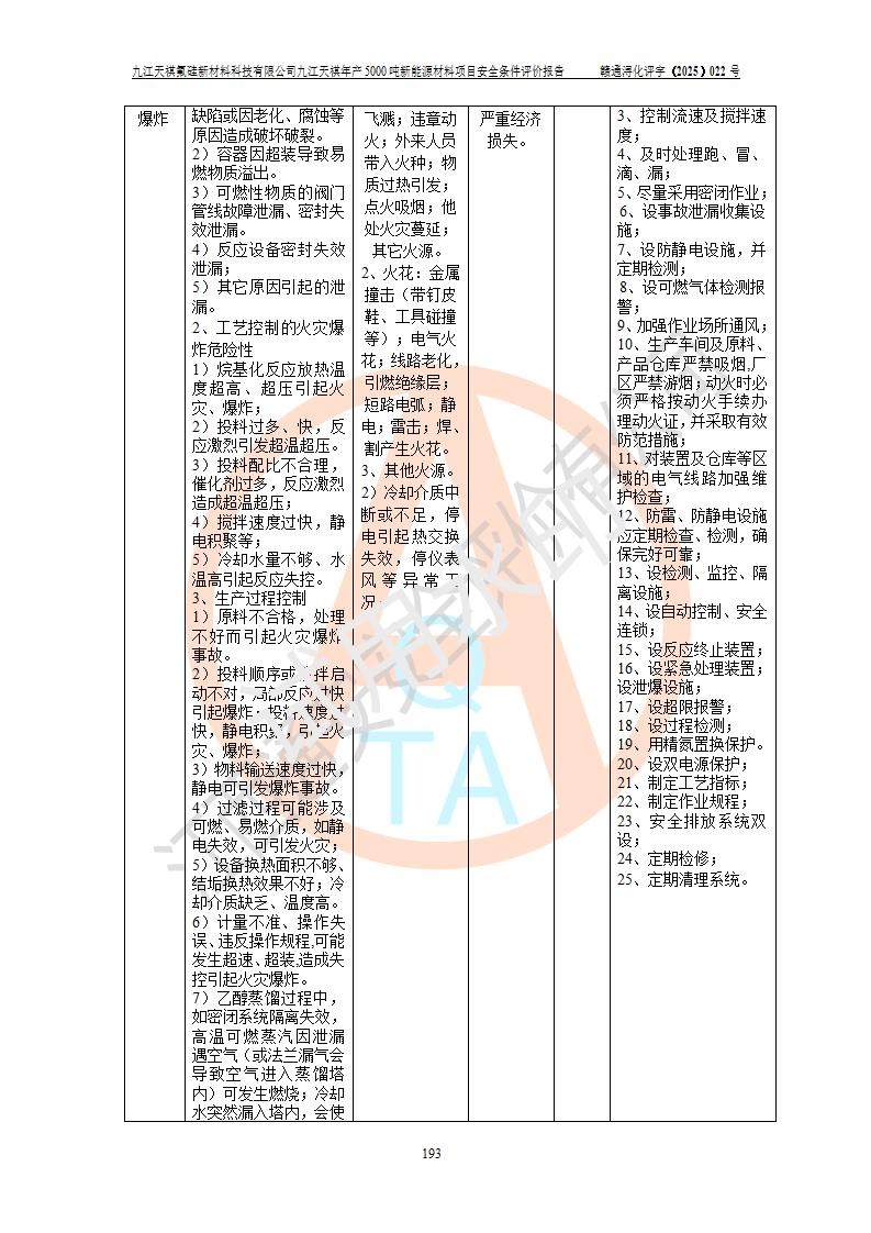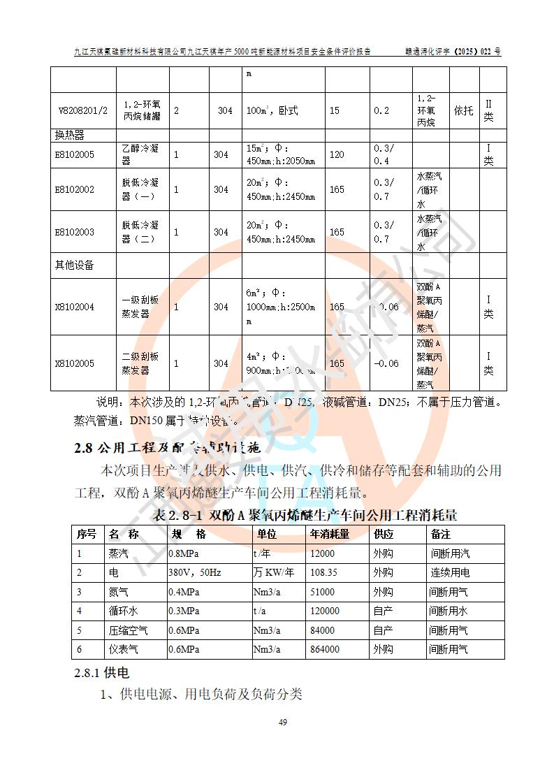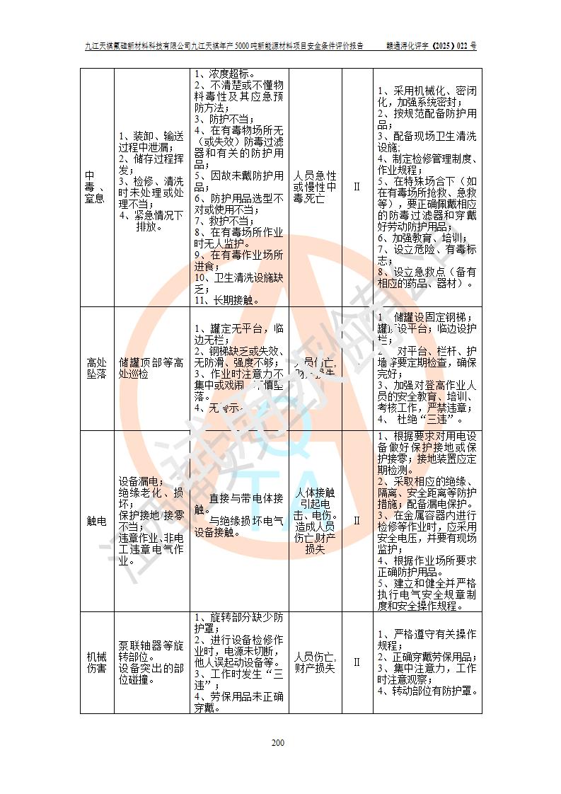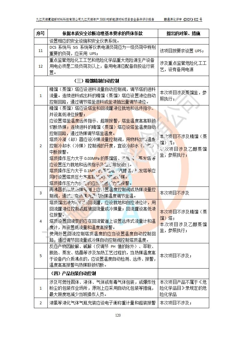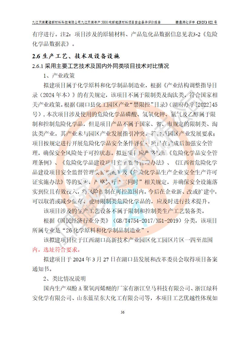 九江天祺氟硅新材料科技有限公司九江天祺年產5000 噸新能源材料項目安全條件評價報告