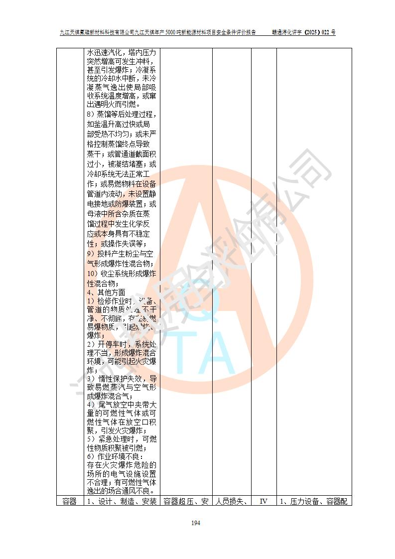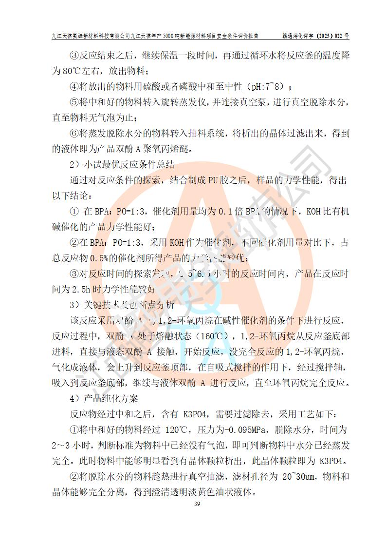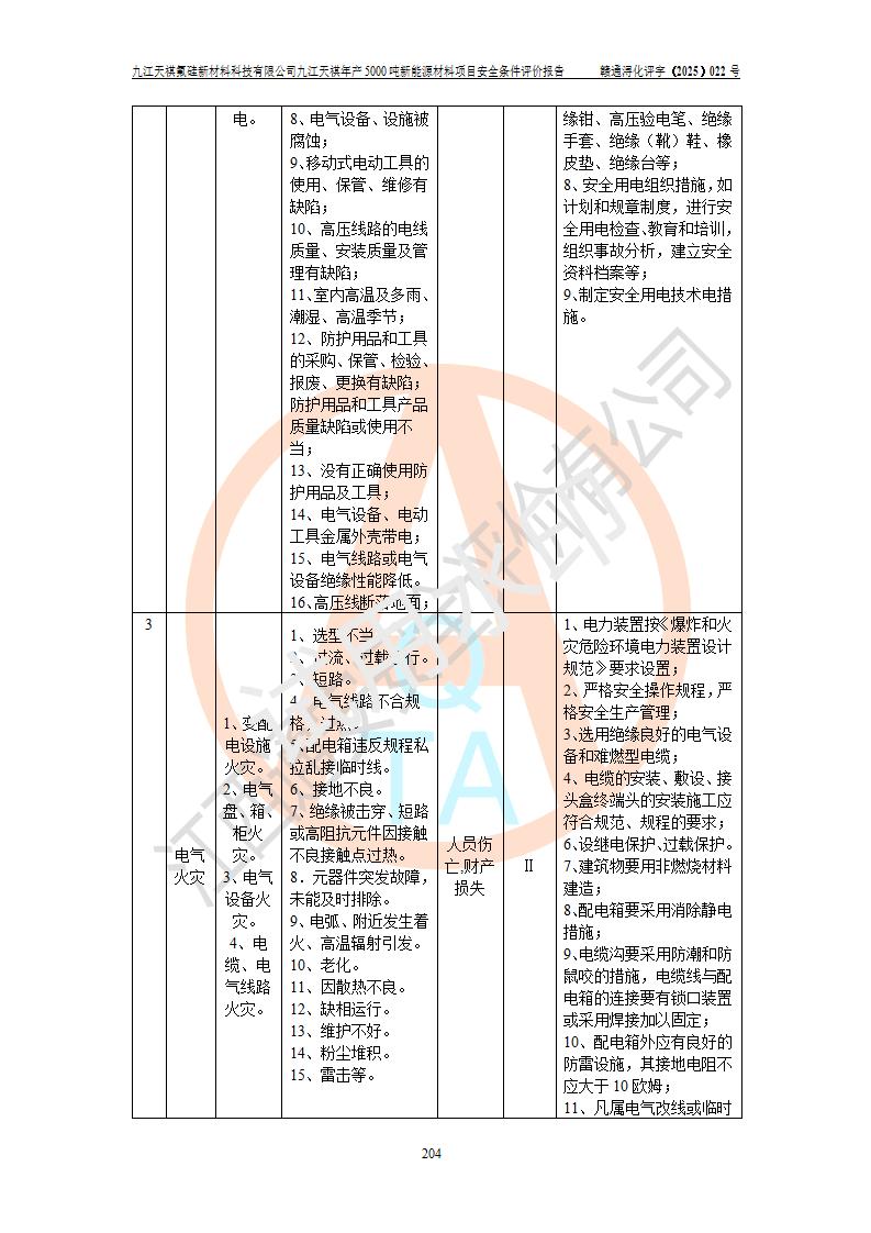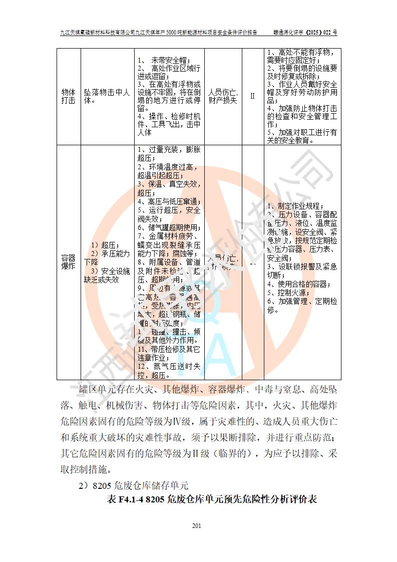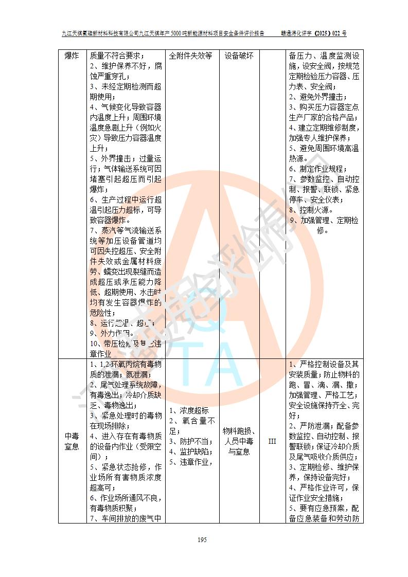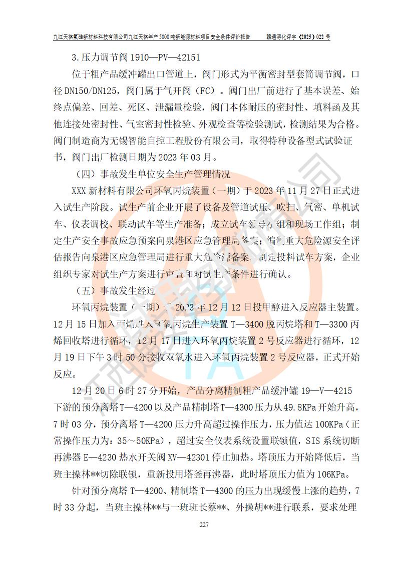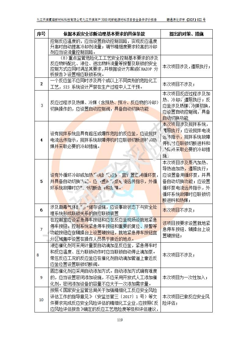 九江天祺氟硅新材料科技有限公司九江天祺年產5000 噸新能源材料項目安全條件評價報告