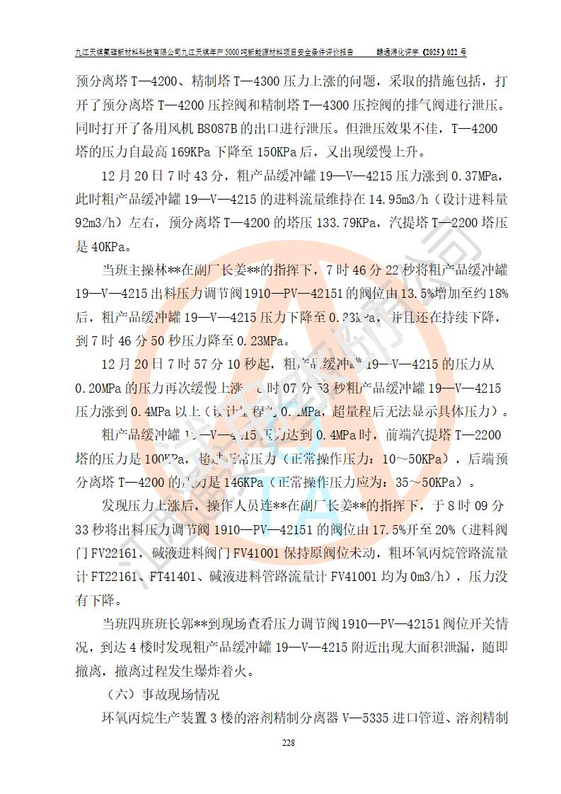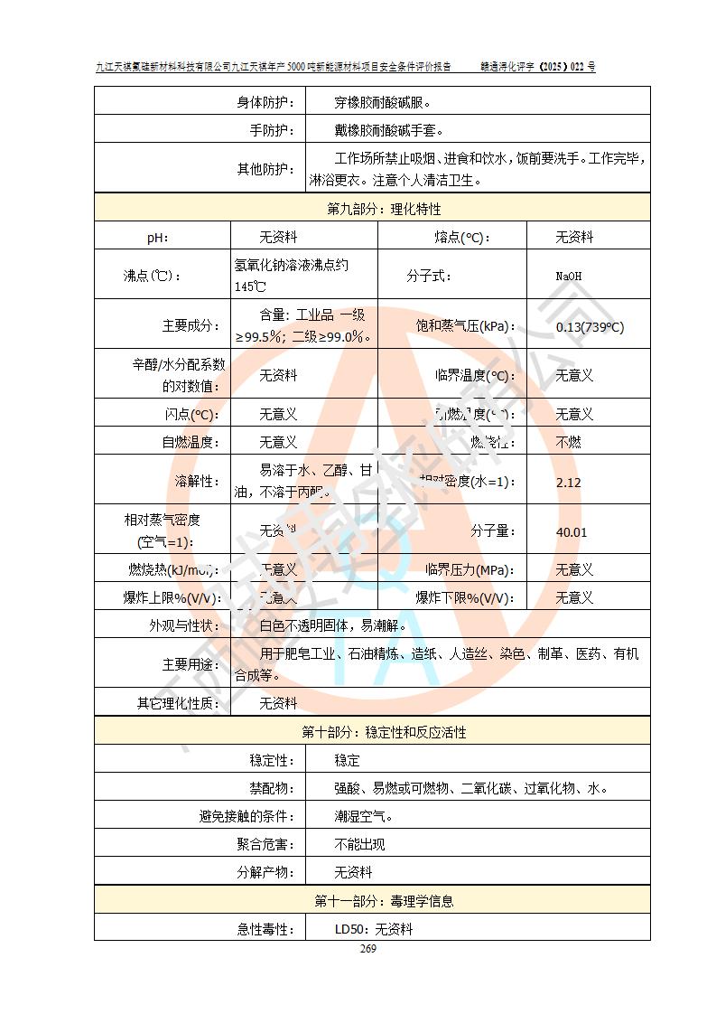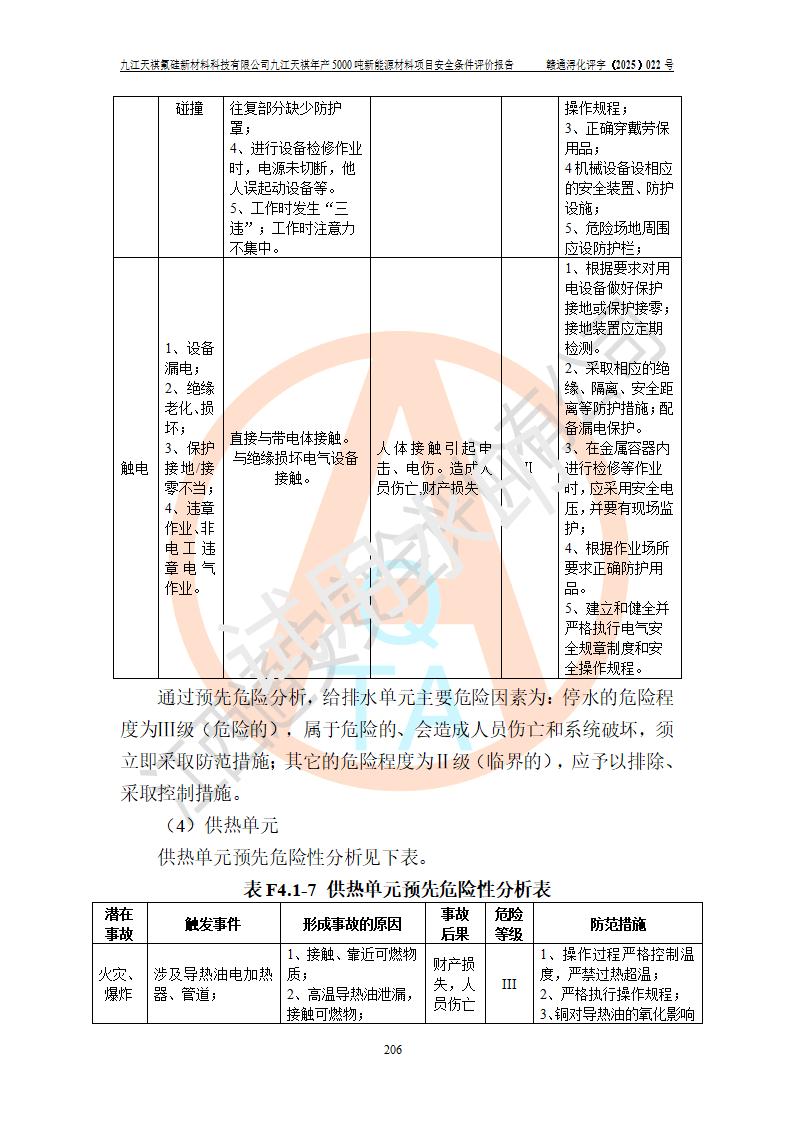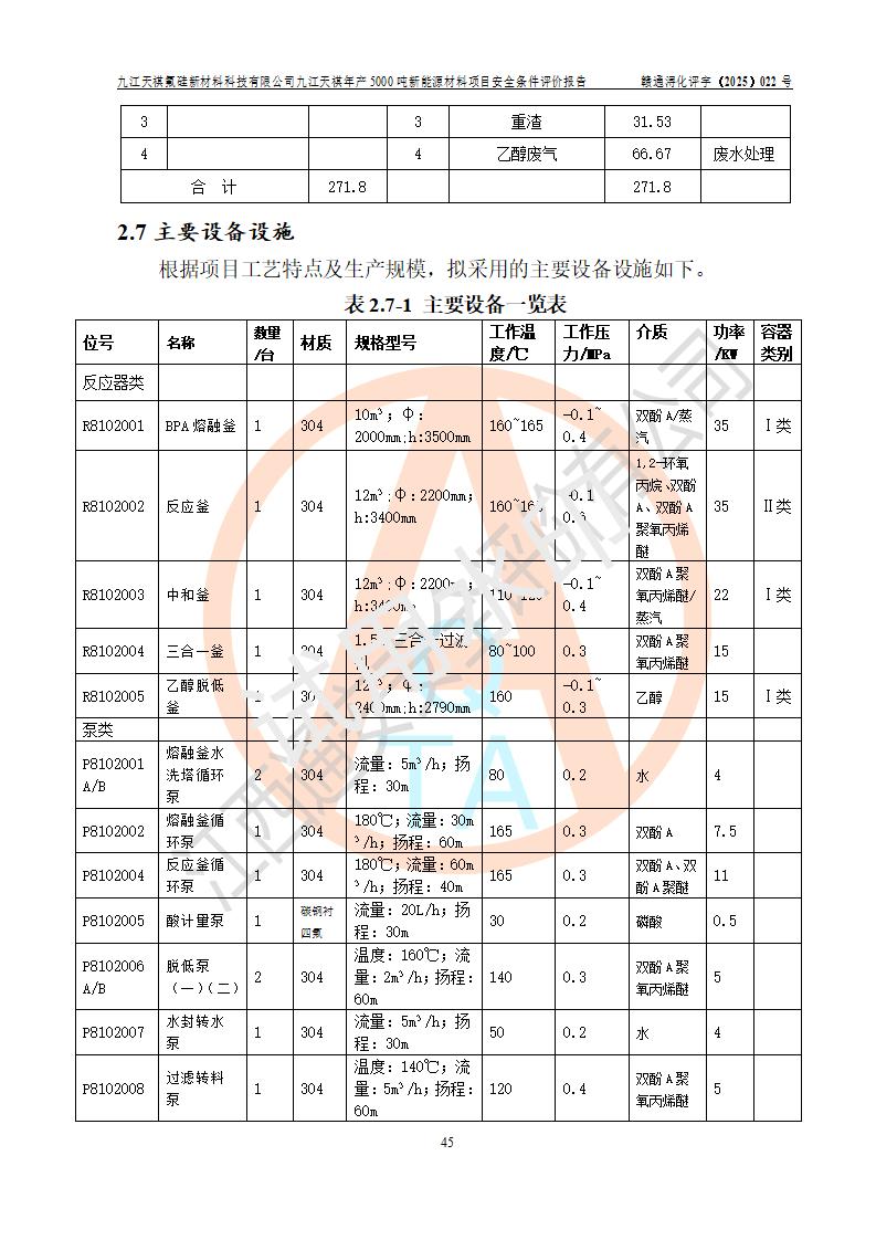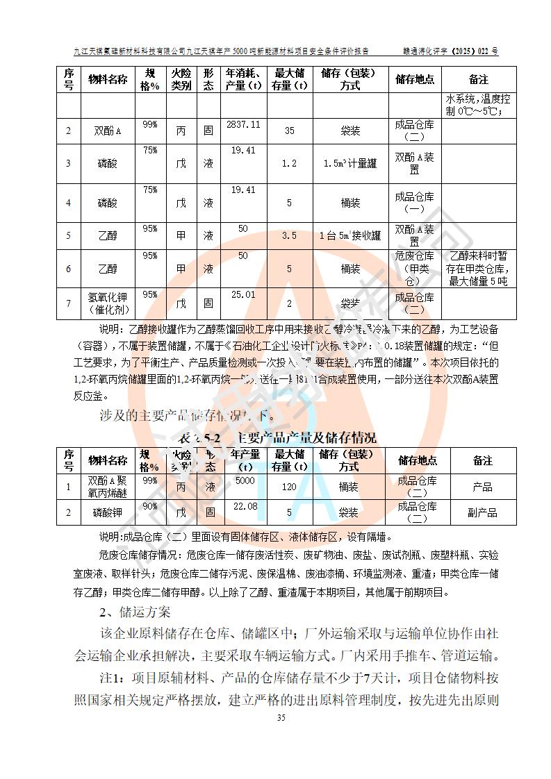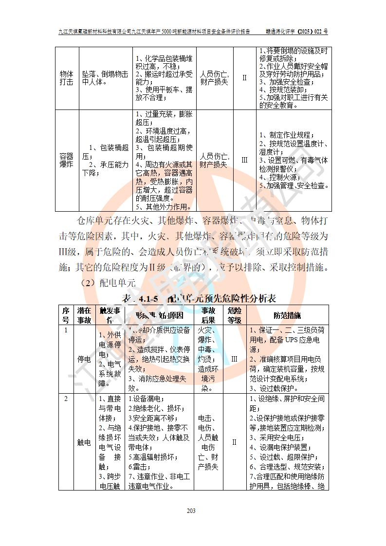 九江天祺氟硅新材料科技有限公司九江天祺年產5000 噸新能源材料項目安全條件評價報告