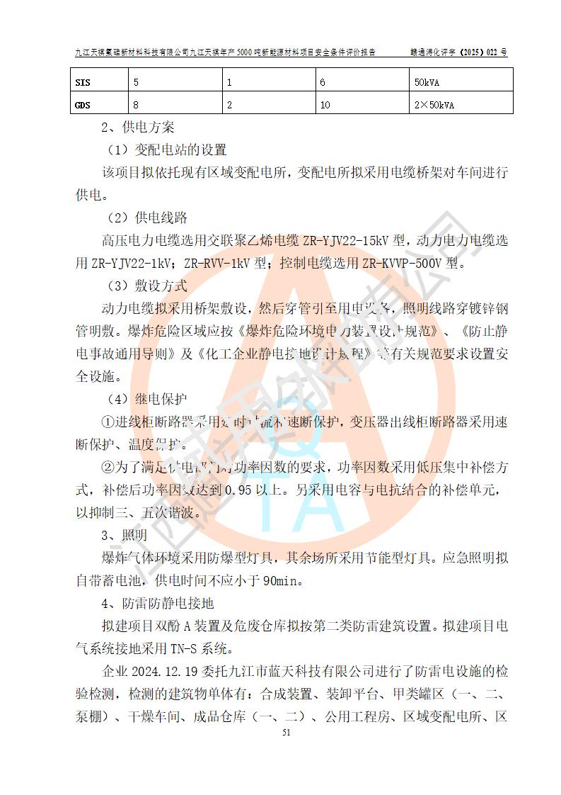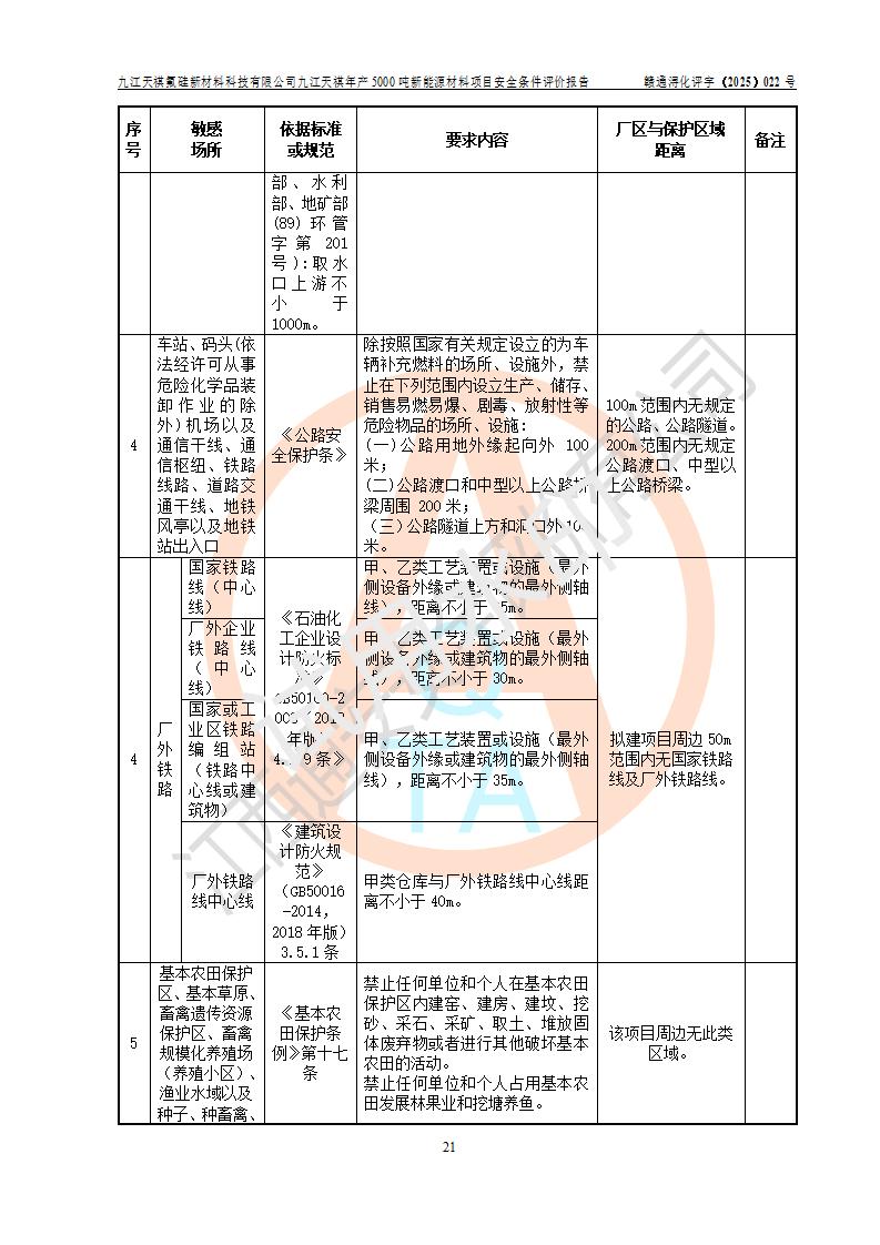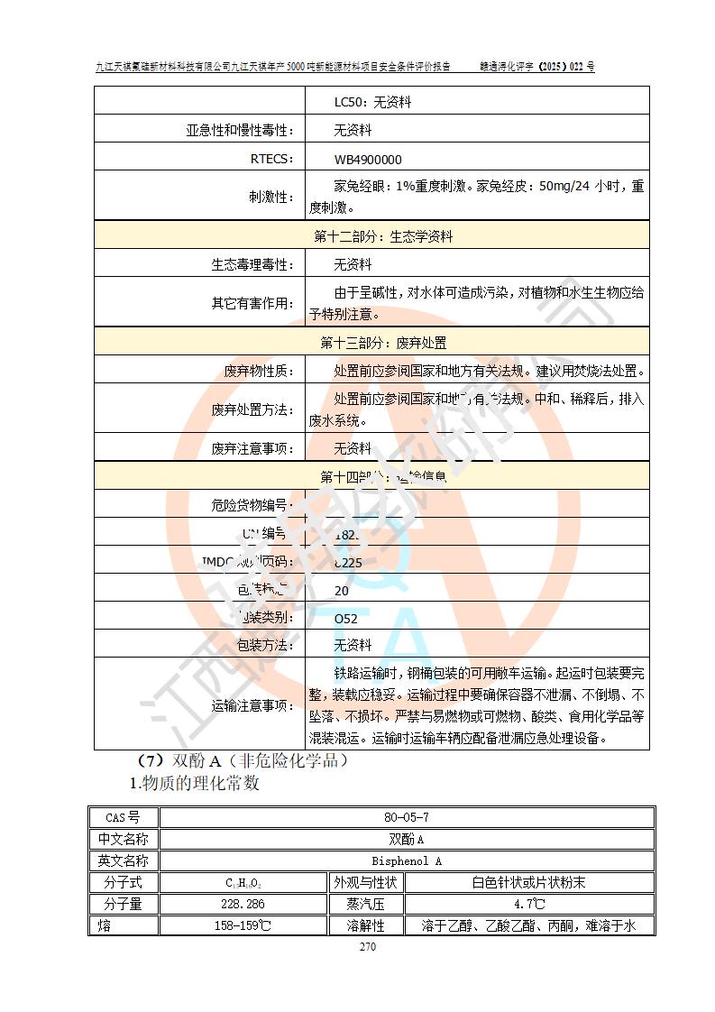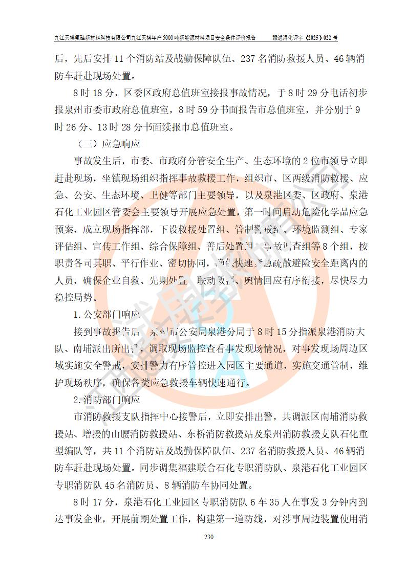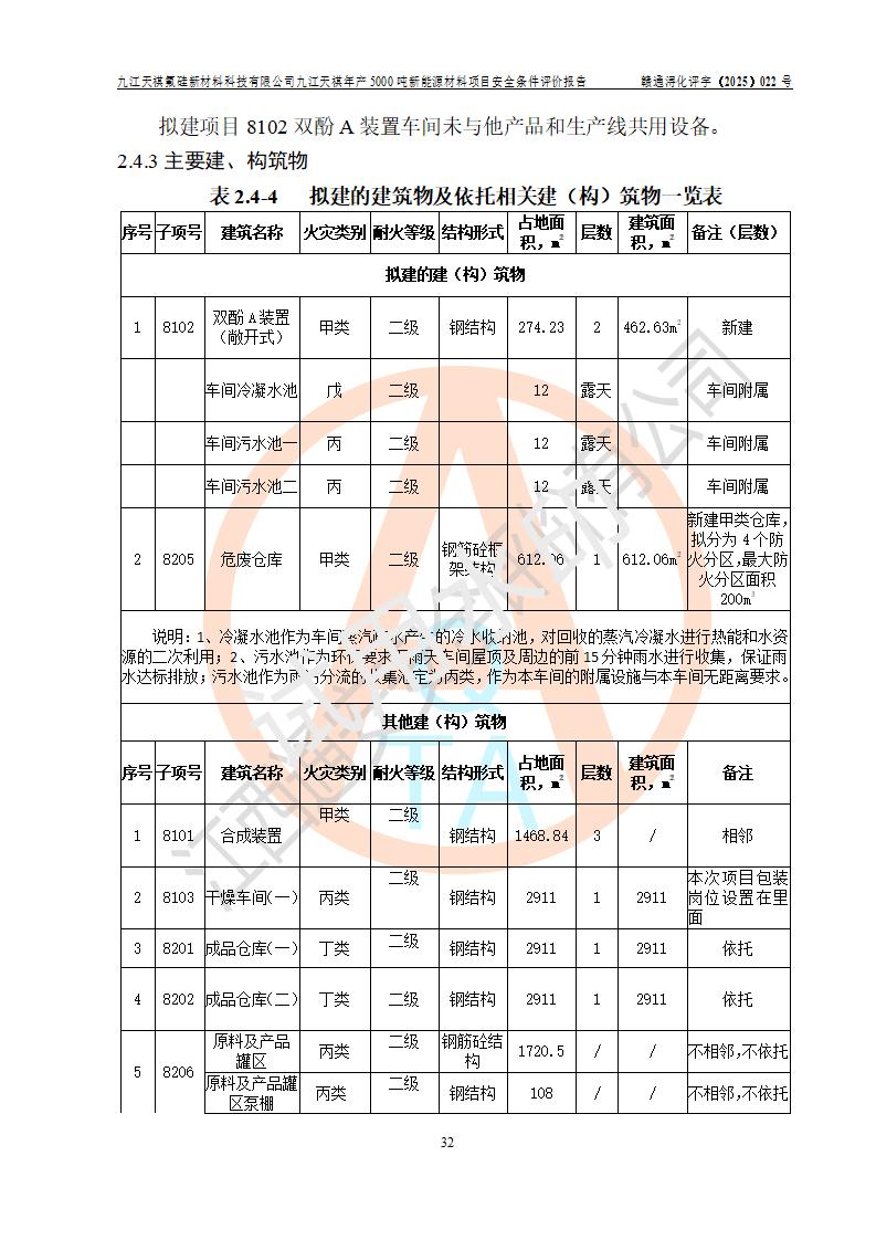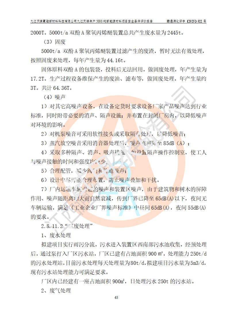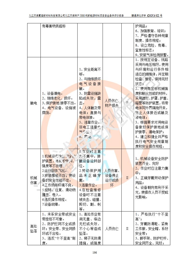 九江天祺氟硅新材料科技有限公司九江天祺年產5000 噸新能源材料項目安全條件評價報告