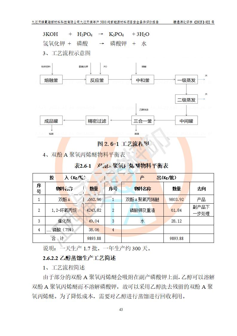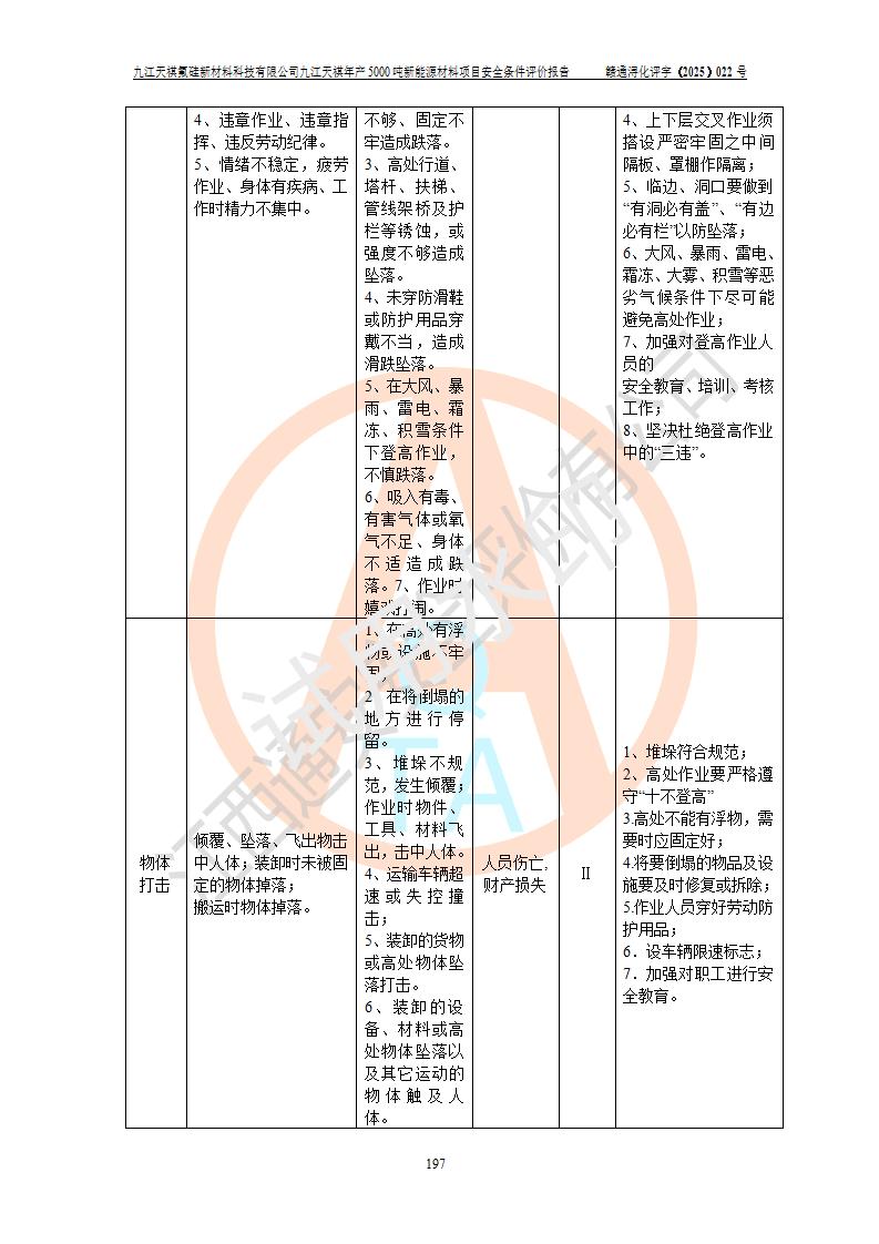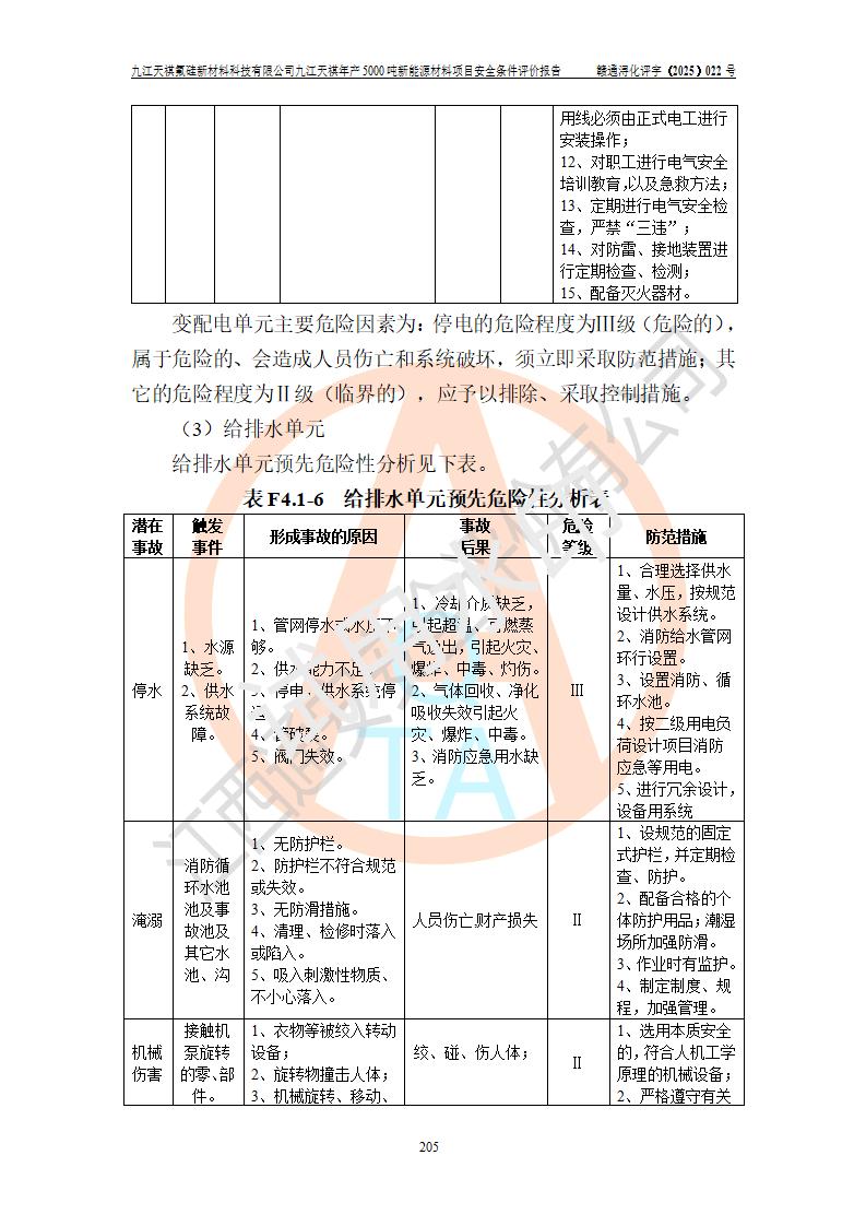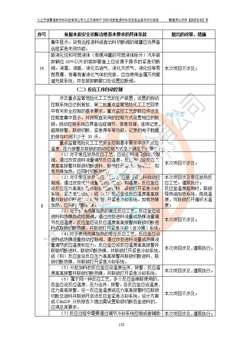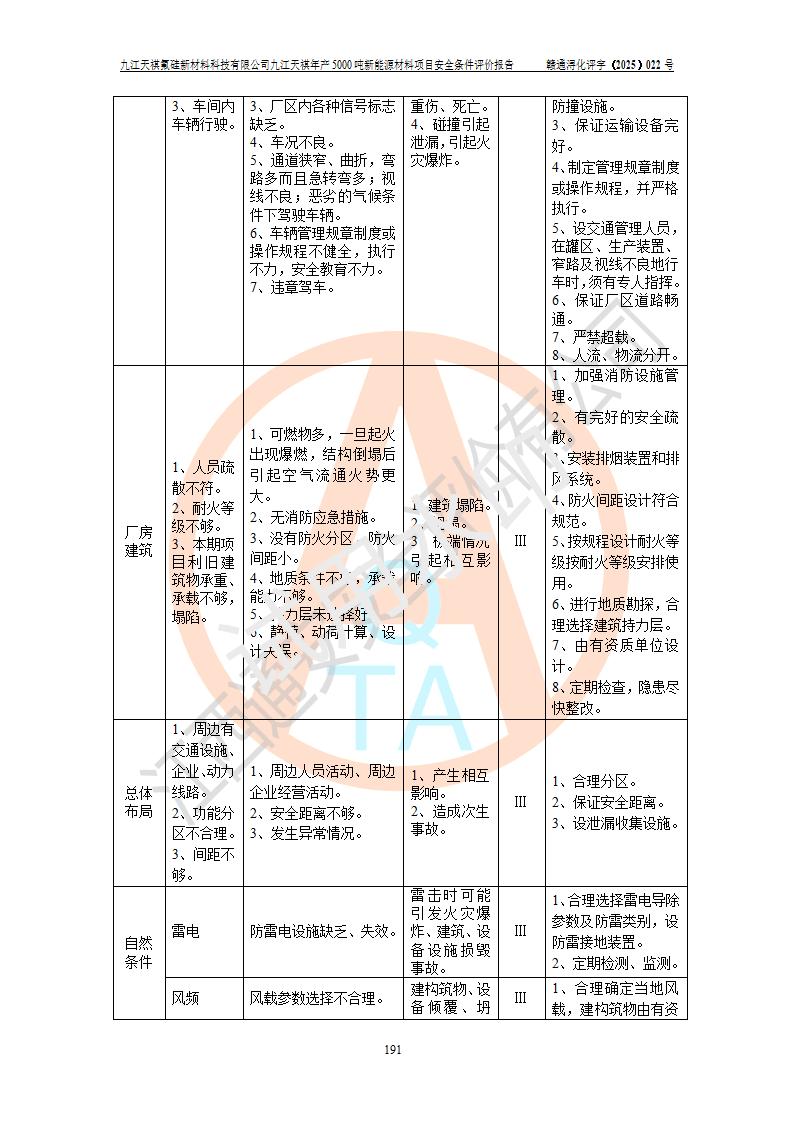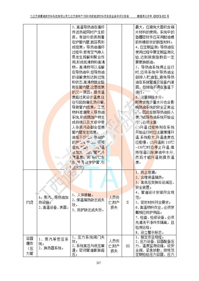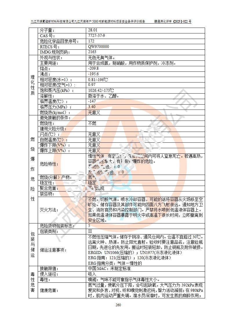 九江天祺氟硅新材料科技有限公司九江天祺年產5000 噸新能源材料項目安全條件評價報告