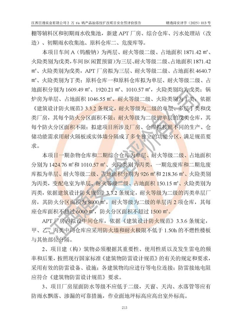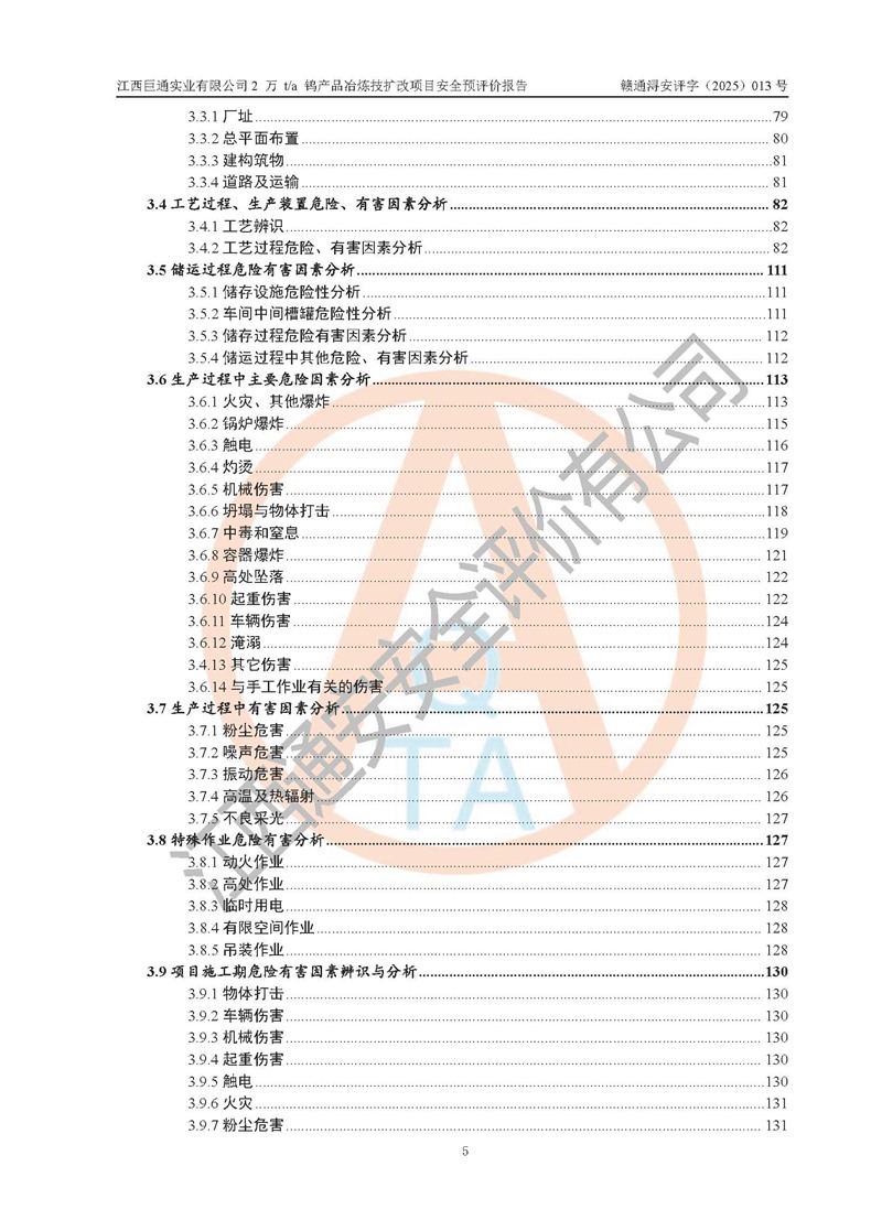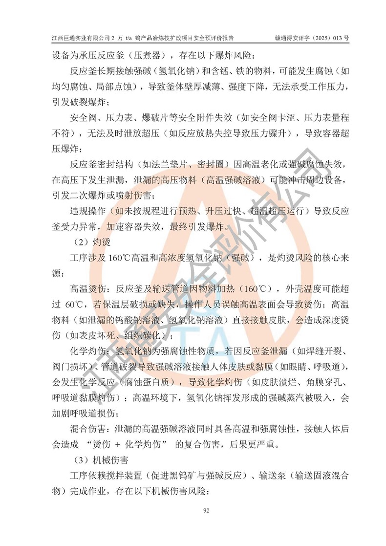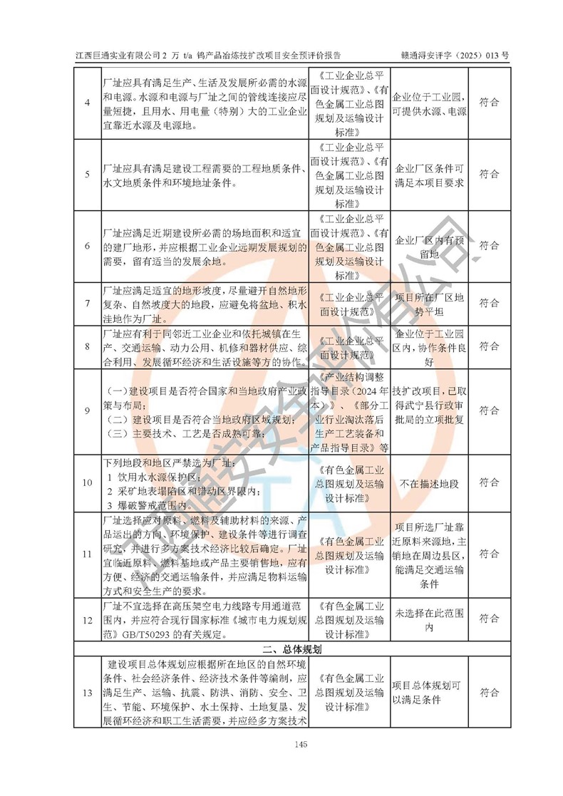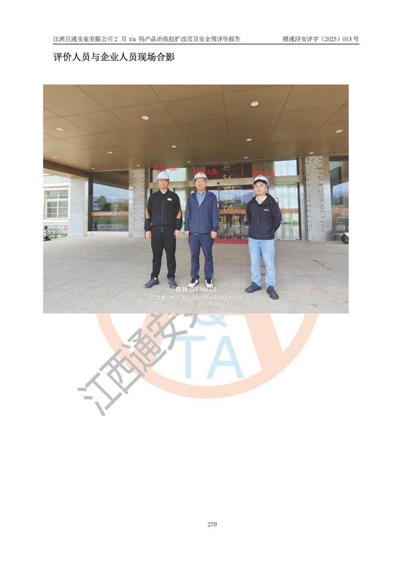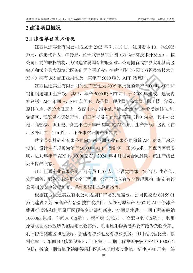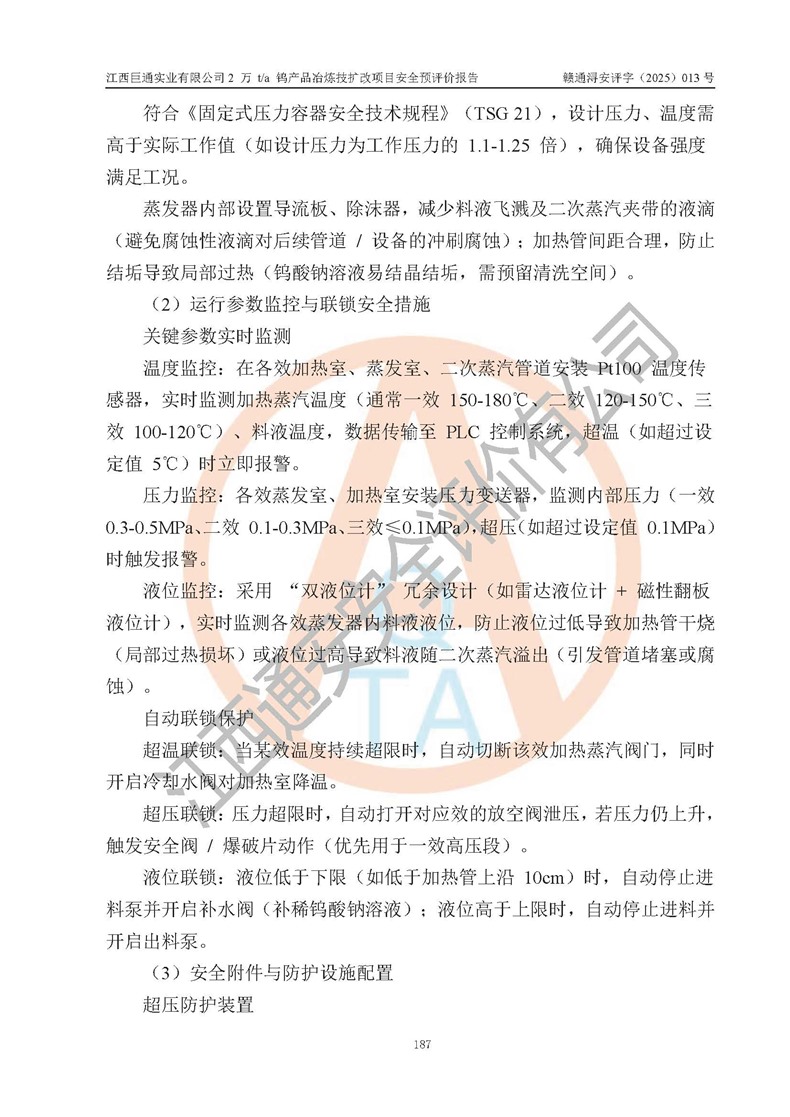 評價報(bào)告名稱 | 江西巨通實(shí)業(yè)有限公司2 萬 t/a 鎢產(chǎn)品冶煉技擴(kuò)改項(xiàng)目安全預(yù)評價報(bào)告 | |||