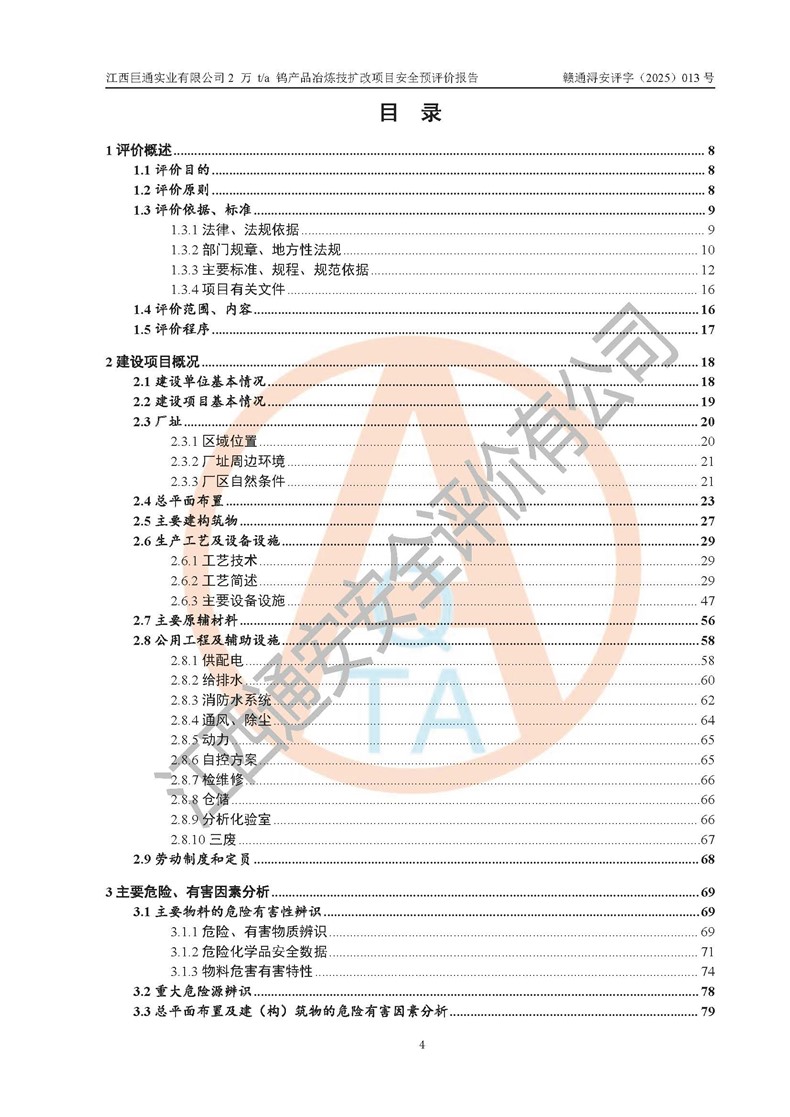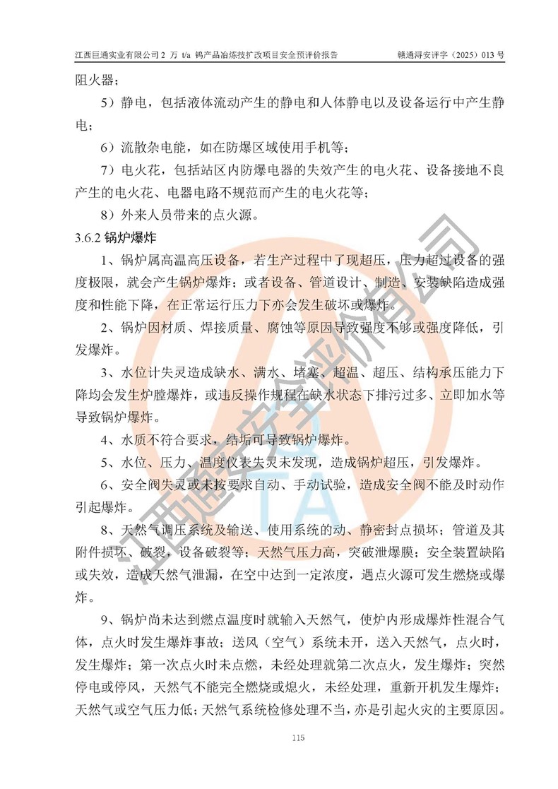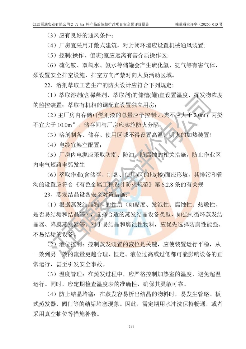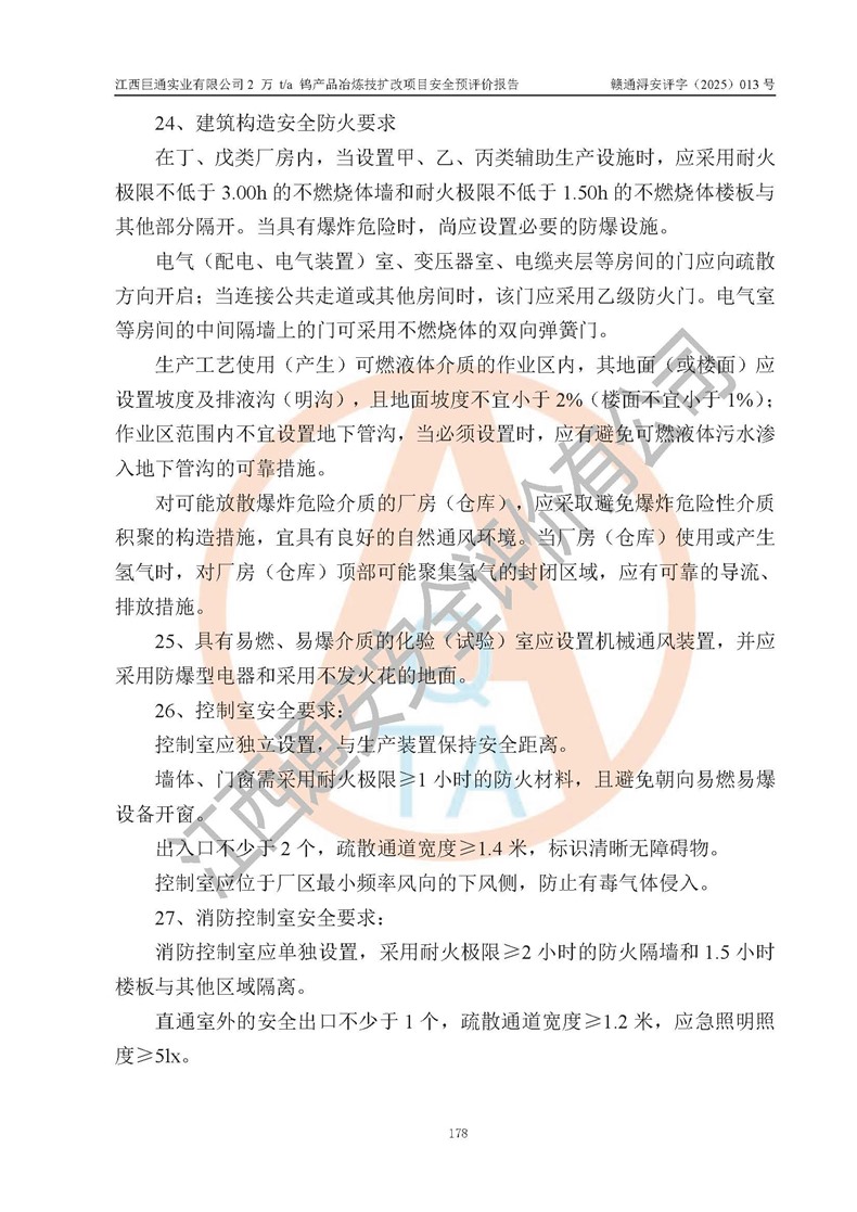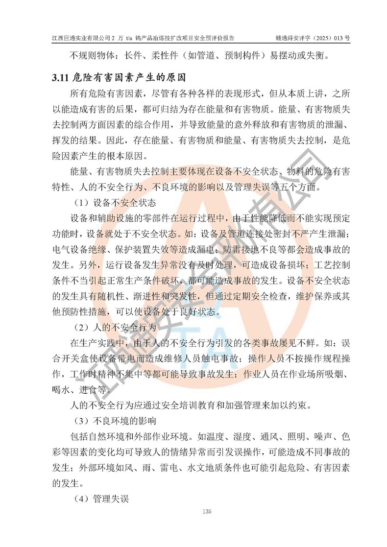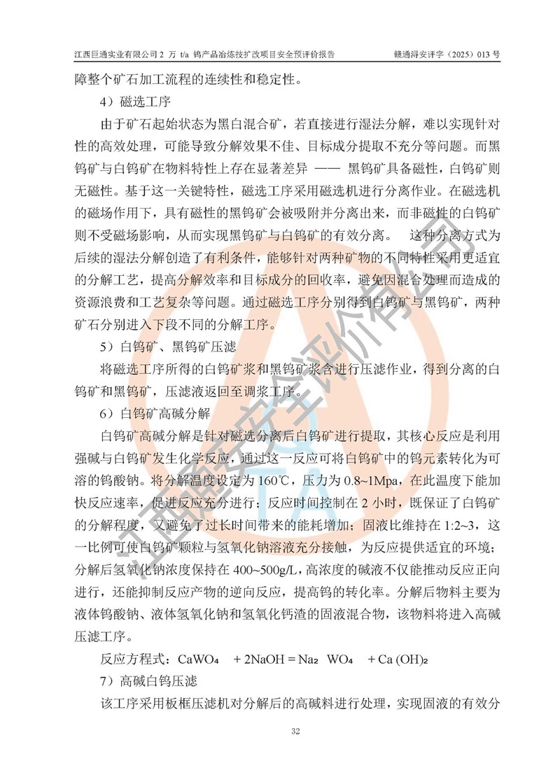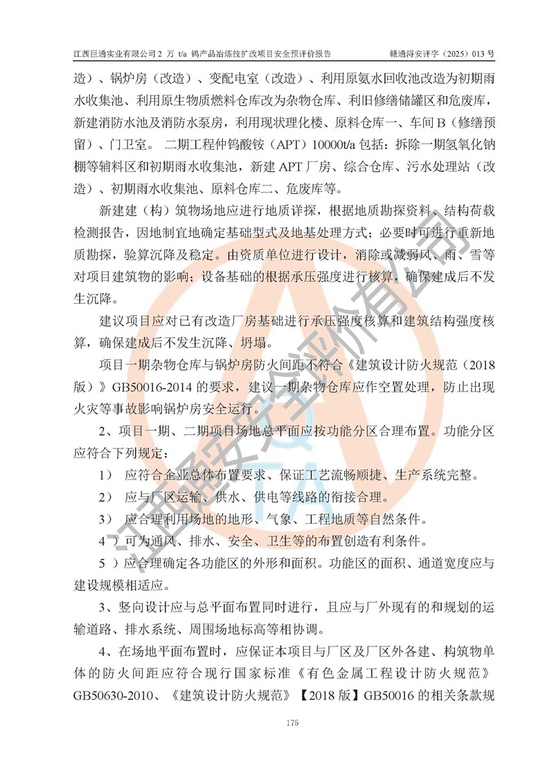 評價報(bào)告名稱 | 江西巨通實(shí)業(yè)有限公司2 萬 t/a 鎢產(chǎn)品冶煉技擴(kuò)改項(xiàng)目安全預(yù)評價報(bào)告 | |||