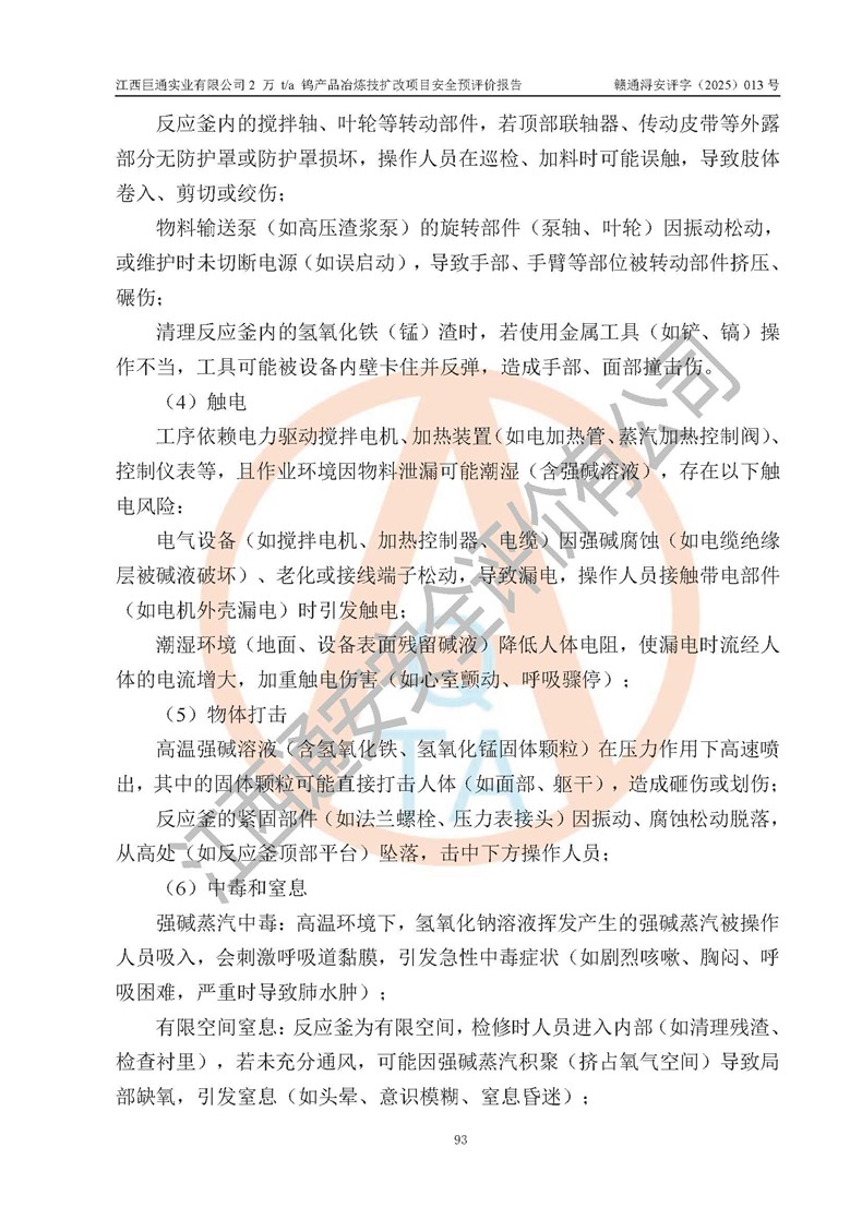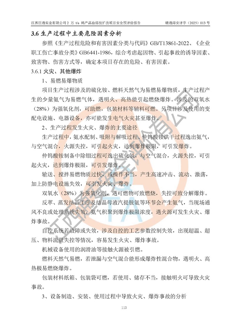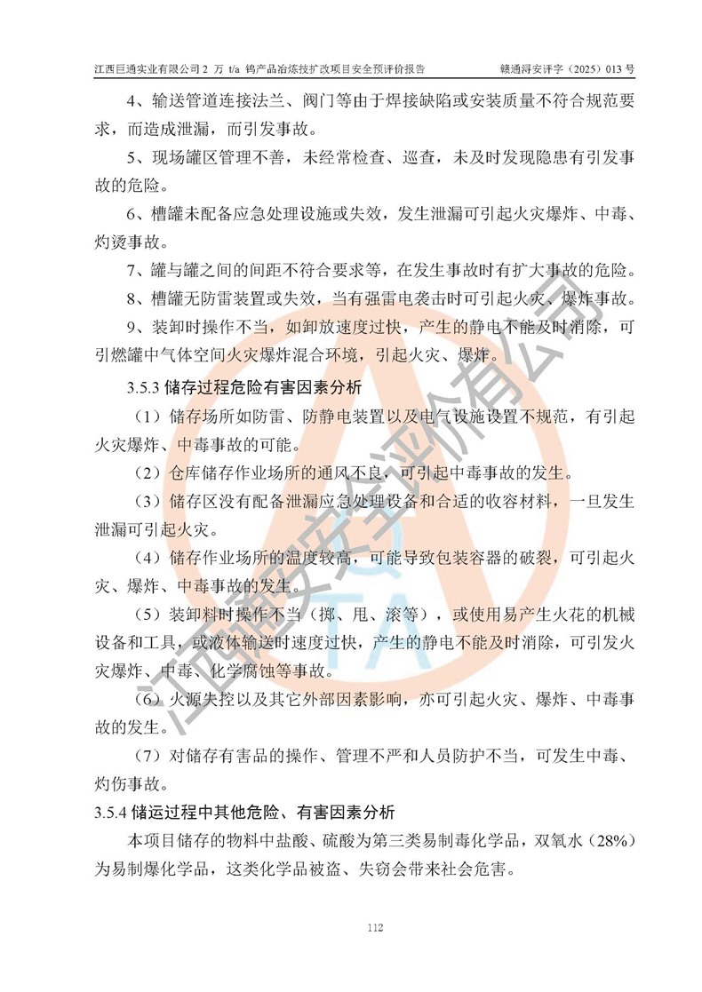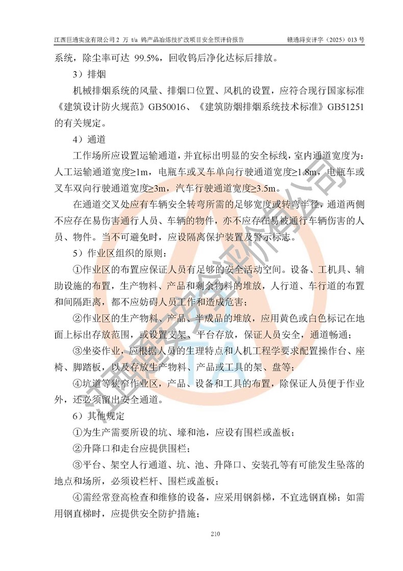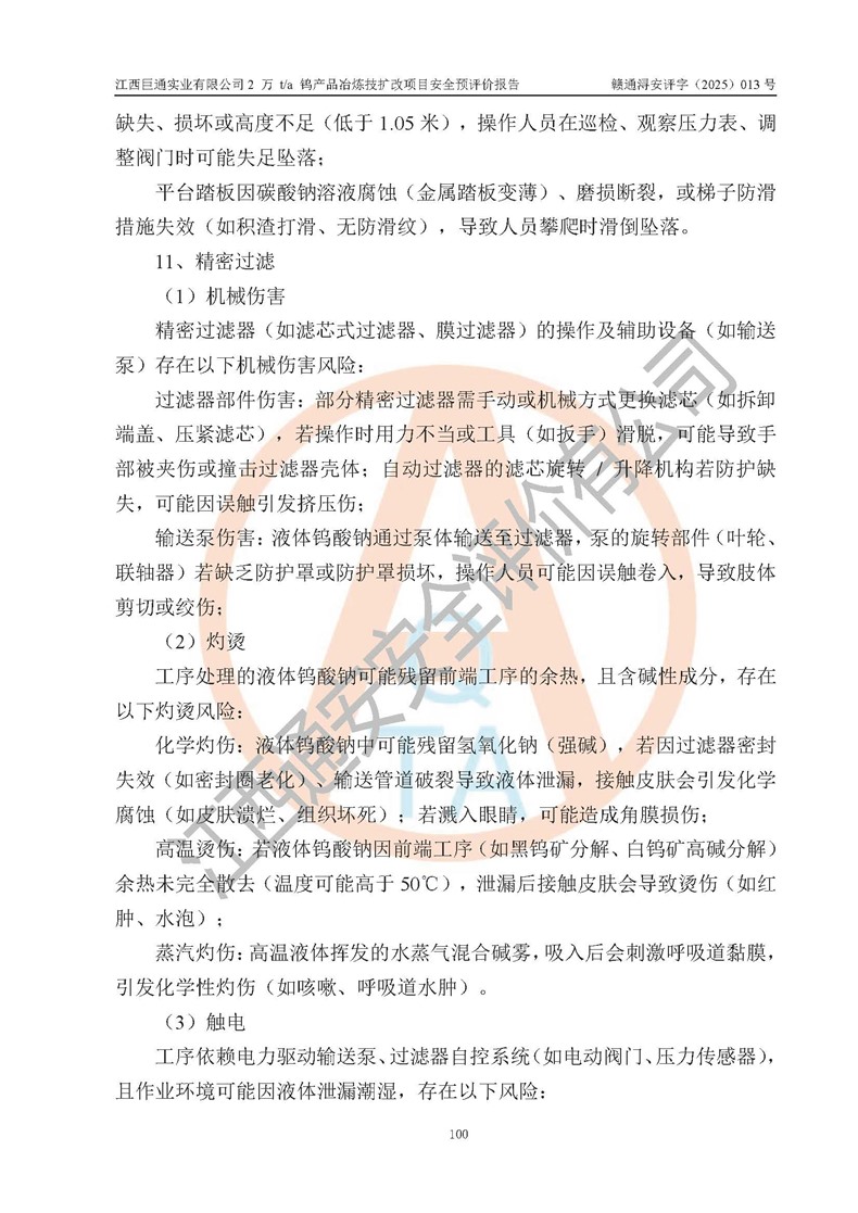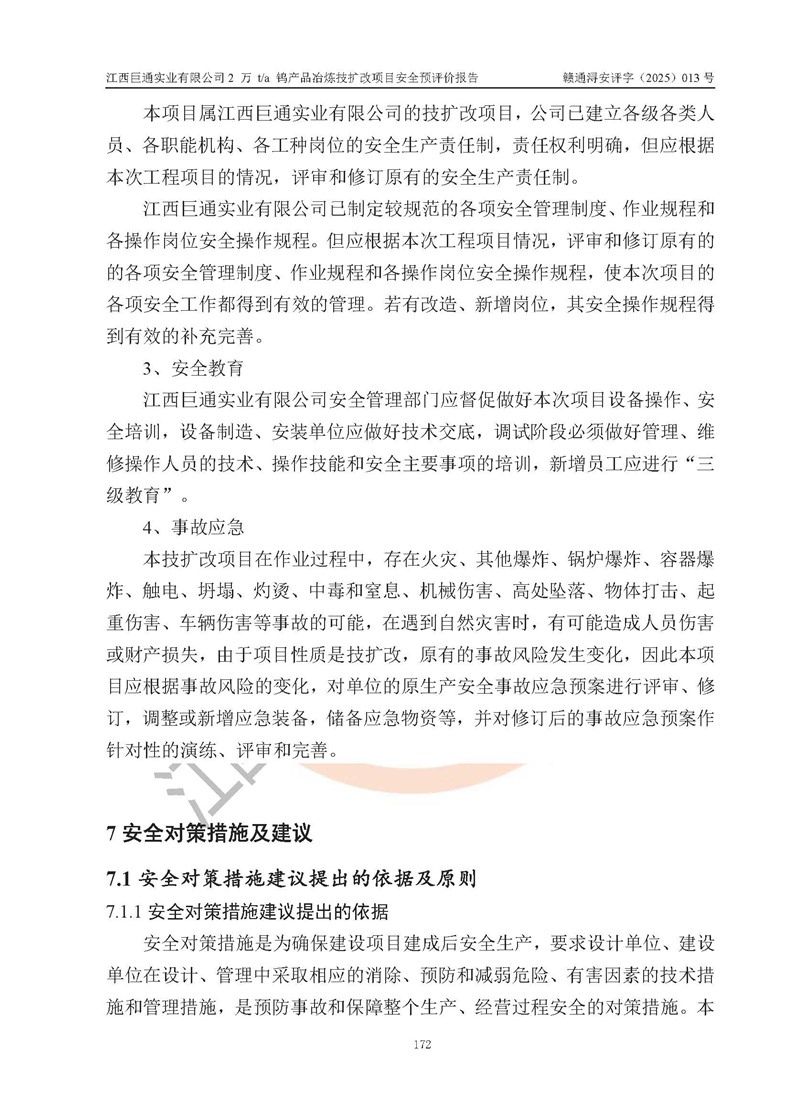 評價報(bào)告名稱 | 江西巨通實(shí)業(yè)有限公司2 萬 t/a 鎢產(chǎn)品冶煉技擴(kuò)改項(xiàng)目安全預(yù)評價報(bào)告 | |||