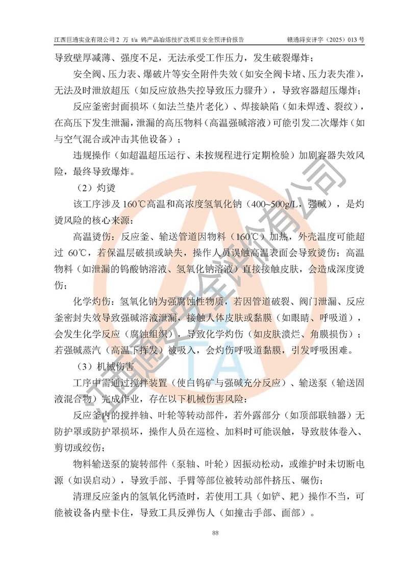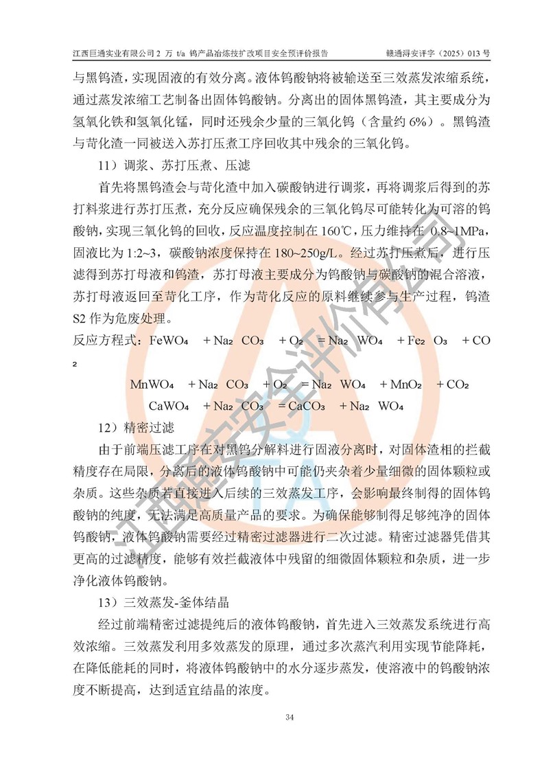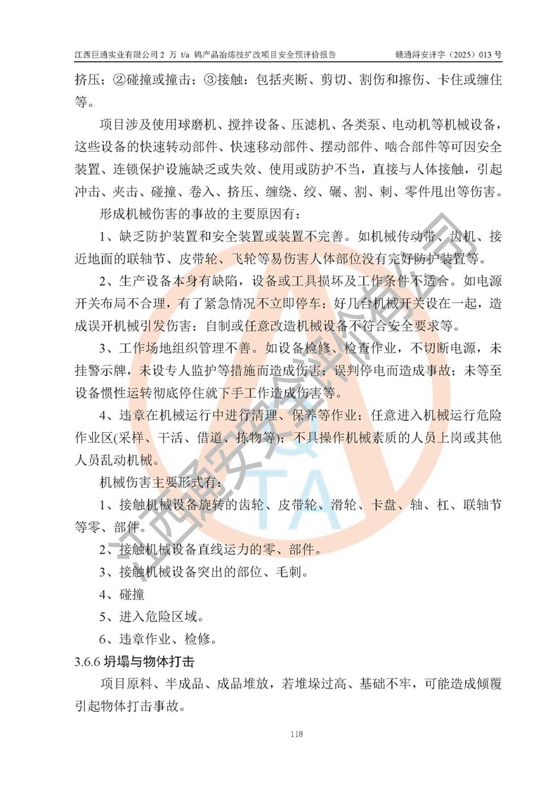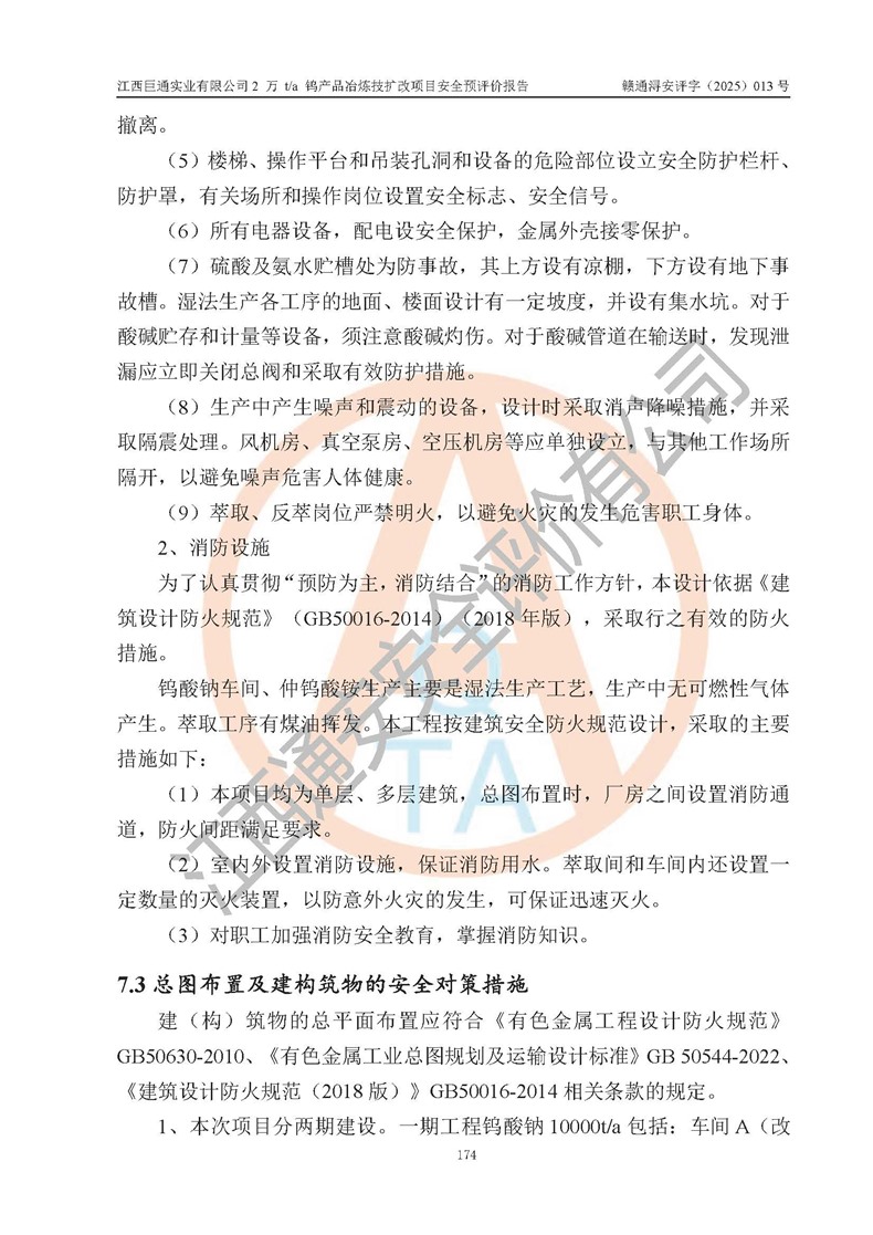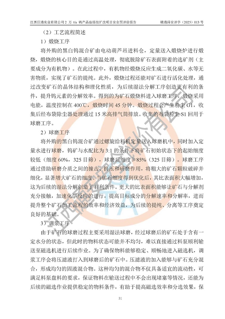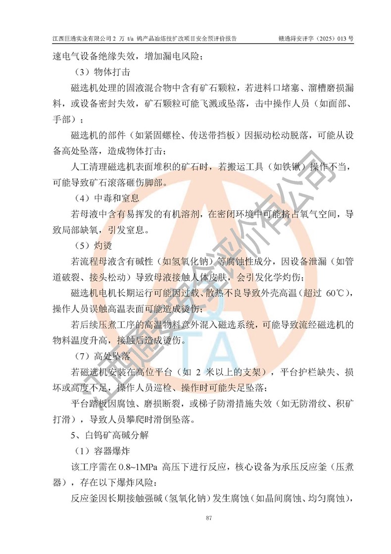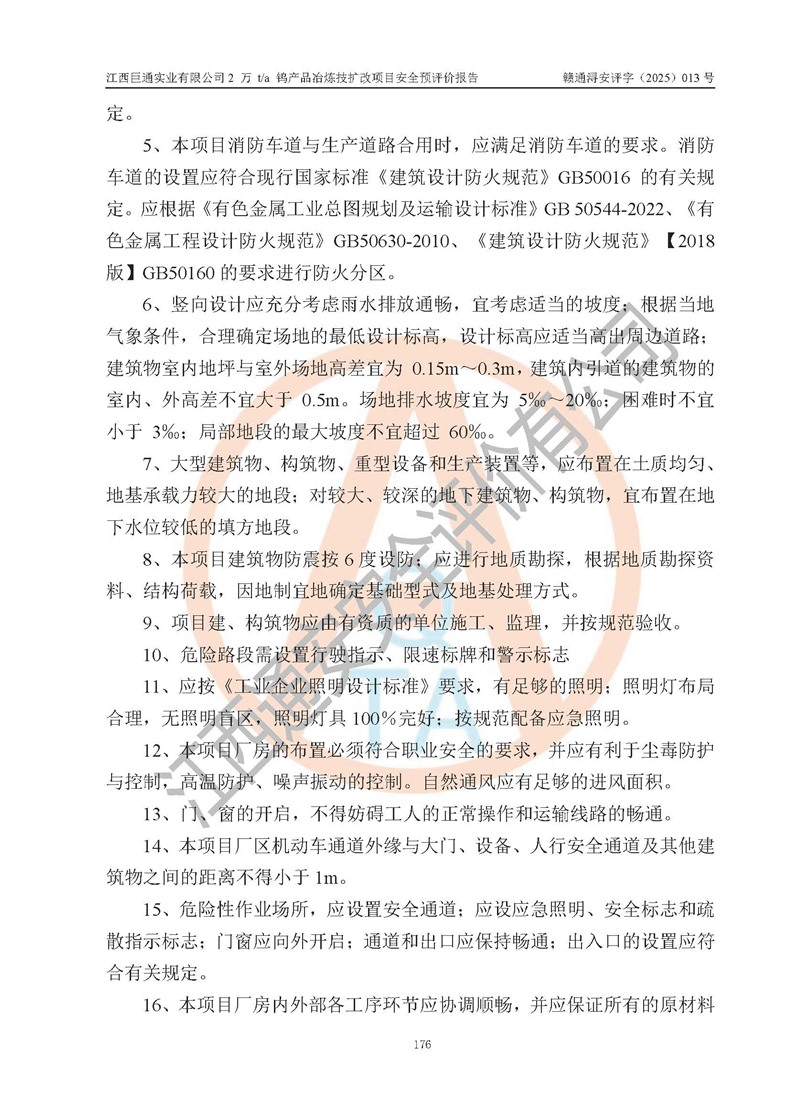 評價報(bào)告名稱 | 江西巨通實(shí)業(yè)有限公司2 萬 t/a 鎢產(chǎn)品冶煉技擴(kuò)改項(xiàng)目安全預(yù)評價報(bào)告 | |||