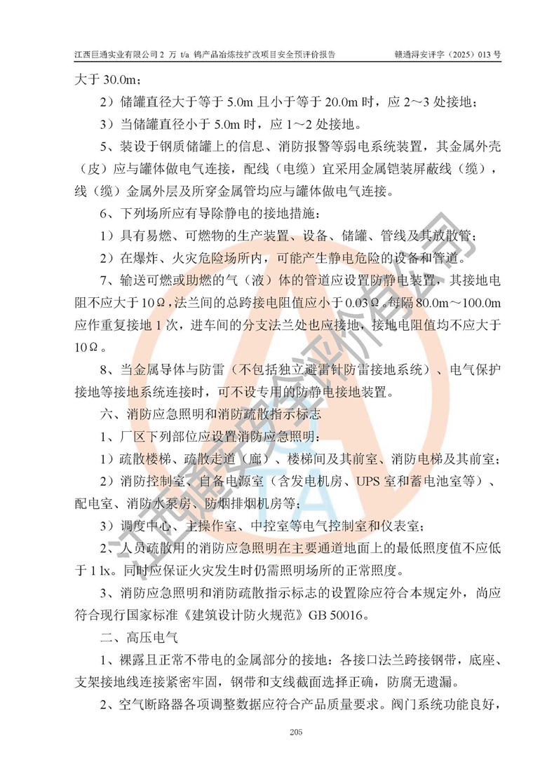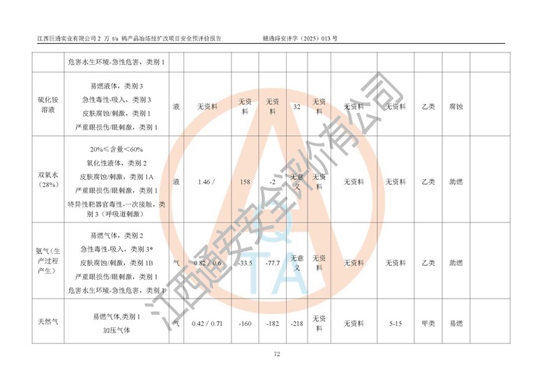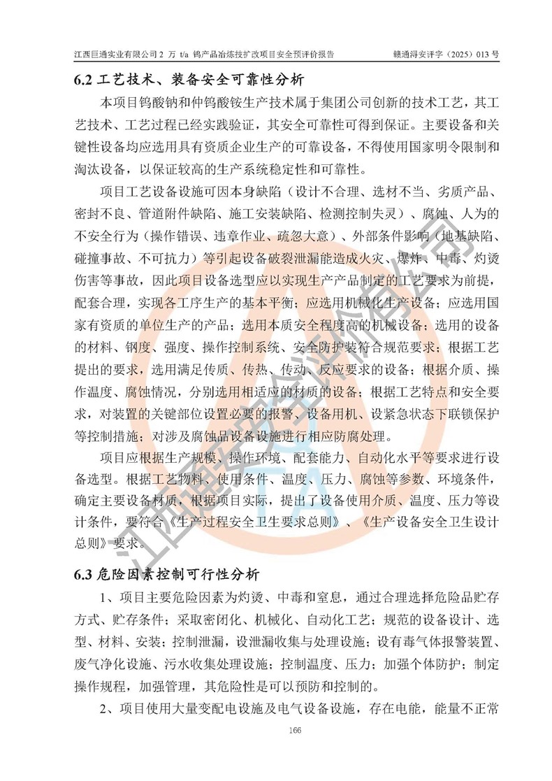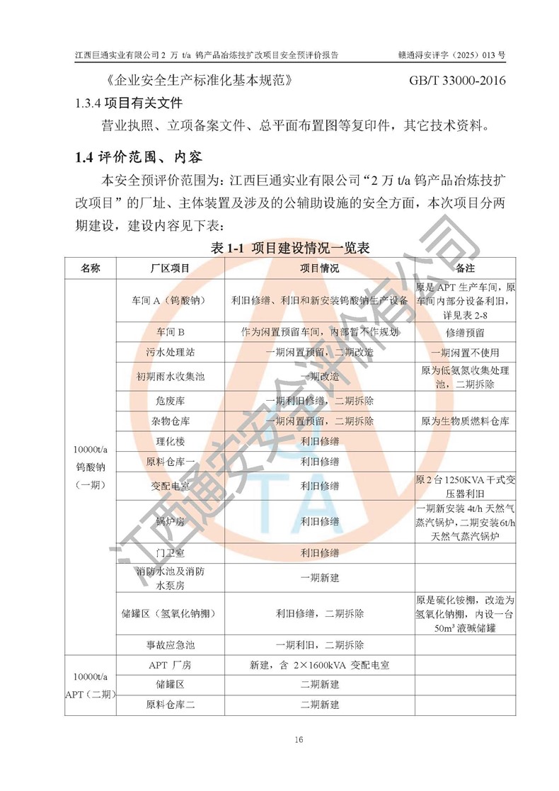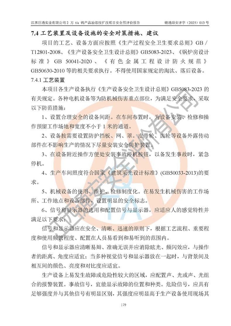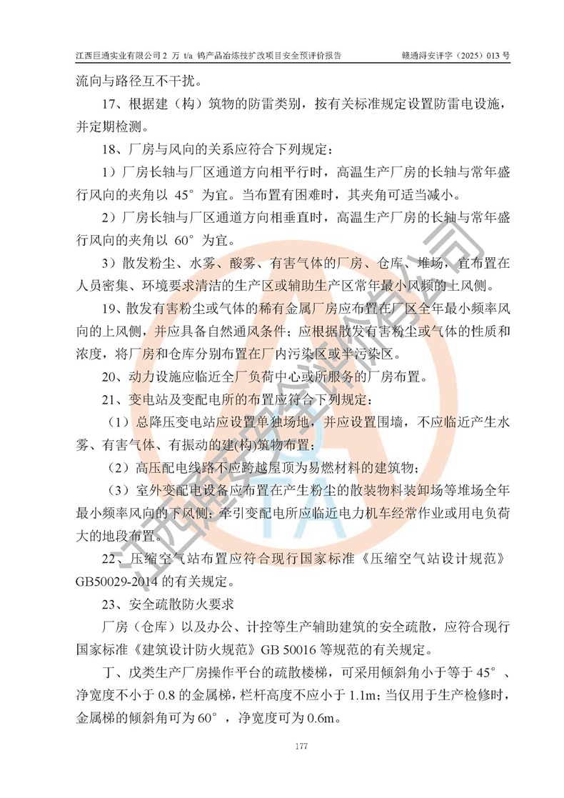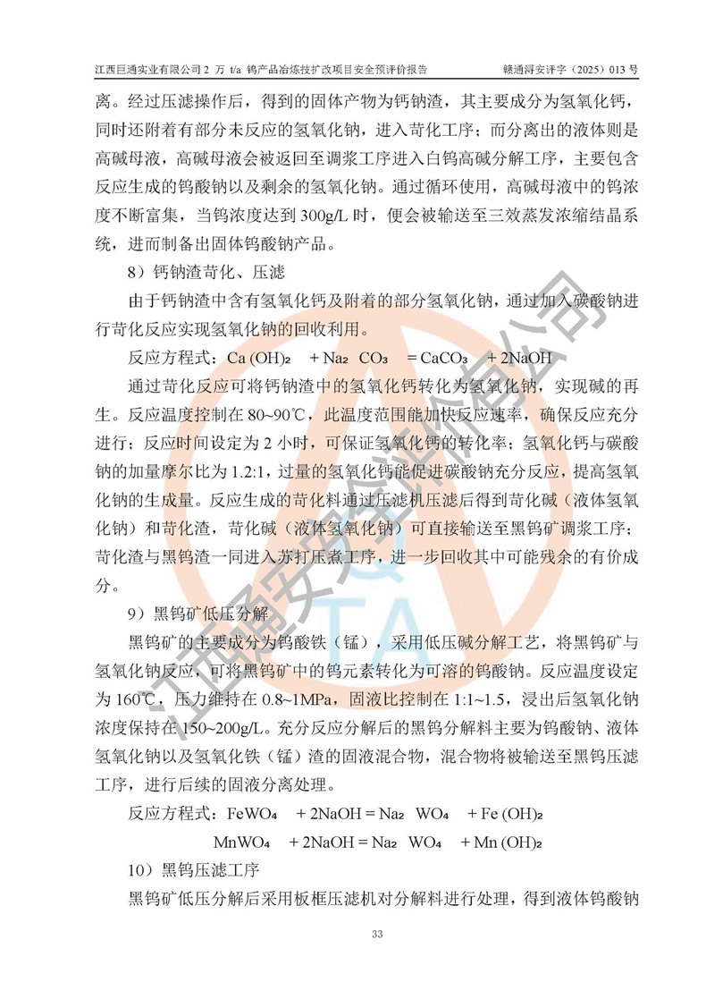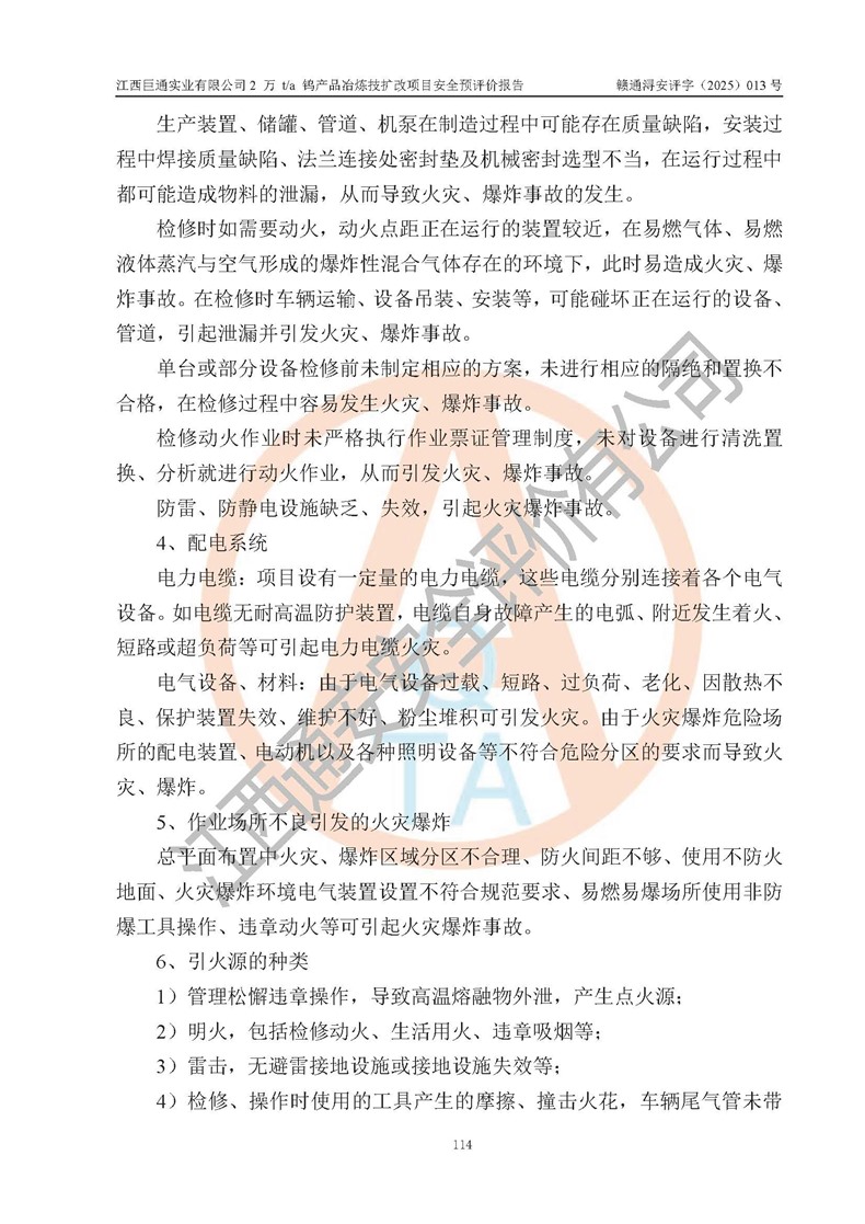評價報(bào)告名稱 | 江西巨通實(shí)業(yè)有限公司2 萬 t/a 鎢產(chǎn)品冶煉技擴(kuò)改項(xiàng)目安全預(yù)評價報(bào)告 | |||