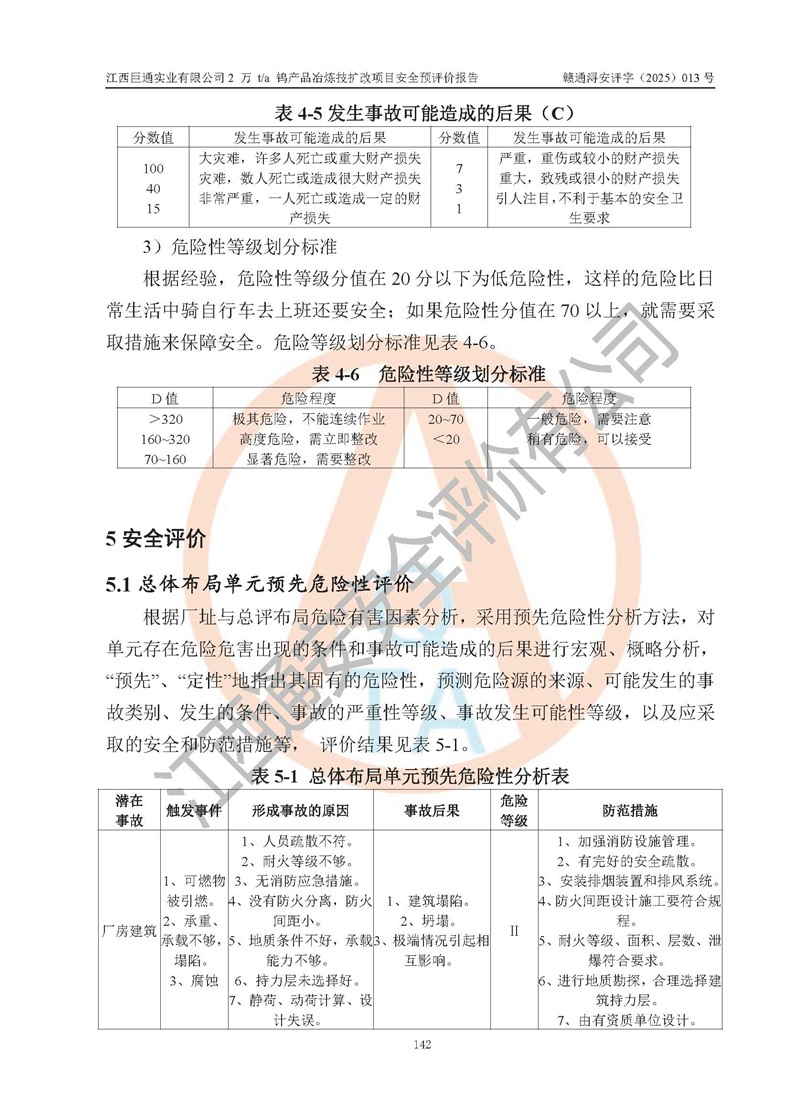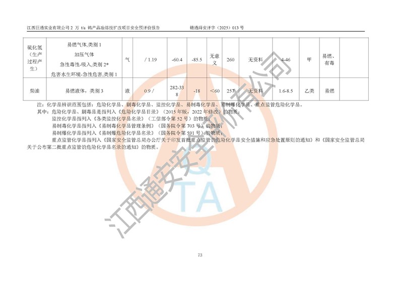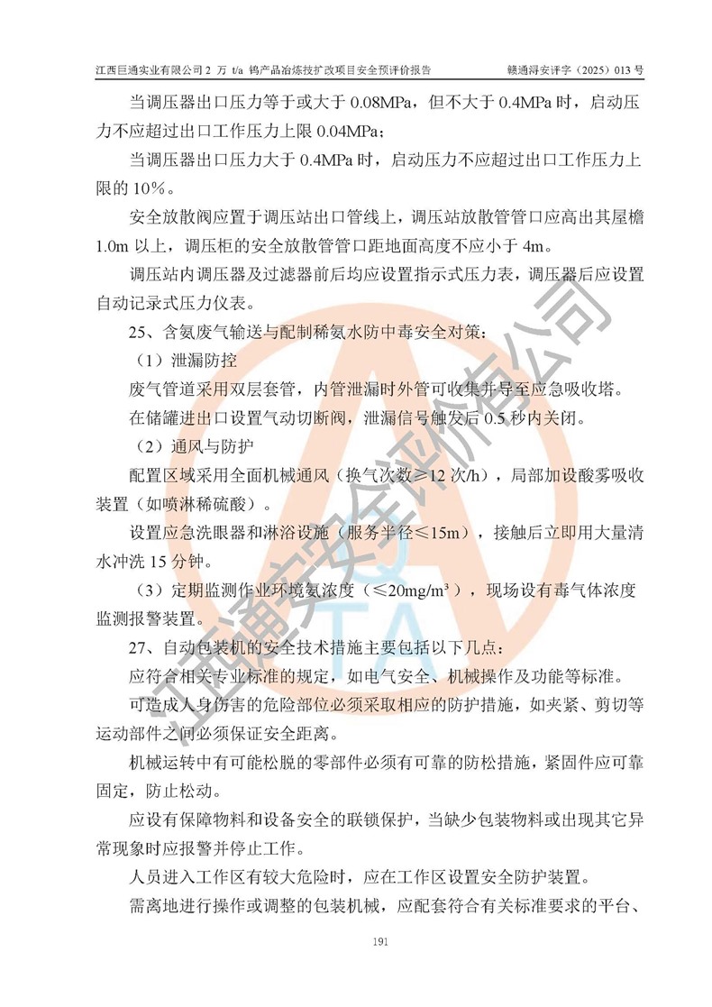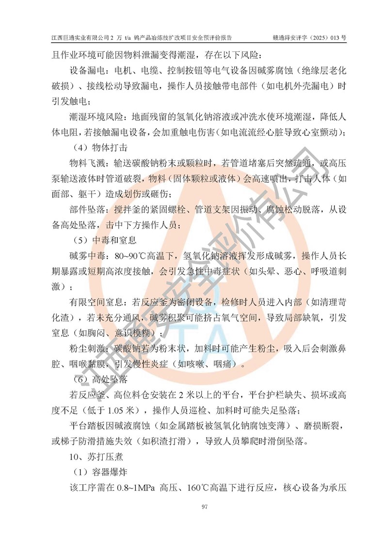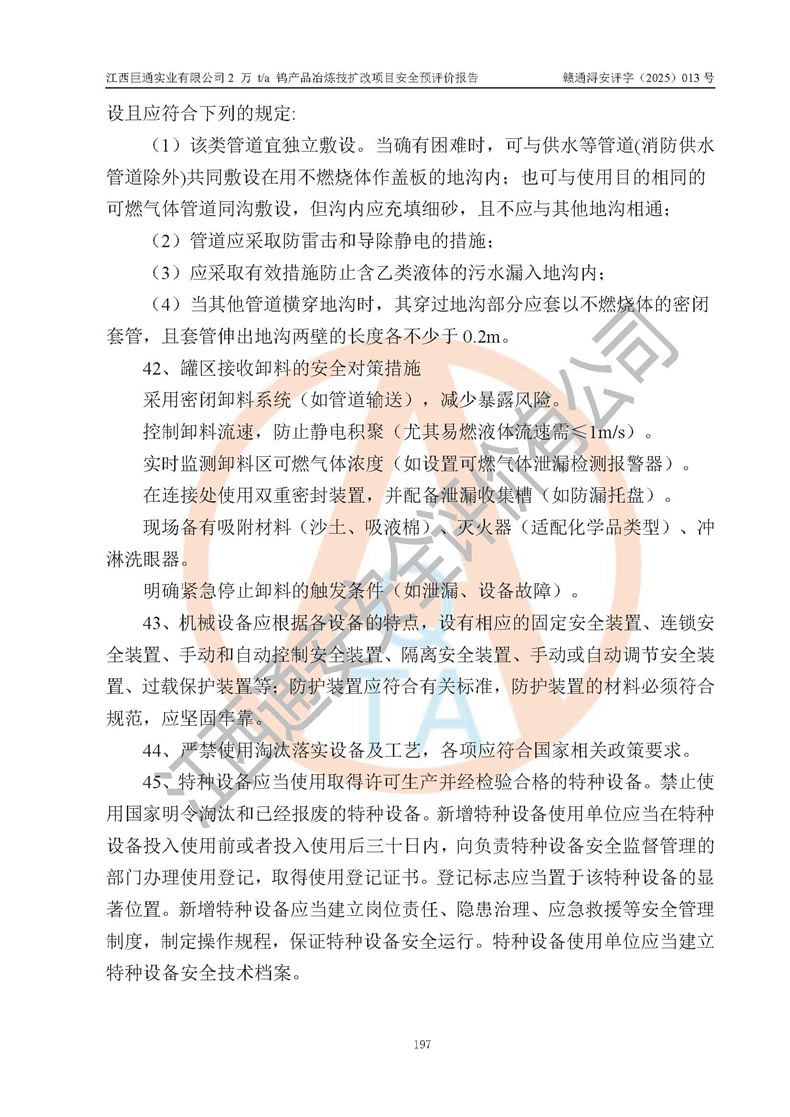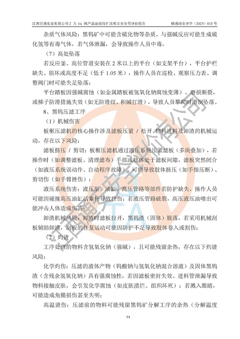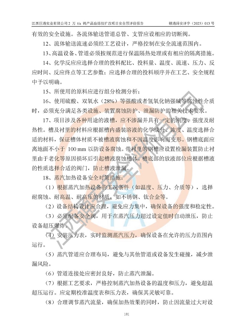 評價報(bào)告名稱 | 江西巨通實(shí)業(yè)有限公司2 萬 t/a 鎢產(chǎn)品冶煉技擴(kuò)改項(xiàng)目安全預(yù)評價報(bào)告 | |||