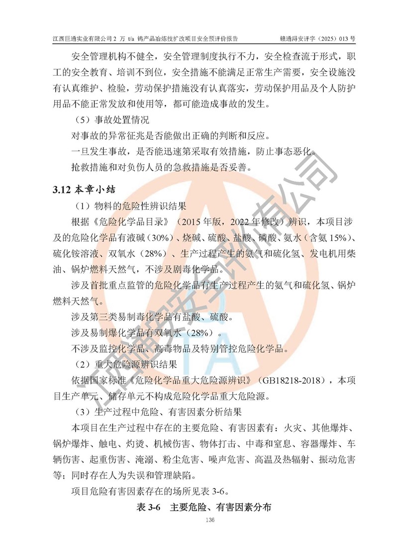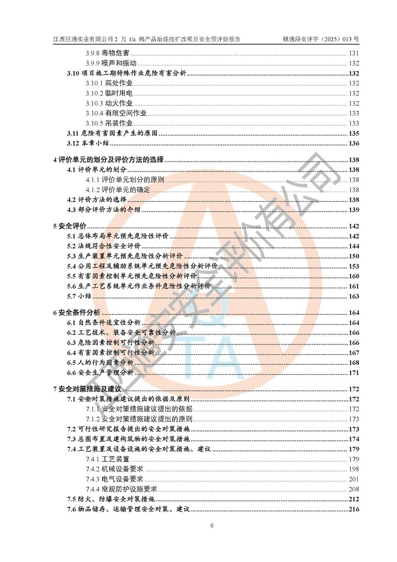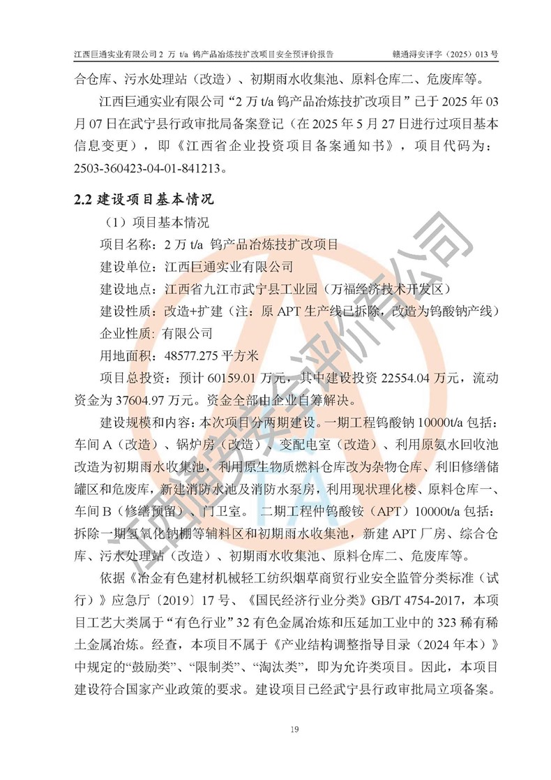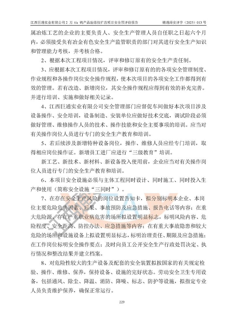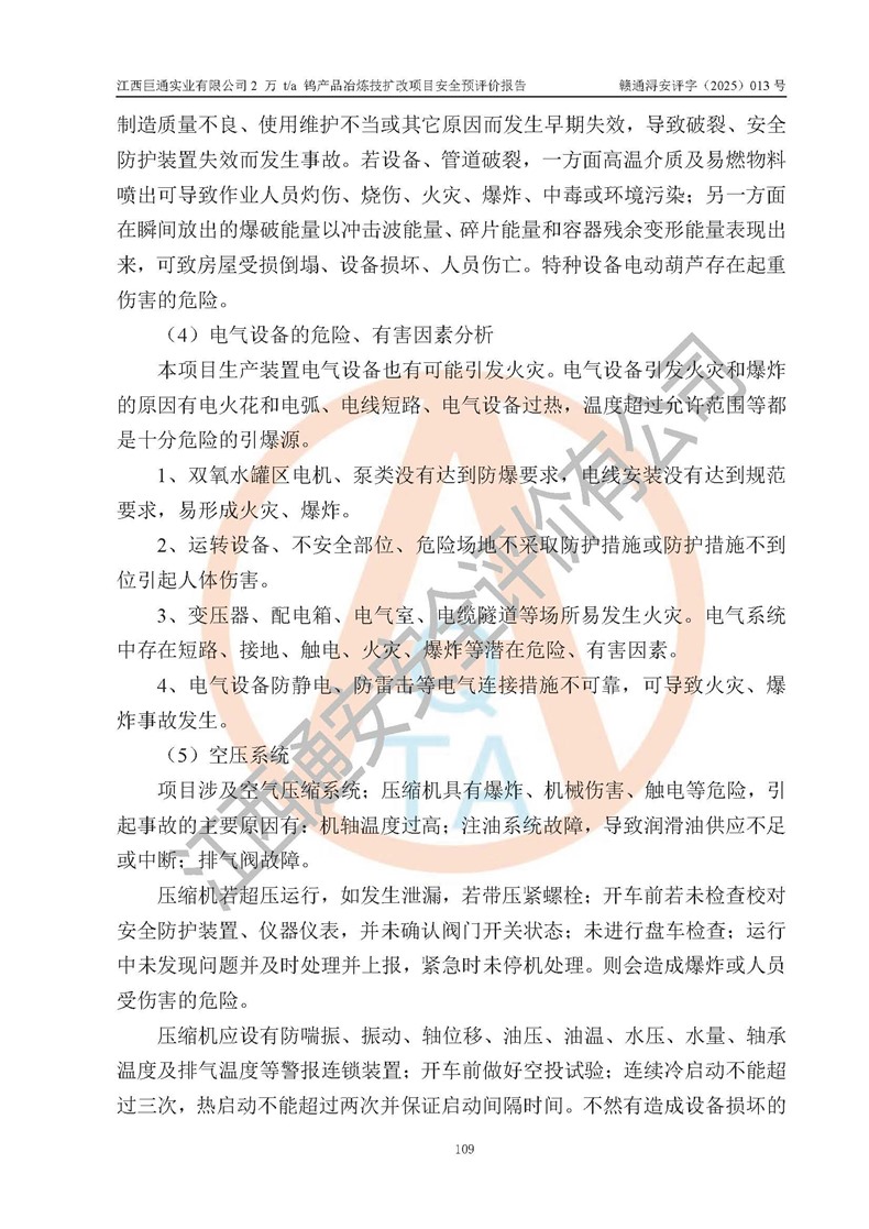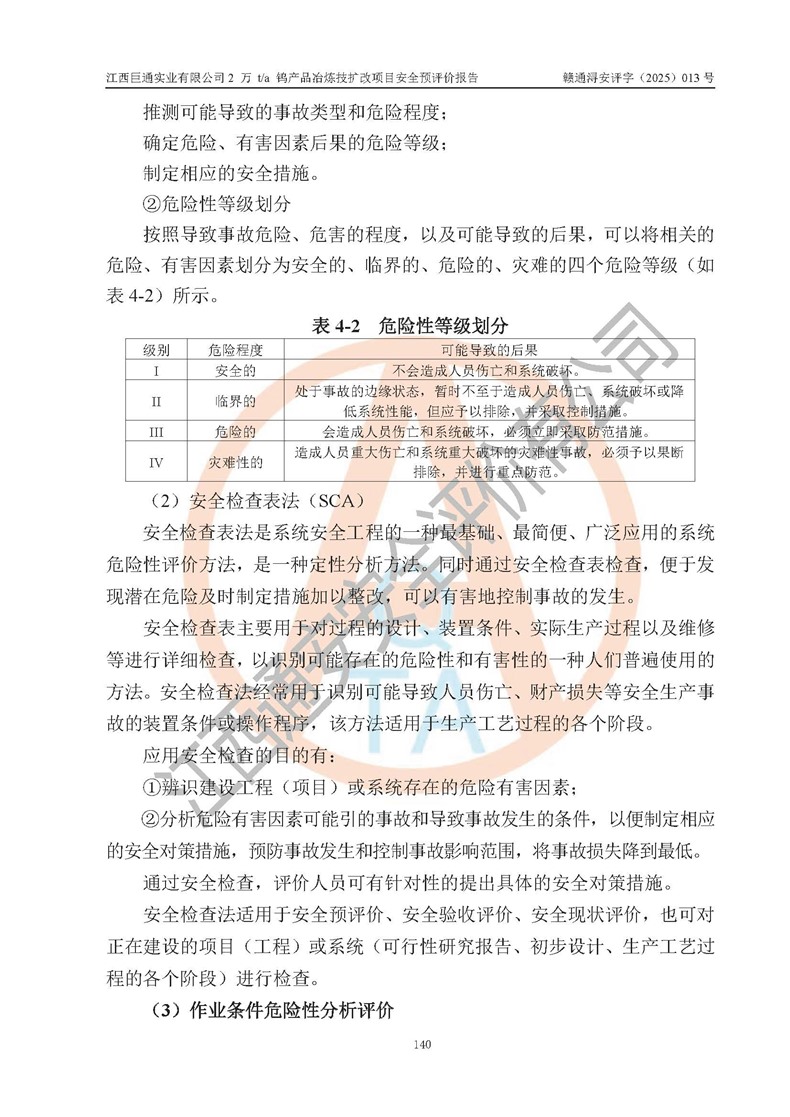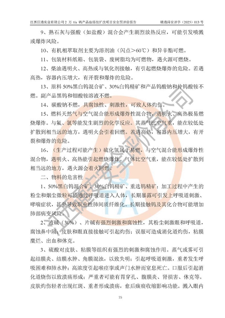 評價報(bào)告名稱 | 江西巨通實(shí)業(yè)有限公司2 萬 t/a 鎢產(chǎn)品冶煉技擴(kuò)改項(xiàng)目安全預(yù)評價報(bào)告 | |||