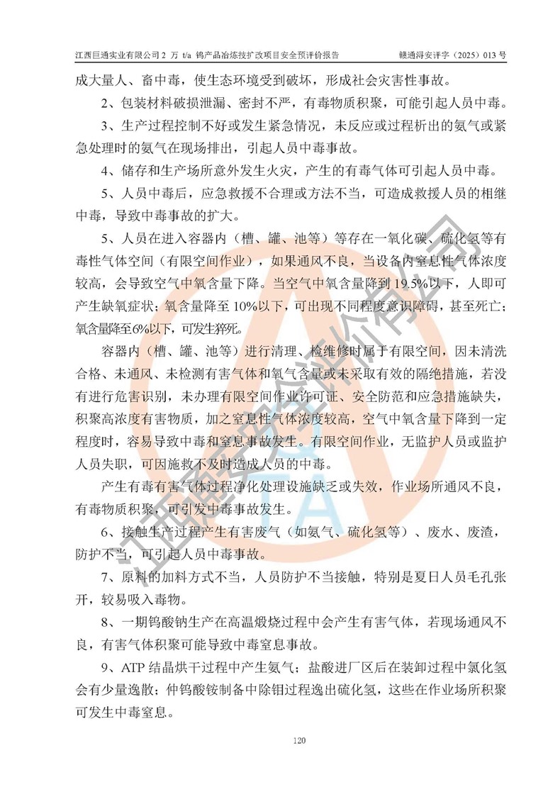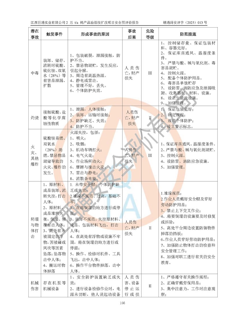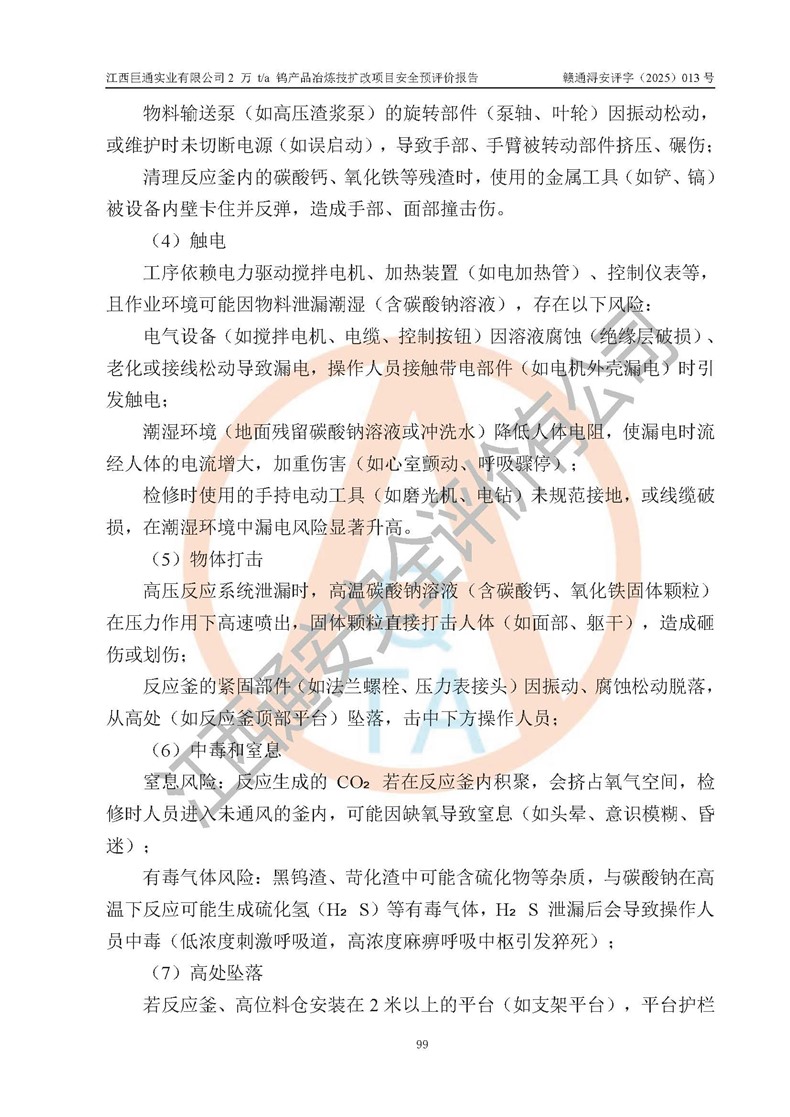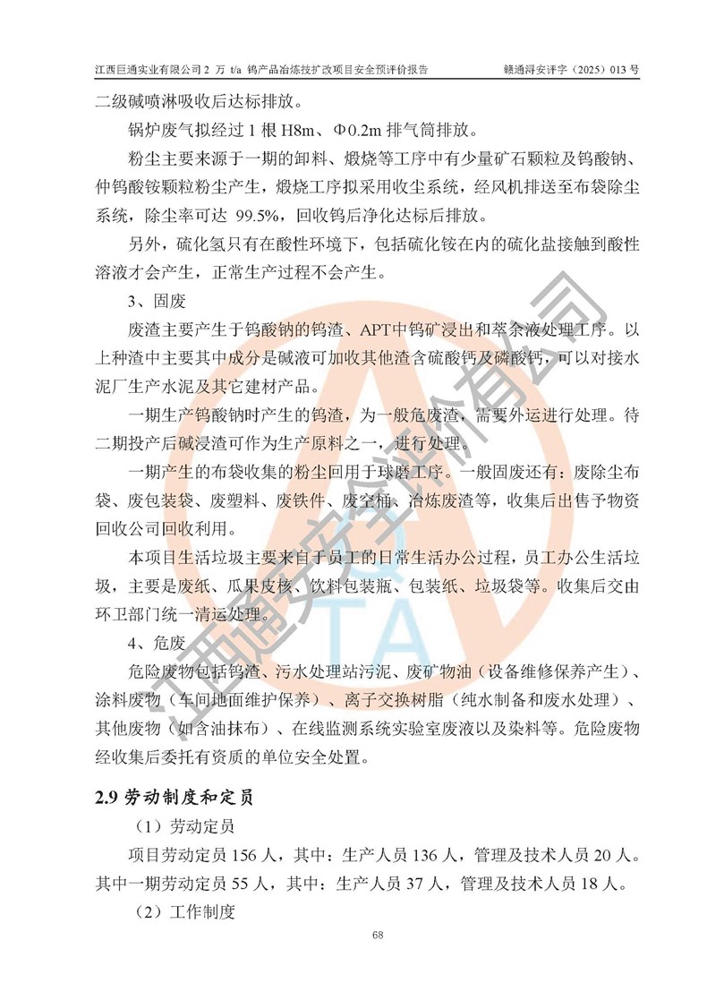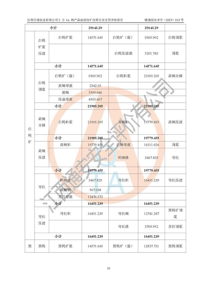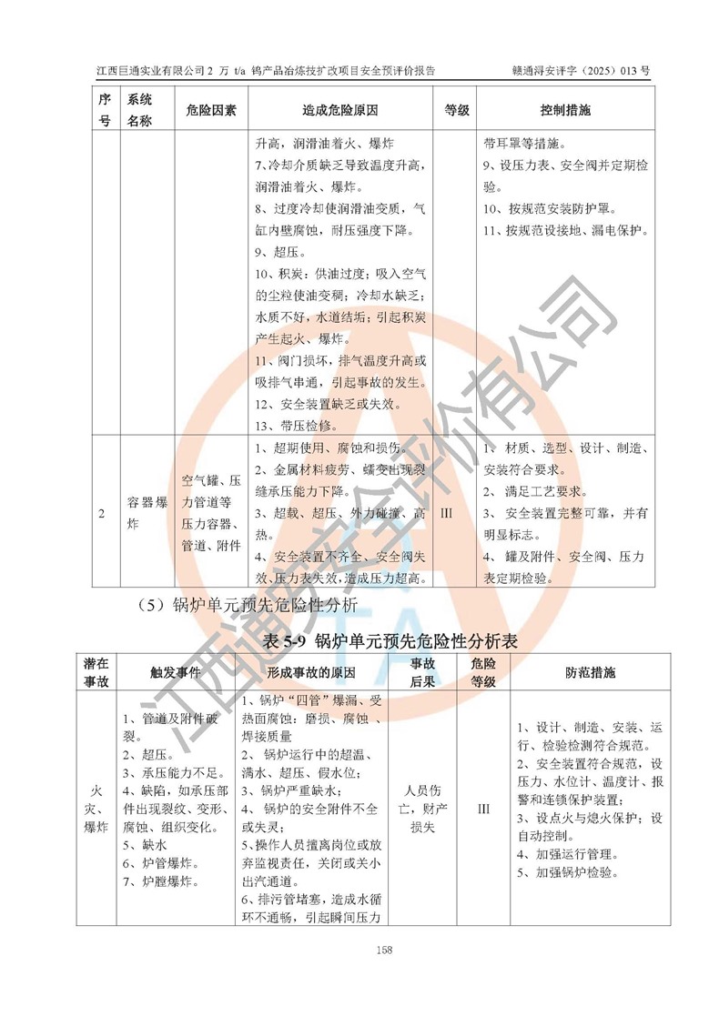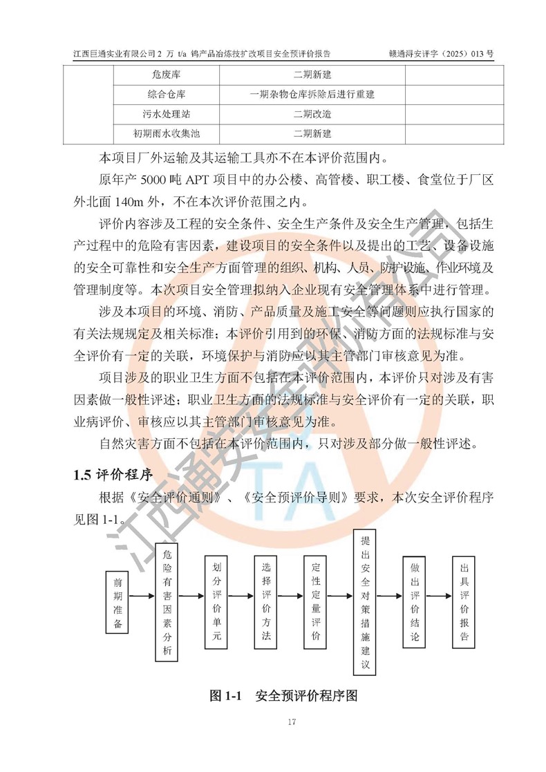 評價報(bào)告名稱 | 江西巨通實(shí)業(yè)有限公司2 萬 t/a 鎢產(chǎn)品冶煉技擴(kuò)改項(xiàng)目安全預(yù)評價報(bào)告 | |||
