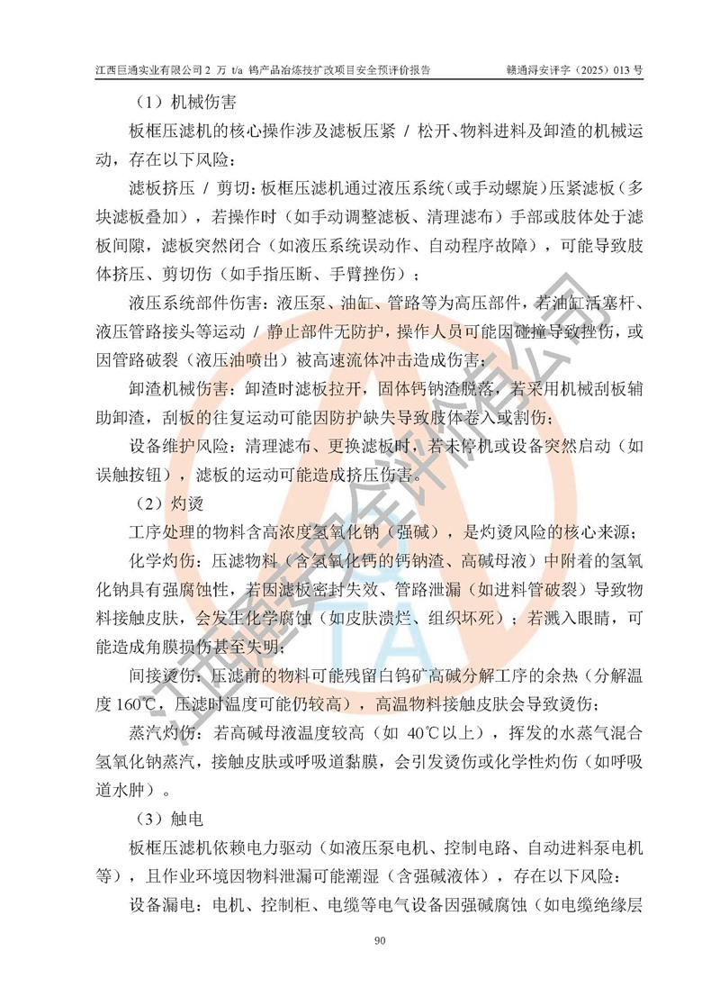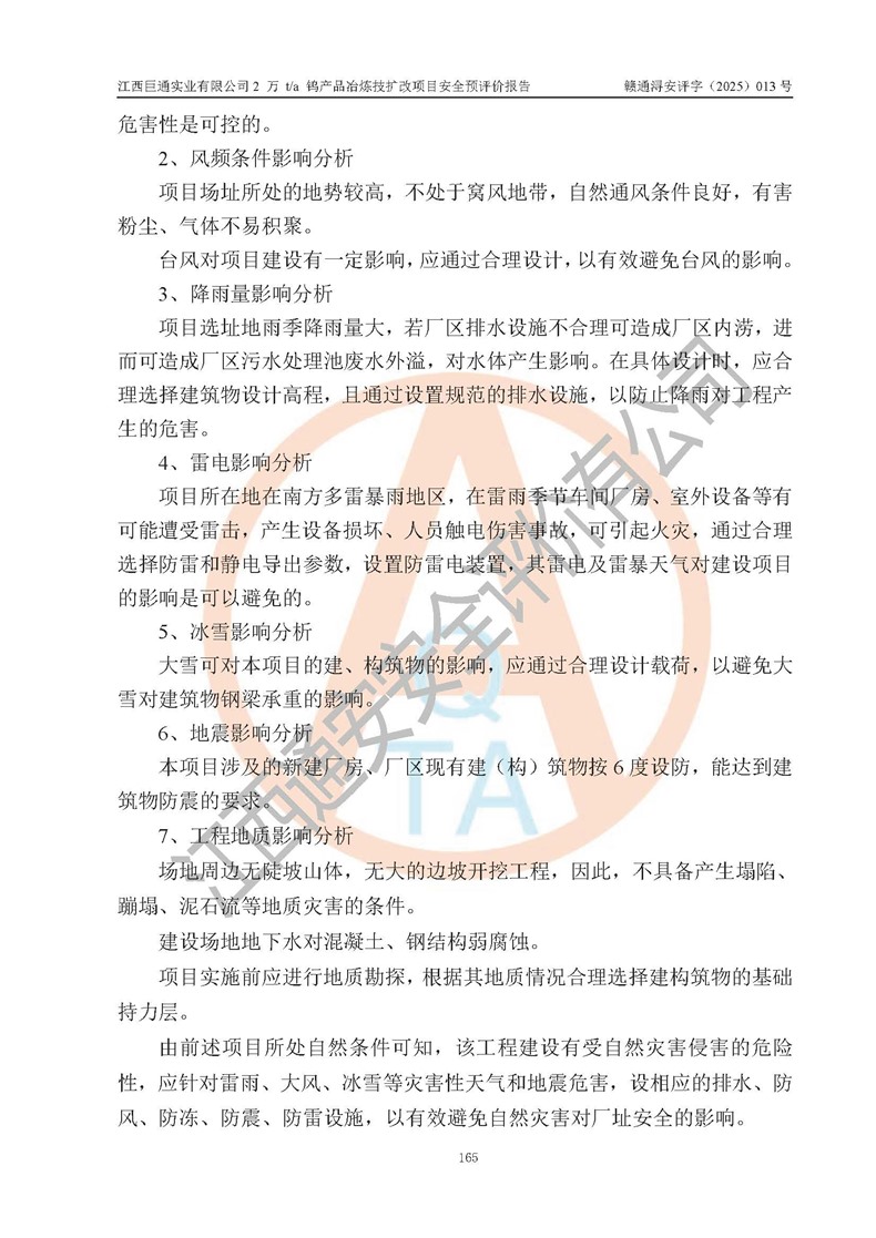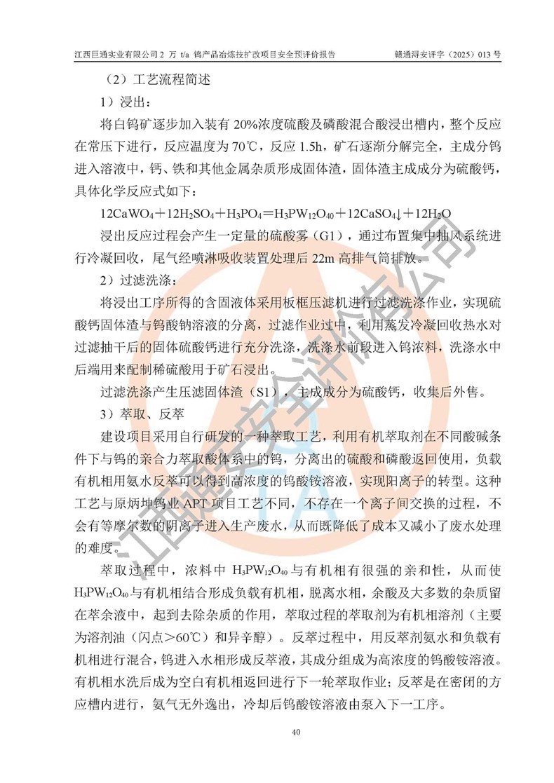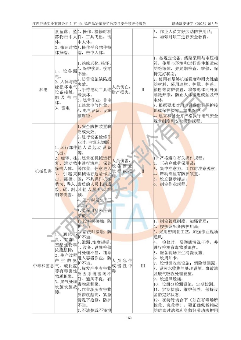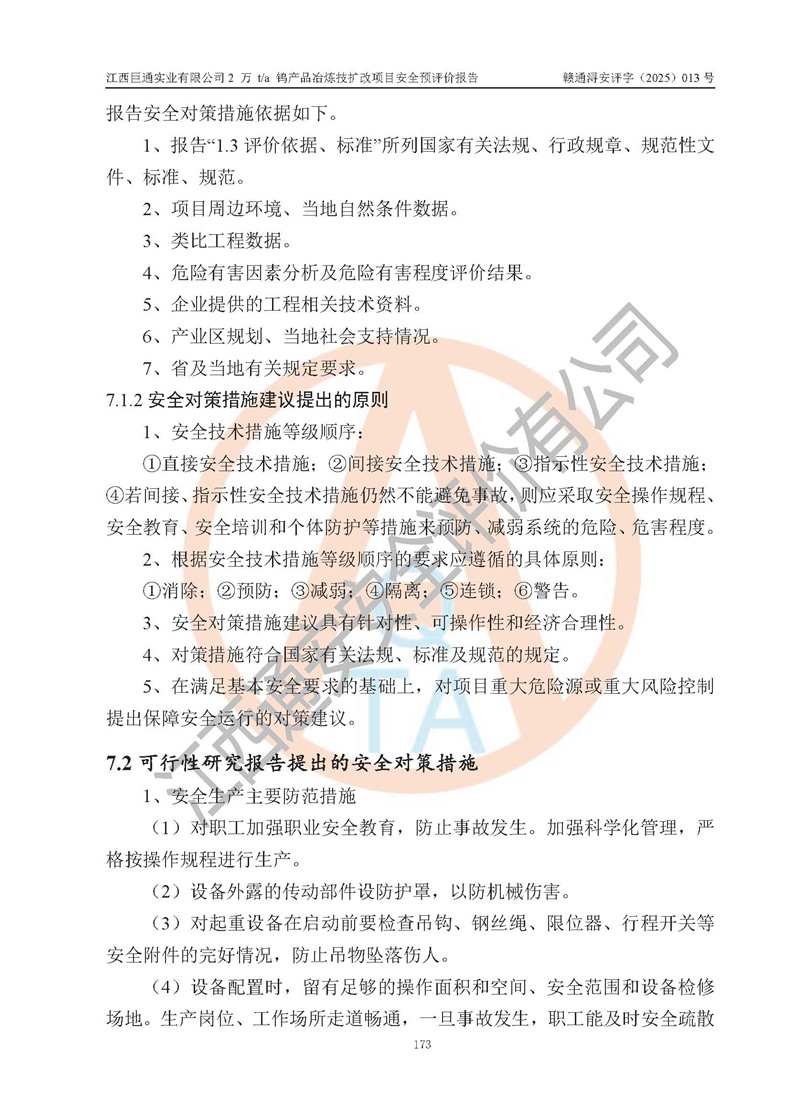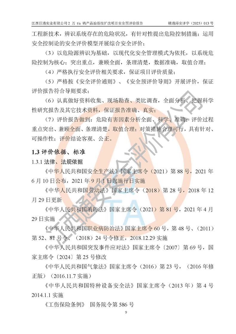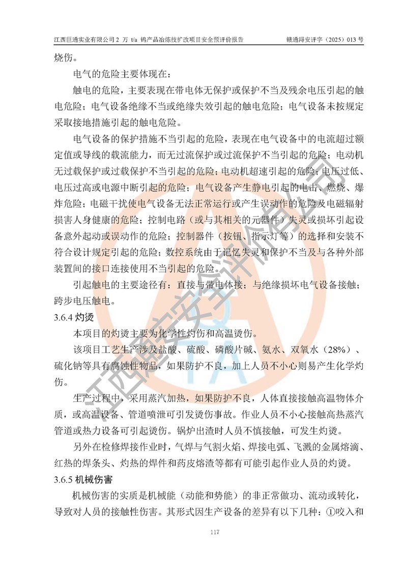 評價報(bào)告名稱 | 江西巨通實(shí)業(yè)有限公司2 萬 t/a 鎢產(chǎn)品冶煉技擴(kuò)改項(xiàng)目安全預(yù)評價報(bào)告 | |||