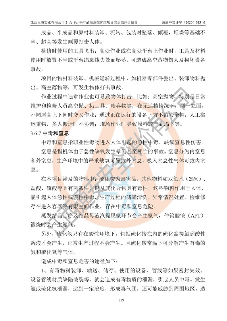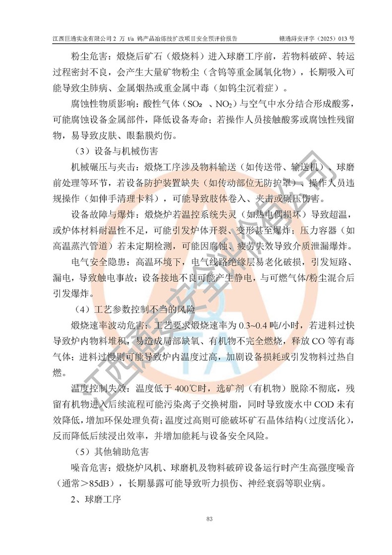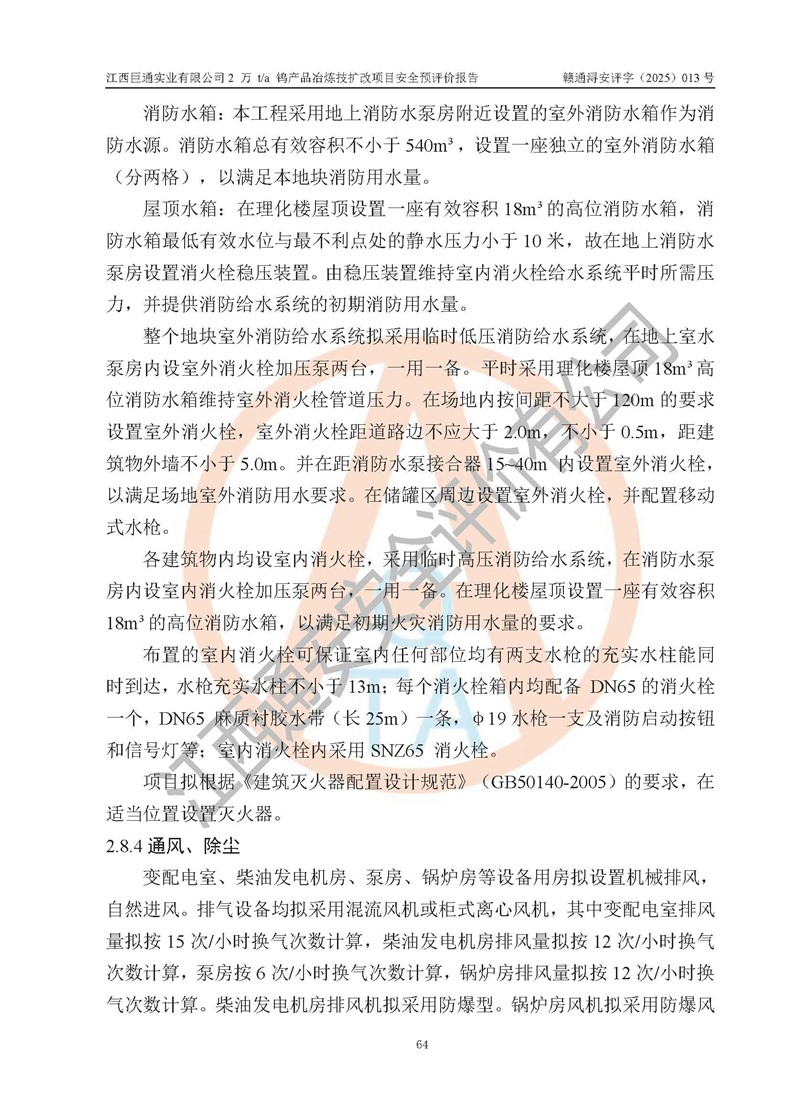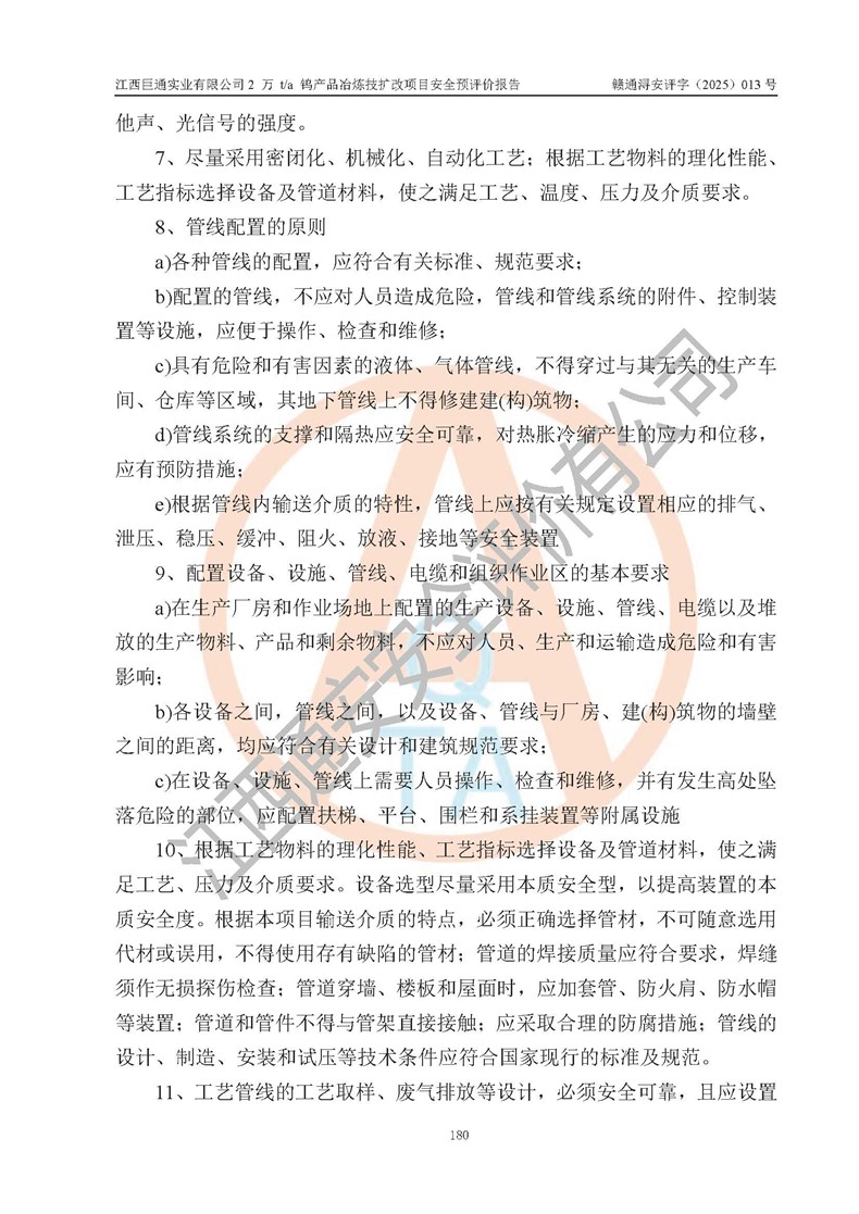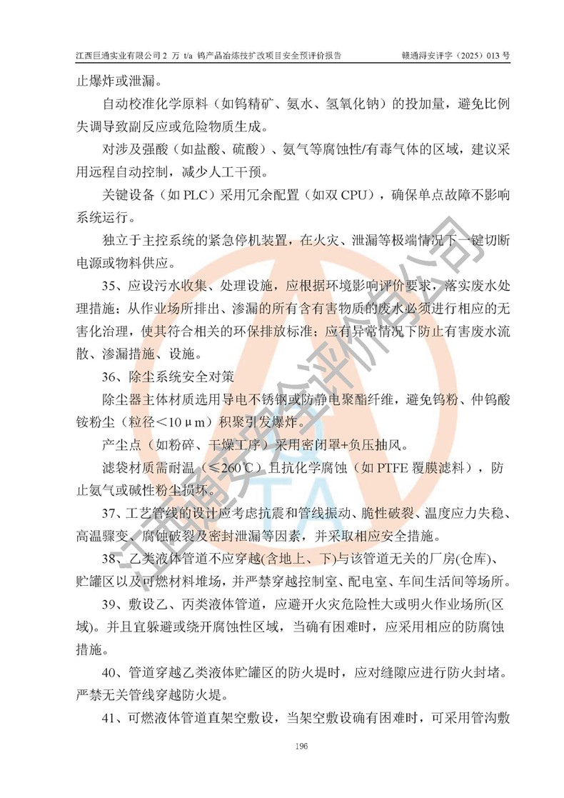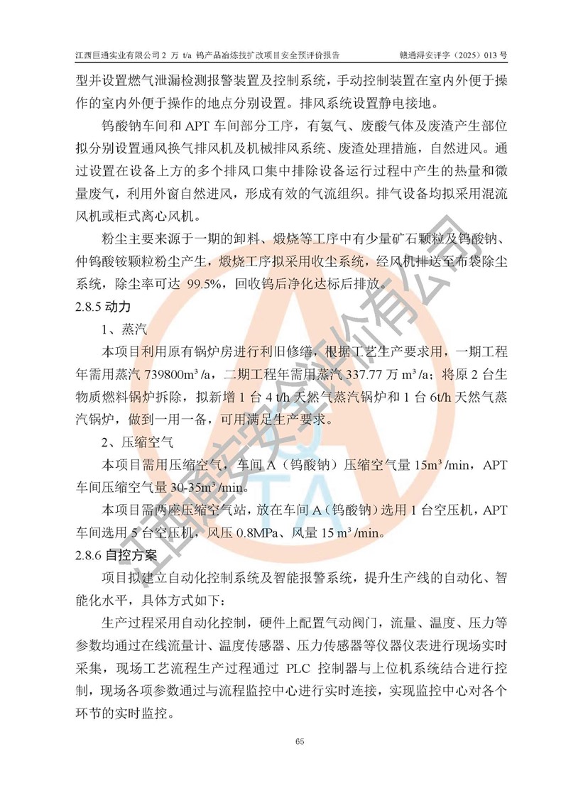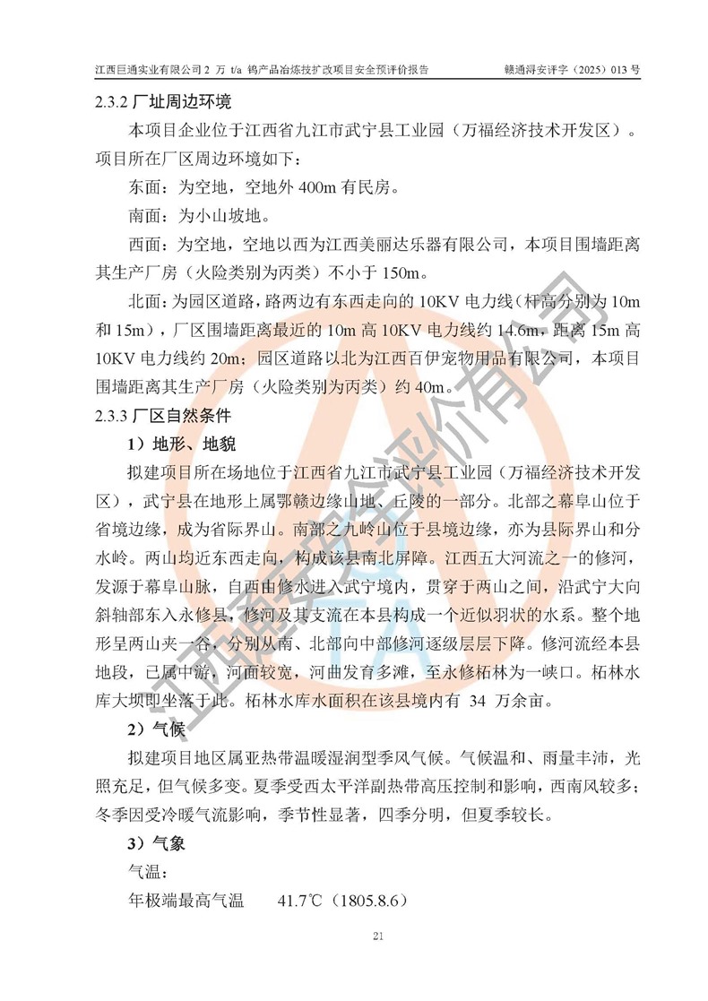 評價報(bào)告名稱 | 江西巨通實(shí)業(yè)有限公司2 萬 t/a 鎢產(chǎn)品冶煉技擴(kuò)改項(xiàng)目安全預(yù)評價報(bào)告 | |||