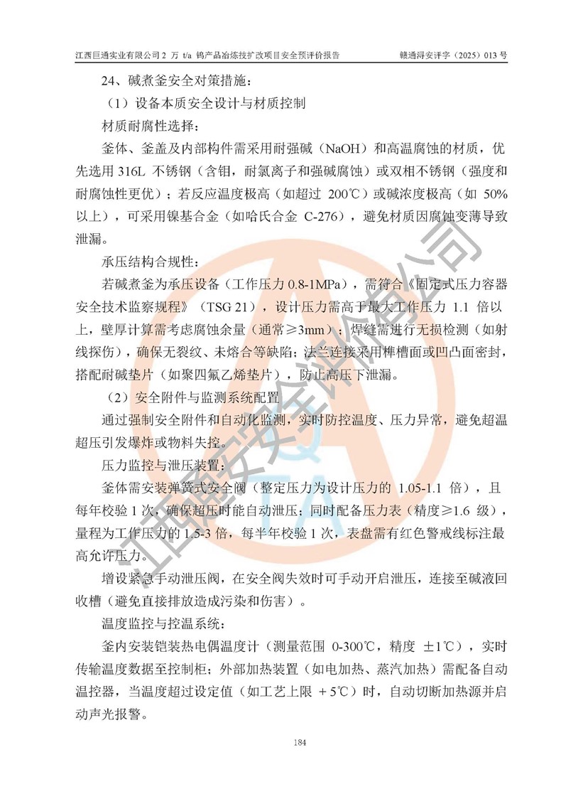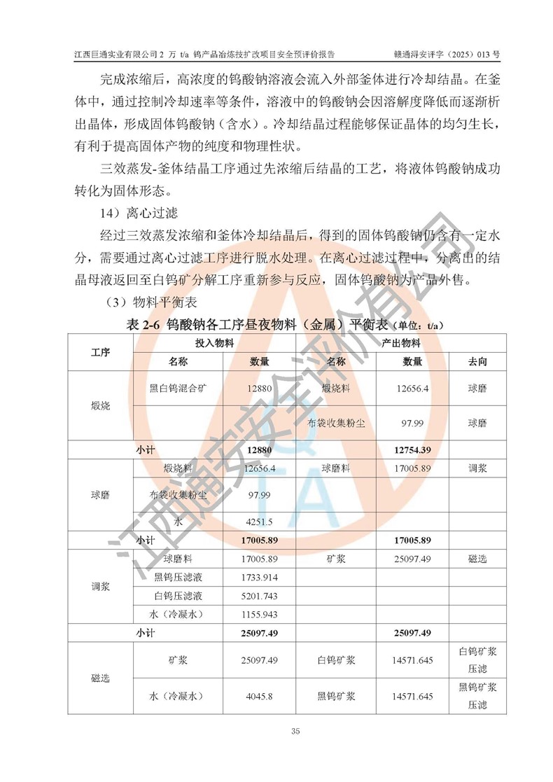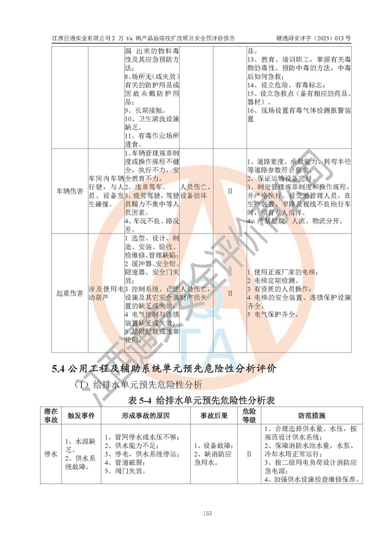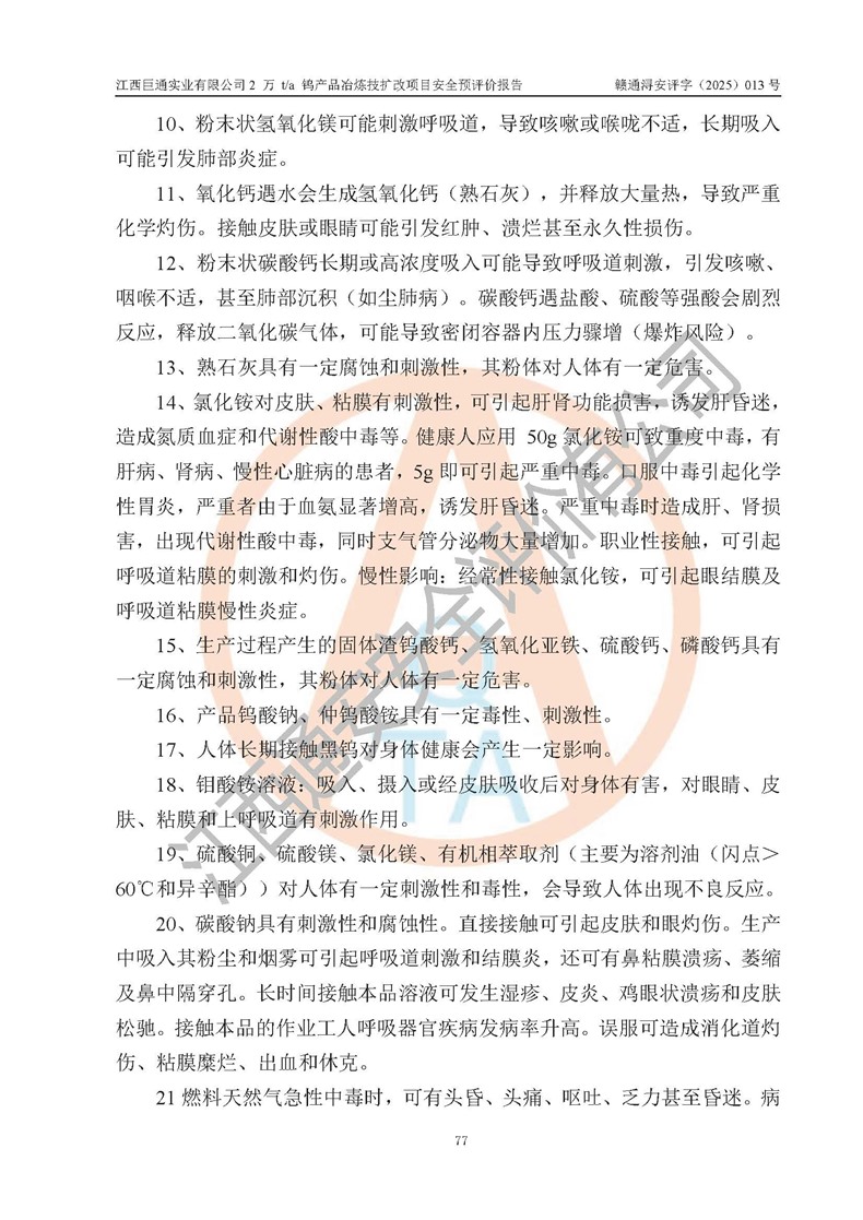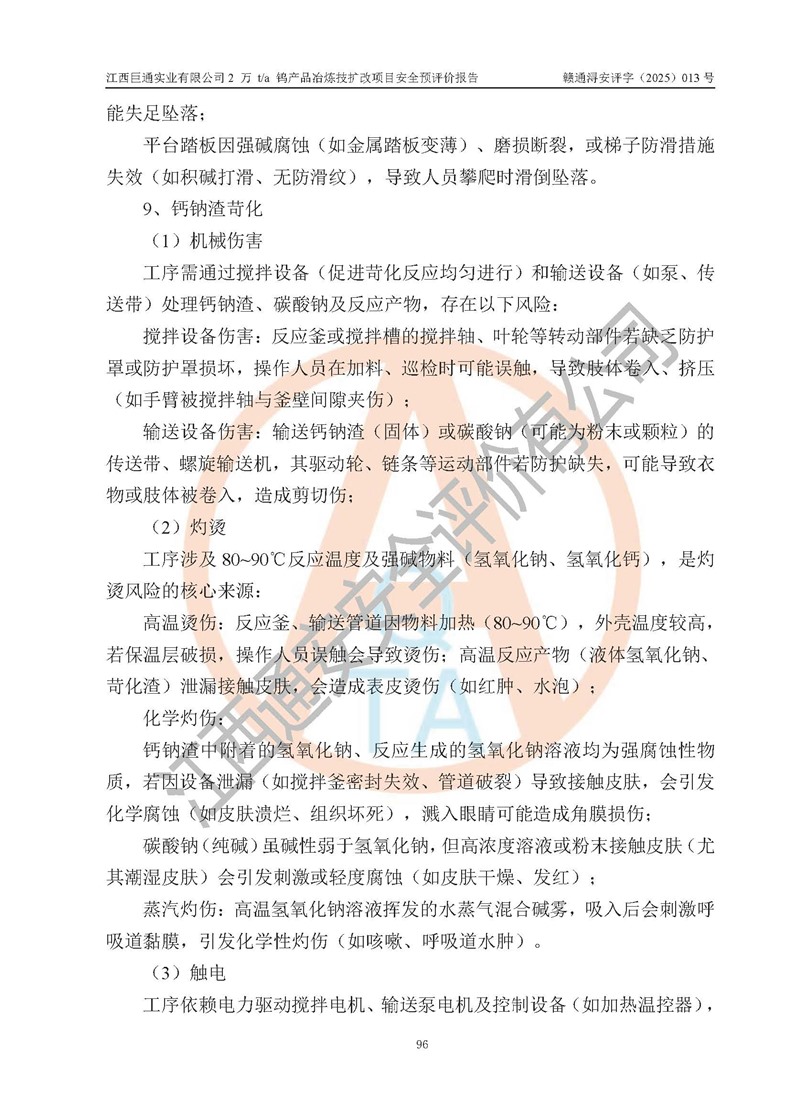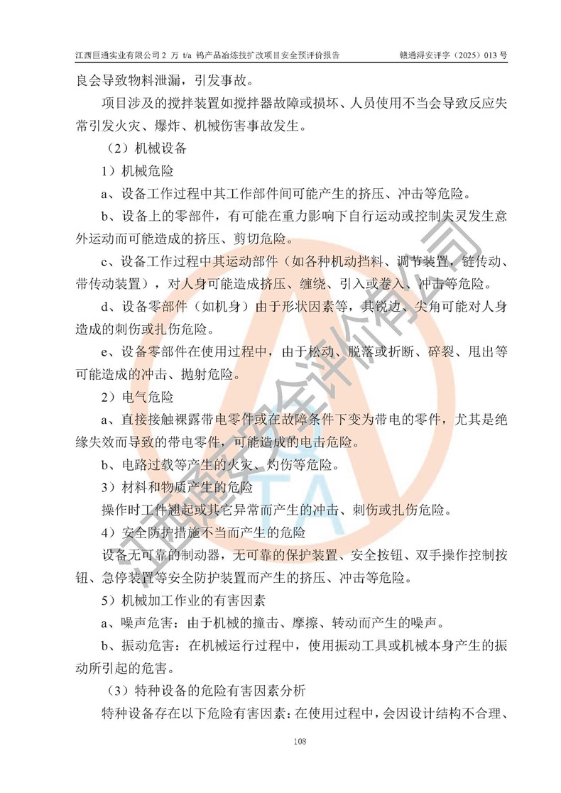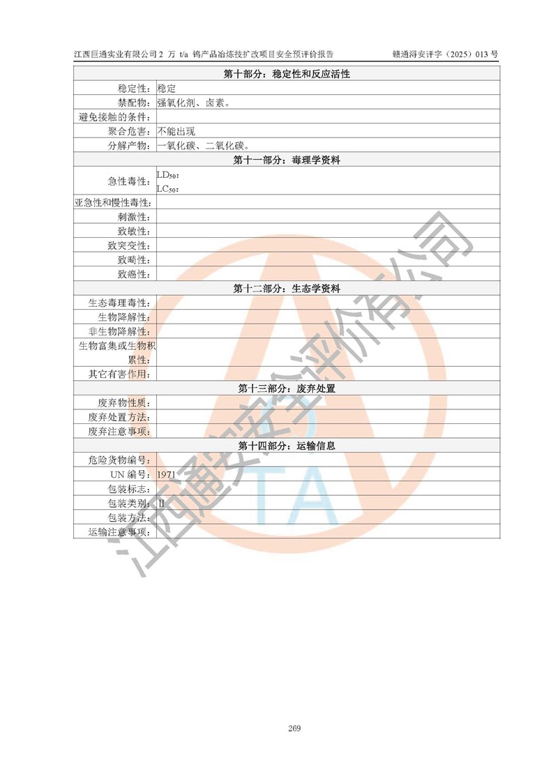 評價報(bào)告名稱 | 江西巨通實(shí)業(yè)有限公司2 萬 t/a 鎢產(chǎn)品冶煉技擴(kuò)改項(xiàng)目安全預(yù)評價報(bào)告 | |||