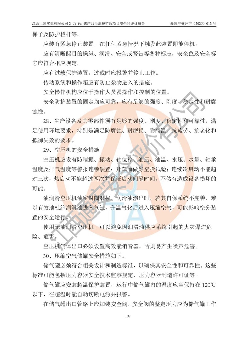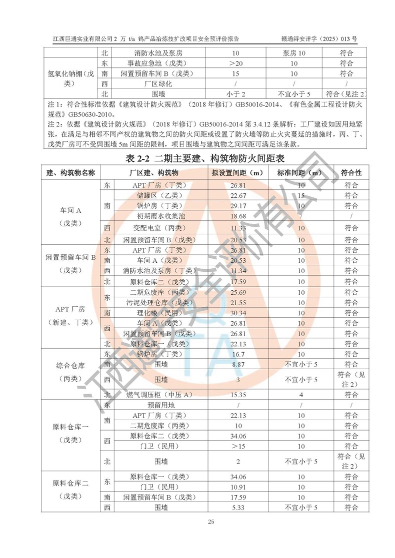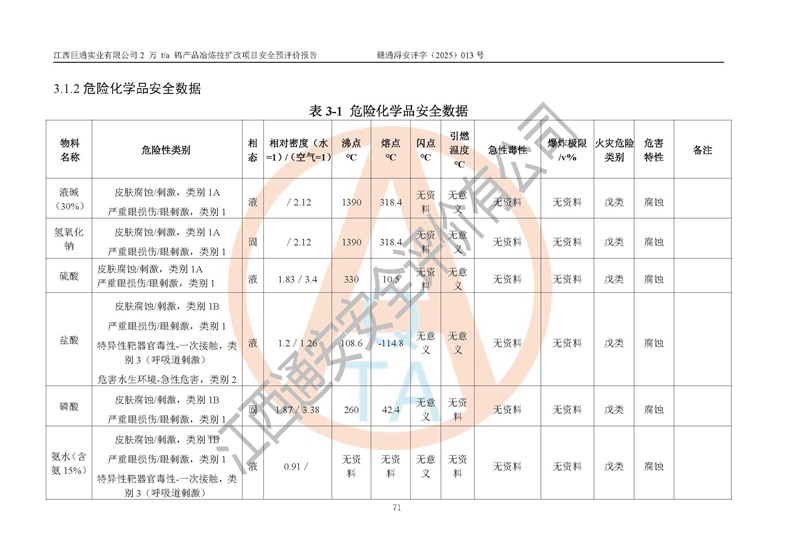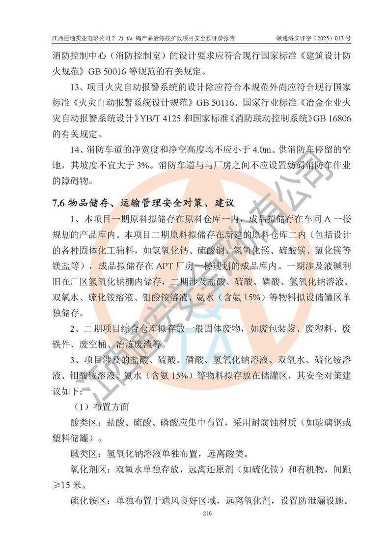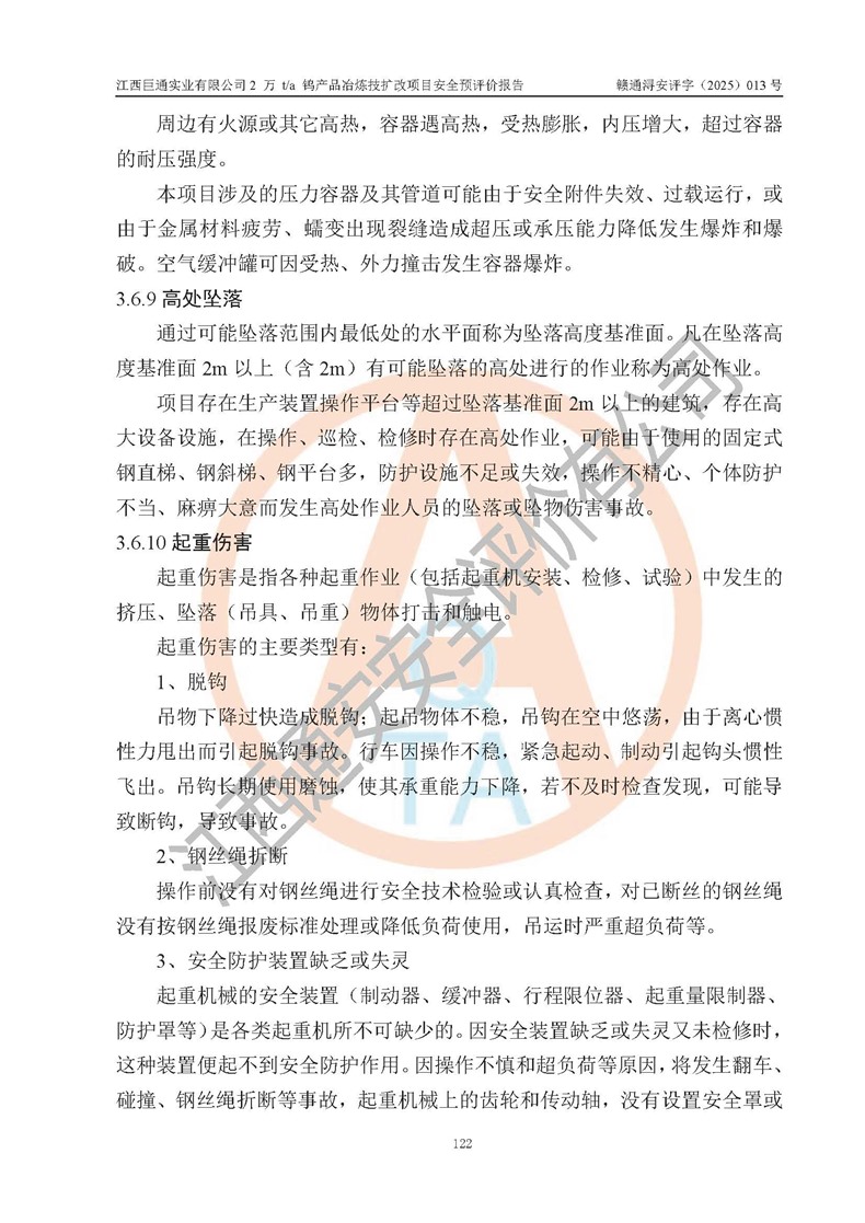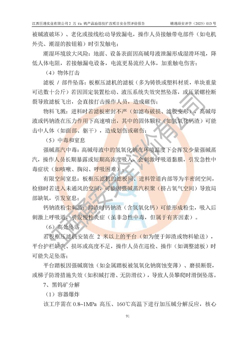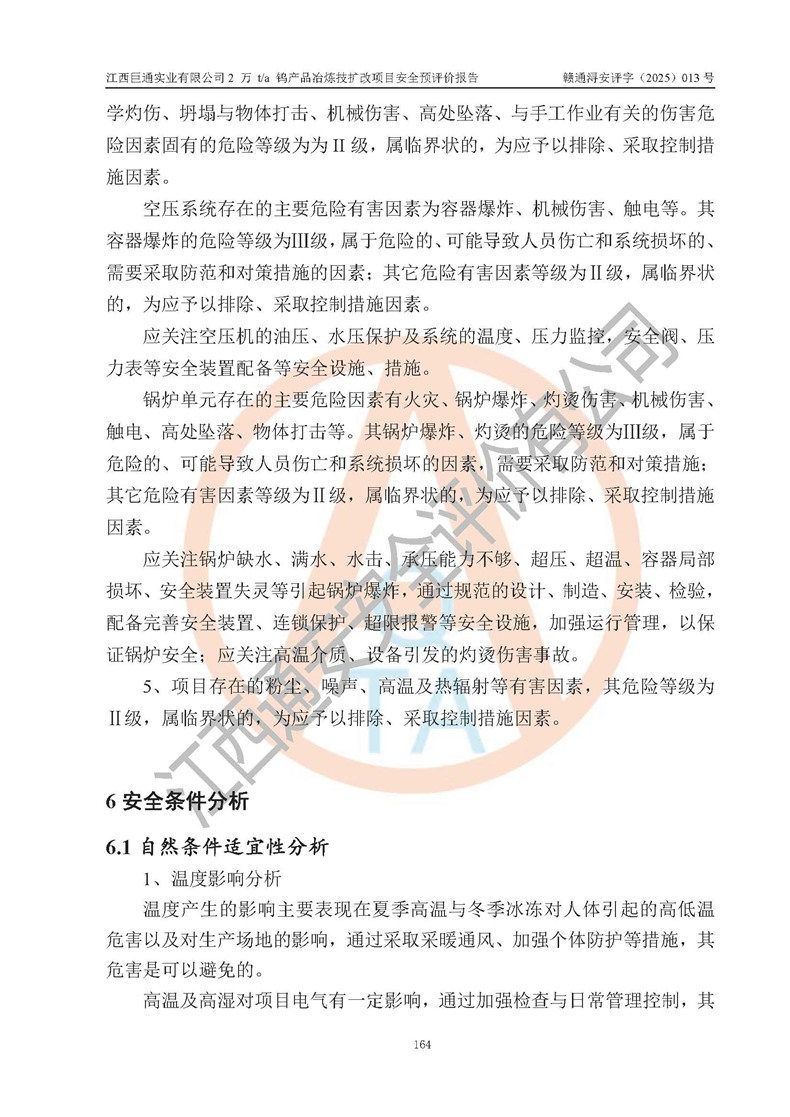 評價報(bào)告名稱 | 江西巨通實(shí)業(yè)有限公司2 萬 t/a 鎢產(chǎn)品冶煉技擴(kuò)改項(xiàng)目安全預(yù)評價報(bào)告 | |||