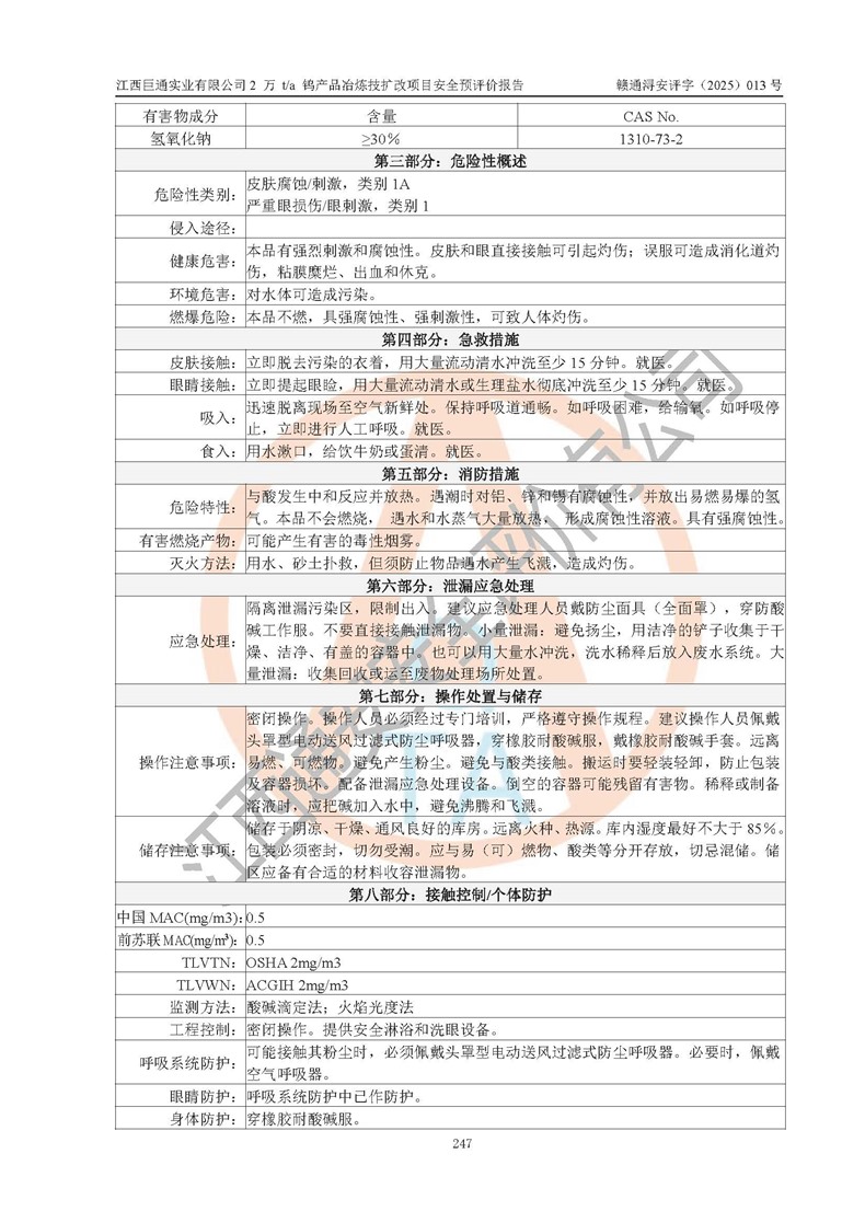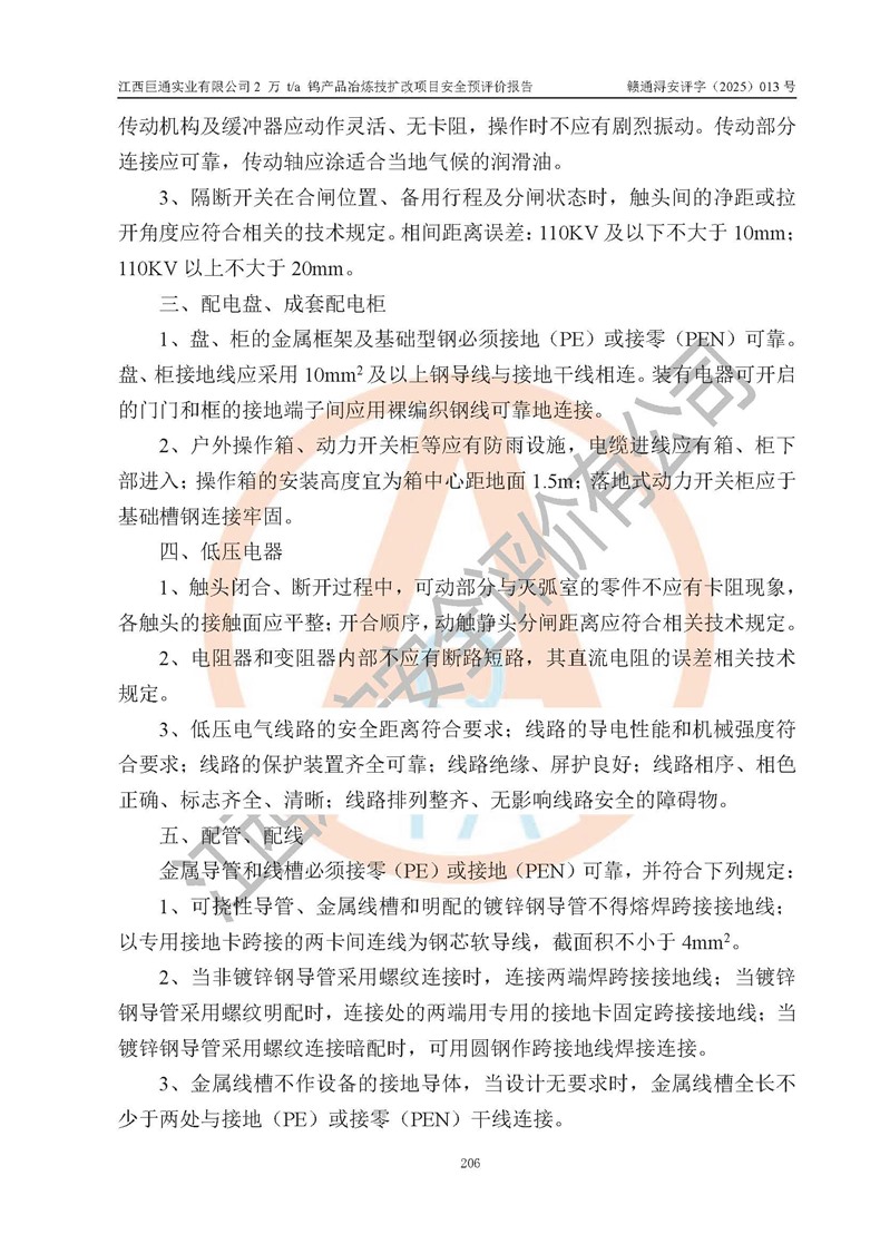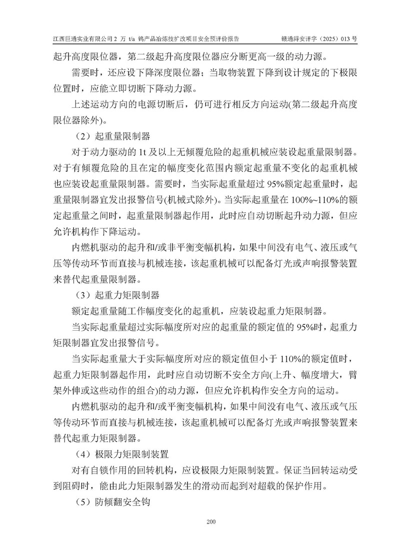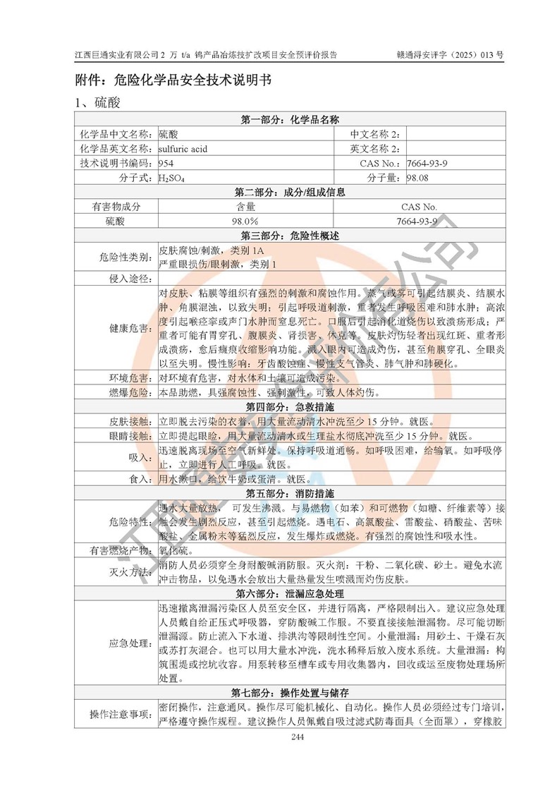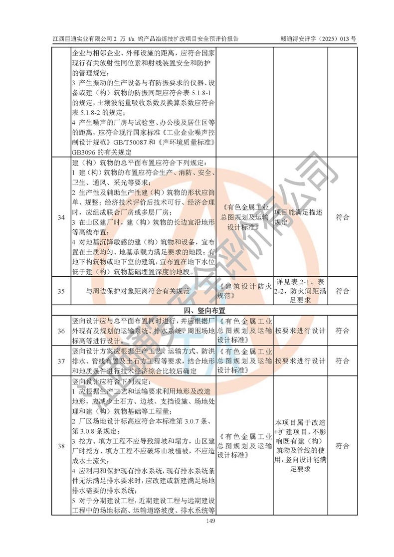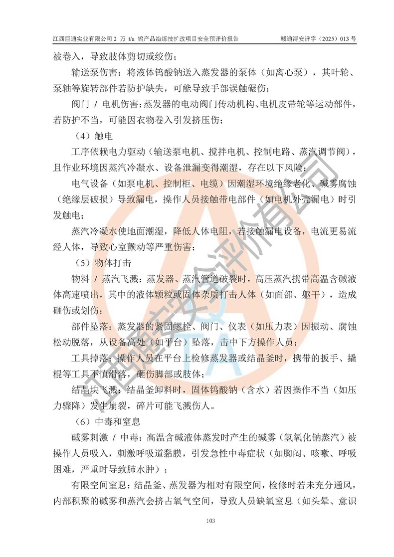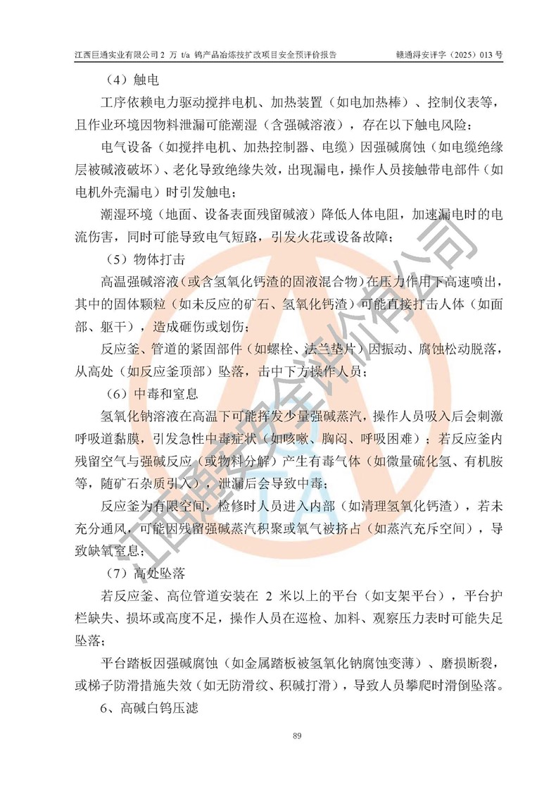 評價報(bào)告名稱 | 江西巨通實(shí)業(yè)有限公司2 萬 t/a 鎢產(chǎn)品冶煉技擴(kuò)改項(xiàng)目安全預(yù)評價報(bào)告 | |||
