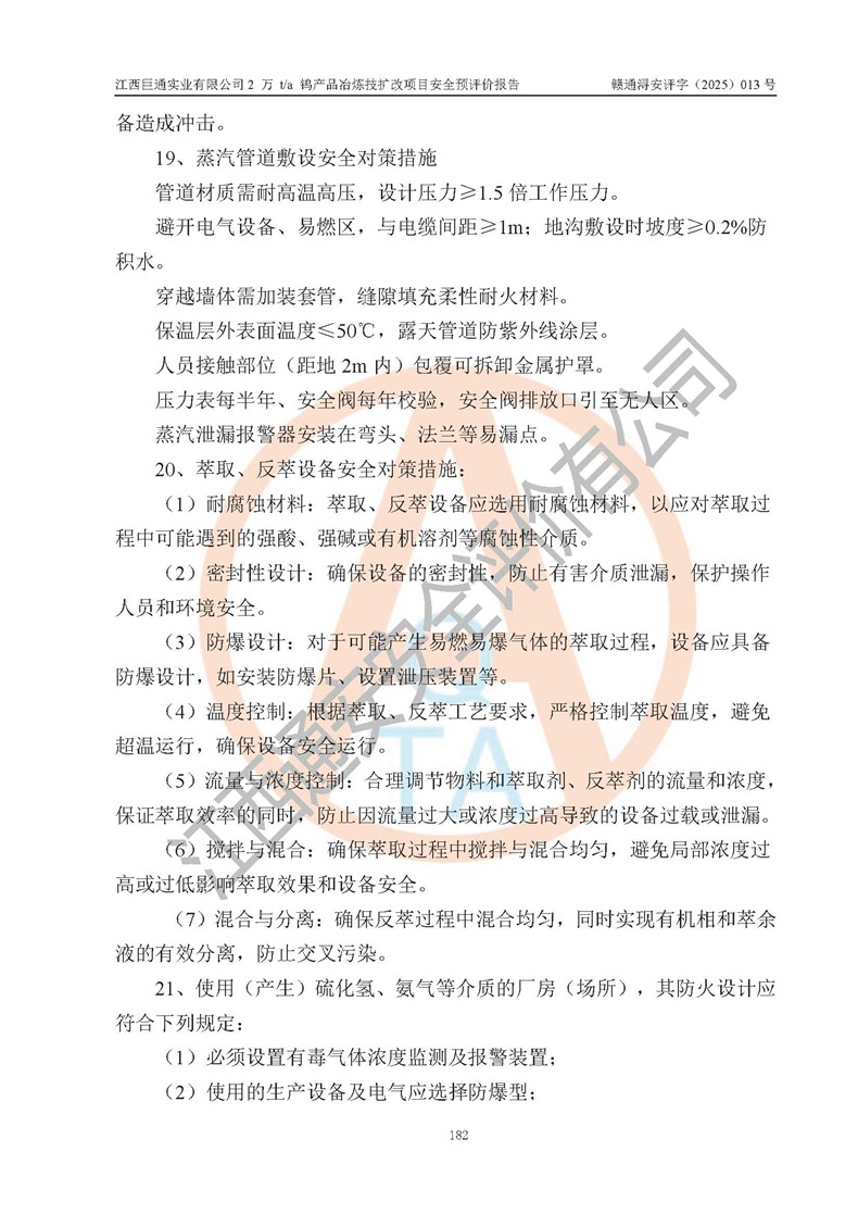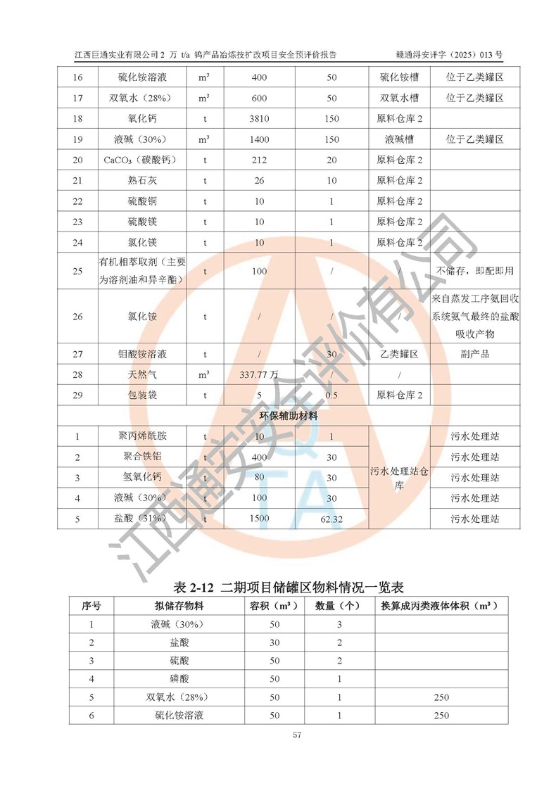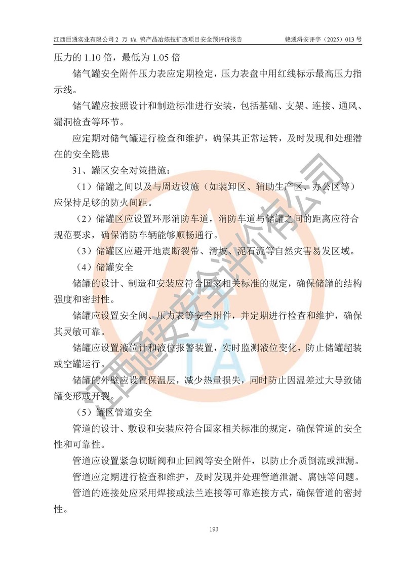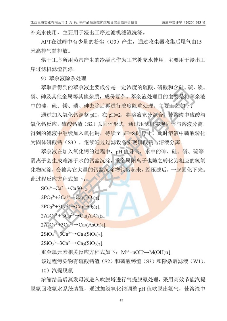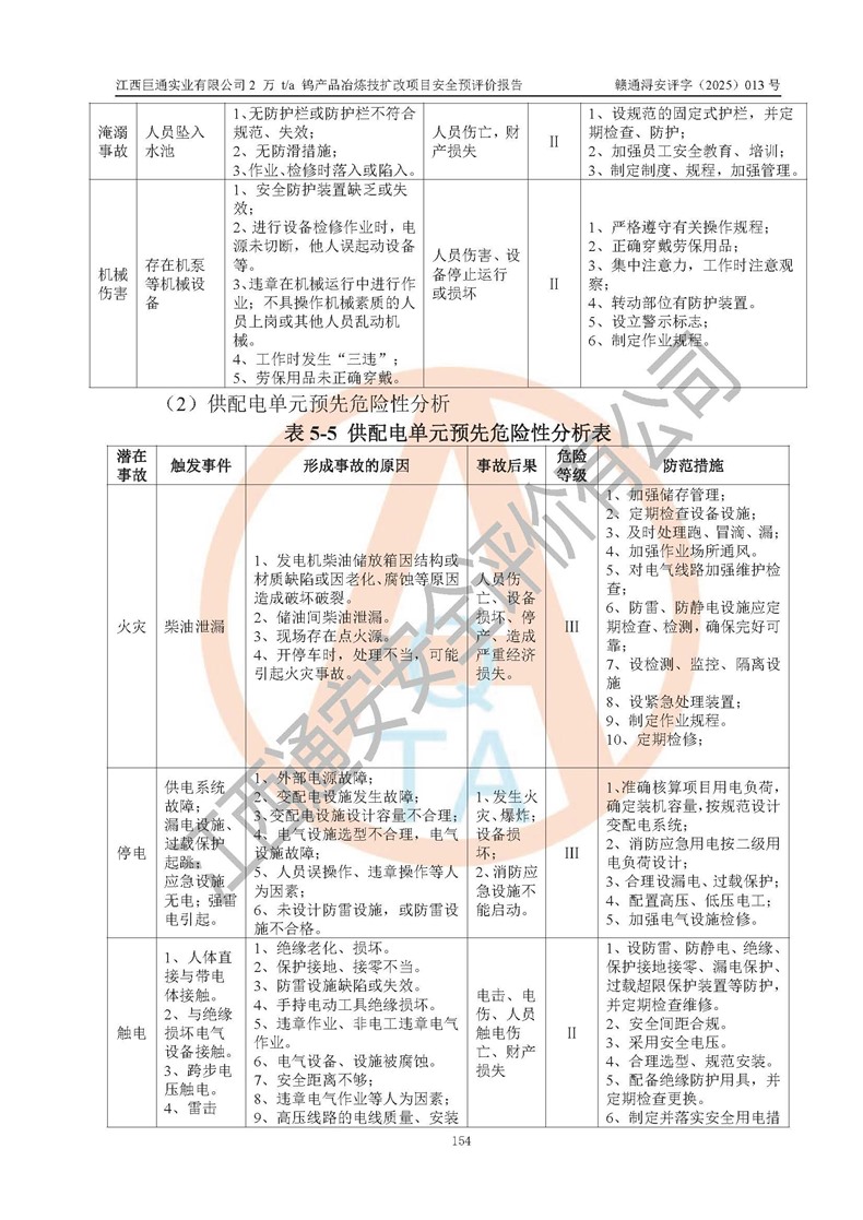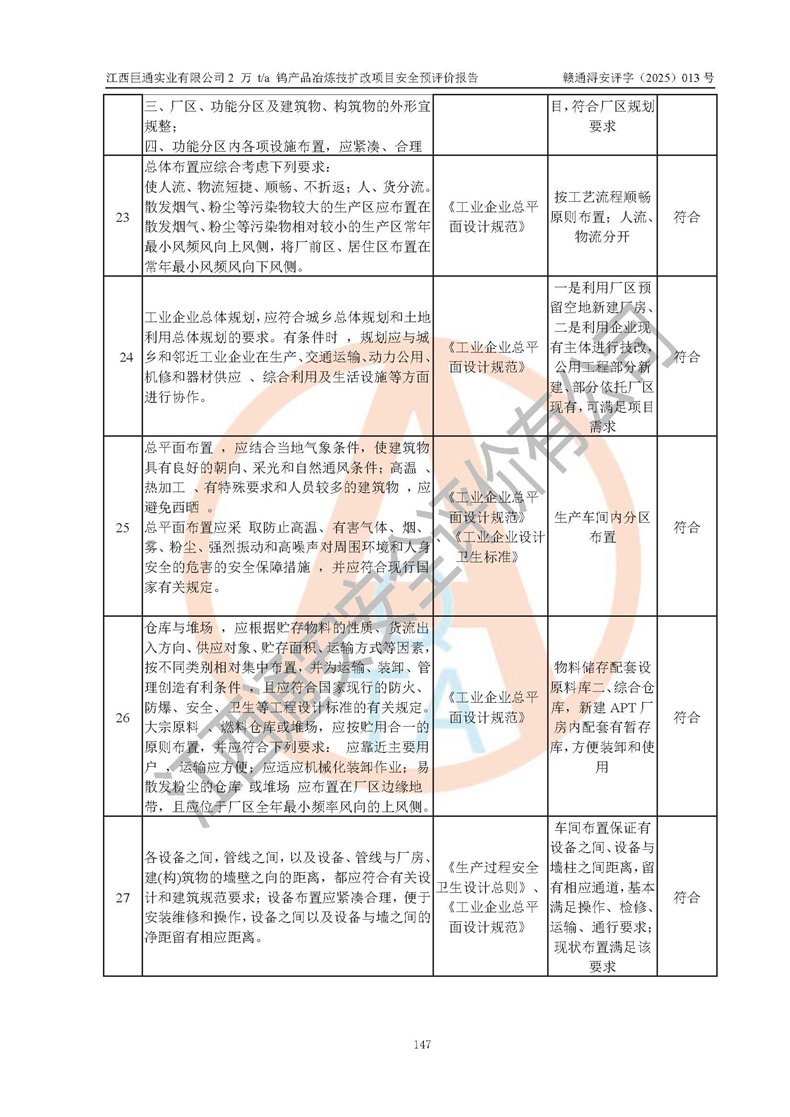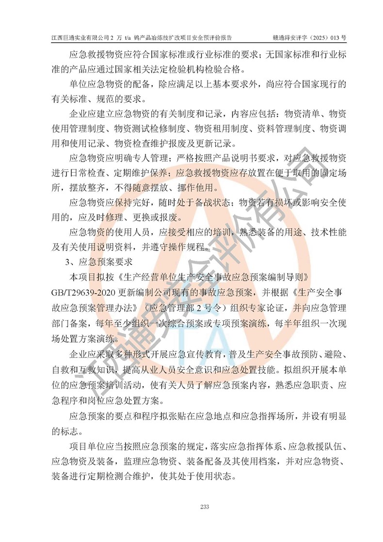 評價報(bào)告名稱 | 江西巨通實(shí)業(yè)有限公司2 萬 t/a 鎢產(chǎn)品冶煉技擴(kuò)改項(xiàng)目安全預(yù)評價報(bào)告 | |||