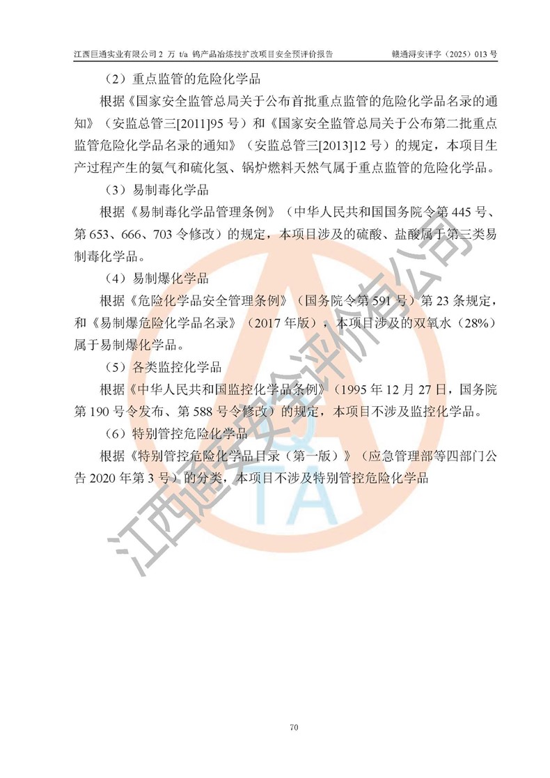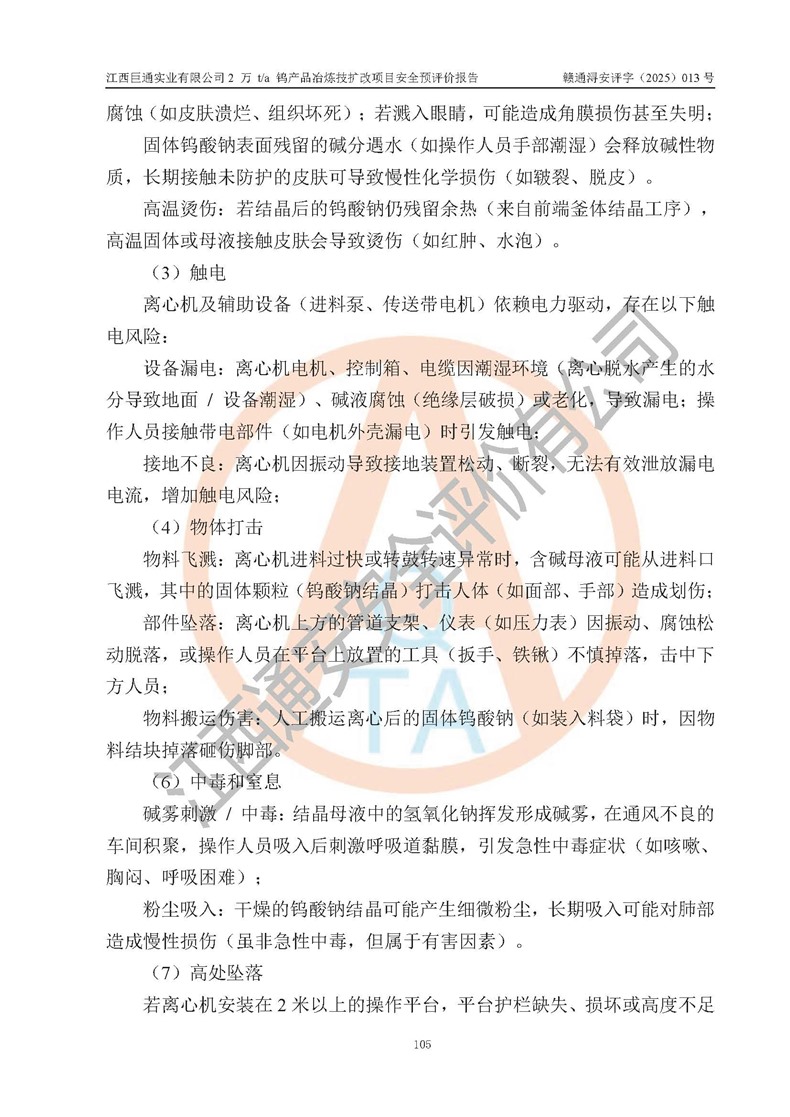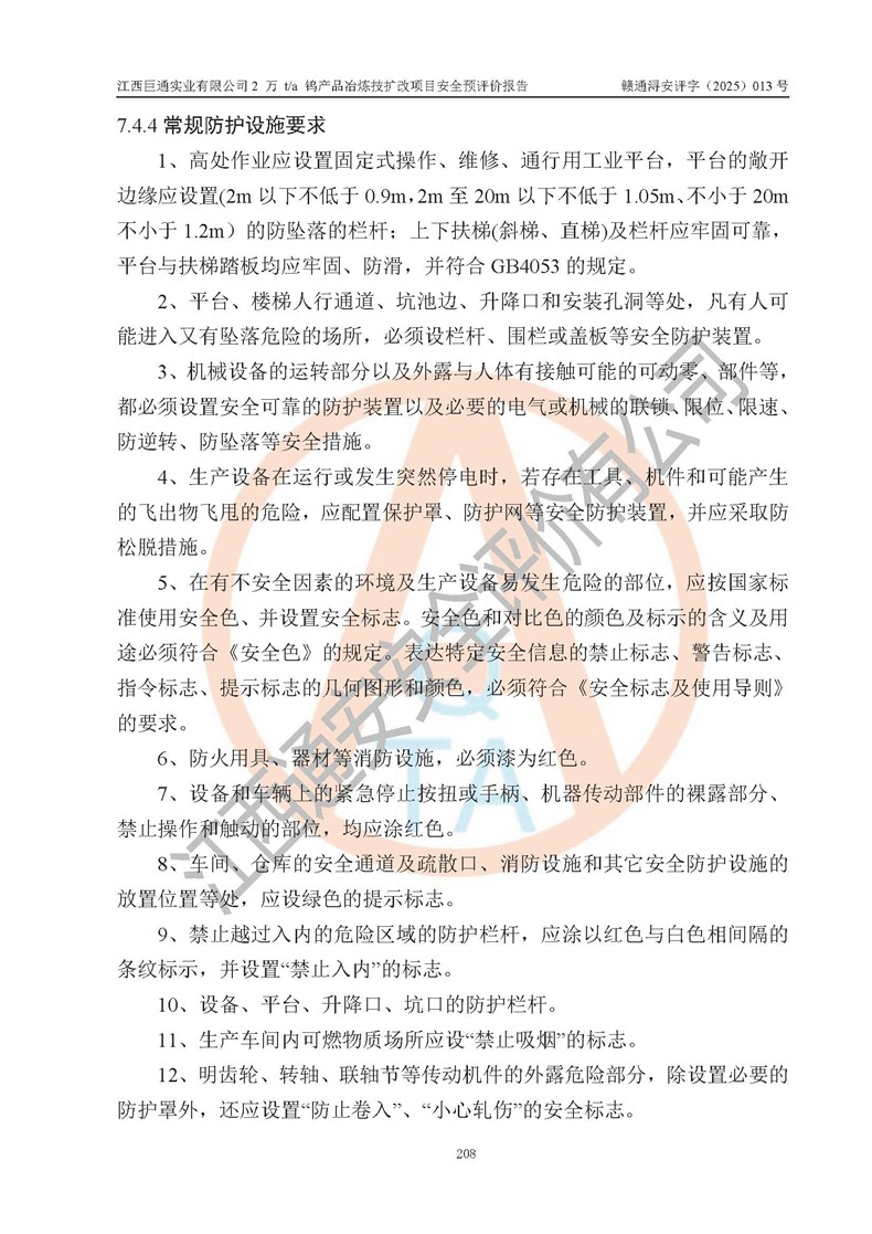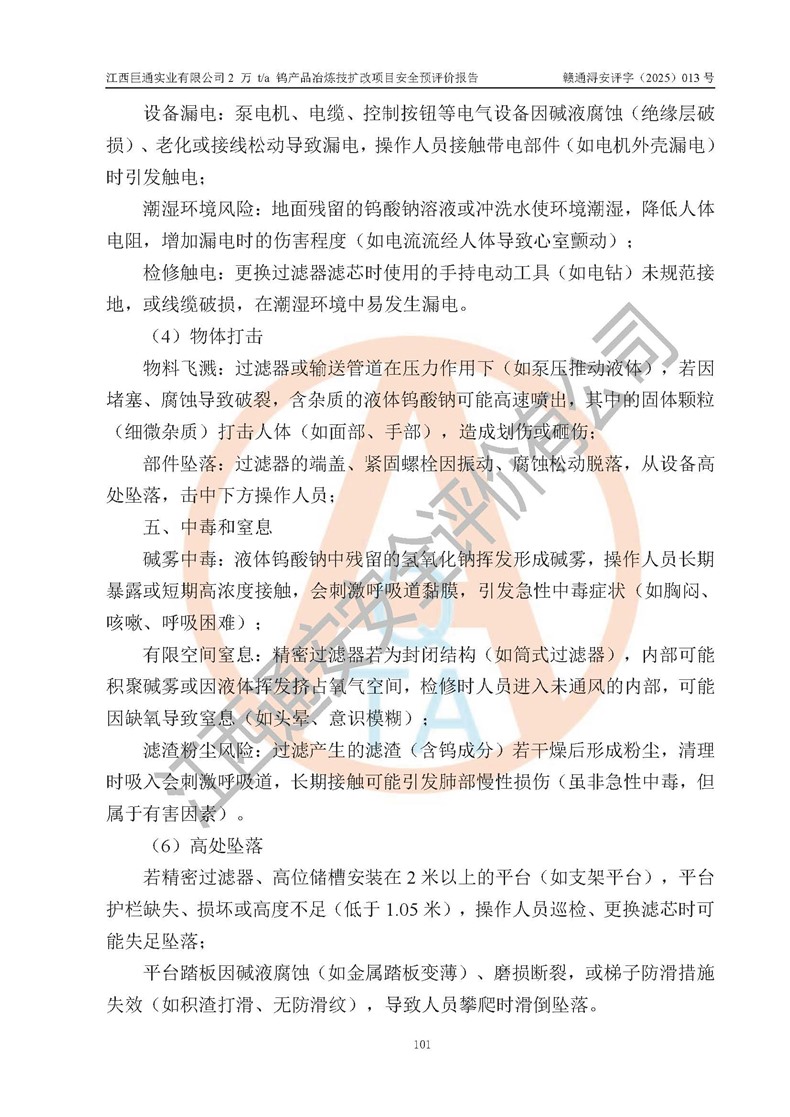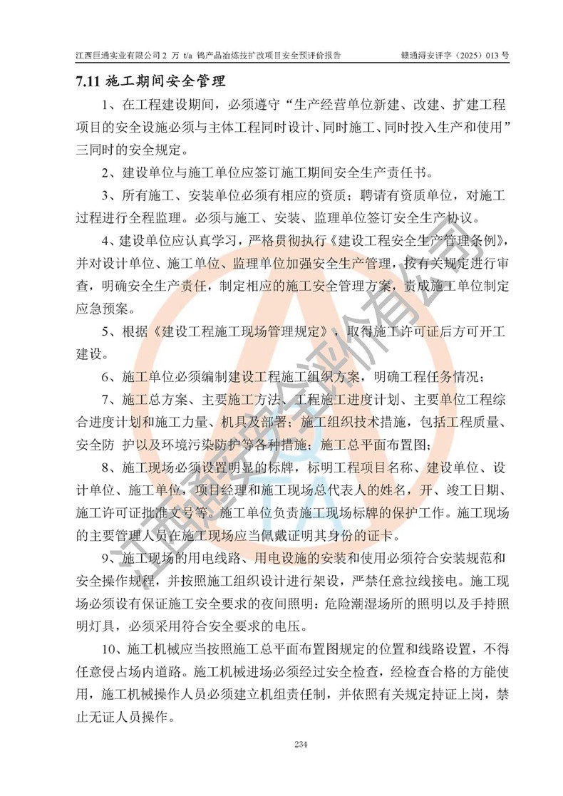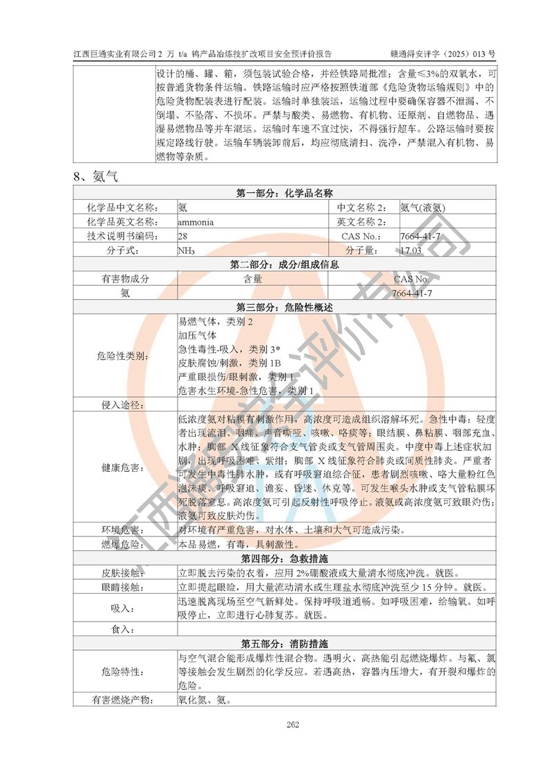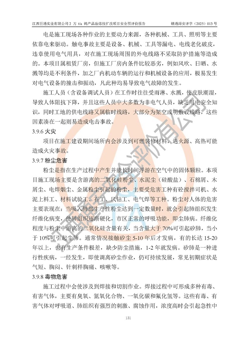 評價報(bào)告名稱 | 江西巨通實(shí)業(yè)有限公司2 萬 t/a 鎢產(chǎn)品冶煉技擴(kuò)改項(xiàng)目安全預(yù)評價報(bào)告 | |||