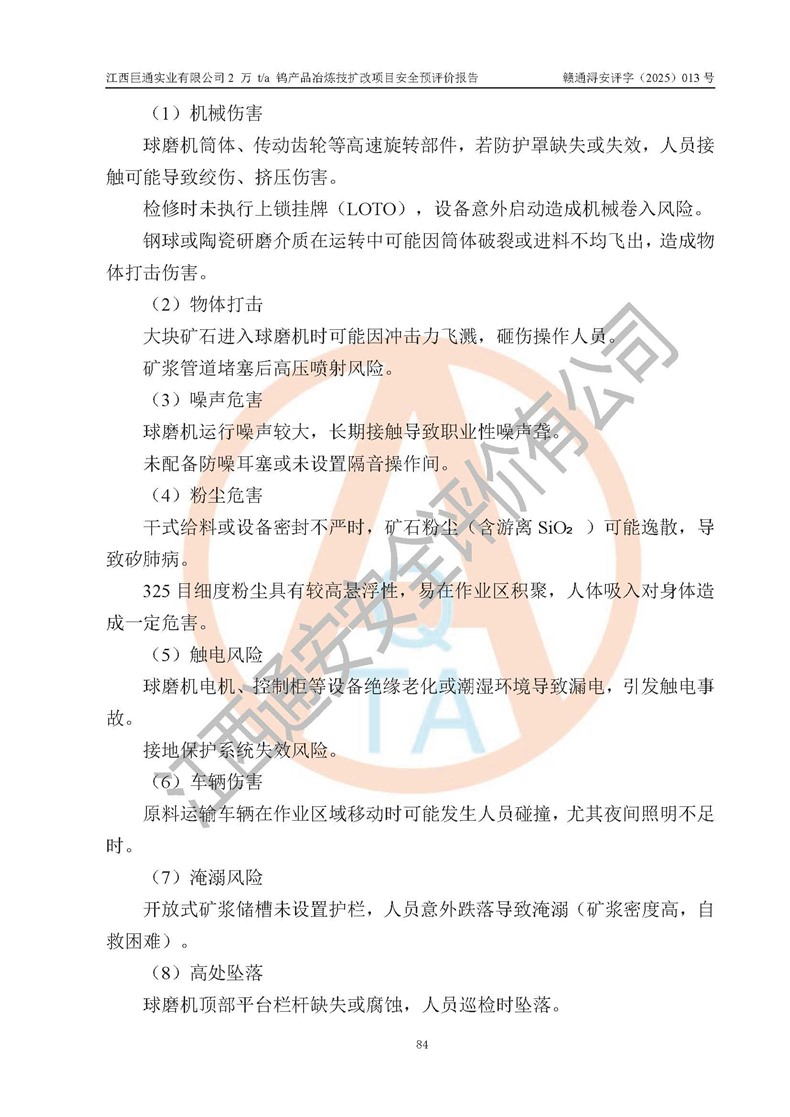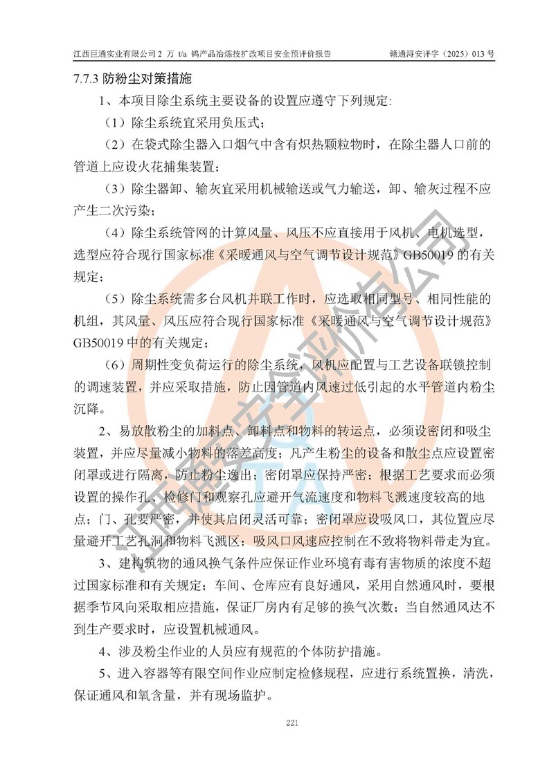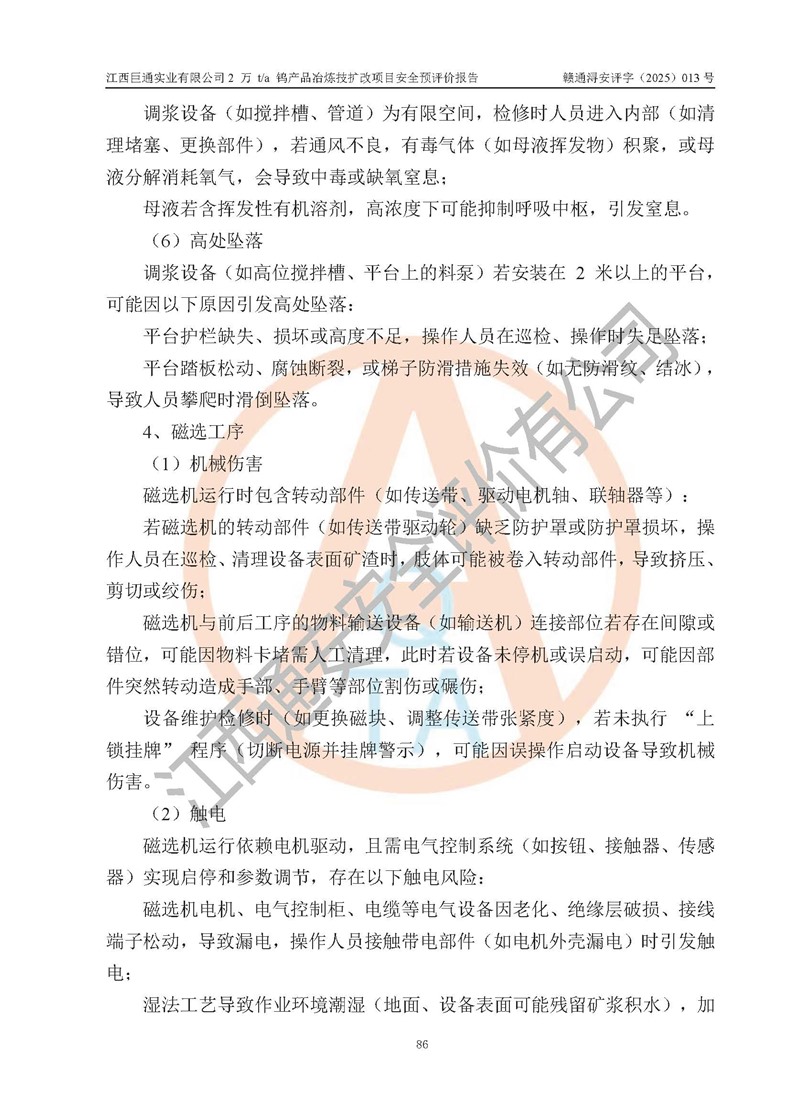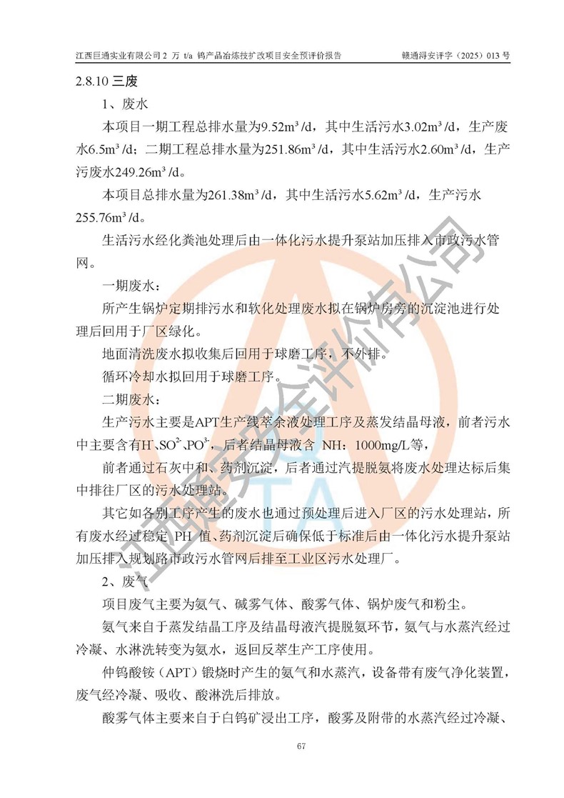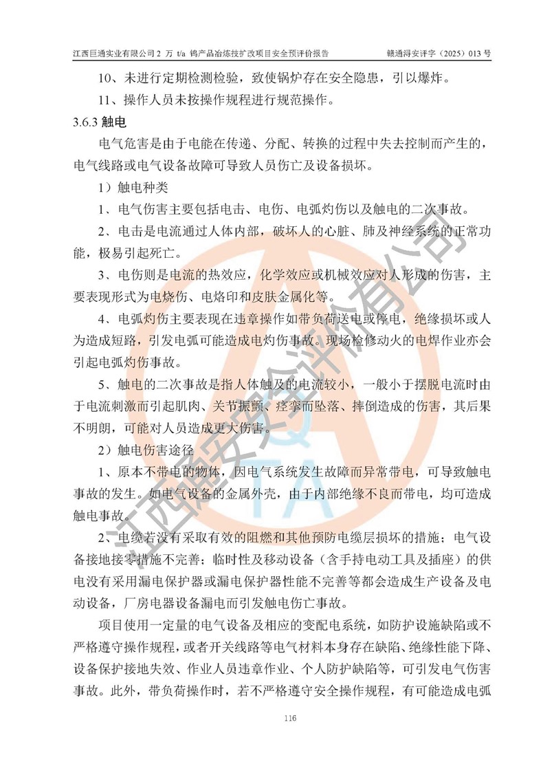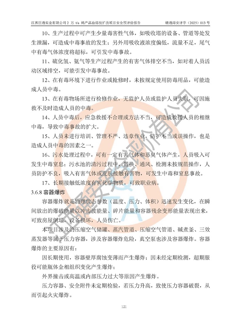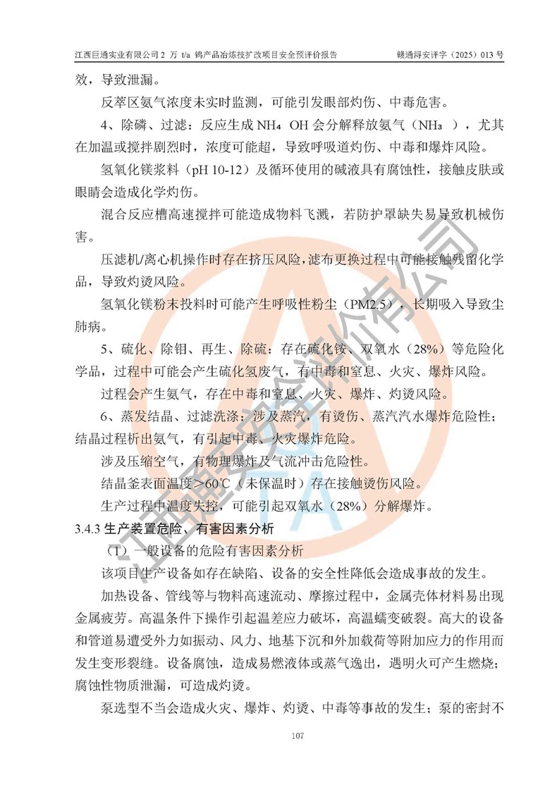 評價報(bào)告名稱 | 江西巨通實(shí)業(yè)有限公司2 萬 t/a 鎢產(chǎn)品冶煉技擴(kuò)改項(xiàng)目安全預(yù)評價報(bào)告 | |||