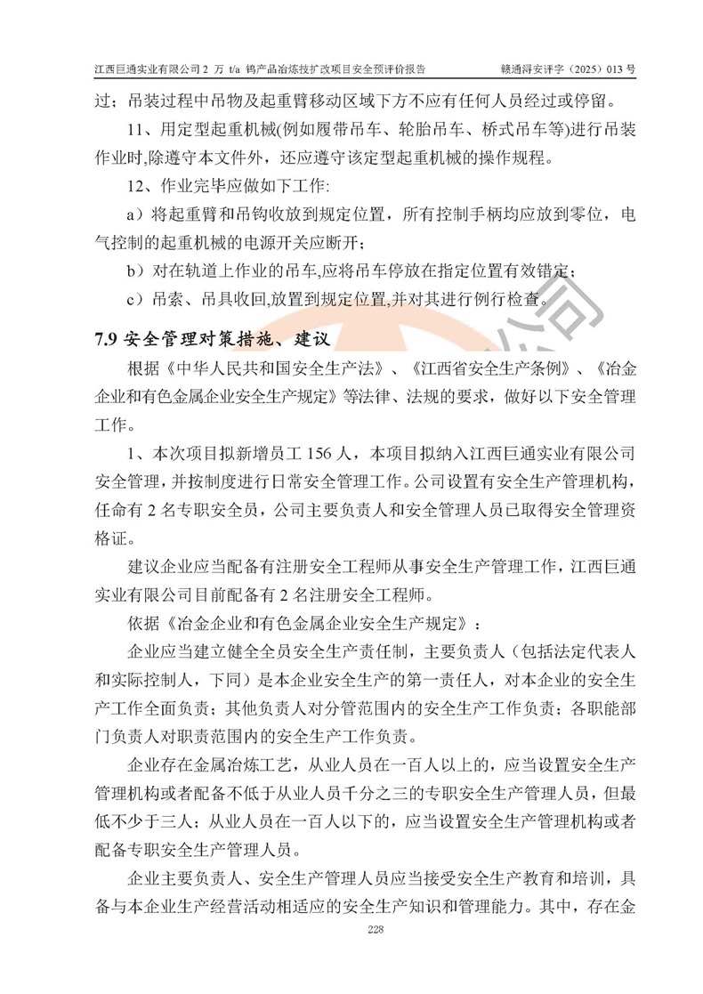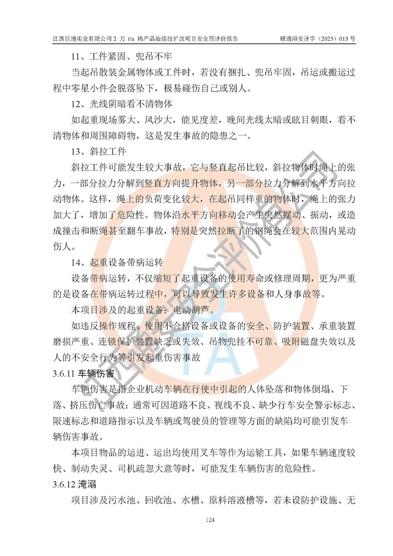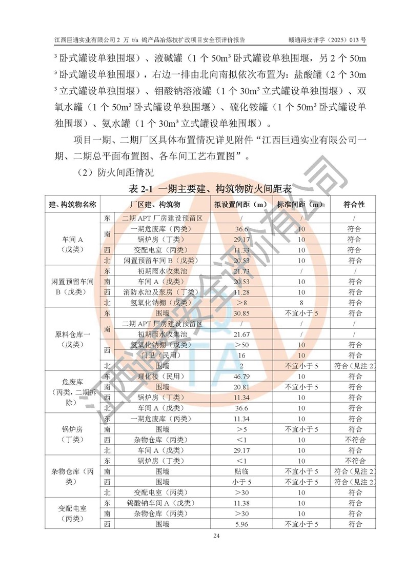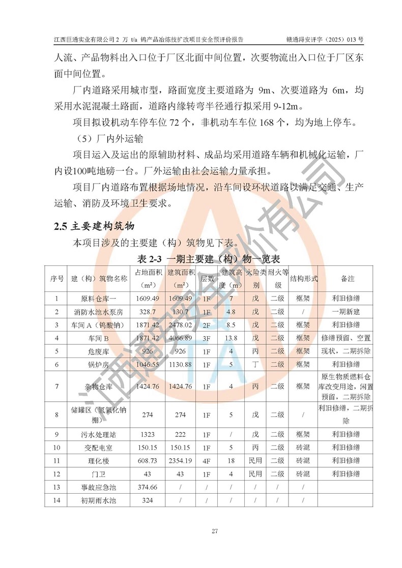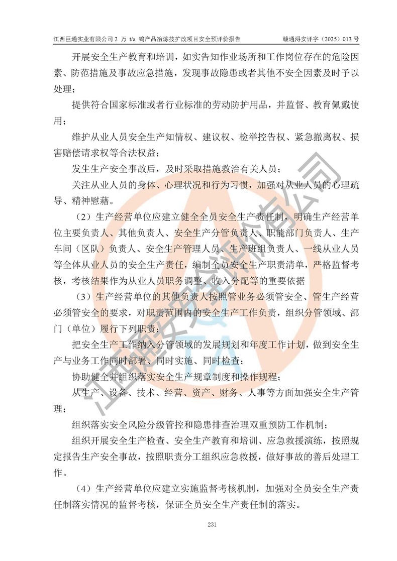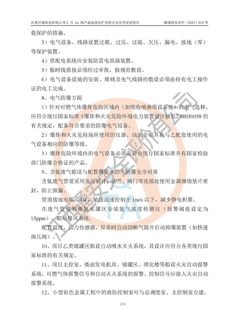 評價報(bào)告名稱 | 江西巨通實(shí)業(yè)有限公司2 萬 t/a 鎢產(chǎn)品冶煉技擴(kuò)改項(xiàng)目安全預(yù)評價報(bào)告 | |||