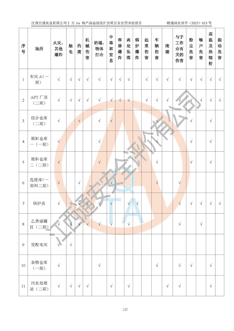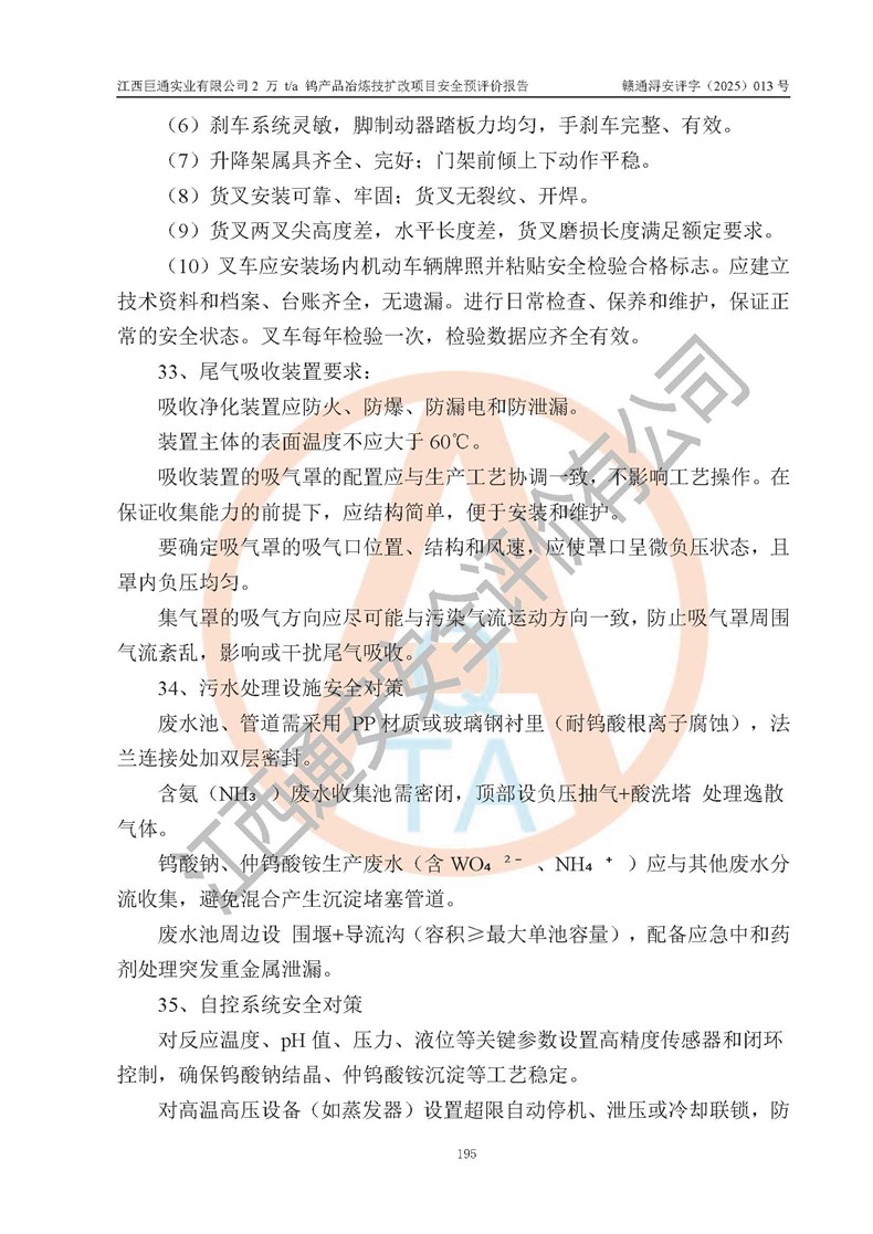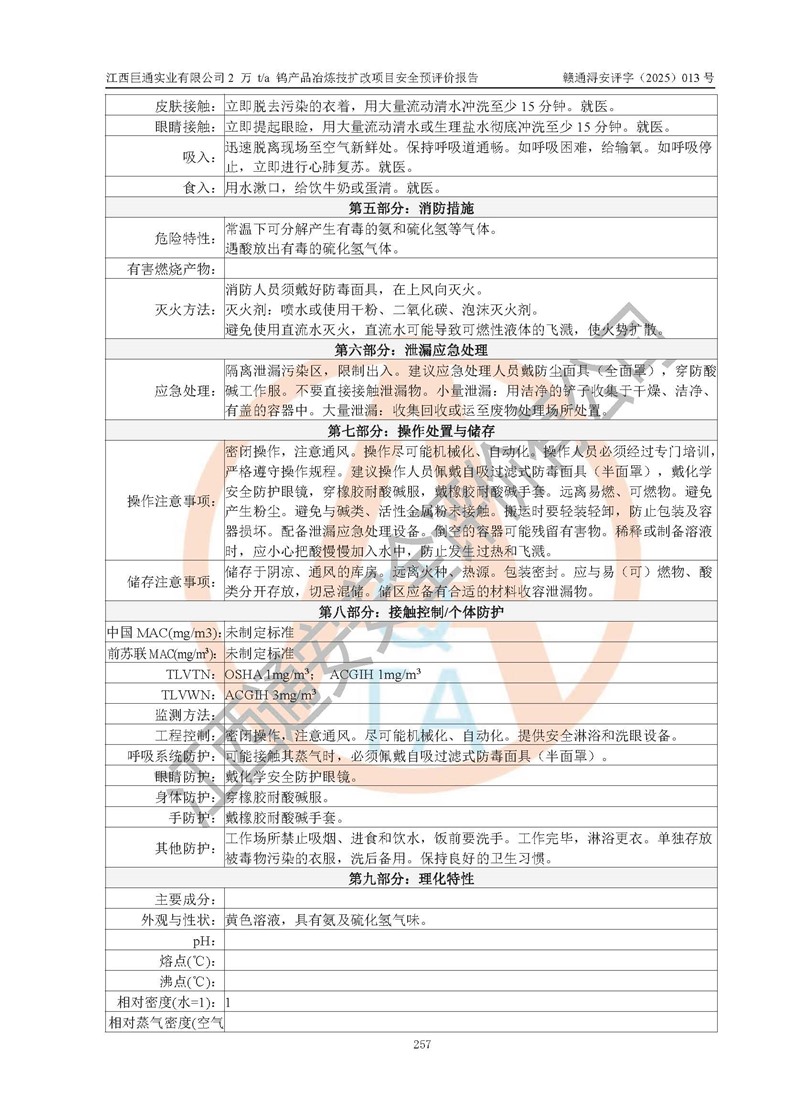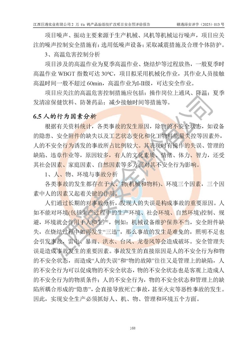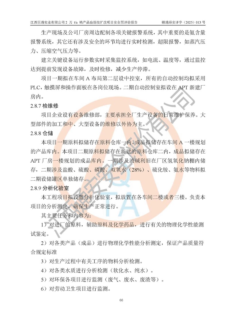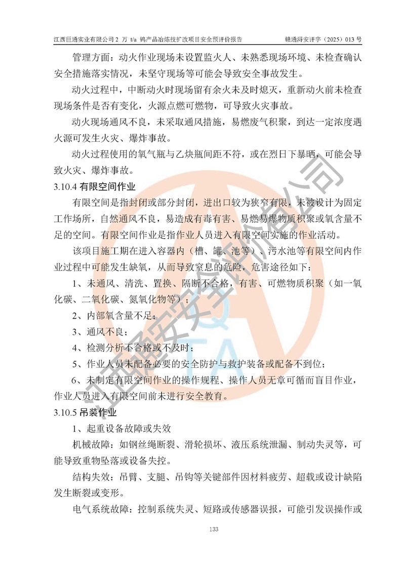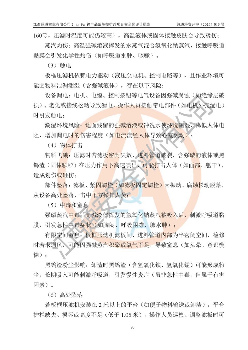 評價報(bào)告名稱 | 江西巨通實(shí)業(yè)有限公司2 萬 t/a 鎢產(chǎn)品冶煉技擴(kuò)改項(xiàng)目安全預(yù)評價報(bào)告 | |||