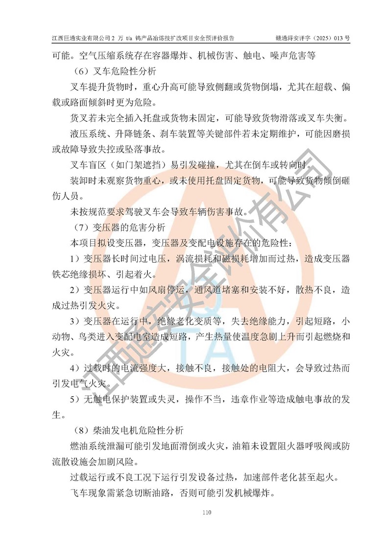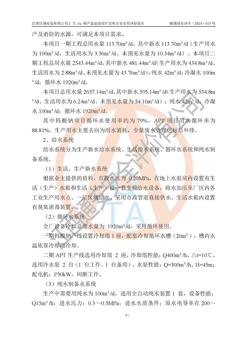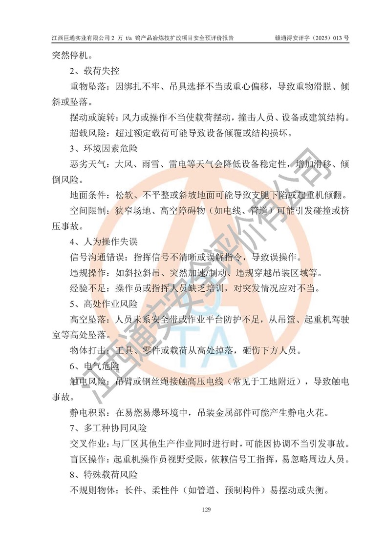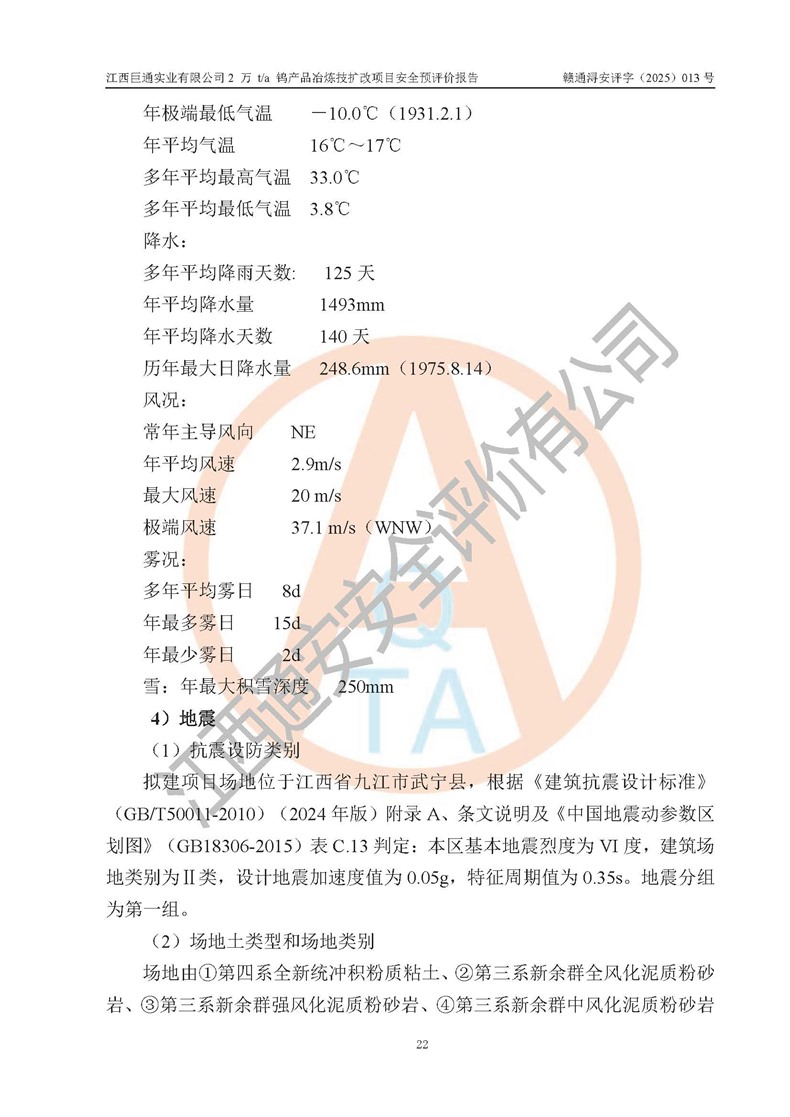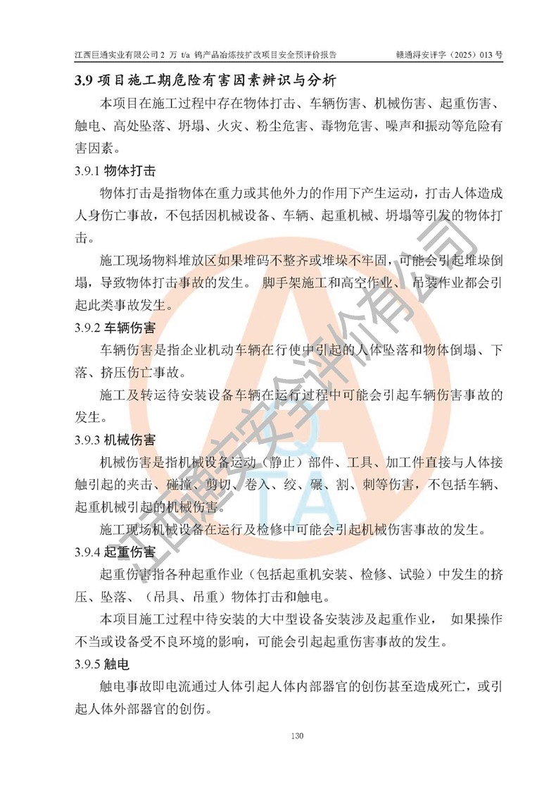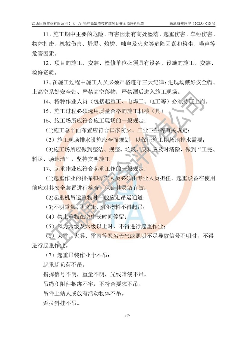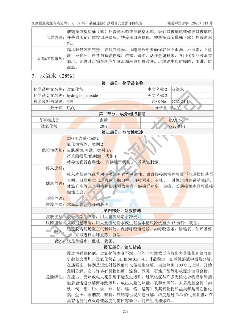 評價報(bào)告名稱 | 江西巨通實(shí)業(yè)有限公司2 萬 t/a 鎢產(chǎn)品冶煉技擴(kuò)改項(xiàng)目安全預(yù)評價報(bào)告 | |||