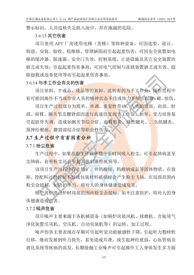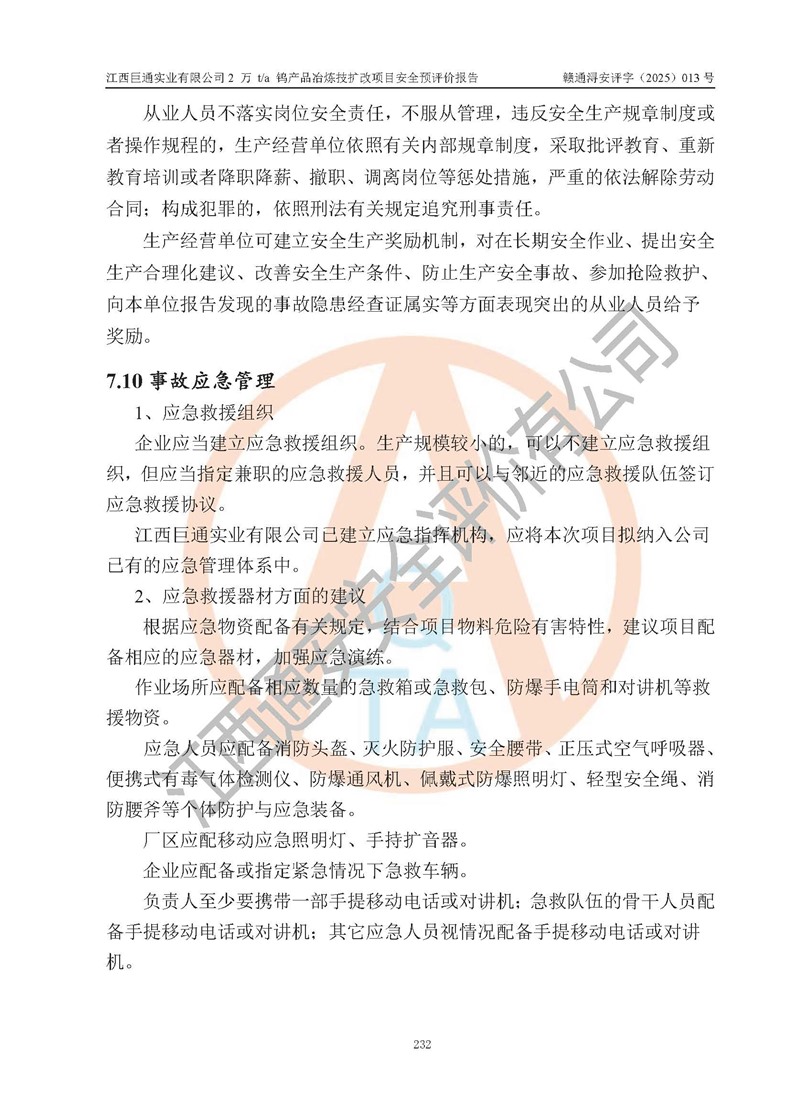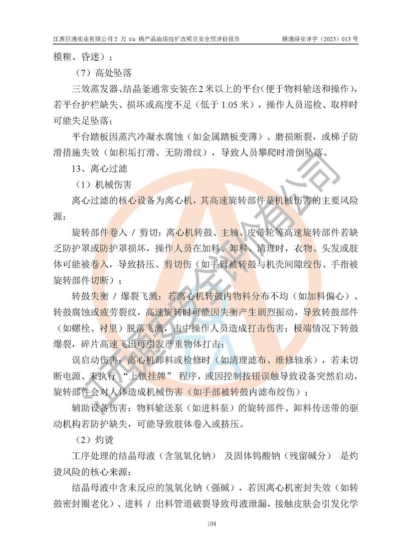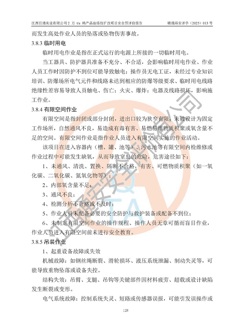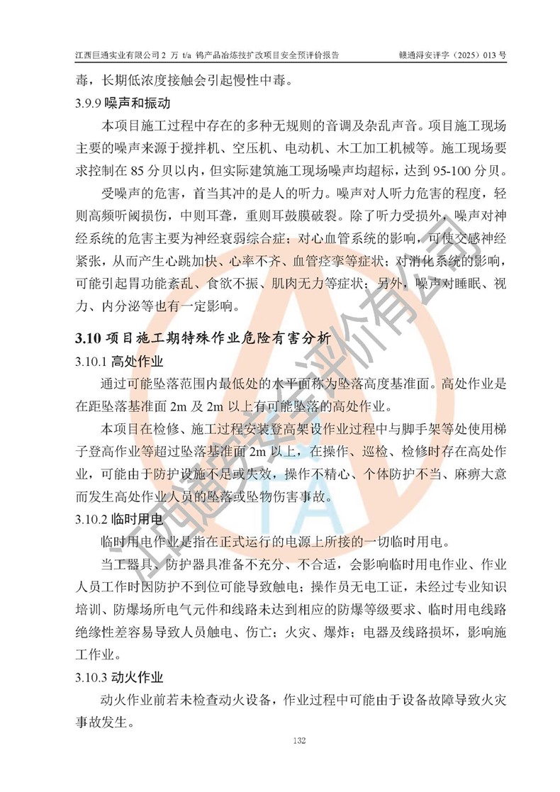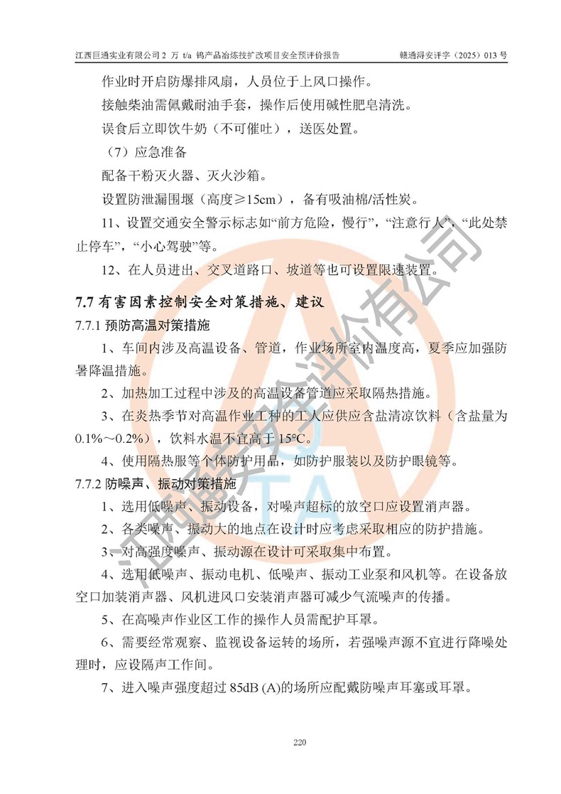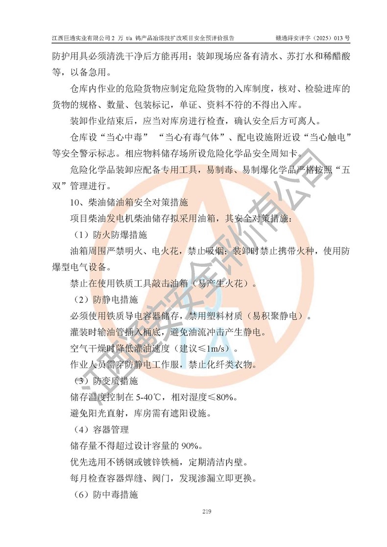 評價報(bào)告名稱 | 江西巨通實(shí)業(yè)有限公司2 萬 t/a 鎢產(chǎn)品冶煉技擴(kuò)改項(xiàng)目安全預(yù)評價報(bào)告 | |||
